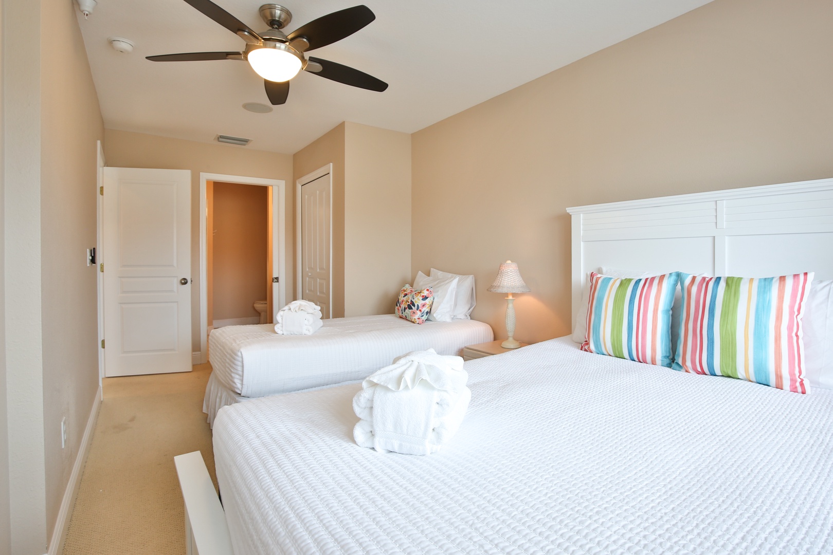 - Guest Room 1: Queen bed and Twin bed with shared ensuite bathroom (accessible from hallway)