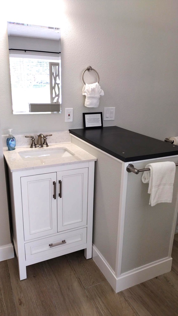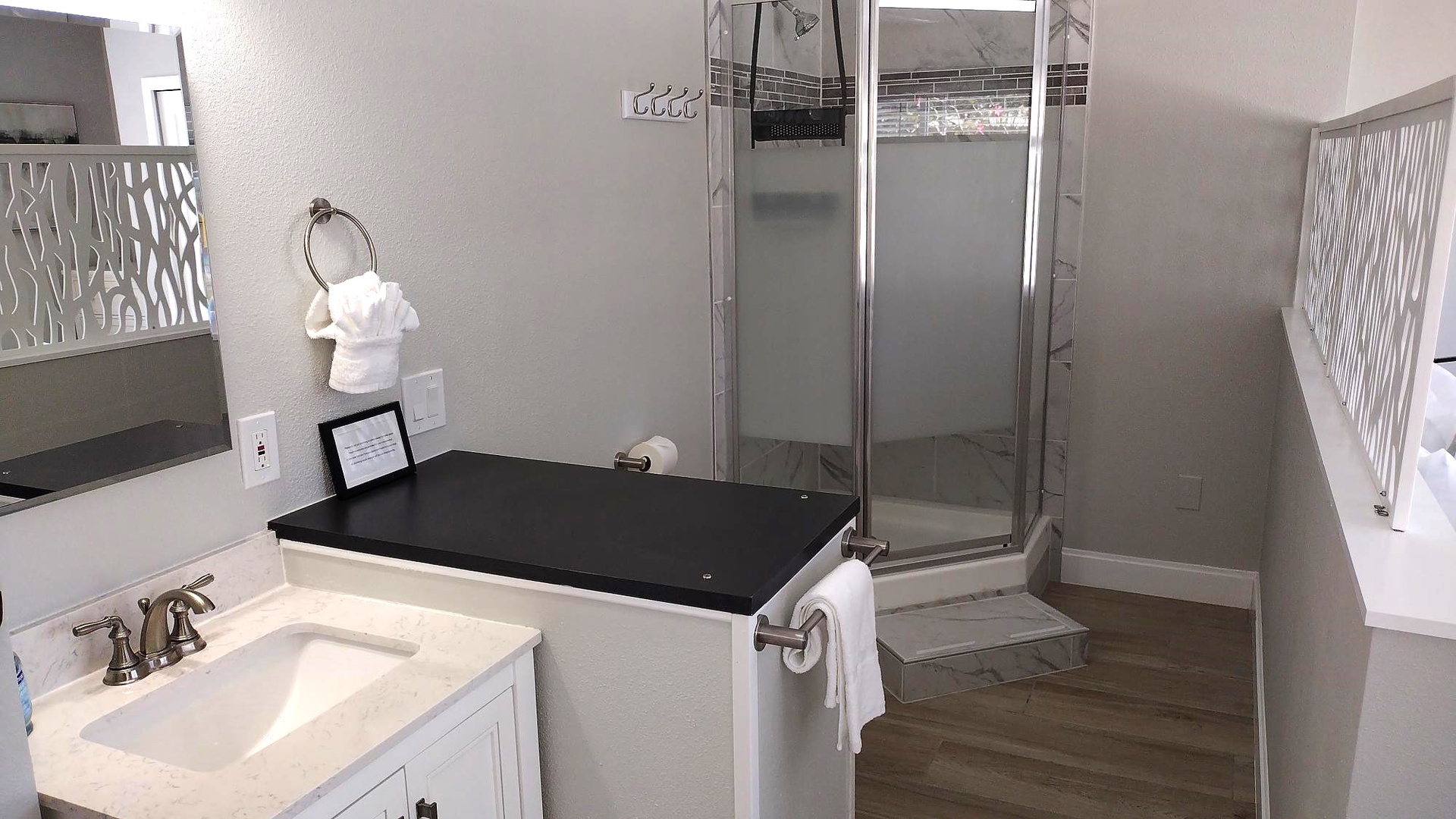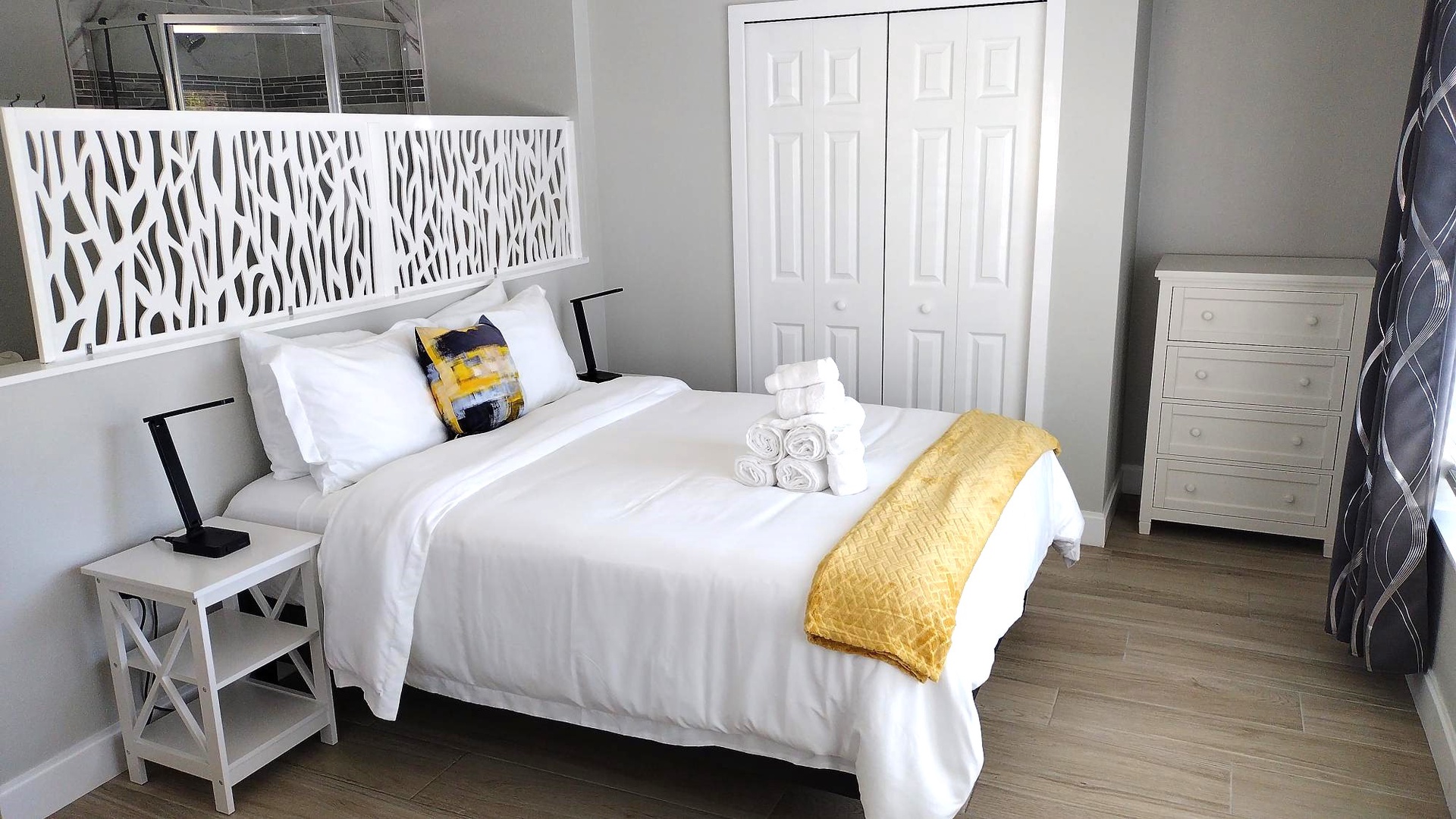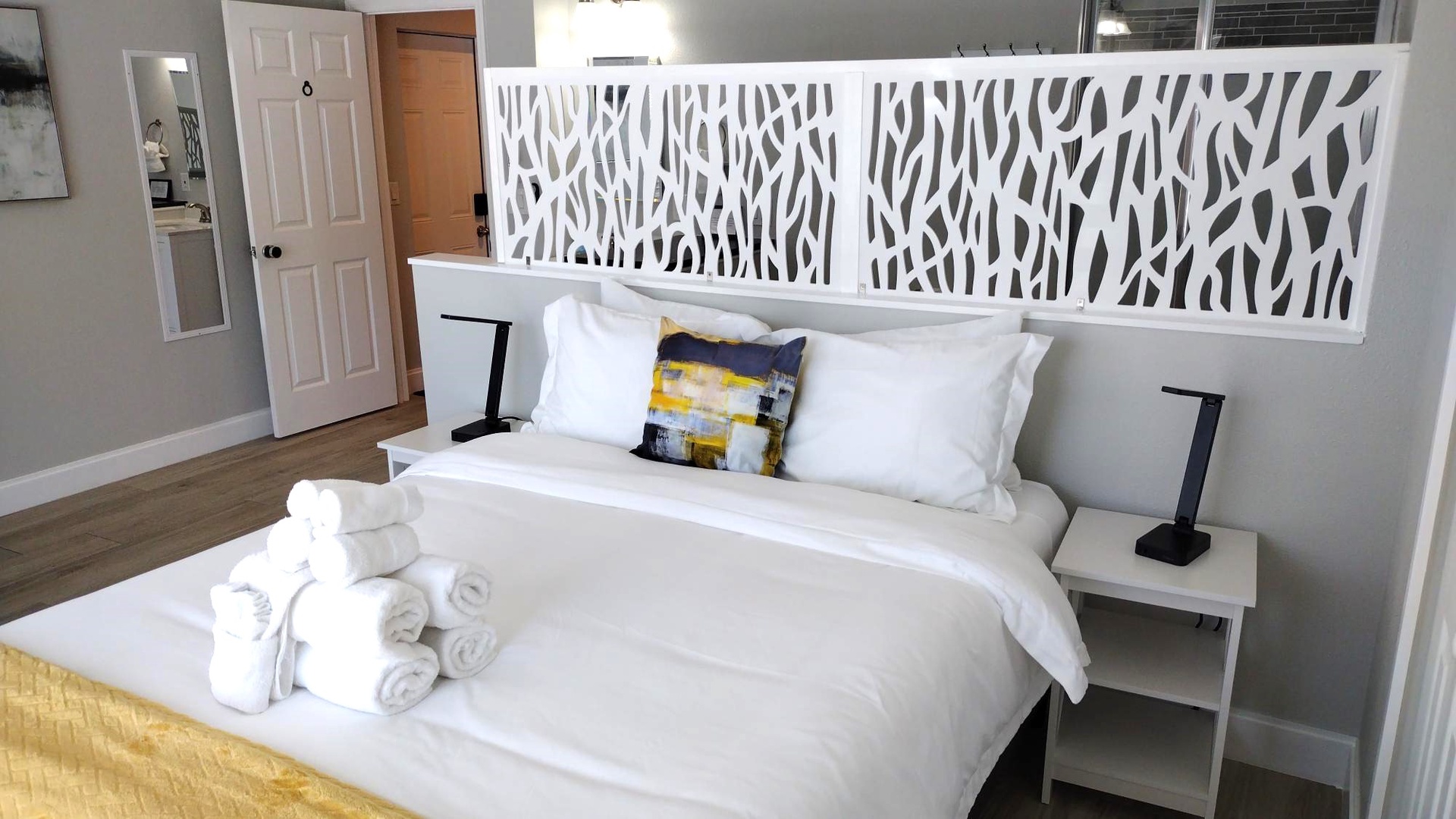 - Private in-room amenities include mini-fridge and 40” Roku TV