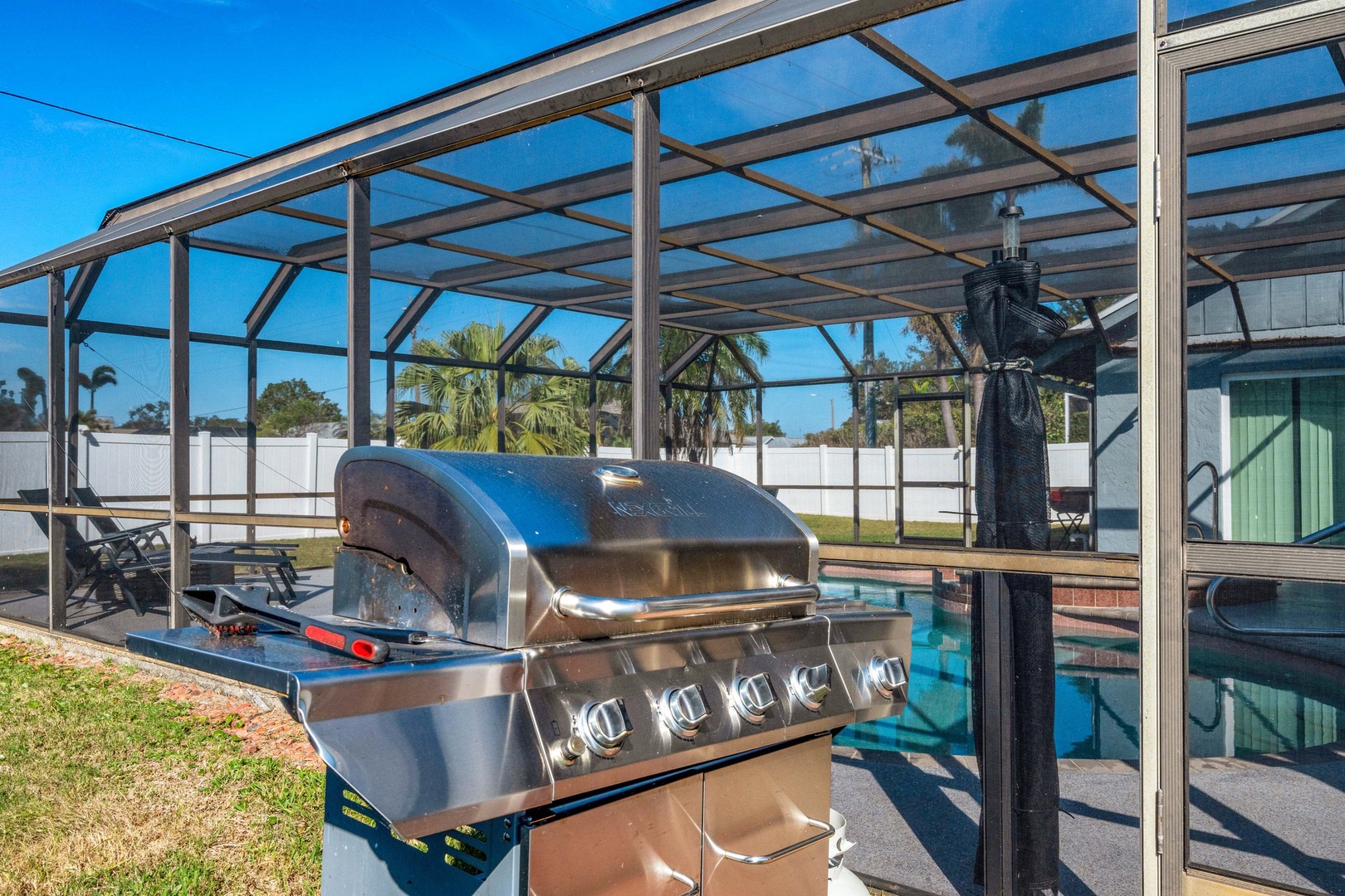 This pet-friendly property includes a full-size washer and dryer in the laundry room for your convenience. The garage is stocked with beach essentials, including beach chairs, a cooler, a beach umbrella, and beach towels, making your trips to Anna Maria Island effortless. For outdoor fun, guests can enjoy corn hole in the yard, while those who love fishing will appreciate the two fishing poles, tackle box, and tackle provided. The home also features a gas grill, perfect for outdoor cookouts. For families traveling with little ones, we’ve provided baby essentials, including a pack-and-play and high chair, to make your stay more comfortable and hassle-free.