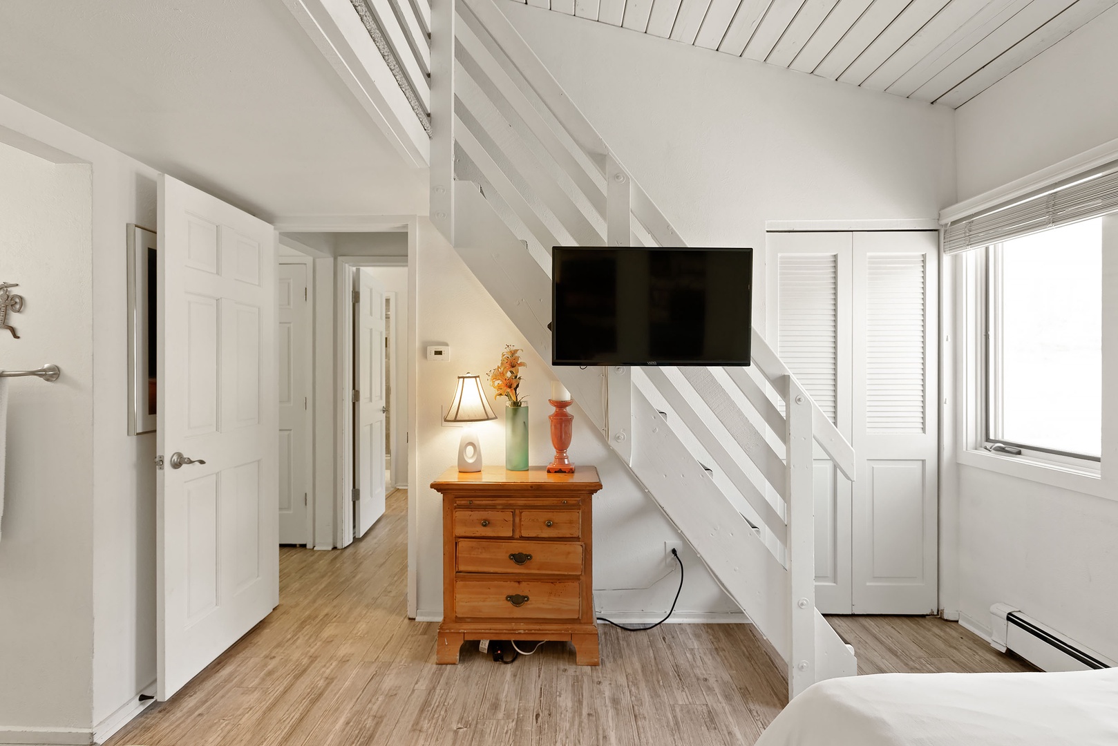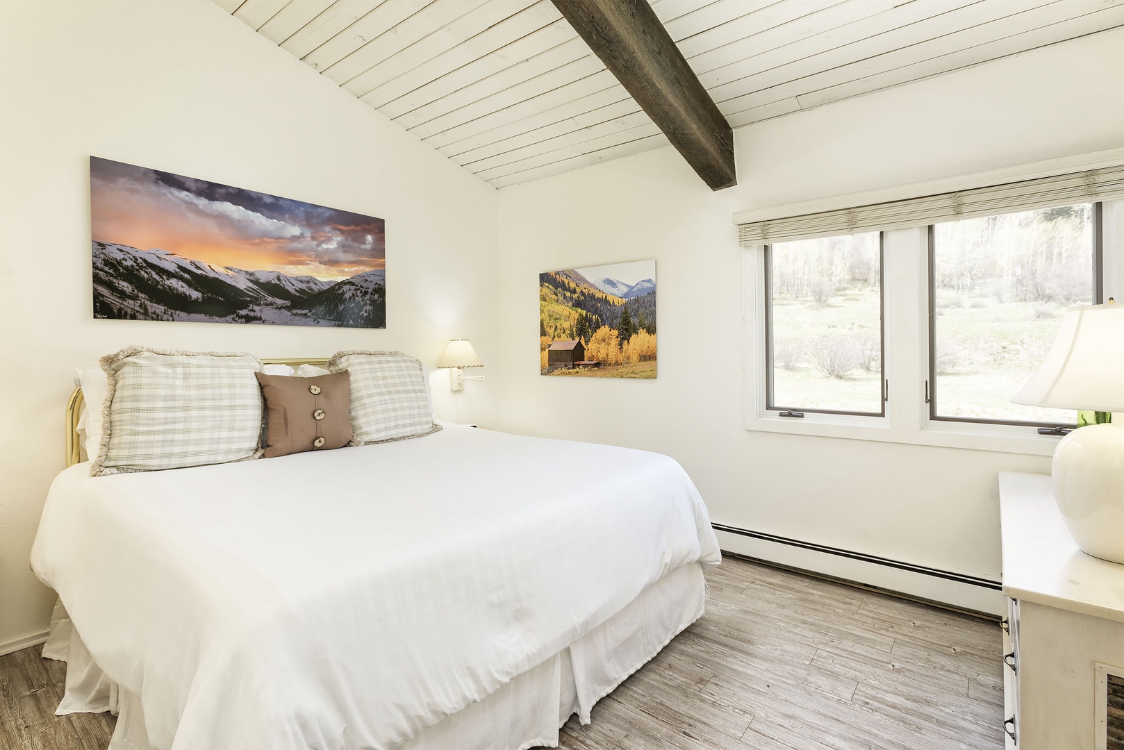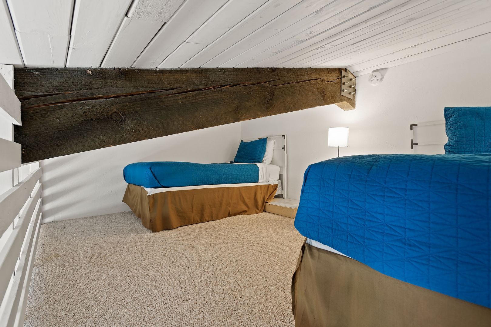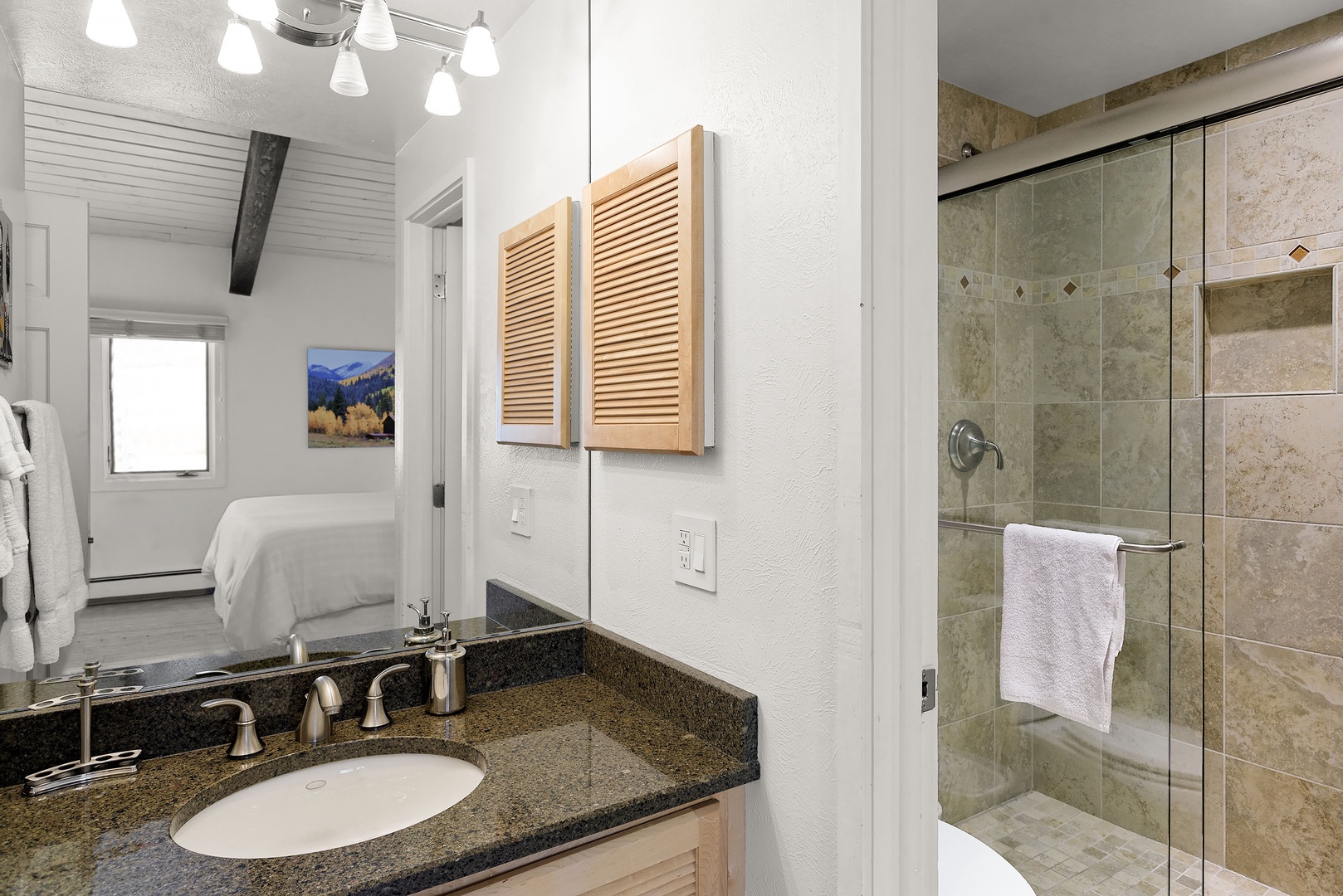 21E Back to Search Results 21E A modern kitchen with a black granite countertop, stainless steel appliances, and an open view into a living area with wooden beams on the ceiling and a fireplace. A modern kitchen with white cabinets, stainless steel appliances, and a breakfast bar. Adjacent is a round wooden dining table with six chairs. Large windows offer a view outside. A white bedroom with a bed, dresser with a lamp and flowers, and a window. A second room with a bed is visible through an open door. There is wooden flooring and a beam on the ceiling. A bedroom with a white bed, wooden ceiling beam, landscape pictures on the walls, a window with blinds, and a bedside lamp on a white nightstand. Modern kitchen with white cabinetry, stainless steel appliances, black granite countertops, and a white paneled island. The space features a vaulted ceiling with a wooden beam and a view of outdoors. Open Gallery A modern kitchen with a black granite countertop, stainless steel appliances, and an open view into a living area with wooden beams on the ceiling and a fireplace. A modern kitchen with white cabinets, stainless steel appliances, and a breakfast bar. Adjacent is a round wooden dining table with six chairs. Large windows offer a view outside. A white bedroom with a bed, dresser with a lamp and flowers, and a window. A second room with a bed is visible through an open door. There is wooden flooring and a beam on the ceiling. A bedroom with a white bed, wooden ceiling beam, landscape pictures on the walls, a window with blinds, and a bedside lamp on a white nightstand. Modern kitchen with white cabinetry, stainless steel appliances, black granite countertops, and a white paneled island. The space features a vaulted ceiling with a wooden beam and a view of outdoors. A bedroom with two beds, a wooden nightstand, wall decor, a lamp, a TV mounted near a staircase, and a patterned rug on the floor. A bathroom with a tiled shower enclosure, sliding glass doors, and a white towel hanging on the handle. A decorative item hangs on the wall to the left above a wicker basket. A bathroom with a granite countertop sink, a towel hanging on the shower door, and an adjacent bedroom. The shower has a glass door, and bright lights are above the mirror. A small room with white walls and a wood floor features a loft staircase, a wall-mounted TV, and a wooden dresser with a lamp and decorative items. Multiple doorways are visible. A bedroom with two beds, a wooden nightstand with a lamp, wall art, a stairway leading to a loft, a mounted TV, and an open doorway showing a bathroom. A bathroom with a sink, mirror, and light fixture. A shower area with beige tiles and a red curtain is visible beside it. Towels are hung on the wall, and a bedroom can be seen through an open door. A cozy attic bedroom with two single beds, each with blue bedding and brown bed skirts, beneath a slanted wooden ceiling and beam, carpeted floor and a small white lamp on the nightstand. A small loft bedroom with a single bed covered in a blue quilt, exposed wooden beam ceiling, white walls, and a wall-mounted light fixture. A bathroom features a tiled shower with two built-in niches, a curved shower rod with an orange curtain, and a white bathtub. There is a silver faucet and showerhead, and a basket is on a nearby shelf. A living room with high, slanted wooden ceilings, black leather furniture, a white brick fireplace, a wall-mounted TV, and large art on the wall. A sliding door leads to a balcony. Various decor items are around. Spacious living area with vaulted ceiling, exposed beams, open kitchen with white cabinets, stainless steel appliances, round dining table with six chairs, leather armchairs, and sliding glass doors to a balcony. A dining area with a wooden table and six black chairs is next to a kitchen with white cabinets, stainless steel appliances, and a black countertop. The room features white paneled walls and a chandelier. A dining area features a round wooden table with six chairs, facing a kitchen with modern amenities. The space has a high ceiling with exposed beams and a sliding glass door leading to an outdoor area. A modern living room with two black leather sofas, an armchair, a black coffee table, a white brick fireplace with a TV above it, and framed pictures on white paneled walls. A wooden balcony with a glass table and chairs offers a view of a valley, mountains with light snow, and a mix of trees and buildings on a sunny day. A residential outdoor area featuring an empty, covered swimming pool surrounded by buildings and trees, with a fence enclosing the pool area. A view of a ski resort with snow-covered slopes on a mountain, buildings at the base, and leafless trees in the foreground under a clear, sunny sky. A row of multi-story apartment buildings with stone and wood exteriors under a clear blue sky. Tall, leafless trees are in front of the buildings, and a concrete sidewalk runs along the grass. Outdoor pool area with the pool covered by a blue tarp. The surrounding area includes a deck, railing, trees, and adjacent buildings. A "No Diving" warning is painted on the ground. A hilly landscape with sparse vegetation under a clear blue sky. The green and brown terrain has small bushes, patches of grass, and a few scattered trees. A small laundry room with a stacked washer and dryer. Cleaning tools, including a mop, broom, dustpan, and cleaning cloths, are hung on the wall beside the appliances. A mountain landscape showing a snow-covered ridge, partially forested slopes, and scattered buildings nestled among trees under a clear blue sky. Gallery View Snowmass Village, CO 3 Bedrooms 2 full Baths 7 Guests 920 sq. ft. Description Rooms Amenities Reviews Calendar Location - Prime Snowmass Location and Free Transit: Between Snowmass Mall and Base Village with easy access to skiing, hiking, restaurants, and a quick bus to Aspen. - Spacious 2-Bed + Loft Condo: Sleeps 7 with king master, guest bedroom, loft, 2 ba