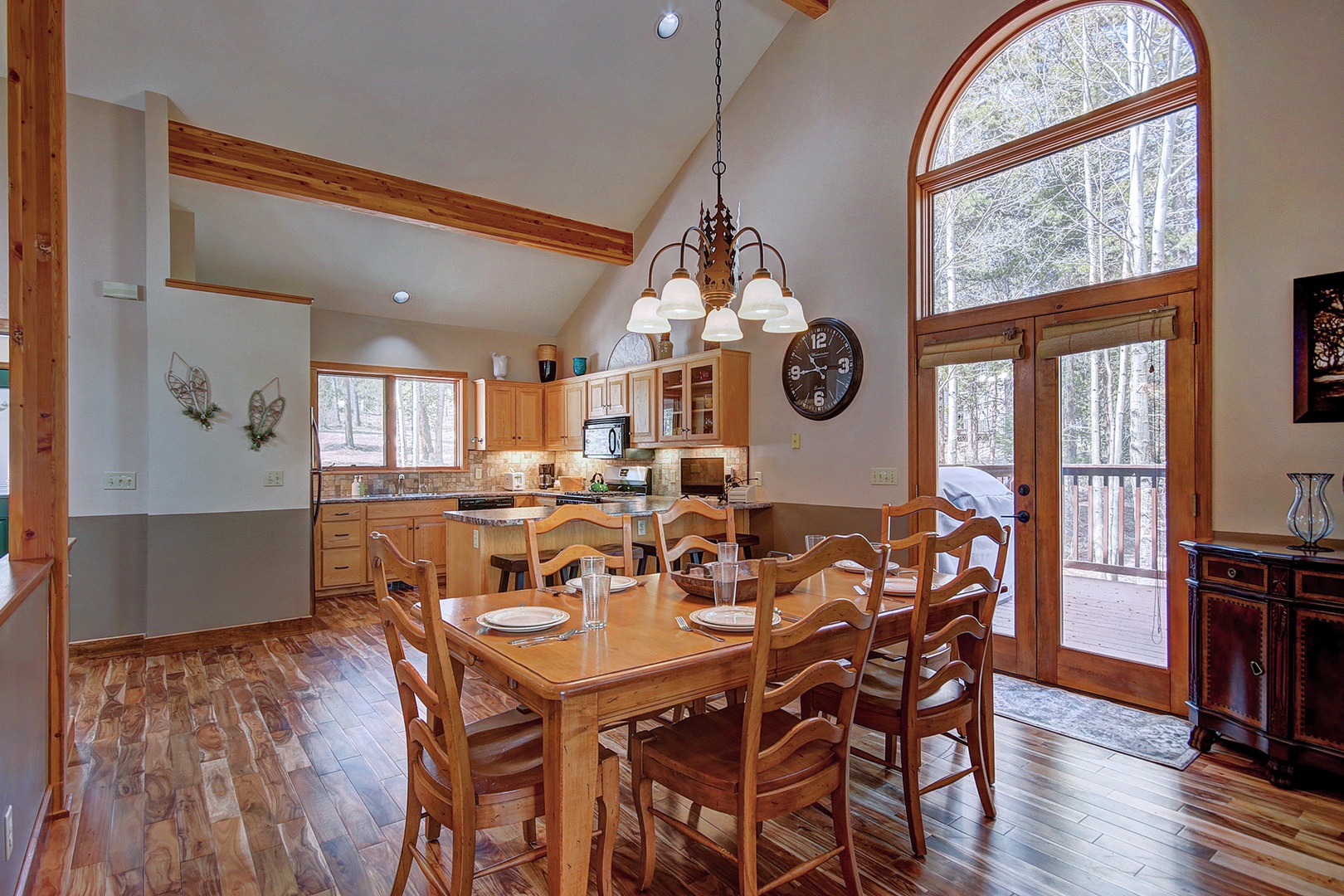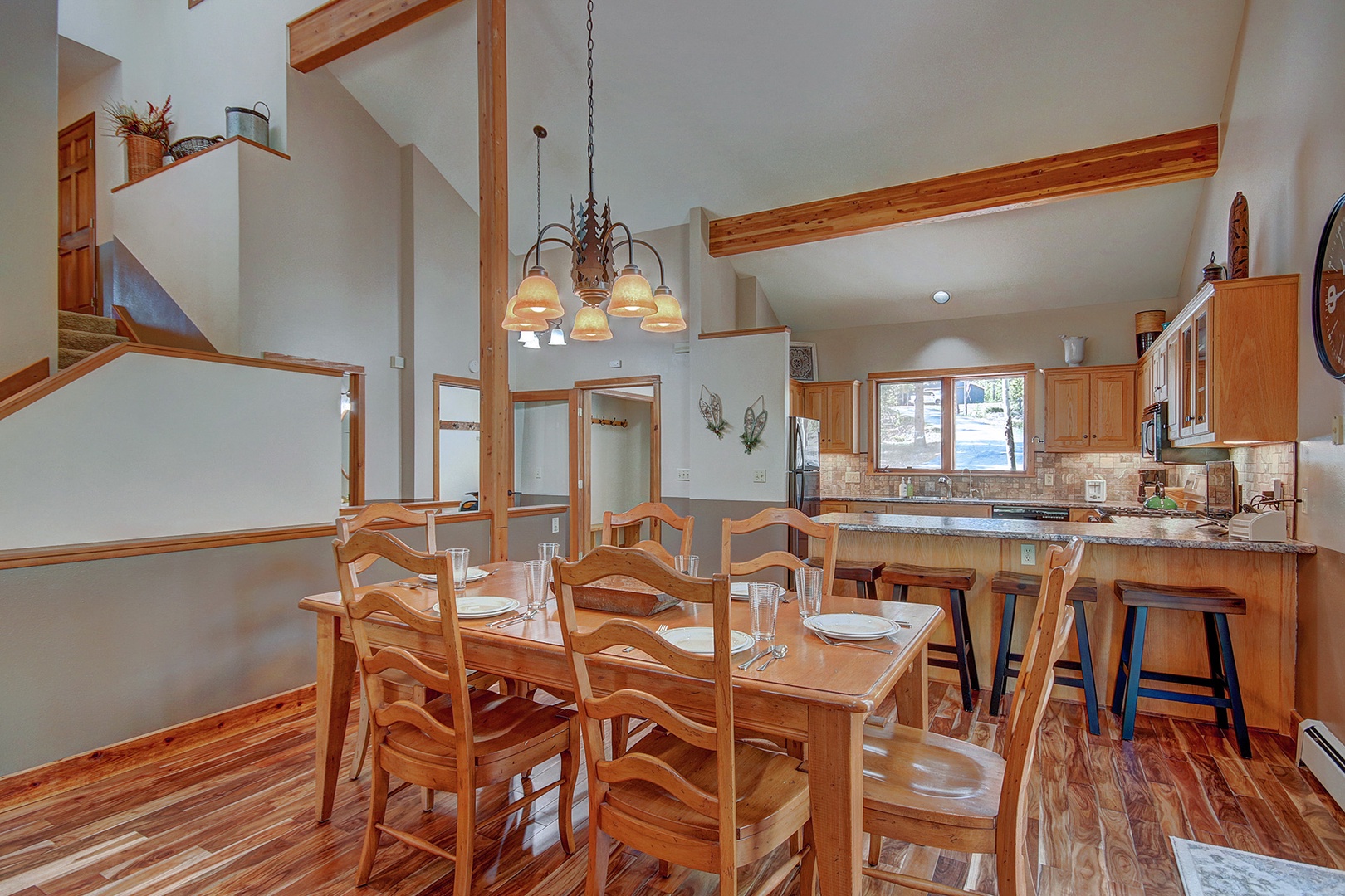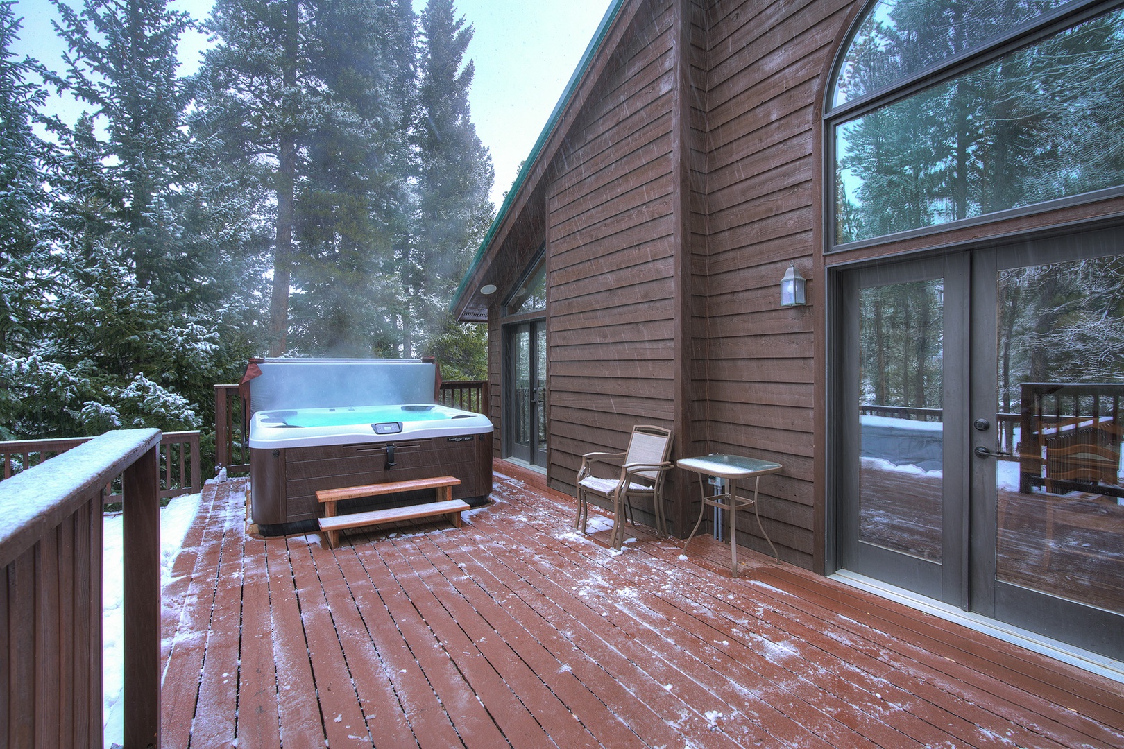 Aspen Heights Lodge Aspen Heights Lodge Open Gallery A cozy living room with leather seating, wooden flooring, a cowhide rug, large windows, a stone fireplace, and an adjoining dining area with a wooden table and chairs. A spacious living room with high ceilings, exposed wooden beams, leather recliners, a large TV, and an open plan leading to the kitchen and dining area. A cowhide rug is on the wooden floor. A rustic dining area with a wooden table and chairs adjacent to a living room with leather sofas. Large windows and a glass door provide a view of the trees outside. A kitchen with wooden cabinets, stainless steel appliances, and a tile backsplash. Large window provides natural light, and countertops are clutter-free with minimal accessories. A modern kitchen with wooden cabinetry, granite countertops, and stainless steel appliances. The room features high ceilings, pendant lighting, and a view of trees through a large window. A neatly arranged bedroom with a wooden bed, TV on a dresser, two windows, beige walls, and carpeted floor. Two bedside lamps are on nightstands beside the bed. There is a walk-in closet in the corner. A bathroom with a bathtub, walk-in shower, double sink vanity with mirror, and light green walls. Spacious open-concept kitchen and living area with wood cabinets, granite countertops, hardwood floors, vaulted ceiling, exposed beams, ceiling fan, and a staircase leading to the upper floor. A bedroom with a four-poster bed featuring a floral quilt, a wooden dresser with a mirror, and a small lamp on a bedside table. A walk-in closet is visible through an open door. A small bedroom with a double bed, two pillows, a quilt, a wooden dresser with a mirror, a window with a blind, and recessed ceiling lights. A small bathroom with a sink, mirror, toilet, and bathtub with a patterned shower curtain. The walls are tiled in a light brown color and towels are neatly hung on a towel rack. A hot tub on a wooden deck in a snowy forest setting, with steam rising from the water, a grill, and a chair nearby. A wooden deck with a large table and chairs, a hot tub, and a barbecue grill next to a wooden cabin in a forested area. A living room with wooden floors, a brown recliner sofa set, a rocking chair, a flat-screen TV on a stand, and large windows letting in natural light. A living room with large windows, a leather sofa set, a stone fireplace, a side table lamp, a wall painting of a snowy forest, and a wooden floor. A spacious dining room with wooden furniture, a large table set with plates and cutlery, a chandelier above, and an adjoining kitchen with wooden cabinets and a breakfast bar. A dining and living area with wooden furniture and a hanging light fixture, featuring large windows, a stone fireplace, and access to an outdoor deck. The floor is hardwood, and the area is well-lit. A kitchen and dining area with a wooden table set for six. The room has high ceilings, wooden beams, large windows, and glass doors leading to an outdoor deck. A modern kitchen with wooden cabinets, stainless steel appliances, a marble countertop island with three bar stools, a wall clock, and a window overlooking a wooded area. Spacious open-concept kitchen and dining area with wooden cabinetry and flooring, high ceilings with exposed beams, ceiling fan, and large windows providing natural light. A bedroom with a wooden bed, dresser, and desk. There is an open doorway to an en-suite bathroom with a window and a visible bathtub. Another doorway leads to a hallway. A cozy bedroom featuring a four-poster bed with patterned bedding, a side table with a lamp, a wall mirror, and an open door revealing a glimpse of an adjacent room. A small bedroom featuring a closed white closet, a wooden dresser, a white chest of drawers with a lamp, and an open door leading to another room. The room is carpeted with muted lighting. A small, clean bathroom with a white sink, a mirrored cabinet, a toilet, a white towel on a rack, and a wooden door. The walls are painted light gray. A laundry room with a window, a washer and dryer, a wooden bench, a shelf with items, and a tall storage cabinet. Wooden deck with two chairs, a small table, a gas grill, and a sliding door leading into a wooden house. Trees are visible in the background. A wooden cabin with a green metal roof sits in a forested area, featuring a double garage and a clear, paved driveway under a clear blue sky. A wooden house with a green metal roof is surrounded by slender trees. The scene includes a driveway, a front porch, and a backdrop of a forest under a clear blue sky. Wooden deck with a hot tub, two chairs, and a small table, attached to a cabin surrounded by trees. Snow is lightly covering parts of the deck and nearby forest. Gallery View Breckenridge, CO 3 Bedrooms 3 full Baths 8 Guests 2557 sq. ft. (4.9) Description Rooms Amenities Reviews Calendar Location Welcome to Aspen Heights Lodge, your charming Colorado cabin retreat in the peaceful Peak 7 neighborhood of Breckenridge! With vaulted ceilings and ample space for the whole family, this cozy home is your gateway to high-alpine adventures. In just 5 minutes, you'll find yourself on the slopes of Breckenridge, carving through fresh powder. After an exhilarating day, soothe your muscles in the private hot tub or unwind on the outdoor furniture, taking in the serene surroundings and stargazing under the clear night sky. Stay connected with high-speed internet and catch up on your favorite shows and movies on multiple flat-screen TVs. When you're not exploring the outdoors, relax and bond over foosball and board games - perfect for family fun! The location couldn't be more ideal - just 5 minutes from downtown Breckenridge, where you can indulge in boutique shopping, savor culinary delights, pamper yourself at spas, and experience the vibrant nightlife. Cook up delicious meals in the fully-equipped kitchen with a 4-burner gas range and ample cabinet space for longer stays. Create lasting memories in