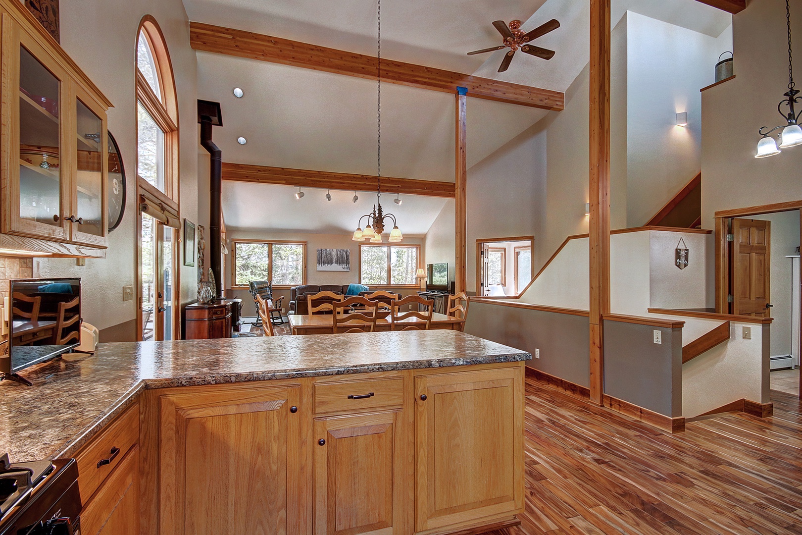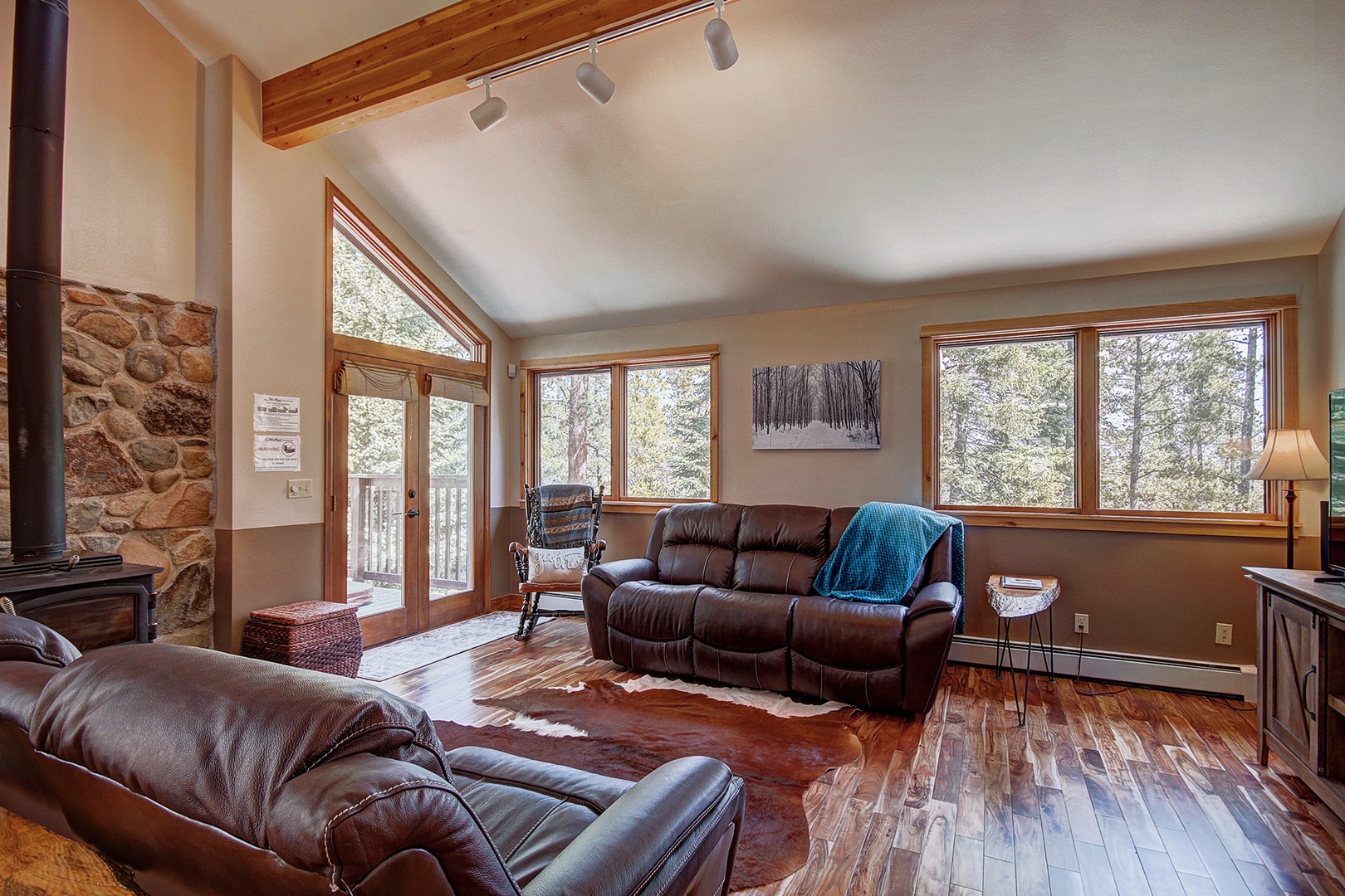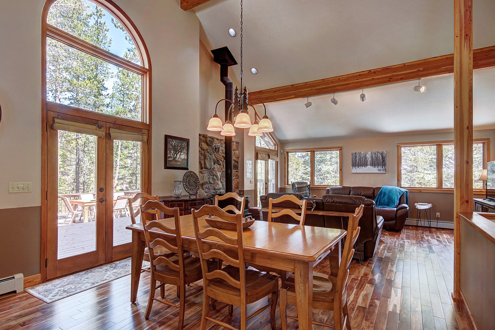 Aspen Heights Lodge Aspen Heights Lodge Open Gallery A cozy living room with leather seating, wooden flooring, a cowhide rug, large windows, a stone fireplace, and an adjoining dining area with a wooden table and chairs. A spacious living room with high ceilings, exposed wooden beams, leather recliners, a large TV, and an open plan leading to the kitchen and dining area. A cowhide rug is on the wooden floor. A rustic dining area with a wooden table and chairs adjacent to a living room with leather sofas. Large windows and a glass door provide a view of the trees outside. A kitchen with wooden cabinets, stainless steel appliances, and a tile backsplash. Large window provides natural light, and countertops are clutter-free with minimal accessories. A modern kitchen with wooden cabinetry, granite countertops, and stainless steel appliances. The room features high ceilings, pendant lighting, and a view of trees through a large window. A neatly arranged bedroom with a wooden bed, TV on a dresser, two windows, beige walls, and carpeted floor. Two bedside lamps are on nightstands beside the bed. There is a walk-in closet in the corner. A bathroom with a bathtub, walk-in shower, double sink vanity with mirror, and light green walls. Spacious open-concept kitchen and living area with wood cabinets, granite countertops, hardwood floors, vaulted ceiling, exposed beams, ceiling fan, and a staircase leading to the upper floor. A bedroom with a four-poster bed featuring a floral quilt, a wooden dresser with a mirror, and a small lamp on a bedside table. A walk-in closet is visible through an open door. A small bedroom with a double bed, two pillows, a quilt, a wooden dresser with a mirror, a window with a blind, and recessed ceiling lights. A small bathroom with a sink, mirror, toilet, and bathtub with a patterned shower curtain. The walls are tiled in a light brown color and towels are neatly hung on a towel rack. A hot tub on a wooden deck in a snowy forest setting, with steam rising from the water, a grill, and a chair nearby. A wooden deck with a large table and chairs, a hot tub, and a barbecue grill next to a wooden cabin in a forested area. A living room with wooden floors, a brown recliner sofa set, a rocking chair, a flat-screen TV on a stand, and large windows letting in natural light. A living room with large windows, a leather sofa set, a stone fireplace, a side table lamp, a wall painting of a snowy forest, and a wooden floor. A spacious dining room with wooden furniture, a large table set with plates and cutlery, a chandelier above, and an adjoining kitchen with wooden cabinets and a breakfast bar. A dining and living area with wooden furniture and a hanging light fixture, featuring large windows, a stone fireplace, and access to an outdoor deck. The floor is hardwood, and the area is well-lit. A kitchen and dining area with a wooden table set for six. The room has high ceilings, wooden beams, large windows, and glass doors leading to an outdoor deck. A modern kitchen with wooden cabinets, stainless steel appliances, a marble countertop island with three bar stools, a wall clock, and a window overlooking a wooded area. Spacious open-concept kitchen and dining area with wooden cabinetry and flooring, high ceilings with exposed beams, ceiling fan, and large windows providing natural light. A bedroom with a wooden bed, dresser, and desk. There is an open doorway to an en-suite bathroom with a window and a visible bathtub. Another doorway leads to a hallway. A cozy bedroom featuring a four-poster bed with patterned bedding, a side table with a lamp, a wall mirror, and an open door revealing a glimpse of an adjacent room. A small bedroom featuring a closed white closet, a wooden dresser, a white chest of drawers with a lamp, and an open door leading to another room. The room is carpeted with muted lighting. A small, clean bathroom with a white sink, a mirrored cabinet, a toilet, a white towel on a rack, and a wooden door. The walls are painted light gray. A laundry room with a window, a washer and dryer, a wooden bench, a shelf with items, and a tall storage cabinet. Wooden deck with two chairs, a small table, a gas grill, and a sliding door leading into a wooden house. Trees are visible in the background. A wooden cabin with a green metal roof sits in a forested area, featuring a double garage and a clear, paved driveway under a clear blue sky. A wooden house with a green metal roof is surrounded by slender trees. The scene includes a driveway, a front porch, and a backdrop of a forest under a clear blue sky. Wooden deck with a hot tub, two chairs, and a small table, attached to a cabin surrounded by trees. Snow is lightly covering parts of the deck and nearby forest. Gallery View Breckenridge, CO 3 Bedrooms 3 full Baths 8 Guests 2557 sq. ft. (4.9) Description Rooms Amenities Reviews Calendar Location Welcome to Aspen Heights Lodge, your charming Colorado cabin retreat in the peaceful Peak 7 neighborhood of Breckenridge! With vaulted ceilings and ample space for the whole family, this cozy home is your gateway to high-alpine adventures. In just 5 minutes, you'll find yourself on the slopes of Breckenridge, carving through fresh powder. After an exhilarating day, soothe your muscles in the private hot tub or unwind on the outdoor furniture, taking in the serene surroundings and stargazing under the clear night sky. Stay connected with high-speed internet and catch up on your favorite shows and movies on multiple flat-screen TVs. When you're not exploring the outdoors, relax and bond over foosball and board games - perfect for family fun! The location couldn't be more ideal - just 5 minutes from downtown Breckenridge, where you can indulge in boutique shopping, savor culinary delights, pamper yourself at spas, and experience the vibrant nightlife. Cook up delicious meals in the fully-equipped kitchen with a 4-burner gas range and ample cabinet space for longer stays. Create lasting memories in
