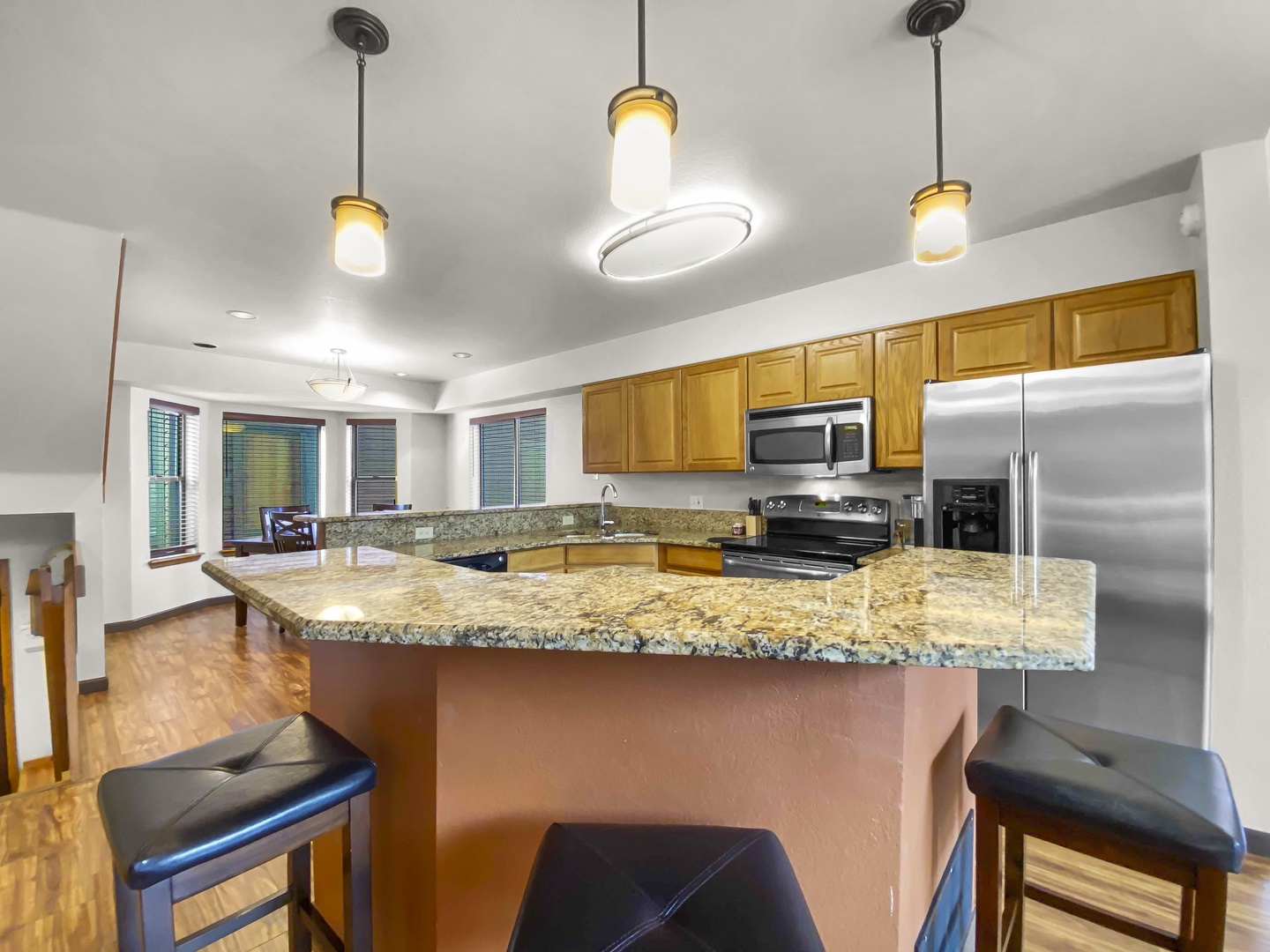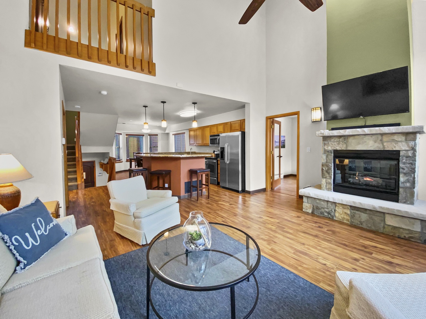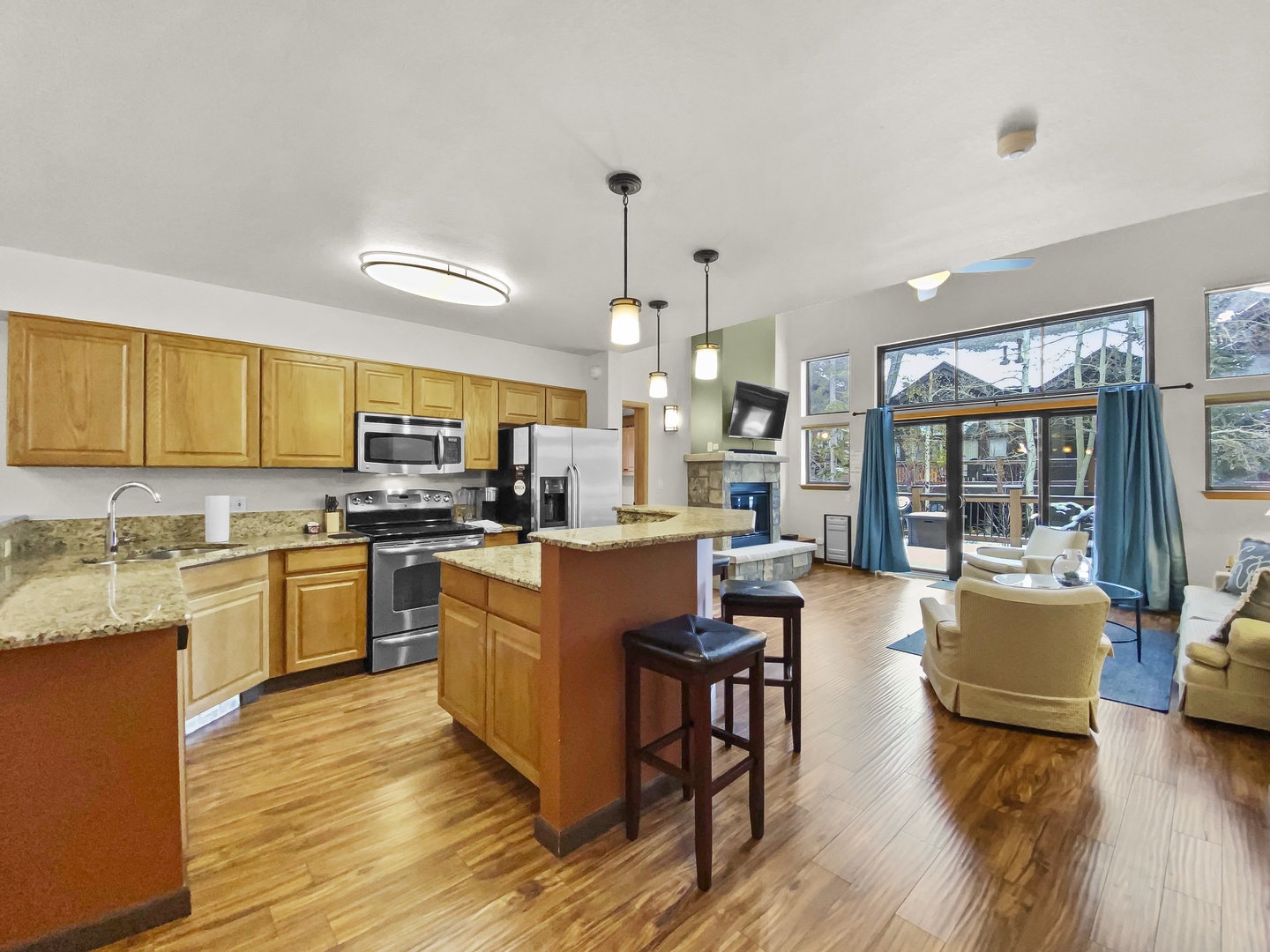 Village Point 120 Village Point 120 A spacious living room with high ceilings, a ceiling fan, large windows, a fireplace, and a wall-mounted TV. The room includes a beige sofa, armchair, coffee table, and sliding doors leading to an outdoor area. Outdoor hot tub on a snowy deck, surrounded by tall trees and adjacent buildings in a forested area. A spacious kitchen and living area with wooden flooring, modern appliances, granite countertops, and large windows providing a view of the outdoors. A spacious living room with a high ceiling, light tan sectional sofa, coffee table, two chairs, a wall-mounted TV, a fireplace, and large windows with blue curtains overlooking a balcony. A narrow stone pathway meanders through a courtyard of brown wooden townhouses with some snow scattered on the ground. Leafless trees line the sides, indicating early winter. Open Gallery A spacious living room with high ceilings, a ceiling fan, large windows, a fireplace, and a wall-mounted TV. The room includes a beige sofa, armchair, coffee table, and sliding doors leading to an outdoor area. Outdoor hot tub on a snowy deck, surrounded by tall trees and adjacent buildings in a forested area. A spacious kitchen and living area with wooden flooring, modern appliances, granite countertops, and large windows providing a view of the outdoors. A spacious living room with a high ceiling, light tan sectional sofa, coffee table, two chairs, a wall-mounted TV, a fireplace, and large windows with blue curtains overlooking a balcony. A narrow stone pathway meanders through a courtyard of brown wooden townhouses with some snow scattered on the ground. Leafless trees line the sides, indicating early winter. Overhead view of a modern living room with a sofa, armchairs, coffee table, flat-screen TV above a fireplace, large windows, and wooden flooring. Blue curtains and decorative pillows are present. A modern kitchen and dining area with wooden furniture, a staircase, and bar stools at a granite countertop. Pendant lights hang from the ceiling, and windows allow natural light to enter the space. A living room with high ceilings, large windows, a two-seater sofa, two armchairs, a glass coffee table, two lamps on side tables, and a wall painting. A wooden balcony railing is visible above. Open-concept living room and kitchen with loft. The space includes a sofa, armchairs, a coffee table, and a kitchen island with barstools. Wooden floors and high ceilings create an airy atmosphere. A modern living room with high ceilings, wooden floors, a fireplace with a stone surround, a glass coffee table, white armchairs, a loft area, and an open kitchen with wooden cabinets and stainless steel appliances. A modern kitchen with wooden cabinets, granite countertops, stainless steel appliances, pendant lighting, and hardwood floors is shown, with a view of the adjacent living area and large windows. Modern kitchen with stainless steel appliances, wooden cabinetry, granite countertops, and a breakfast bar with two stools. Pendant lighting and hardwood floors enhance the space. Stairs are visible in the background. A kitchen with granite countertops features wooden cabinets, stainless steel appliances, and three high-backed stools at a central island, lit by pendant lights. Modern kitchen with wooden cabinets, stainless steel appliances including over-the-range microwave, oven, and refrigerator. Granite countertops and central island with sink. Brightly lit with large windows. A modern kitchen with wooden cabinets, granite countertops, and stainless steel appliances including a microwave, stovetop oven, dishwasher, and coffee maker. A modern dining area with a wooden table and four chairs, adjacent to a kitchen with granite countertops, stainless steel appliances, and wooden cabinetry. Multiple windows provide natural light. A dining area with a wooden table, six chairs, a hanging light fixture, and three bar stools at a counter. Several windows provide natural light. A dining area with a wooden table and four chairs, surrounded by four windows with wooden blinds. A ceiling light fixture is above the table. A bedroom with a wooden bed frame, blue bedding, a wooden nightstand, a ceiling fan, and three windows with blinds. The walls are light-colored, and a mounted TV is visible on the left wall. A bedroom with a dark wood bed frame, blue bedding, a wall-mounted TV, ceiling fan, and wooden doors to closets or other rooms. A clean bathroom with a double sink, granite countertop, wooden cabinets, a bathtub with a shower curtain, a toilet, and a large mirror with overhead lighting. A bedroom with a double bed covered in a blue checkered duvet, a wooden dresser with a TV, a window, a bedside table with a lamp, and a picture on the wall. A bedroom with a double bed, plaid blue bedding, a wooden headboard, a bedside table with a lamp, a TV on a dresser, and double wooden doors leading to another room. A bedroom with a bed covered in blue checkered bedding, a dresser with a TV, a window, and an adjoining bathroom. Another room is visible through a doorway on the left. Bedroom with checkered blue bedspread, wooden dresser with a flat-screen TV, two closed wooden closet doors, and an open door leading to a bathroom. A bedroom with a wooden bed frame and blue plaid bedding. A wooden nightstand with a lamp is on the left. Two closed wooden closet doors are on the right. A doorway leads to another room. A bathroom with a toilet, sink, granite countertop, wooden cabinet, bathtub with a shower curtain, and towel racks holding folded towels. Small bedroom with two wooden single beds, each with a bedside table and lamp. Room has white walls, beige carpet, a single window, and a wooden door. A small bedroom with two twin beds, a wooden nightstand with a lamp between them, and a window with a view of an exterior wall. A small bedroom with two single beds dressed in blue bedding, a wooden nightstand with a lamp between them, and a window with a view of the outside. 