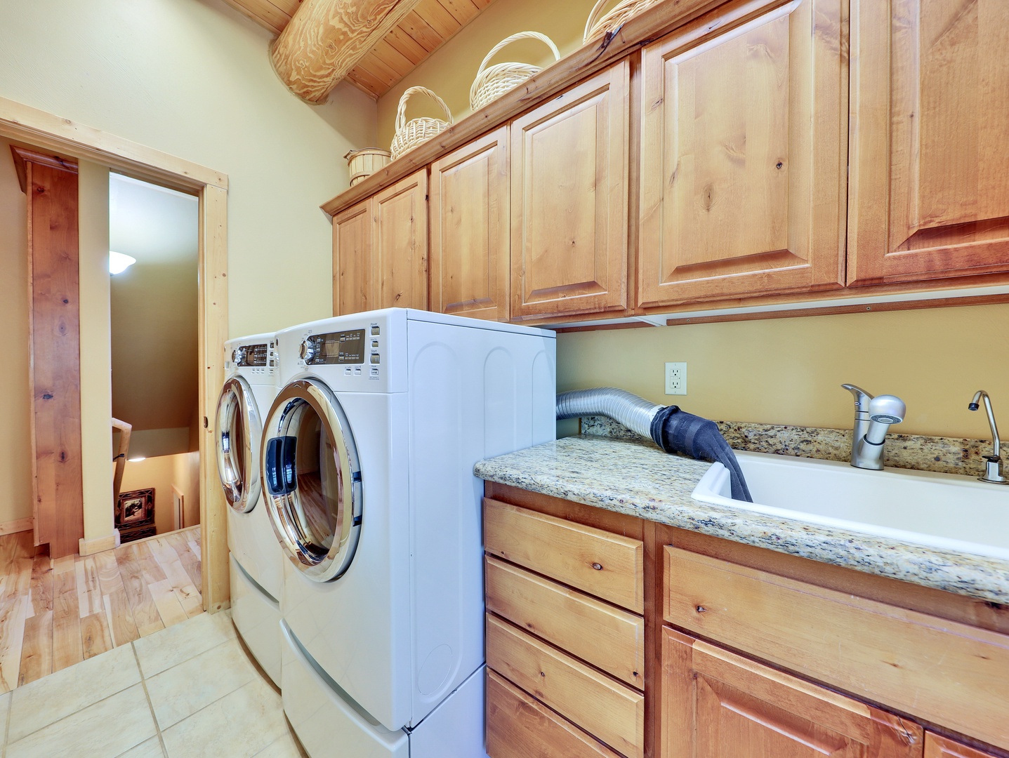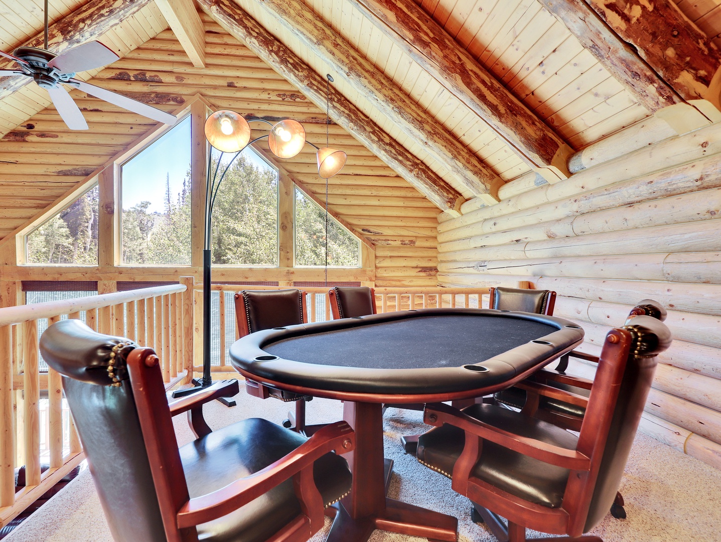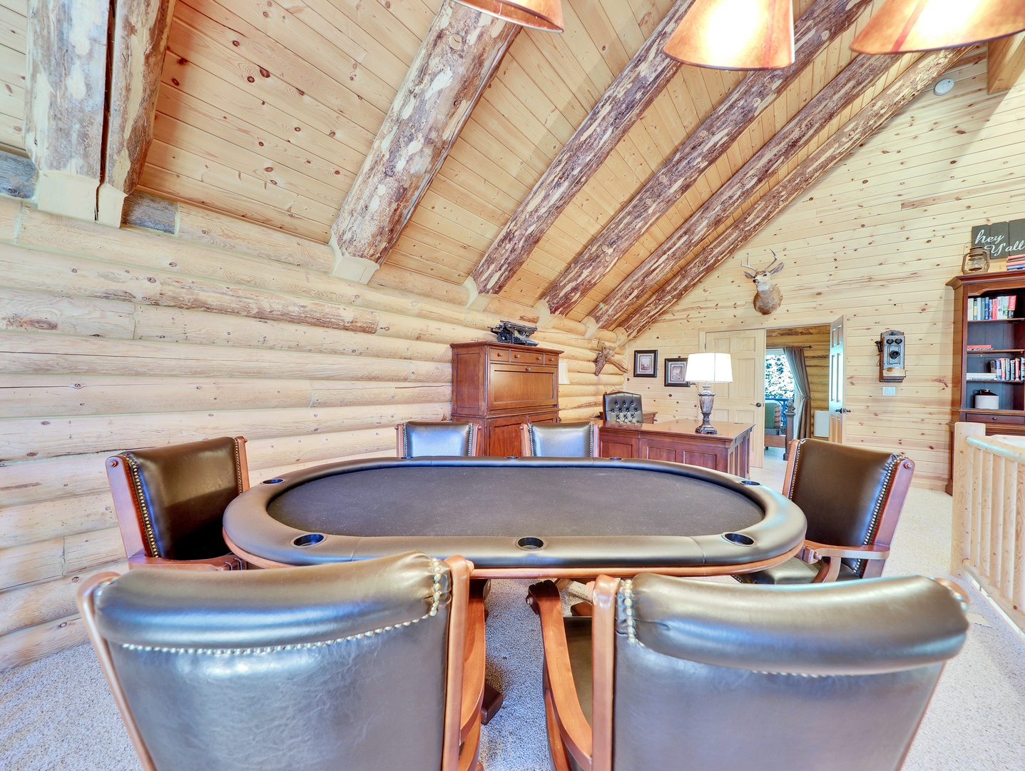 Heavenly Haven is designed with convenience in mind, featuring a mudroom with ample storage for ski gear, a full office setup for remote work, and a poker table for entertaining. The cabin offers parking for up to 6 cars during the summer, along with Wi-Fi and a washer and dryer to ensure a comfortable and stress-free stay.