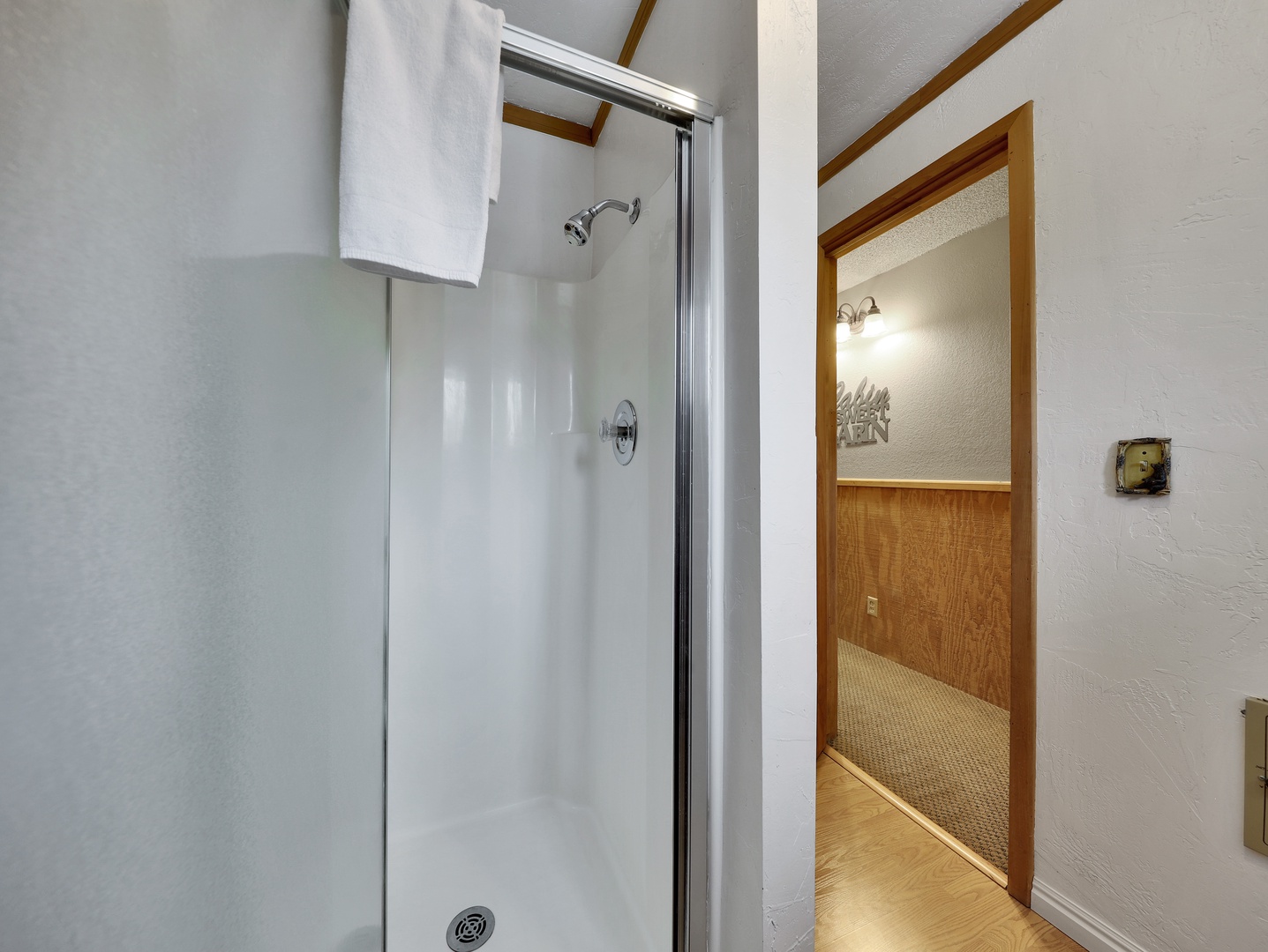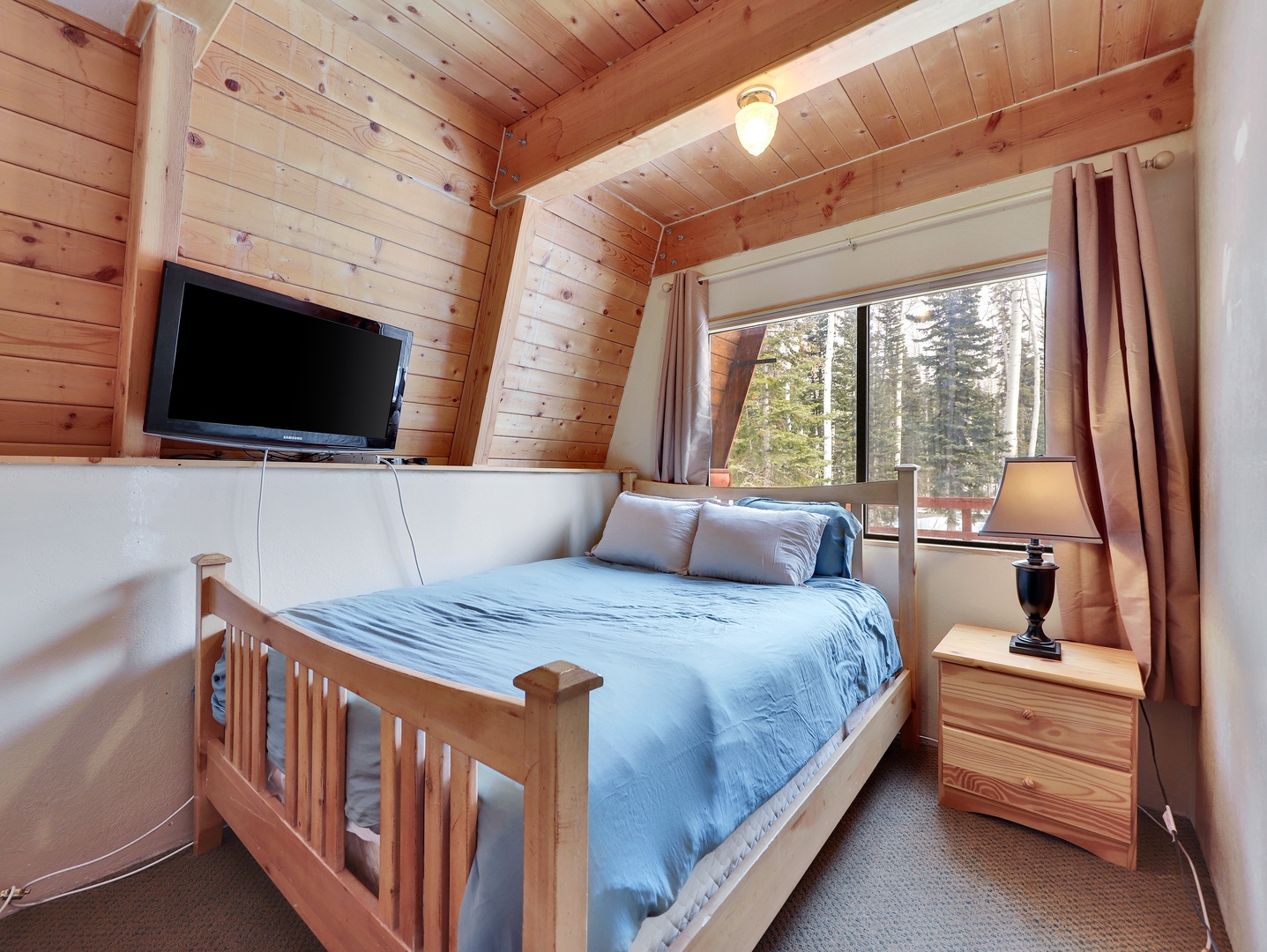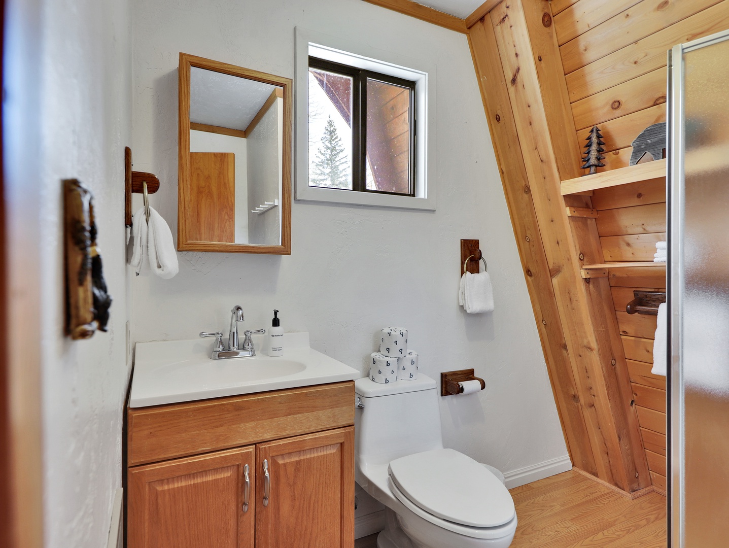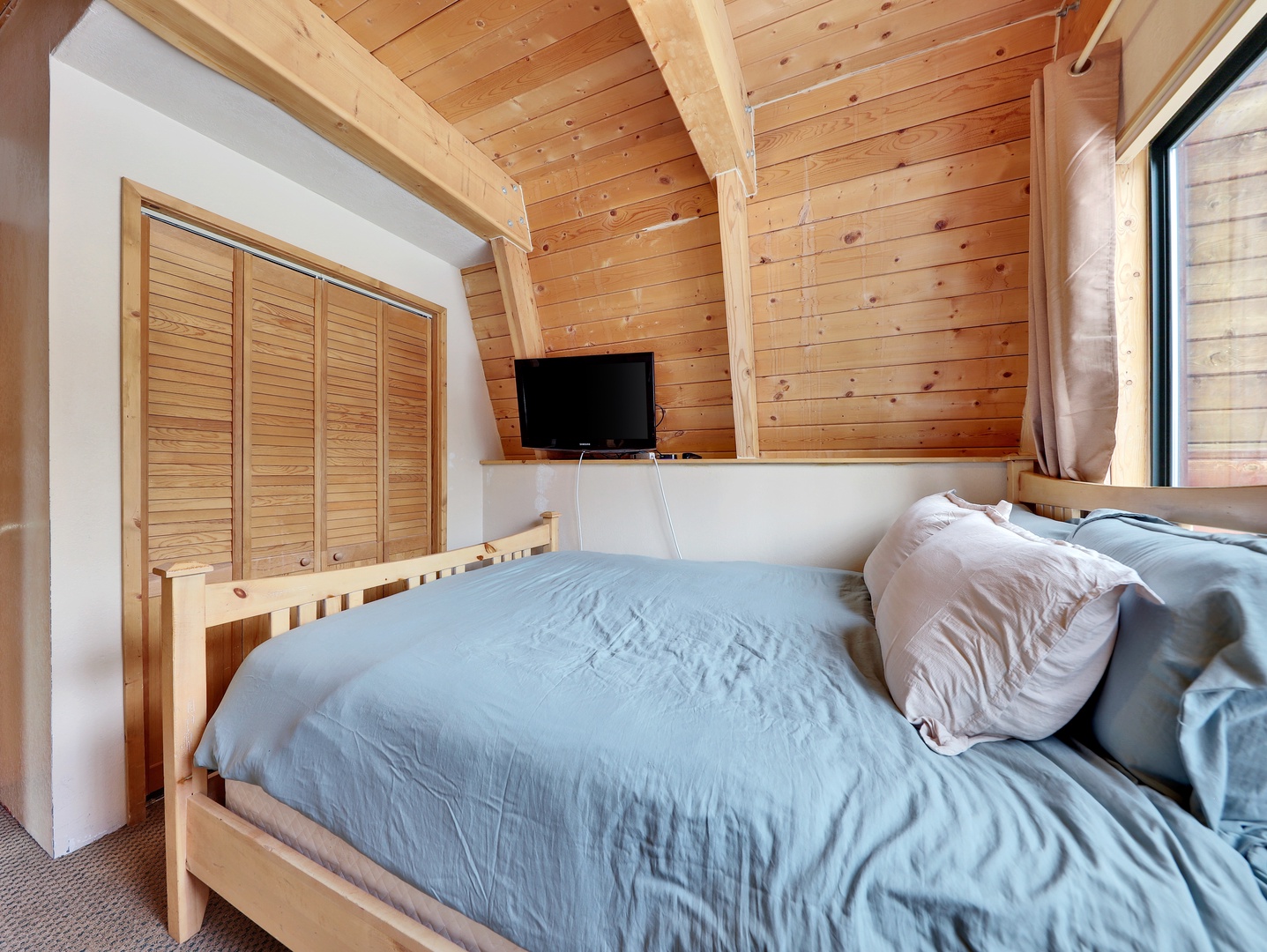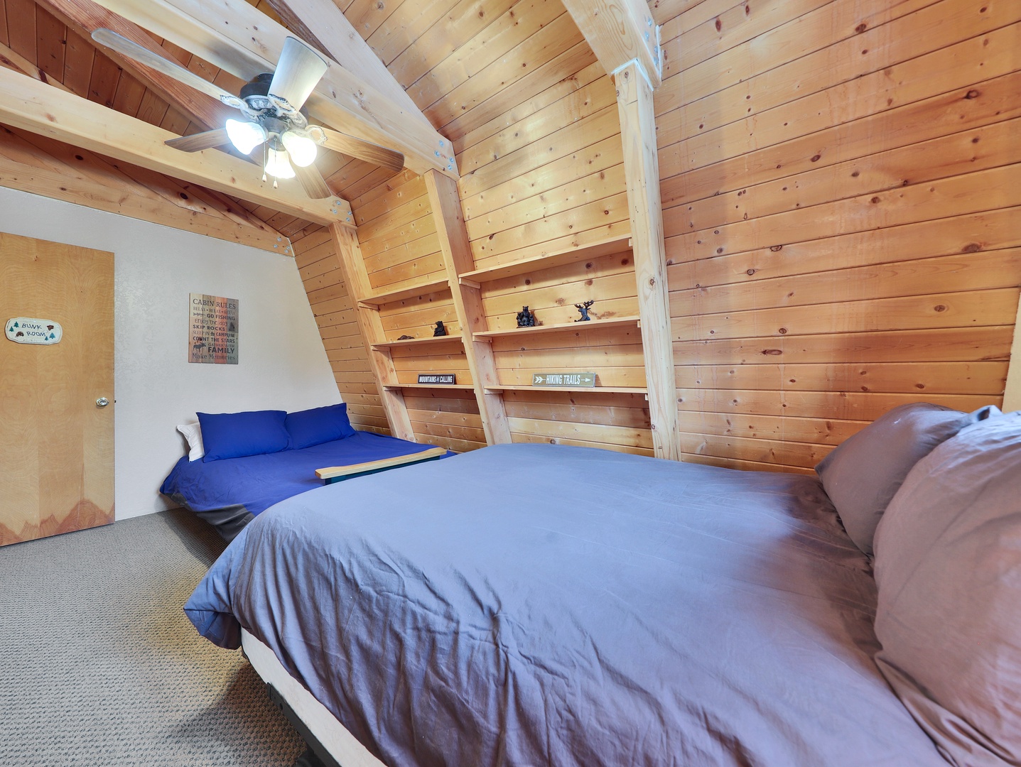 Each of the three bedrooms is designed for ultimate comfort, featuring soft bedding and serene decor. The master bedroom offers direct access to a private walk-out balcony where you can enjoy a cup of coffee while listening to the sounds of nature. Additional walk-out balconies throughout the home provide plenty of space to soak in the crisp mountain air and stunning forest surroundings.
