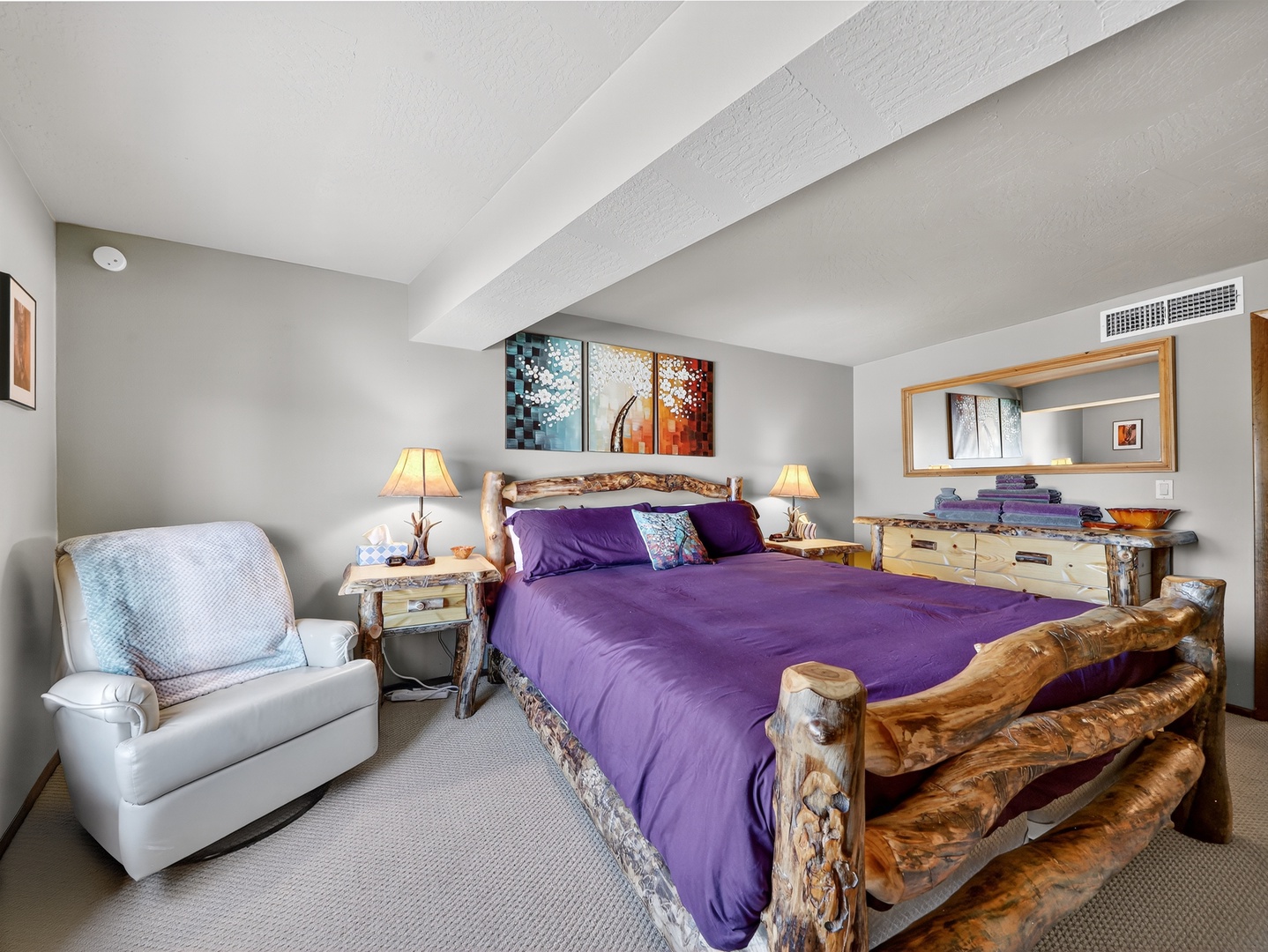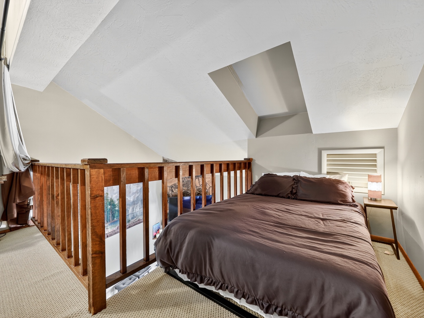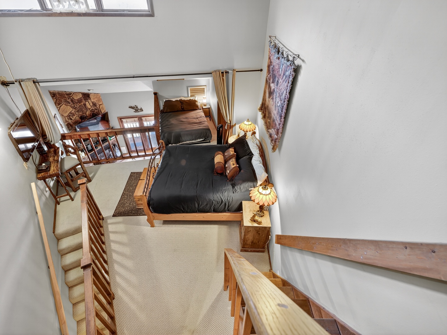 Timbernest 5B Home Utah Brian Head Timbernest 5B Timbernest 5B Relax in your cozy mountain retreat with a crackling stone fireplace, comfortable leather seating, and stunning ski slope views from your private balcony. Drift off to sleep in your cozy mountain retreat, where rustic log furnishings and rich purple linens create the perfect sanctuary. Step onto your private mountain balcony and breathe in the crisp alpine air while soaking up those breathtaking forest views. Your cozy loft bedroom welcomes you with rustic charm and thoughtful details. Game on! Your entertainment setup awaits with an Xbox console and collection of popular games on rustic wooden shelving. Open Gallery Relax in your cozy mountain retreat with a crackling stone fireplace, comfortable leather seating, and stunning ski slope views from your private balcony. Drift off to sleep in your cozy mountain retreat, where rustic log furnishings and rich purple linens create the perfect sanctuary. Step onto your private mountain balcony and breathe in the crisp alpine air while soaking up those breathtaking forest views. Your cozy loft bedroom welcomes you with rustic charm and thoughtful details. Game on! Your entertainment setup awaits with an Xbox console and collection of popular games on rustic wooden shelving. Your fully equipped kitchen awaits with warm wood cabinets and modern appliances, perfect for preparing morning coffee or cooking meals together during your stay. Cozy up in your mountain retreat's living room where the stone fireplace crackles warmly beneath soaring vaulted ceilings. Wake up to breathtaking mountain vistas from your alpine retreat! You'll feel on top of the world surrounded by snow-capped peaks and pristine wilderness. Relax in your spacious living room with plush leather sofas and a cozy loft feel. Unwind by your rustic stone fireplace while watching your favorite shows on the mounted TV. Curl up in your cozy living room where the stone fireplace crackles warmly beneath soaring ceilings. Your fully equipped kitchen awaits with warm oak cabinetry and all the essentials for cooking memorable meals. Gather around this spacious open-concept kitchen and dining area where you can cook together and share meals under the warm glow of skylights. Start your mornings right with your own coffee station featuring both Keurig and drip coffee makers, plus everything you need for that perfect cup in your home away from home. Gather around your welcoming dining table where warm wood meets cozy charm. Unwind in your rustic-chic bedroom where exposed beams meet rich purple linens and handcrafted log furnishings. Drift off in this cozy bedroom featuring a rustic log bed frame and plush purple bedding that invites you to sink in after a day of mountain adventures. Unwind after your adventures in this pristine bathroom featuring a spacious tub-shower combo with glass doors. Your private bathroom features thoughtful touches like magnifying mirrors for getting ready, fluffy towels, and convenient storage shelving to keep your essentials organized during your stay. Drift off to sleep in this cozy loft bedroom where rustic charm meets comfort. Drift off to sleep in your cozy loft bedroom, where warm wood accents and soft linens create the perfect retreat under soaring ceilings that make every morning feel like waking up in a treehouse. Drift off to sleep in your cozy loft bedroom where rustic wood beams and charming railings create an intimate retreat. Drift off to sleep in your cozy loft bedroom, where warm wood furnishings and soft navy bedding create the perfect retreat. Your private loft retreat awaits with rich wood tones, artistic touches, and a cozy elevated bedroom that feels like your own peaceful sanctuary away from home. Step into your spacious living retreat with soaring ceilings and warm wood touches that create an instantly welcoming atmosphere. Step into your beautifully appointed bathroom where warm wood vanity meets elegant wrought iron storage. Refresh and rejuvenate in your private shower space, thoughtfully designed with soft lighting and fresh towels stacked nearby for your convenience. Cozy up for movie night with your extensive DVD collection and flat-screen TV perfectly positioned for relaxing evenings in your home away from home. Your cozy sleeping nook features a sturdy bunk bed with warm brown linens, perfect for families or groups. Your cozy bunk bed awaits, perfect for families or groups! Step onto your private balcony and fire up the Weber grill while soaking in breathtaking mountain views. Your unique dome-shaped retreat awaits in the heart of pristine wilderness. Areal view of Timbernest Your mountain retreat awaits with its distinctive curved architecture and warm wood tones, surrounded by towering evergreens under endless blue skies. Exterior building view of Timbernest Your mountain retreat awaits in this peaceful forest setting, where towering aspens and evergreens frame your home away from home under endless blue skies. Step into your cozy mountain retreat through these charming wooden doors. Step into your cozy mountain retreat where rustic stone walls and warm wood details create the perfect lodge atmosphere. Feel the rush of fresh powder beneath your skis as you carve through pristine mountain terrain, surrounded by snow-laden evergreens and breathtaking alpine vistas that stretch endlessly before you. Your mountain adventure awaits with sweeping views of pristine ski slopes and forested peaks stretching endlessly before you. Feel the crisp alpine air as you explore this winter paradise. Wake up to breathtaking mountain views from your window, where snow-capped peaks and illuminated ski slopes create a magical winter wonderland just outside your door. Experience the thrill as you glide up the mountain on pristine chairlifts, surrounded by snow-dusted trees creating a magical winter wonderland for your skiing adventure. Your alpine adventure awaits! Glide up pristine powder-covered