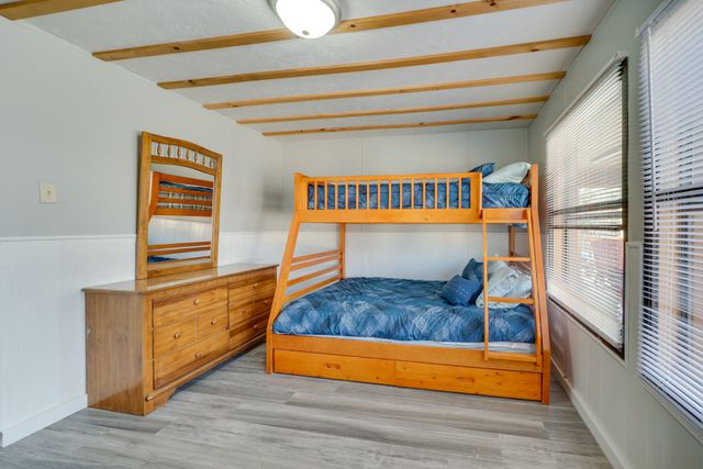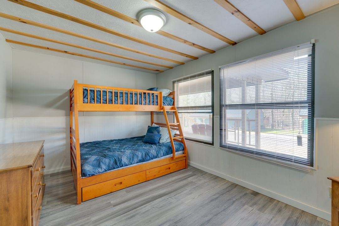Bedrooms: King bedroom, queen bedroom, and bunk room (twin over full)