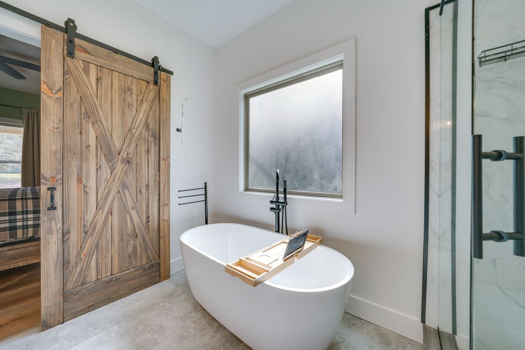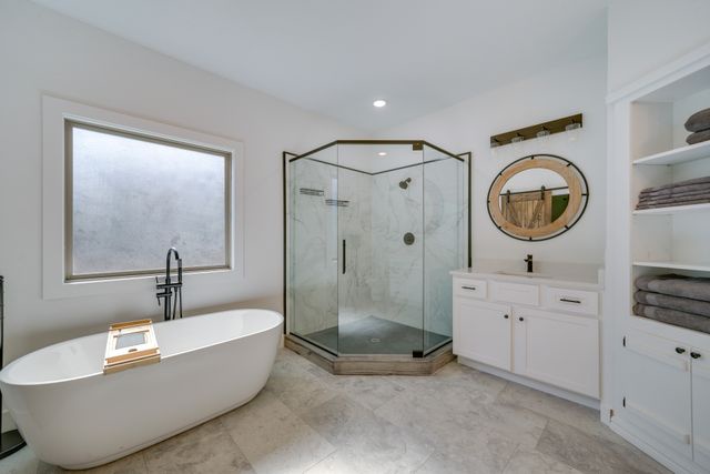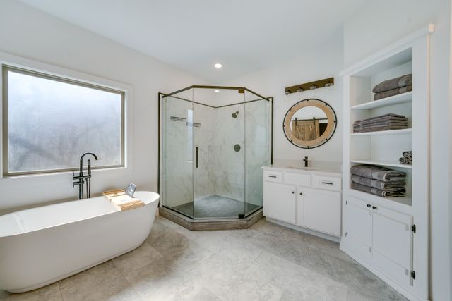 Relaxing garden tub and walk-in shower for a spa-like retreat