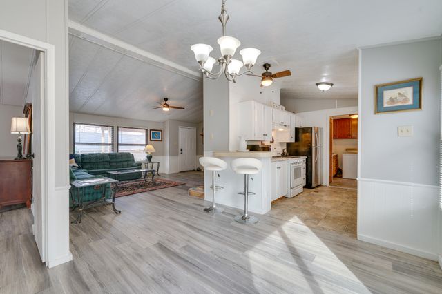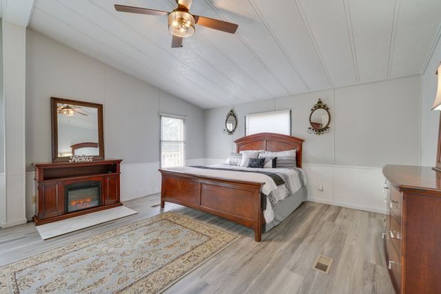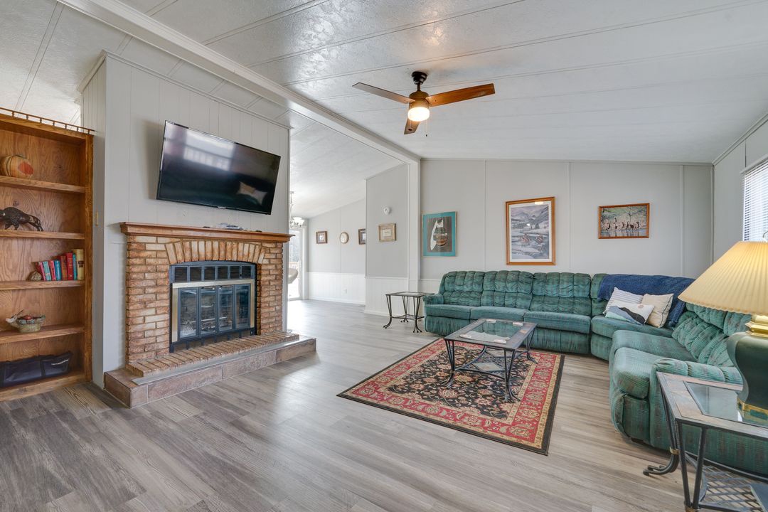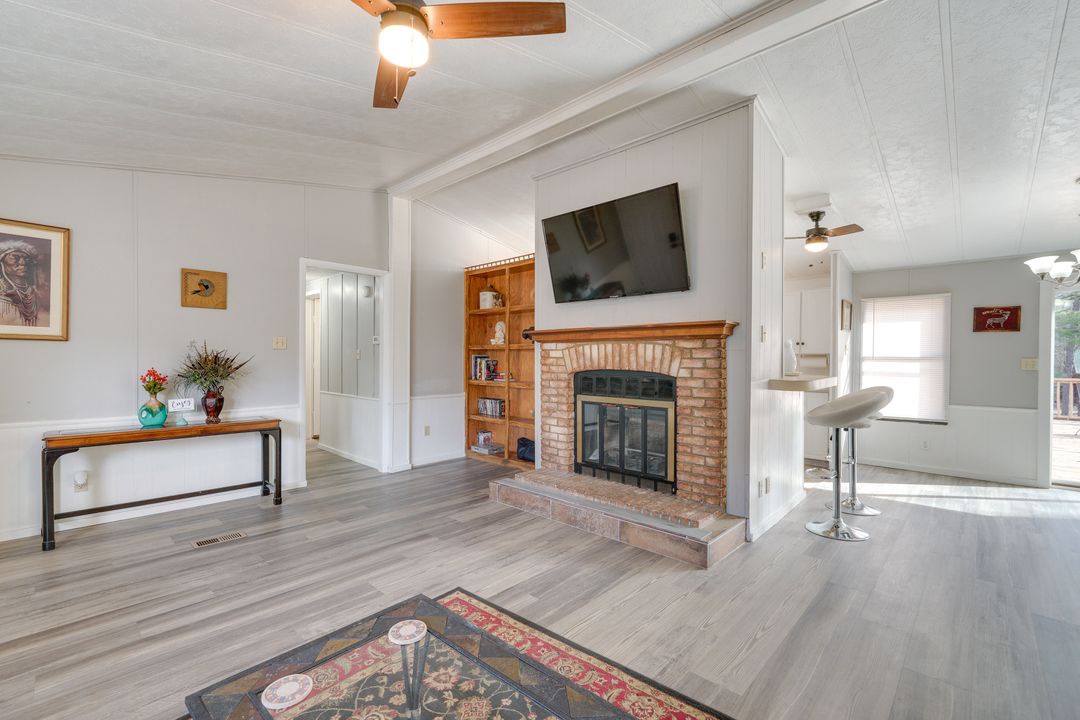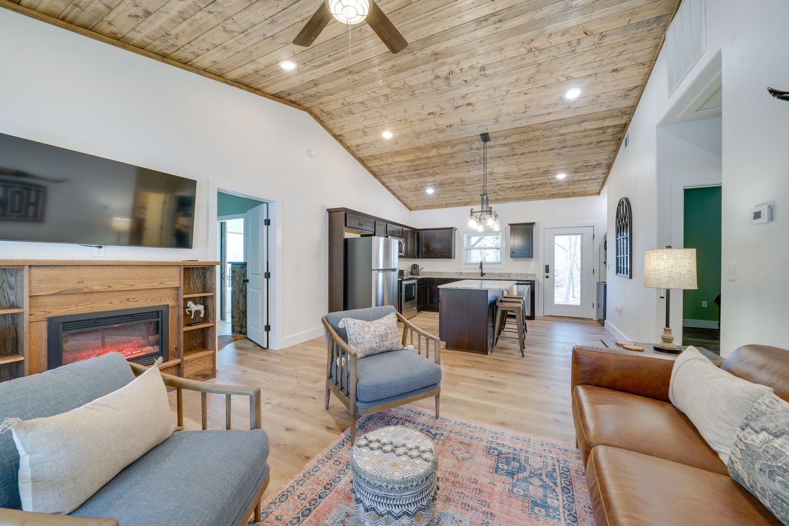 Spacious open floor plan with modern Western decor and an electric fireplace