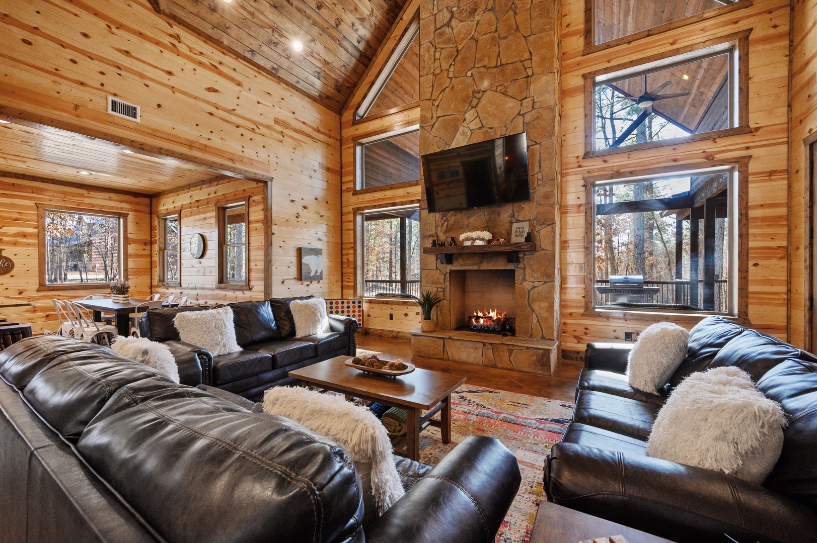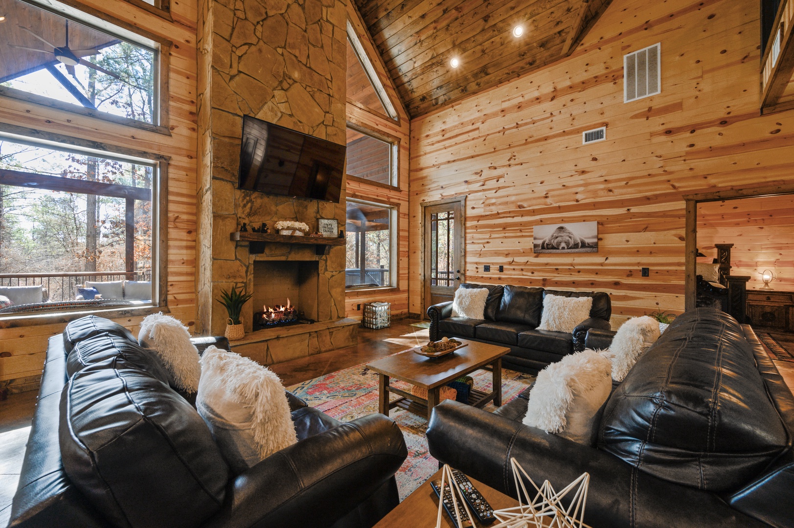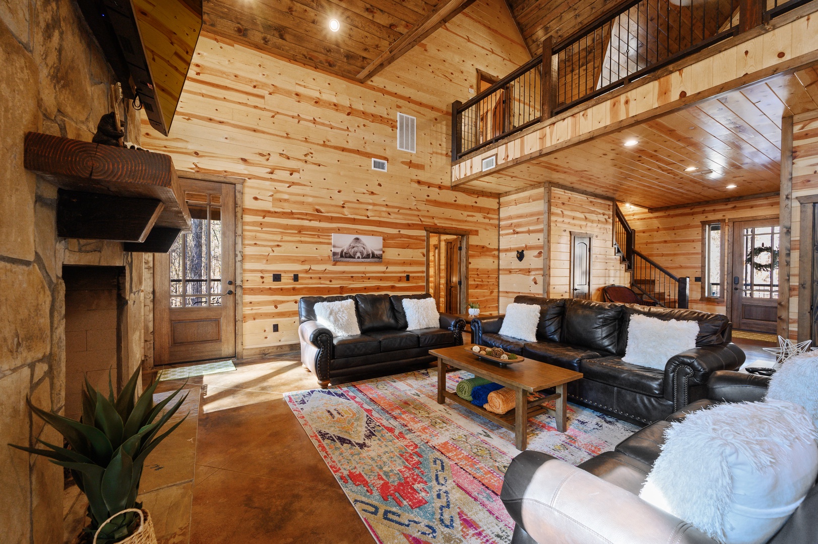 Bear Hill Lodge Bear Hill Lodge Open Gallery Gallery View Broken Bow, OK 4 Bedrooms 4 full, 1 half Baths 12 Guests 2702 sq. ft. Pets OK Description Rooms Amenities Reviews Calendar Location Welcome to Bear Hill Lodge – Your Perfect Hochatown Getaway. Tucked away in the beautiful pines on the south side of Hochatown, Bear Hill Lodge is the ultimate retreat for families, friends, and adventure seekers looking to unwind in comfort while staying close to all the action. This spacious 4-bedroom, 4.5-bathroom cabin comfortably sleeps up to 12 guests and offers the perfect mix of rustic charm and modern luxury — complete with pet-friendly accommodations, so your furry friends don’t have to miss out on the fun (see the end of this description for additional add-ons regarding pets and other services). From the moment you arrive, you’ll be greeted by the inviting warmth of this thoughtfully designed cabin. Inside, the open-concept layout and tall ceilings create a bright, airy space perfect for gathering and making memories. The fully stocked kitchen boasts all major appliances and a large island with ample prep space and seating — ideal for group meals, morning coffee chats, or happy hour before heading out to explore. Downstairs, you’ll find two luxurious king suites, each with a custom tile shower and plush bedding to help you relax and recharge after a day outdoors. Upstairs, a third king suite offers a quiet sanctuary, while the bunk room — complete with a full-over-twin bunk bed, additional twin, a futon, and an en suite bathroom — is perfect for kids or a family-within-the-group setup. Whether you’re traveling with multiple families or a big group of friends, everyone will have plenty of space to unwind. The loft game area is a guest favorite — featuring a retro-style arcade, foosball table, and TV lounge area that’s great for game nights or rainy-day hangouts. Step outside and you’ll find even more ways to relax and reconnect. The outdoor entertainment space is set up for both fun and leisure — fire up the propane grill (propane provided), gather around the fire pit for evening s’mores and storytelling, or simply kick back under the stars with your favorite drink and good company. When it’s time to explore, you’ll love Bear Hill Lodge’s prime location — just minutes from Hochatown’s most popular attractions. Test your luck at the brand-new Choctaw Landing Casino & Resort (only 7 minutes away), spend the day boating or fishing at Broken Bow Lake (11 minutes), or hike through the scenic trails of Beavers Bend State Park (14 minutes). Craving local flavor? Grab pizza at Grateful Head, indulge in upscale dining at Pressa Italia, or fuel up with a craft coffee from Local Habit Co., all within a quick 5–10 minute drive. Other amenities include a private washer and dryer, high-speed Wi-Fi, flat-screen TVs, and everything you need to feel right at home — whether you’re here for a weekend getaway or a longer stay. GUEST NOTES AND ADDED SERVICES: P E T S : *There is a flat fee of $50/night if you are bringing pet(s). Pet limit is 2. Please reach out to us if you have a special request. F I R E W O O D : You can opt for a starter pack of firewood to be delivered to your cabin for your stay. 6-8 pieces (depending on size) for $20. Fee is collected after the reservation confirmation has been sent. E A R L Y / L A T E: We may be able to offer early check-in or late check-out (2 additional hours) for $50 unless there is another reservation within 24 hours of your reservation. This must be requested and approved by your SkyRun host! We compensate our team additional funds for accommodating guest requests and coordinating their daily schedules and/or working after hours to help make this happen for our valued guests. Fee is collected after the reservation confirmation has been sent. W I F I AVAILABILITY: Wi-Fi is provided as a complimentary convenience for our guest; however, it is not considered an essential part of the rental. Refunds will not be issued for Wi-Fi-related issues including connectivity, speed, local outages, or accessibility. What We Provide To help you settle in comfortably, we provide a starter supply of the following essentials: Kitchen • Paper towels • Garbage bags • Kitchen dish soap • Hand soap • Dishwashing pods or detergent • Dish sponge Drinks • Coffee • Creamer • Coffee filters Bathrooms • Shampoo • Conditioner • Body wash • Hand soap • Toilet paper Laundry • Laundry detergent Please note: These items are provided as a starter supply to get you through the first part of your stay. Guests may need to provide or purchase additional toiletries and supplies as needed. Rooms King Room #1 1 King King Bedroom #2 1 King King Bedroom #3 1 King Bunk Room 1 Double 2 Twin 1 Futon Amenities Location & Attractions Marina Zoo Family Themed Health Beauty Spa Rural Pool & Spa Hot Tub Hot Tub - Private Sports, Leisure & Adventure Antiquing Horseback Riding Jet Skiing Paddle Boating Water Skiing Water Tubing Bird Watching Boating Eco Tourism Fishing Fishing - Bay Fishing - Fly Fishing - Freshwater Gambling Golf Hiking Mountain Biking Shopping Swimming Wildlife Viewing Bathroom Body Soap Conditioner Hot Water Shampoo Shower Gel Bathtub Bedroom & Laundry Bed Linens Dryer - Private Towels Washer - Private Cleanliness & Safety Carbon Monoxide Detector Common Surfaces Disinfected Disinfectant Used While Cleaning Outdoor Lighting Self Check-In & Check-Out Smoke Detector Entertainment Smart TV Foosball Shuffleboard Internet & Office Laptop Friendly Workspace Wifi - Free Wifi - Speed 500mbps Kitchen & Dining Baking Sheet Coffee Coffee Maker Dining Area or Room Dining table Dishes & Silverware Dishwasher Freezer Kitchen Microwave Oven Refrigerator Stove Other Property Amenities Air Conditioning Heating Living Room Private Entrance Ceiling Fan Fireplace - Gas Pets - Allowed Outdoor BBQ Grill - Private Fire Pit Outdoor Seating & Furnitu