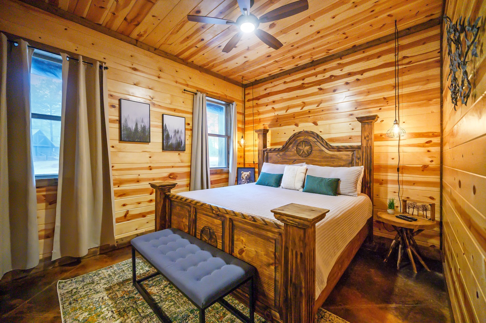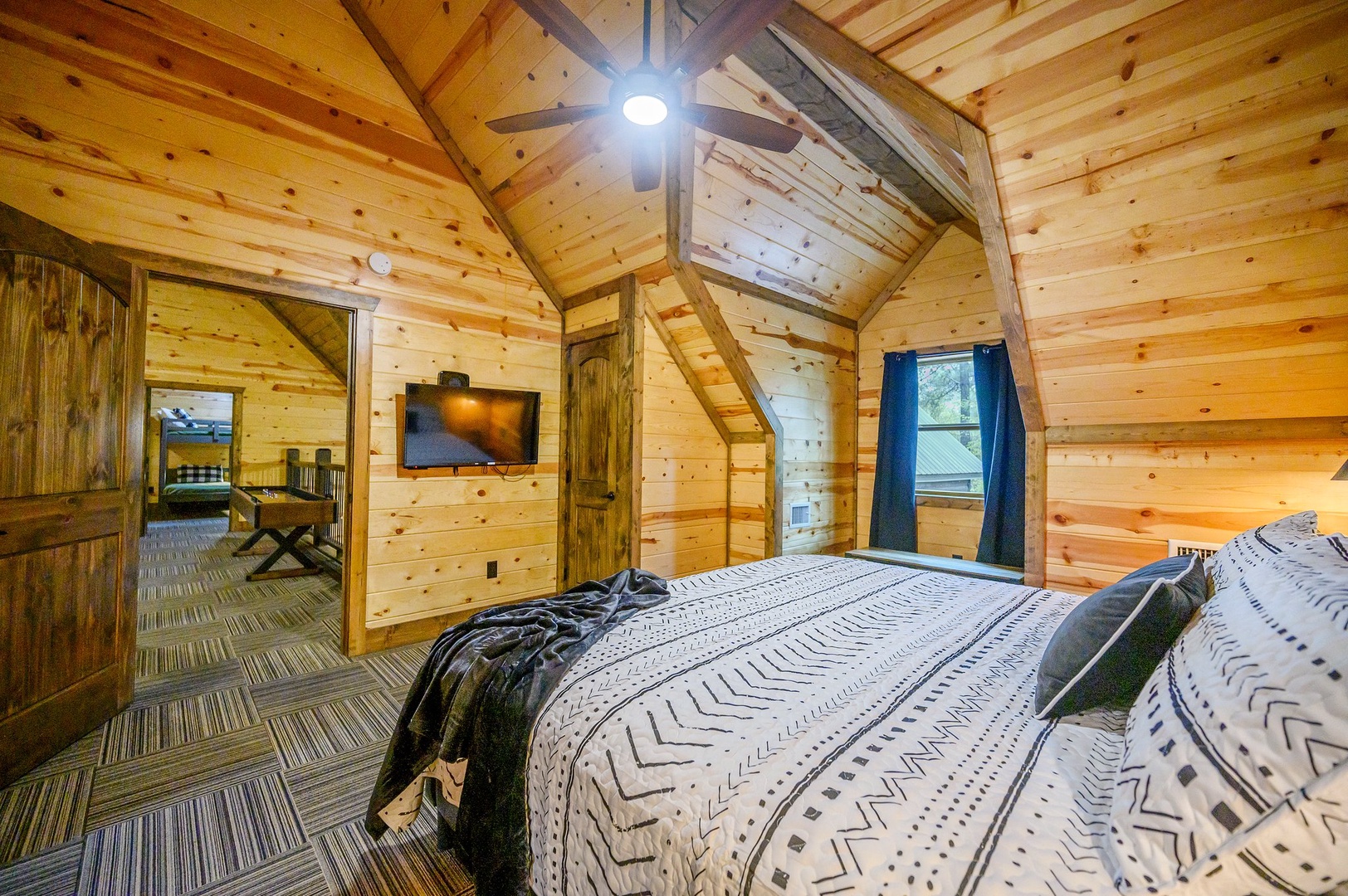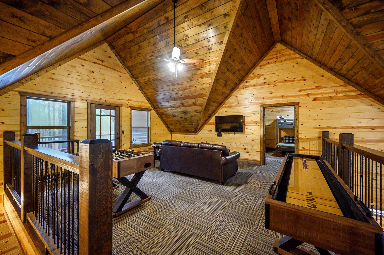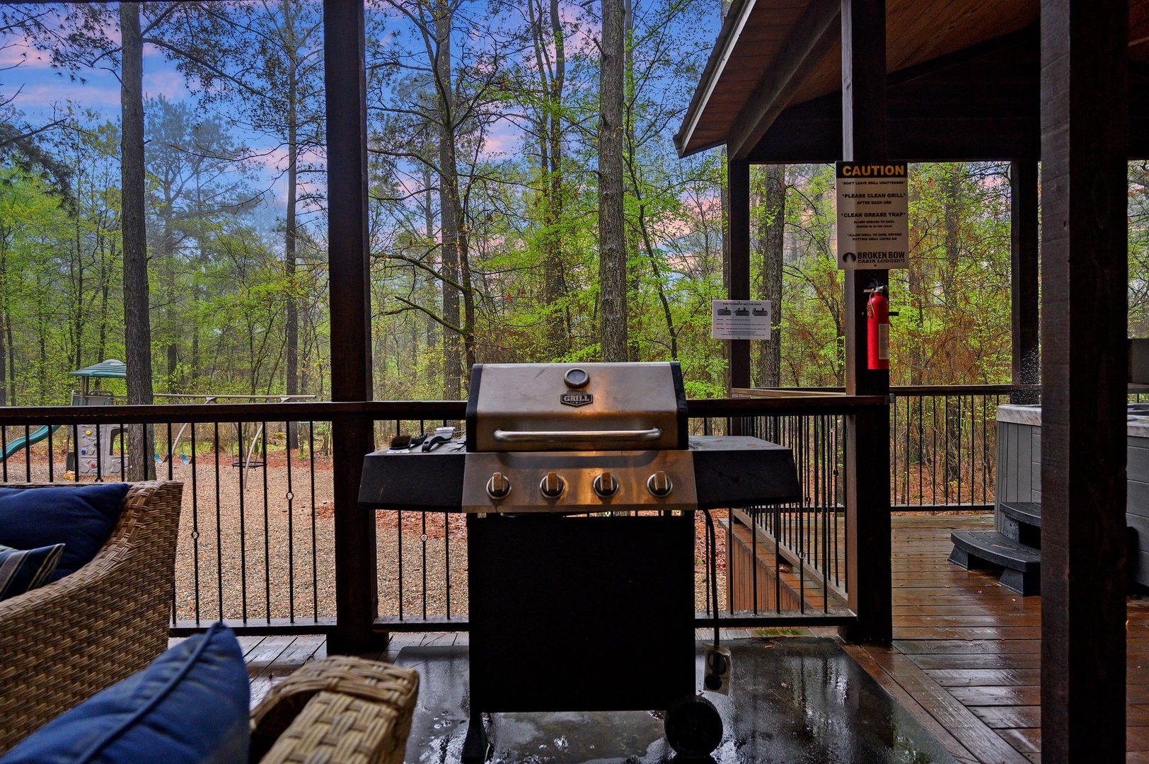 Bear Hill Lodge Bear Hill Lodge Open Gallery Gallery View Broken Bow, OK 4 Bedrooms 4 full, 1 half Baths 12 Guests 2702 sq. ft. Pets OK Description Rooms Amenities Reviews Calendar Location Welcome to Bear Hill Lodge – Your Perfect Hochatown Getaway. Tucked away in the beautiful pines on the south side of Hochatown, Bear Hill Lodge is the ultimate retreat for families, friends, and adventure seekers looking to unwind in comfort while staying close to all the action. This spacious 4-bedroom, 4.5-bathroom cabin comfortably sleeps up to 12 guests and offers the perfect mix of rustic charm and modern luxury — complete with pet-friendly accommodations, so your furry friends don’t have to miss out on the fun (see the end of this description for additional add-ons regarding pets and other services). From the moment you arrive, you’ll be greeted by the inviting warmth of this thoughtfully designed cabin. Inside, the open-concept layout and tall ceilings create a bright, airy space perfect for gathering and making memories. The fully stocked kitchen boasts all major appliances and a large island with ample prep space and seating — ideal for group meals, morning coffee chats, or happy hour before heading out to explore. Downstairs, you’ll find two luxurious king suites, each with a custom tile shower and plush bedding to help you relax and recharge after a day outdoors. Upstairs, a third king suite offers a quiet sanctuary, while the bunk room — complete with a full-over-twin bunk bed, additional twin, a futon, and an en suite bathroom — is perfect for kids or a family-within-the-group setup. Whether you’re traveling with multiple families or a big group of friends, everyone will have plenty of space to unwind. The loft game area is a guest favorite — featuring a retro-style arcade, foosball table, and TV lounge area that’s great for game nights or rainy-day hangouts. Step outside and you’ll find even more ways to relax and reconnect. The outdoor entertainment space is set up for both fun and leisure — fire up the propane grill (propane provided), gather around the fire pit for evening s’mores and storytelling, or simply kick back under the stars with your favorite drink and good company. When it’s time to explore, you’ll love Bear Hill Lodge’s prime location — just minutes from Hochatown’s most popular attractions. Test your luck at the brand-new Choctaw Landing Casino & Resort (only 7 minutes away), spend the day boating or fishing at Broken Bow Lake (11 minutes), or hike through the scenic trails of Beavers Bend State Park (14 minutes). Craving local flavor? Grab pizza at Grateful Head, indulge in upscale dining at Pressa Italia, or fuel up with a craft coffee from Local Habit Co., all within a quick 5–10 minute drive. Other amenities include a private washer and dryer, high-speed Wi-Fi, flat-screen TVs, and everything you need to feel right at home — whether you’re here for a weekend getaway or a longer stay. GUEST NOTES AND ADDED SERVICES: P E T S : *There is a flat fee of $50/night if you are bringing pet(s). Pet limit is 2. Please reach out to us if you have a special request. F I R E W O O D : You can opt for a starter pack of firewood to be delivered to your cabin for your stay. 6-8 pieces (depending on size) for $20. Fee is collected after the reservation confirmation has been sent. E A R L Y / L A T E: We may be able to offer early check-in or late check-out (2 additional hours) for $50 unless there is another reservation within 24 hours of your reservation. This must be requested and approved by your SkyRun host! We compensate our team additional funds for accommodating guest requests and coordinating their daily schedules and/or working after hours to help make this happen for our valued guests. Fee is collected after the reservation confirmation has been sent. W I F I AVAILABILITY: Wi-Fi is provided as a complimentary convenience for our guest; however, it is not considered an essential part of the rental. Refunds will not be issued for Wi-Fi-related issues including connectivity, speed, local outages, or accessibility. What We Provide To help you settle in comfortably, we provide a starter supply of the following essentials: Kitchen • Paper towels • Garbage bags • Kitchen dish soap • Hand soap • Dishwashing pods or detergent • Dish sponge Drinks • Coffee • Creamer • Coffee filters Bathrooms • Shampoo • Conditioner • Body wash • Hand soap • Toilet paper Laundry • Laundry detergent Please note: These items are provided as a starter supply to get you through the first part of your stay. Guests may need to provide or purchase additional toiletries and supplies as needed. Rooms King Room #1 1 King King Bedroom #2 1 King King Bedroom #3 1 King Bunk Room 1 Double 2 Twin 1 Futon Amenities Location & Attractions Marina Zoo Family Themed Health Beauty Spa Rural Pool & Spa Hot Tub Hot Tub - Private Sports, Leisure & Adventure Antiquing Horseback Riding Jet Skiing Paddle Boating Water Skiing Water Tubing Bird Watching Boating Eco Tourism Fishing Fishing - Bay Fishing - Fly Fishing - Freshwater Gambling Golf Hiking Mountain Biking Shopping Swimming Wildlife Viewing Bathroom Body Soap Conditioner Hot Water Shampoo Shower Gel Bathtub Bedroom & Laundry Bed Linens Dryer - Private Towels Washer - Private Cleanliness & Safety Carbon Monoxide Detector Common Surfaces Disinfected Disinfectant Used While Cleaning Outdoor Lighting Self Check-In & Check-Out Smoke Detector Entertainment Smart TV Foosball Shuffleboard Internet & Office Laptop Friendly Workspace Wifi - Free Wifi - Speed 500mbps Kitchen & Dining Baking Sheet Coffee Coffee Maker Dining Area or Room Dining table Dishes & Silverware Dishwasher Freezer Kitchen Microwave Oven Refrigerator Stove Other Property Amenities Air Conditioning Heating Living Room Private Entrance Ceiling Fan Fireplace - Gas Pets - Allowed Outdoor BBQ Grill - Private Fire Pit Outdoor Seating & Furnitu