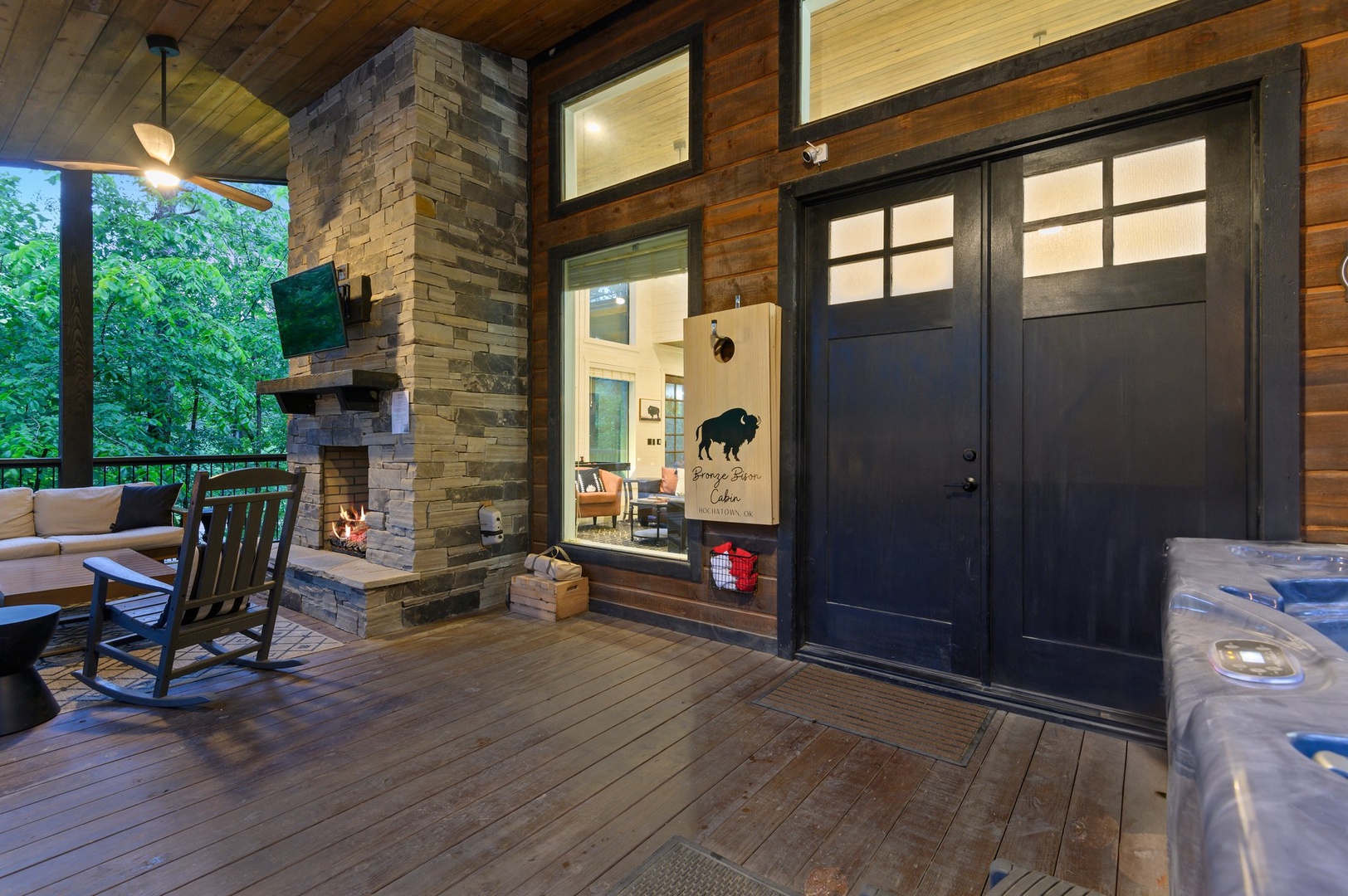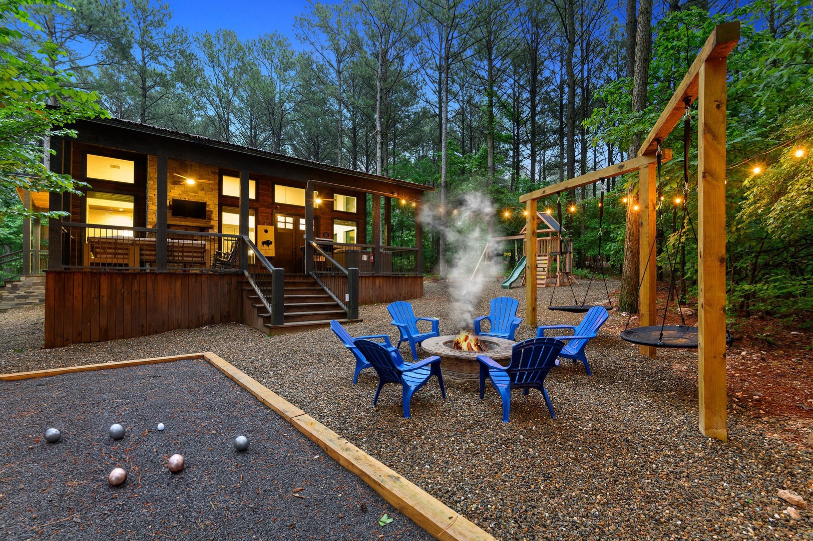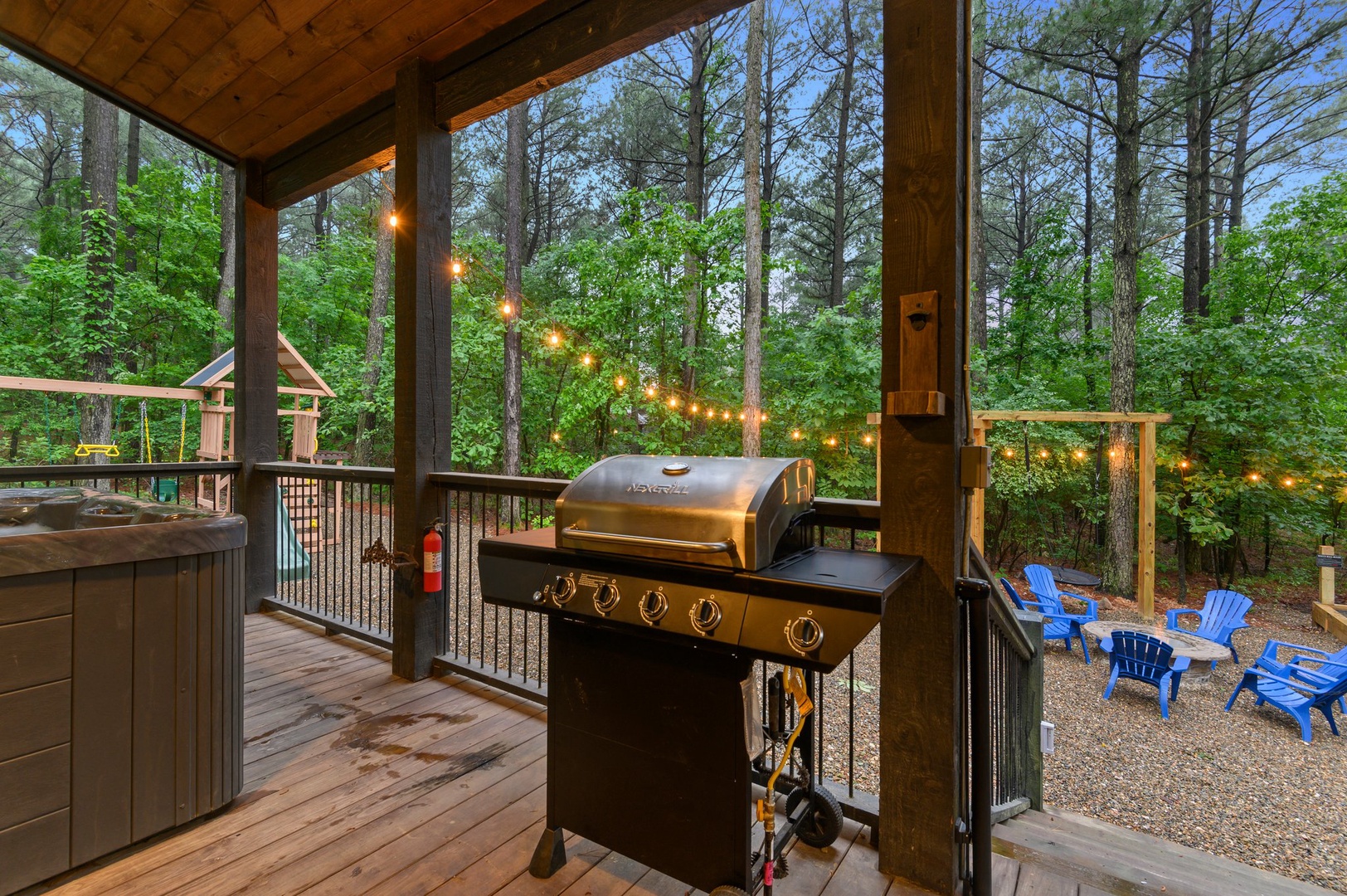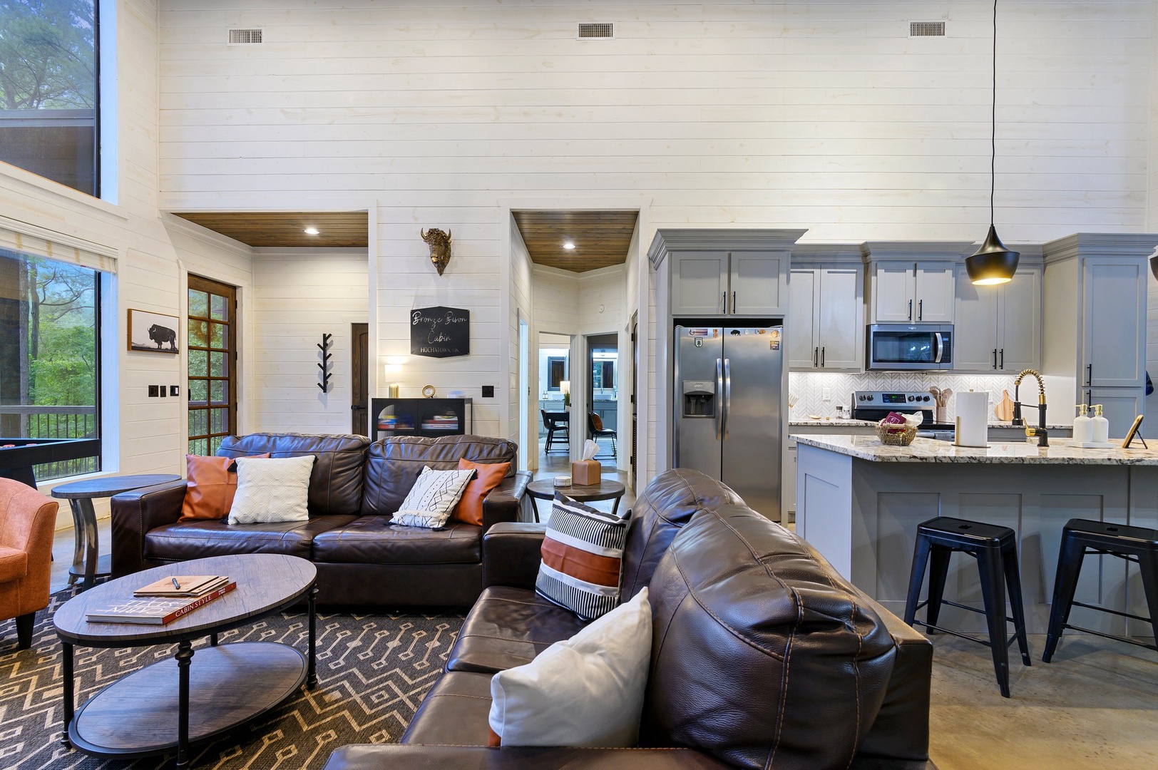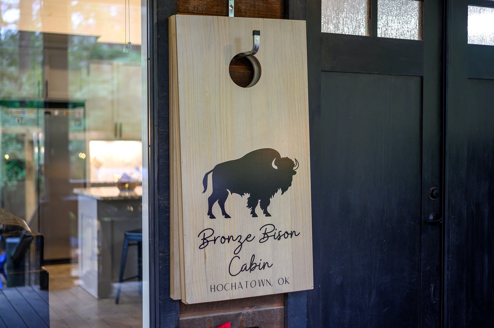 Bronze Bison Bronze Bison Come ready to enjoy all this cabin ahs to offer. Surrounded by tall trees, a fire pit with adirondack chairs, swings for the kids, and a bocce ball court are visible. Strings of lights hang above. Aerial view of the Bronze Bison cabin nestled among tall pine trees in a forest. Enjoy sitting and visiting on the outdoor sectional, take in a move, or just enjoy the tranquility the beautiful forest provides. A modern bathroom with patterned tile shower, white shiplap walls, granite countertop with a vessel sink, large mirror, and wooden ceiling. Towels and toiletries are neatly arranged. A spacious, modern living room with a high wooden ceiling, a stone fireplace, large windows, and a mix of leather and fabric furniture. You can also try your luck on the shuffleboard game pictured on the right. Open Gallery Come ready to enjoy all this cabin ahs to offer. Surrounded by tall trees, a fire pit with adirondack chairs, swings for the kids, and a bocce ball court are visible. Strings of lights hang above. Aerial view of the Bronze Bison cabin nestled among tall pine trees in a forest. Enjoy sitting and visiting on the outdoor sectional, take in a move, or just enjoy the tranquility the beautiful forest provides. A modern bathroom with patterned tile shower, white shiplap walls, granite countertop with a vessel sink, large mirror, and wooden ceiling. Towels and toiletries are neatly arranged. A spacious, modern living room with a high wooden ceiling, a stone fireplace, large windows, and a mix of leather and fabric furniture. You can also try your luck on the shuffleboard game pictured on the right. A modern living room features a stone fireplace, mounted 55" TV, shuffleboard table, and large windows offering a view of greenery outside. A contemporary living room with large windows, brown leather sectional sofa, patterned rug, two armchairs, and minimalist decor. Walls are white wood panels and ceiling has wooden accents. Spacious living room with large windows, wooden ceiling, and modern furnishings including brown sofas, orange chairs, a round coffee table, and a fireplace. The open kitchen and dining area are visible. A bedroom with a large bed, green and white rug, and a view into a bathroom. The walls are light-colored wooden panels, and there are large windows with dark curtains. Modern bathroom with a marble countertop, vessel sink. Features a walk-in shower with white subway tiles, wooden ceiling, towel racks, framed art, and a window providing natural light. A modern bedroom with a black metal bed frame, gray bedding, nightstands with lamps, a desk with a lamp and plant, dark blue curtains, and an attached bathroom. Aerial view of the Bronze Bison cabin surrounded by dense, foggy pine forest. The cabin is partially hidden by the tall trees. Aerial view of the Bronze Bison cabin. Front view of the Bronze Bison cabin nestled in the forest. Outdoor firepit with blue adironack chairs, string lights overhead, a bocce ball court, a hammock, and a wooden swing. We help to keep your opponents honest with a sign displaying the rules for playing bocce ball. An outdoor area with string lights, a fire pit with four blue chairs, a bocce ball court, and a hammock, set in a wooded environment during dusk. Come ready to enjoy all this cabin ahs to offer. Surrounded by tall trees, a fire pit with adirondack chairs, swings for the kids, and a bocce ball court are visible. Strings of lights hang above. The kids will enjoy the fact that we didn't forget them as they experience the on site playgound equipment. The back view of the cabin at dusk with the string lights on. Relax in the evenings in the hot tub under the string lights and the beautiful Oklahoma sky. Cook your favorite meals on the outdoor direct plummed gas grill. The outdoor porch features a TV, gas fireplace and cornhole game. Cornhole game. Enjoy sitting and visiting on the outdoor sectional, take in a move, or just enjoy the tranquility the beautiful forest provides. A cozy patio with a sectional sofa, wooden coffee table, and rocking chair, overlooking a lush forest. A cozy living room with a high wooden ceiling, stone fireplace, and large windows. Leather sofas and armchairs surround a coffee table. A kitchen and dining area are visible in the background. A modern living room features a stone fireplace, mounted 55" TV, shuffleboard table, and large windows offering a view of greenery outside. A modern living room with large windows, a stone fireplace, a wall-mounted 55" TV, two armchairs, a dark leather sofa, and a round coffee table on a patterned rug. Trees are visible outside. A modern living room with large windows, a sectional leather sofa, two armchairs, a round coffee table, and a patterned rug. The dining area with the kitchen in the background. The dining area that seats six surrounded by large windows to let in the beauty of the surrounding forest. A modern kitchen and dining area with large windows, featuring an island with bar stools, stainless steel appliances, white cabinets, and the dining area to the right. Coffee station. This picture shows the dining area to the left and the kitchen to the right with the living room in the background. This modern kitchen comes complete with a refrigerator, oven/stove, microwave, dishwasher, and coffee maker. Farmhouse sink with the living room in the background. The Bronze Bison includes several special touches. A modern open-concept living room and kitchen with white walls, brown leather furniture, black bar stools, and stainless steel appliances. The room features a high ceiling and large windows. A corner view reveals a living area with a stone fireplace and a wall-mounted TV, adjacent to a small bathroom with a white sink and a wooden-framed mirror on the right. The cabin has frontload stackable washer and dryer units. A bedroom with a large bed, green and white rug, and a view into a bathroom. The walls are light-colored wooden panels, and there are large win