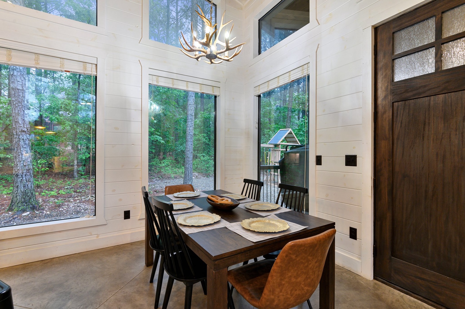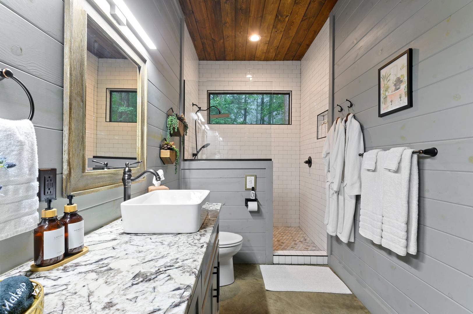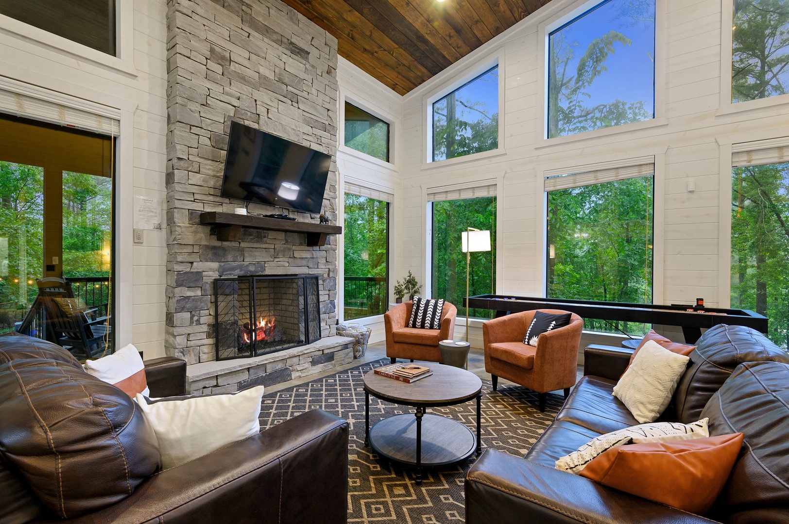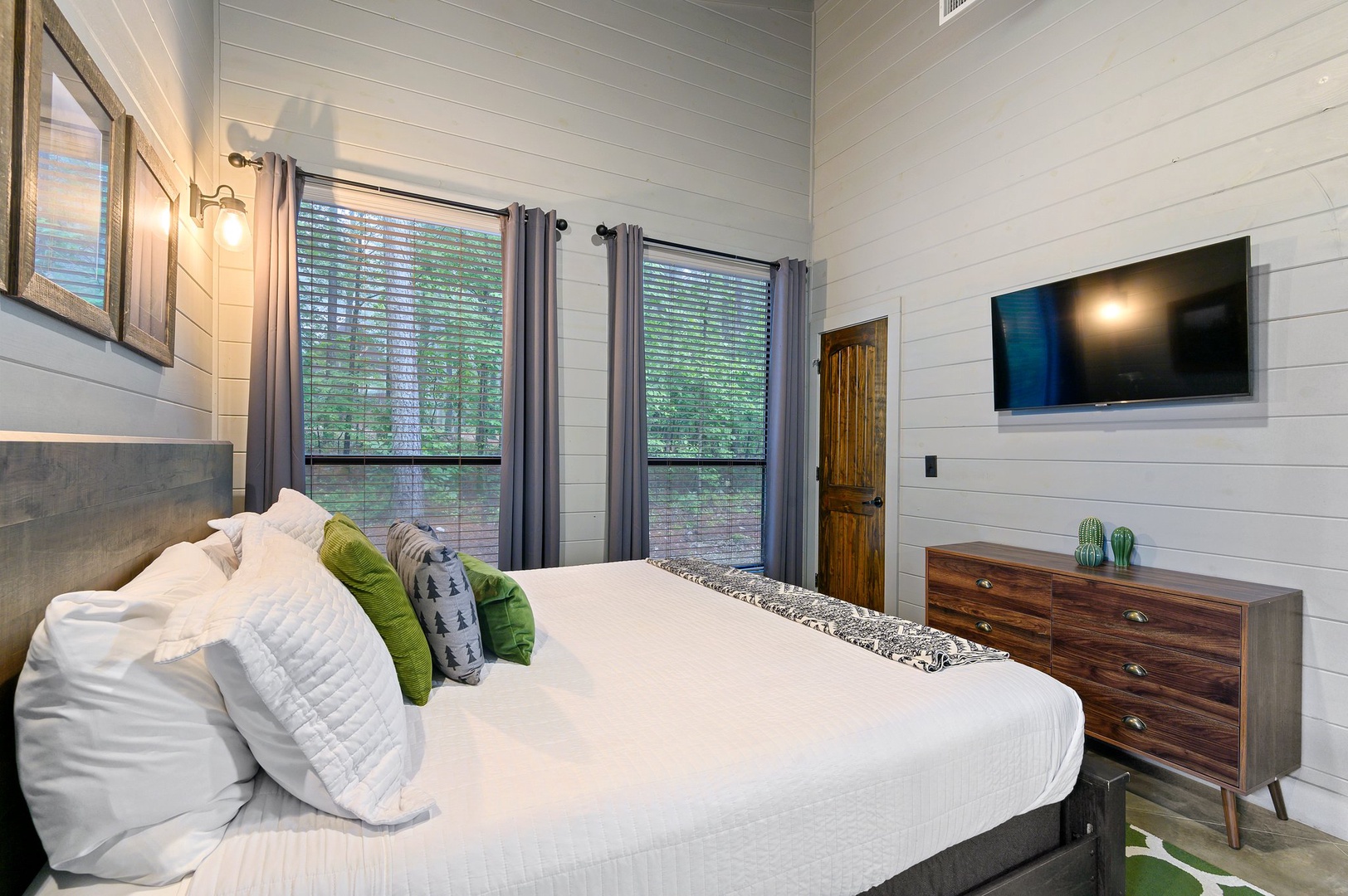 Bronze Bison Bronze Bison Come ready to enjoy all this cabin ahs to offer. Surrounded by tall trees, a fire pit with adirondack chairs, swings for the kids, and a bocce ball court are visible. Strings of lights hang above. Aerial view of the Bronze Bison cabin nestled among tall pine trees in a forest. Enjoy sitting and visiting on the outdoor sectional, take in a move, or just enjoy the tranquility the beautiful forest provides. A modern bathroom with patterned tile shower, white shiplap walls, granite countertop with a vessel sink, large mirror, and wooden ceiling. Towels and toiletries are neatly arranged. A spacious, modern living room with a high wooden ceiling, a stone fireplace, large windows, and a mix of leather and fabric furniture. You can also try your luck on the shuffleboard game pictured on the right. Open Gallery Come ready to enjoy all this cabin ahs to offer. Surrounded by tall trees, a fire pit with adirondack chairs, swings for the kids, and a bocce ball court are visible. Strings of lights hang above. Aerial view of the Bronze Bison cabin nestled among tall pine trees in a forest. Enjoy sitting and visiting on the outdoor sectional, take in a move, or just enjoy the tranquility the beautiful forest provides. A modern bathroom with patterned tile shower, white shiplap walls, granite countertop with a vessel sink, large mirror, and wooden ceiling. Towels and toiletries are neatly arranged. A spacious, modern living room with a high wooden ceiling, a stone fireplace, large windows, and a mix of leather and fabric furniture. You can also try your luck on the shuffleboard game pictured on the right. A modern living room features a stone fireplace, mounted 55" TV, shuffleboard table, and large windows offering a view of greenery outside. A contemporary living room with large windows, brown leather sectional sofa, patterned rug, two armchairs, and minimalist decor. Walls are white wood panels and ceiling has wooden accents. Spacious living room with large windows, wooden ceiling, and modern furnishings including brown sofas, orange chairs, a round coffee table, and a fireplace. The open kitchen and dining area are visible. A bedroom with a large bed, green and white rug, and a view into a bathroom. The walls are light-colored wooden panels, and there are large windows with dark curtains. Modern bathroom with a marble countertop, vessel sink. Features a walk-in shower with white subway tiles, wooden ceiling, towel racks, framed art, and a window providing natural light. A modern bedroom with a black metal bed frame, gray bedding, nightstands with lamps, a desk with a lamp and plant, dark blue curtains, and an attached bathroom. Aerial view of the Bronze Bison cabin surrounded by dense, foggy pine forest. The cabin is partially hidden by the tall trees. Aerial view of the Bronze Bison cabin. Front view of the Bronze Bison cabin nestled in the forest. Outdoor firepit with blue adironack chairs, string lights overhead, a bocce ball court, a hammock, and a wooden swing. We help to keep your opponents honest with a sign displaying the rules for playing bocce ball. An outdoor area with string lights, a fire pit with four blue chairs, a bocce ball court, and a hammock, set in a wooded environment during dusk. Come ready to enjoy all this cabin ahs to offer. Surrounded by tall trees, a fire pit with adirondack chairs, swings for the kids, and a bocce ball court are visible. Strings of lights hang above. The kids will enjoy the fact that we didn't forget them as they experience the on site playgound equipment. The back view of the cabin at dusk with the string lights on. Relax in the evenings in the hot tub under the string lights and the beautiful Oklahoma sky. Cook your favorite meals on the outdoor direct plummed gas grill. The outdoor porch features a TV, gas fireplace and cornhole game. Cornhole game. Enjoy sitting and visiting on the outdoor sectional, take in a move, or just enjoy the tranquility the beautiful forest provides. A cozy patio with a sectional sofa, wooden coffee table, and rocking chair, overlooking a lush forest. A cozy living room with a high wooden ceiling, stone fireplace, and large windows. Leather sofas and armchairs surround a coffee table. A kitchen and dining area are visible in the background. A modern living room features a stone fireplace, mounted 55" TV, shuffleboard table, and large windows offering a view of greenery outside. A modern living room with large windows, a stone fireplace, a wall-mounted 55" TV, two armchairs, a dark leather sofa, and a round coffee table on a patterned rug. Trees are visible outside. A modern living room with large windows, a sectional leather sofa, two armchairs, a round coffee table, and a patterned rug. The dining area with the kitchen in the background. The dining area that seats six surrounded by large windows to let in the beauty of the surrounding forest. A modern kitchen and dining area with large windows, featuring an island with bar stools, stainless steel appliances, white cabinets, and the dining area to the right. Coffee station. This picture shows the dining area to the left and the kitchen to the right with the living room in the background. This modern kitchen comes complete with a refrigerator, oven/stove, microwave, dishwasher, and coffee maker. Farmhouse sink with the living room in the background. The Bronze Bison includes several special touches. A modern open-concept living room and kitchen with white walls, brown leather furniture, black bar stools, and stainless steel appliances. The room features a high ceiling and large windows. A corner view reveals a living area with a stone fireplace and a wall-mounted TV, adjacent to a small bathroom with a white sink and a wooden-framed mirror on the right. The cabin has frontload stackable washer and dryer units. A bedroom with a large bed, green and white rug, and a view into a bathroom. The walls are light-colored wooden panels, and there are large win