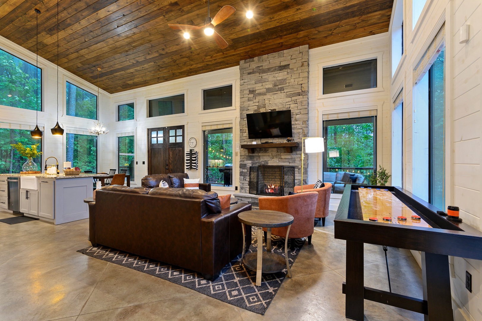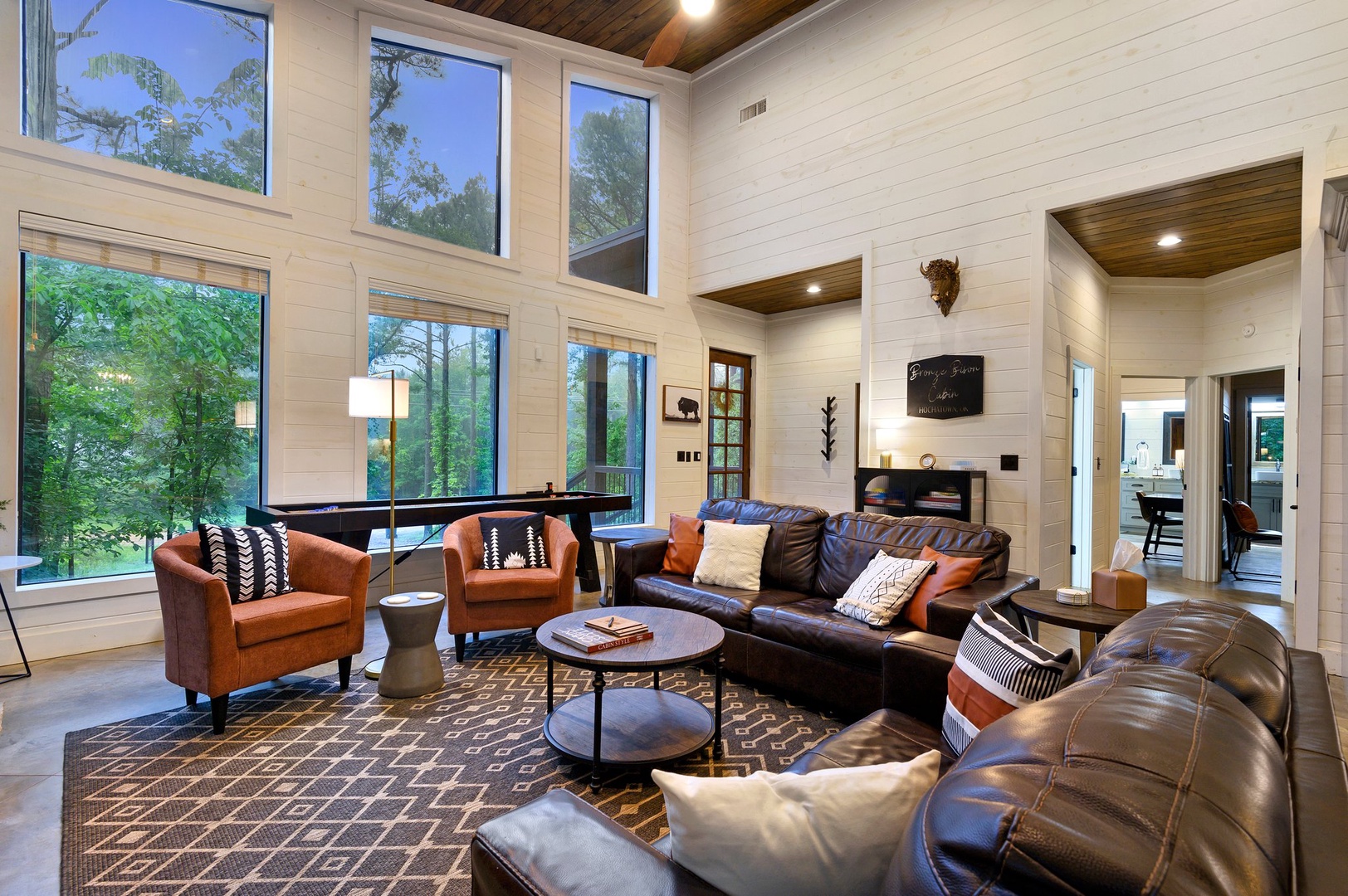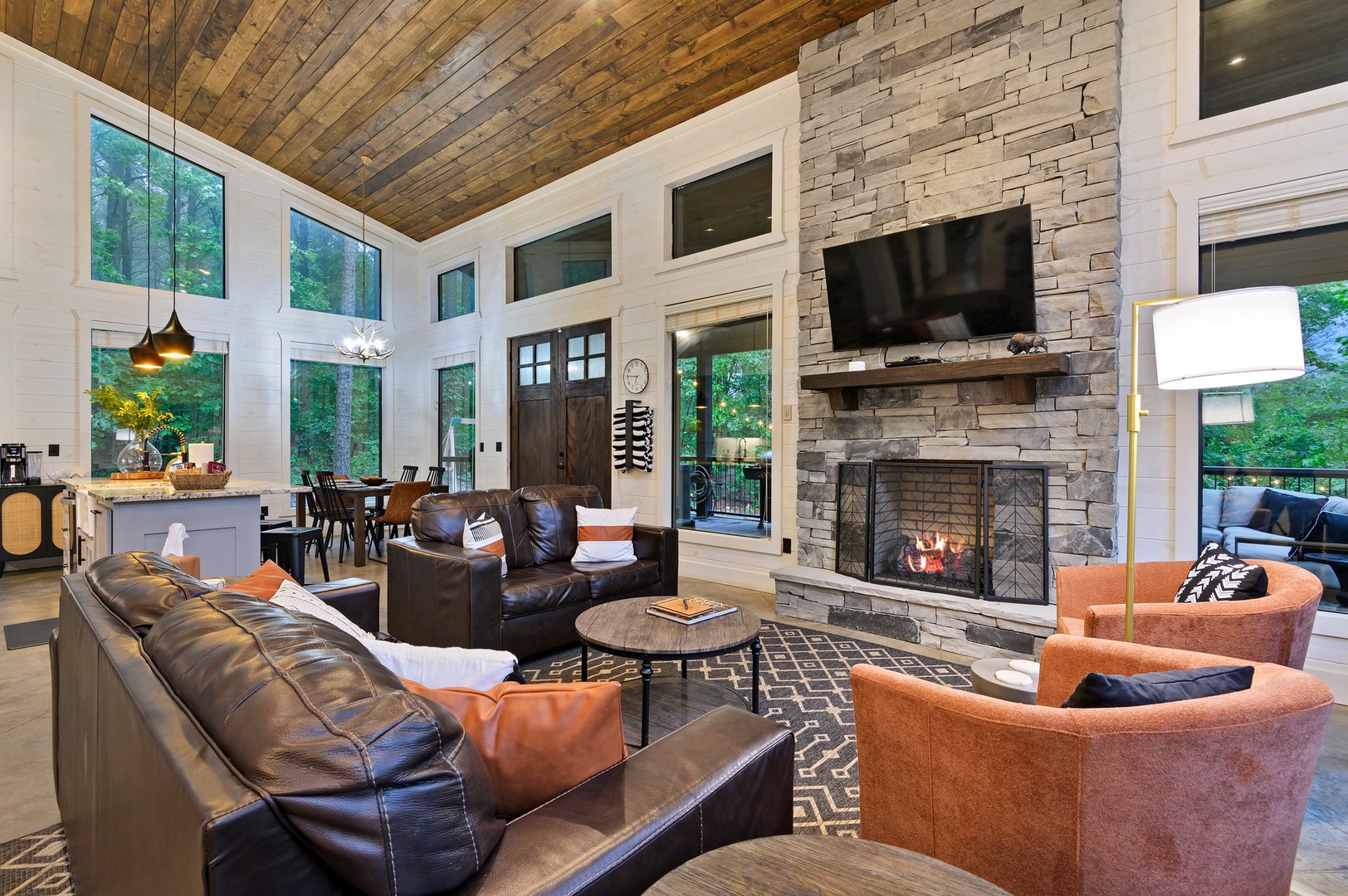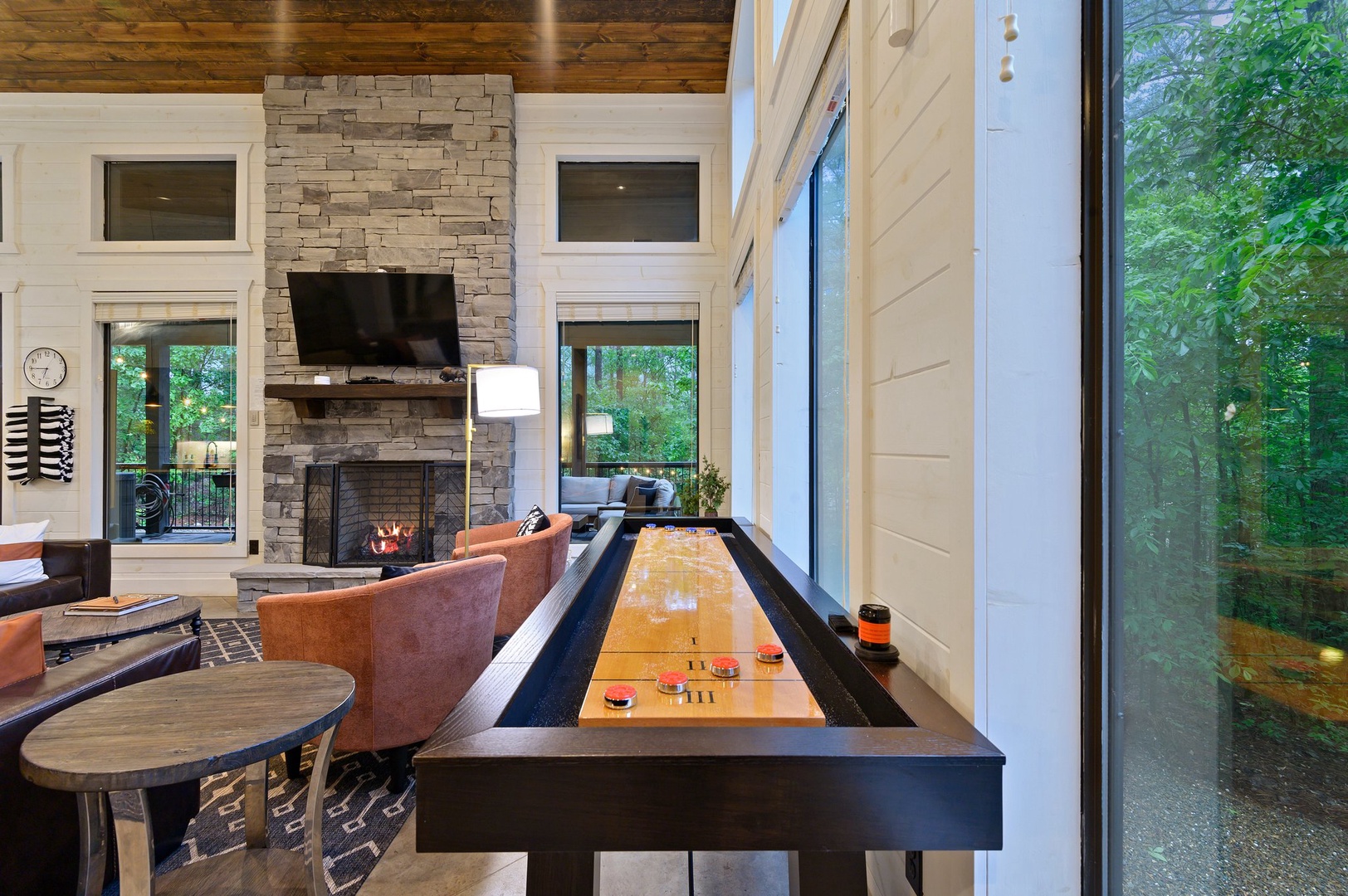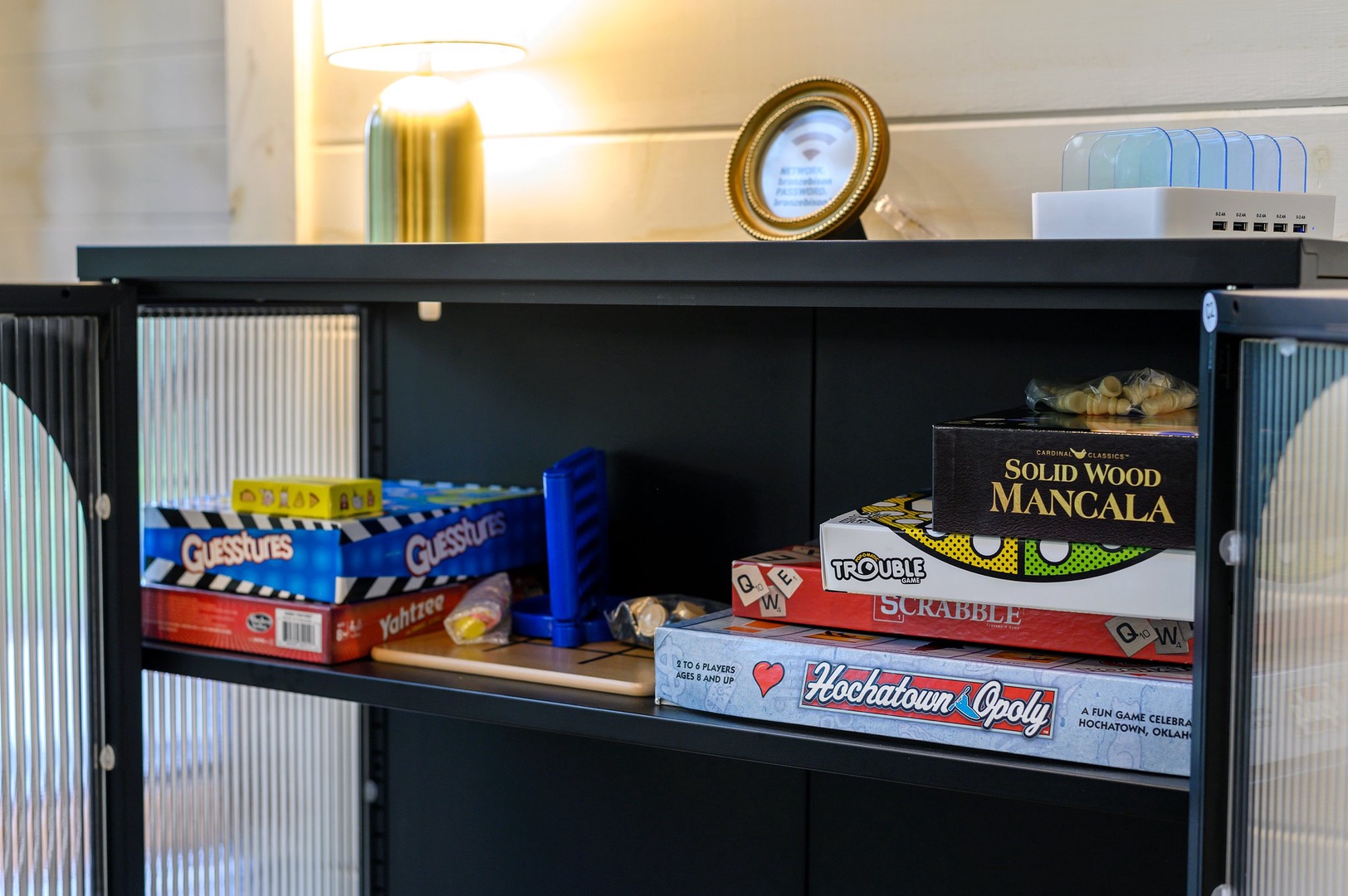Bronze Bison Bronze Bison Come ready to enjoy all this cabin ahs to offer. Surrounded by tall trees, a fire pit with adirondack chairs, swings for the kids, and a bocce ball court are visible. Strings of lights hang above. Aerial view of the Bronze Bison cabin nestled among tall pine trees in a forest. Enjoy sitting and visiting on the outdoor sectional, take in a move, or just enjoy the tranquility the beautiful forest provides. A modern bathroom with patterned tile shower, white shiplap walls, granite countertop with a vessel sink, large mirror, and wooden ceiling. Towels and toiletries are neatly arranged. A spacious, modern living room with a high wooden ceiling, a stone fireplace, large windows, and a mix of leather and fabric furniture. You can also try your luck on the shuffleboard game pictured on the right. Open Gallery Come ready to enjoy all this cabin ahs to offer. Surrounded by tall trees, a fire pit with adirondack chairs, swings for the kids, and a bocce ball court are visible. Strings of lights hang above. Aerial view of the Bronze Bison cabin nestled among tall pine trees in a forest. Enjoy sitting and visiting on the outdoor sectional, take in a move, or just enjoy the tranquility the beautiful forest provides. A modern bathroom with patterned tile shower, white shiplap walls, granite countertop with a vessel sink, large mirror, and wooden ceiling. Towels and toiletries are neatly arranged. A spacious, modern living room with a high wooden ceiling, a stone fireplace, large windows, and a mix of leather and fabric furniture. You can also try your luck on the shuffleboard game pictured on the right. A modern living room features a stone fireplace, mounted 55" TV, shuffleboard table, and large windows offering a view of greenery outside. A contemporary living room with large windows, brown leather sectional sofa, patterned rug, two armchairs, and minimalist decor. Walls are white wood panels and ceiling has wooden accents. Spacious living room with large windows, wooden ceiling, and modern furnishings including brown sofas, orange chairs, a round coffee table, and a fireplace. The open kitchen and dining area are visible. A bedroom with a large bed, green and white rug, and a view into a bathroom. The walls are light-colored wooden panels, and there are large windows with dark curtains. Modern bathroom with a marble countertop, vessel sink. Features a walk-in shower with white subway tiles, wooden ceiling, towel racks, framed art, and a window providing natural light. A modern bedroom with a black metal bed frame, gray bedding, nightstands with lamps, a desk with a lamp and plant, dark blue curtains, and an attached bathroom. Aerial view of the Bronze Bison cabin surrounded by dense, foggy pine forest. The cabin is partially hidden by the tall trees. Aerial view of the Bronze Bison cabin. Front view of the Bronze Bison cabin nestled in the forest. Outdoor firepit with blue adironack chairs, string lights overhead, a bocce ball court, a hammock, and a wooden swing. We help to keep your opponents honest with a sign displaying the rules for playing bocce ball. An outdoor area with string lights, a fire pit with four blue chairs, a bocce ball court, and a hammock, set in a wooded environment during dusk. Come ready to enjoy all this cabin ahs to offer. Surrounded by tall trees, a fire pit with adirondack chairs, swings for the kids, and a bocce ball court are visible. Strings of lights hang above. The kids will enjoy the fact that we didn't forget them as they experience the on site playgound equipment. The back view of the cabin at dusk with the string lights on. Relax in the evenings in the hot tub under the string lights and the beautiful Oklahoma sky. Cook your favorite meals on the outdoor direct plummed gas grill. The outdoor porch features a TV, gas fireplace and cornhole game. Cornhole game. Enjoy sitting and visiting on the outdoor sectional, take in a move, or just enjoy the tranquility the beautiful forest provides. A cozy patio with a sectional sofa, wooden coffee table, and rocking chair, overlooking a lush forest. A cozy living room with a high wooden ceiling, stone fireplace, and large windows. Leather sofas and armchairs surround a coffee table. A kitchen and dining area are visible in the background. A modern living room features a stone fireplace, mounted 55" TV, shuffleboard table, and large windows offering a view of greenery outside. A modern living room with large windows, a stone fireplace, a wall-mounted 55" TV, two armchairs, a dark leather sofa, and a round coffee table on a patterned rug. Trees are visible outside. A modern living room with large windows, a sectional leather sofa, two armchairs, a round coffee table, and a patterned rug. The dining area with the kitchen in the background. The dining area that seats six surrounded by large windows to let in the beauty of the surrounding forest. A modern kitchen and dining area with large windows, featuring an island with bar stools, stainless steel appliances, white cabinets, and the dining area to the right. Coffee station. This picture shows the dining area to the left and the kitchen to the right with the living room in the background. This modern kitchen comes complete with a refrigerator, oven/stove, microwave, dishwasher, and coffee maker. Farmhouse sink with the living room in the background. The Bronze Bison includes several special touches. A modern open-concept living room and kitchen with white walls, brown leather furniture, black bar stools, and stainless steel appliances. The room features a high ceiling and large windows. A corner view reveals a living area with a stone fireplace and a wall-mounted TV, adjacent to a small bathroom with a white sink and a wooden-framed mirror on the right. The cabin has frontload stackable washer and dryer units. A bedroom with a large bed, green and white rug, and a view into a bathroom. The walls are light-colored wooden panels, and there are large win