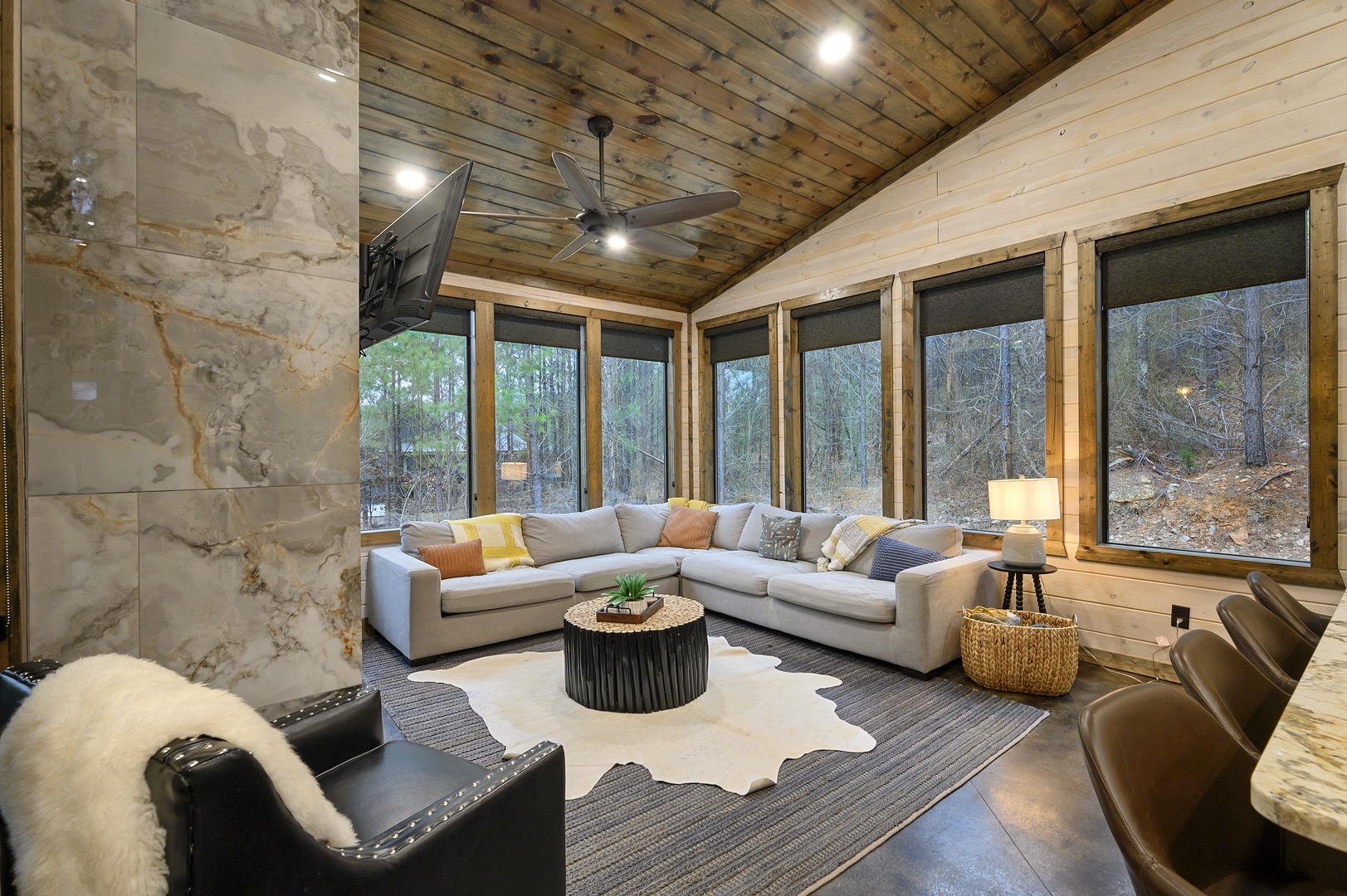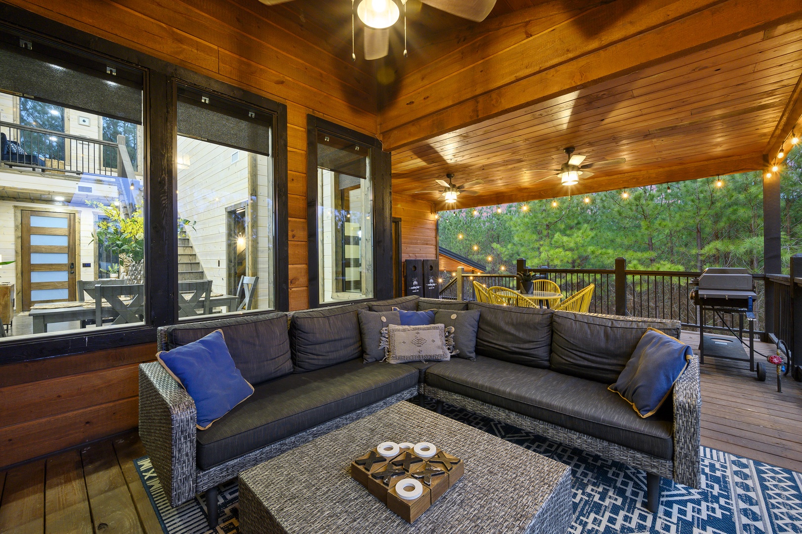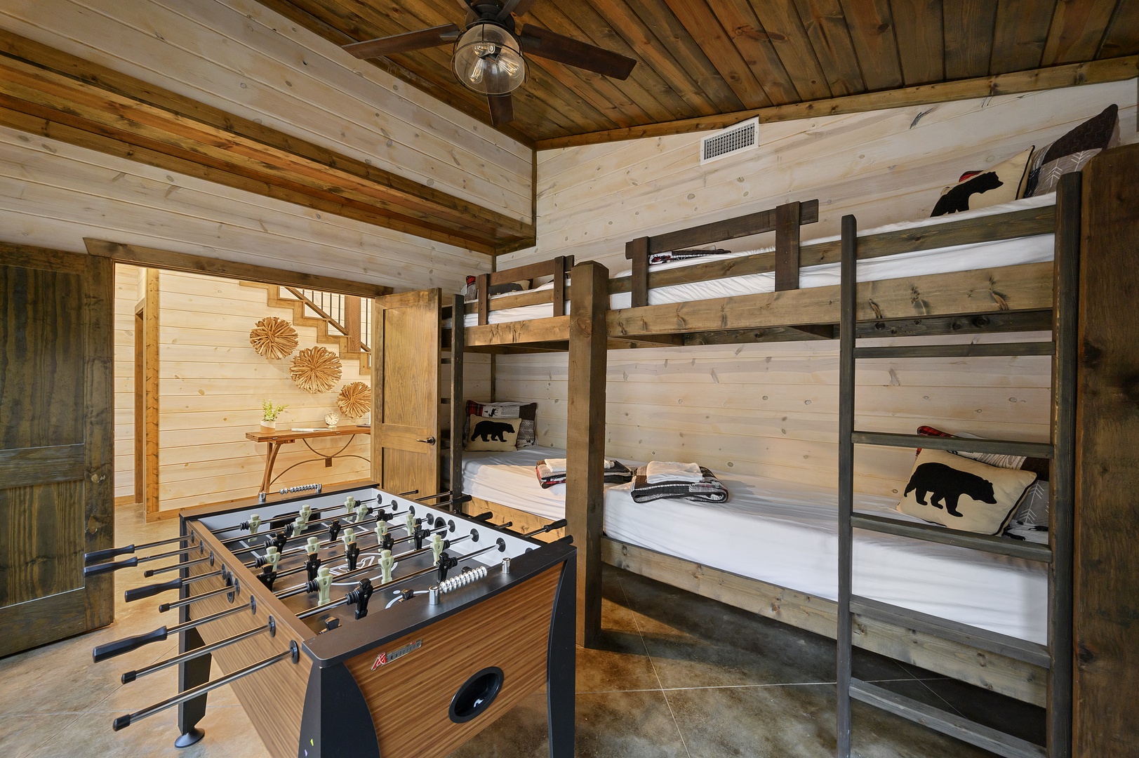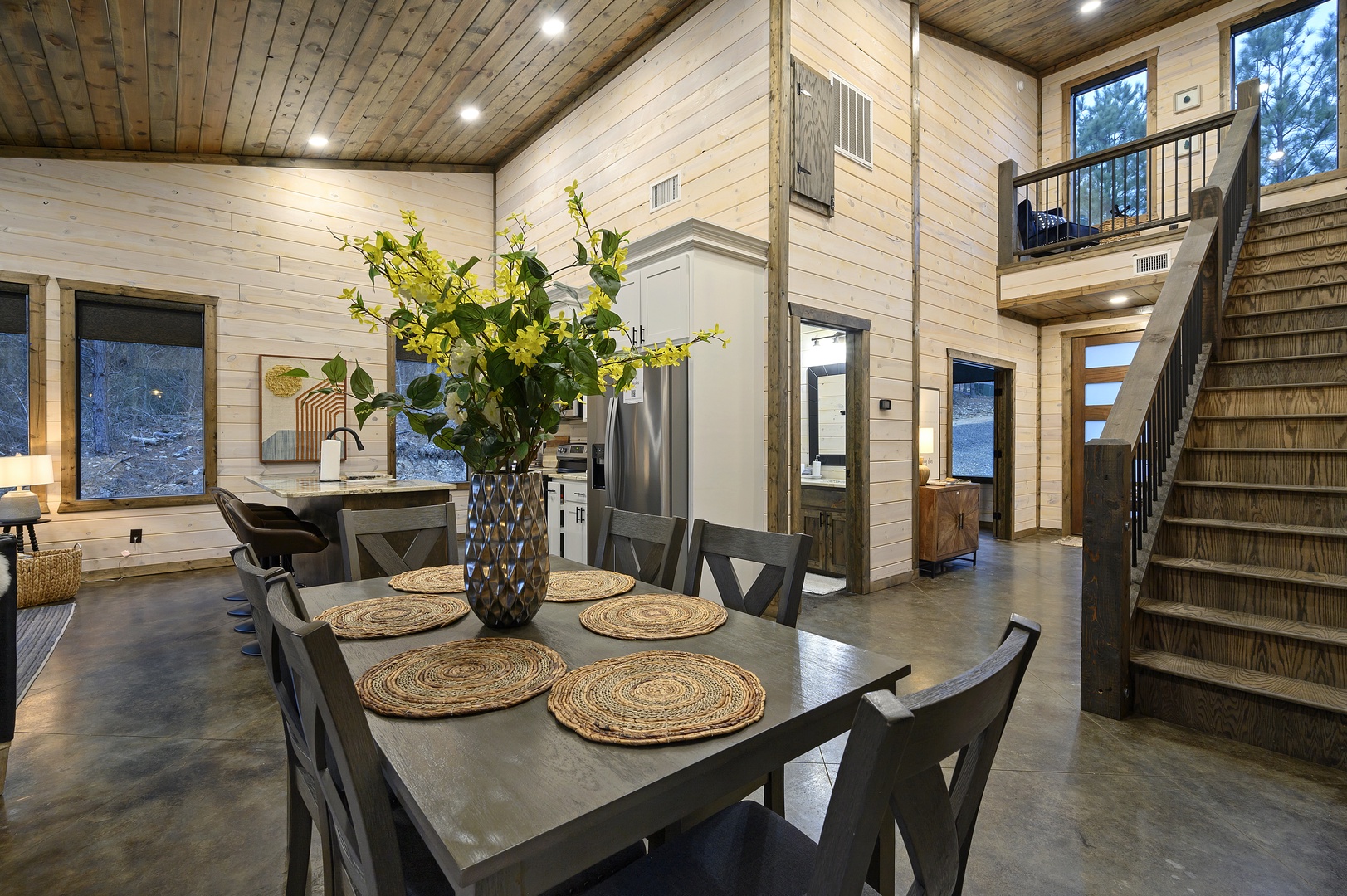 Counting Stars Home Broken Bow Counting Stars Counting Stars Outdoor firepit with adirondack chairs, string lighting and the back of the Counting Stars cabin in the background. Aerial view of the Counting Stars cabin. A modern living room with a fireplace, large sectional sofa, and flat-screen TV. The room features wooden walls, large windows, and a cowhide rug. Upstairs bedroom with doors leading out to rooftop deck. Ever wonder why they call it "Counting Stars"? Take a look at this elegantly decorated rooftop deck. This is where you will spend most of your evenings. Open Gallery Outdoor firepit with adirondack chairs, string lighting and the back of the Counting Stars cabin in the background. Aerial view of the Counting Stars cabin. A modern living room with a fireplace, large sectional sofa, and flat-screen TV. The room features wooden walls, large windows, and a cowhide rug. Upstairs bedroom with doors leading out to rooftop deck. Ever wonder why they call it "Counting Stars"? Take a look at this elegantly decorated rooftop deck. This is where you will spend most of your evenings. Ever wonder why they call it "Counting Stars"? Take a look at this elegantly decorated rooftop deck. This is where you will spend most of your evenings. A room with natural wood walls features a foosball table, a bunk bed, two large windows showing outdoor scenery, and a wall-mounted TV displaying "SkyRun Vacation Rentals" in Broken Bow, OK. A modern rustic bedroom with a large bed, wooden walls, a ceiling fan, a window with a view of pine trees. Natural light illuminates the room. A two sink vanity and walk-in shower serving the downstairs bedroom. A two sink vanity and walk-in shower serving the upstairs bedroom. Bathroom serving the bunkroom/gameroom. Private hot tub with string lights and surrounded by pines trees. Firepit with string lights and surrounded by pine tress. Aerial view of the Counting Stars cabin. Aerial view of the deck outside the upstairs bedroom. Front view of the Counting Stars cabin. Outdoor firepit with adirondack chairs, string lighting and the back of the Counting Stars cabin in the background. Firepit with string lights and surrounded by pine tress. Private hot tub with string lights and surrounded by pines trees. Private hot tub with string lights and surrounded by pines trees. A covered outdoor patio features a gas grill, a dining table with yellow chairs, a ceiling fan, and a seating area with a TV mounted on the wooden wall. Trees are visible in the background at dusk. Outdoor dining with the direct plumbed gas grill in the background. A cozy wooden porch with string lights features a corner sofa, a coffee table, a ceiling fan, and a wall-mounted TV. The porch overlooks a wooded area. A cozy wooden porch with string lights features a corner sofa, a coffee table, a ceiling fan. The porch overlooks a wooded area. Cornhole game for outdoor entertainment. Front view of the Counting Stars cabin. Entry to the cabin with elegant decor. Bunkroom/gameroom showing also the foosball game and ceiling fan. A rustic room with bunk beds, a foosball table, large windows, and a TV displaying "SkyRun Vacation Rentals" signage. Entry to the cabin with elegant decor. Downstairs bathroom. Bathroom serving the bunkroom/gameroom. Dining room that seats six encased with large windows to allow comtinually viewing of the surrounding forest. Dining room that seats six with living room and kitchen insland in the background. Livingroom sectional surrounded by large windows. Dining room that seats six with the kitchen in the background. Kitchen which is equipped with a refrigerator, oven/stove, microwave, dishwasher, and Keurig coffee maker. Kitchen which is equipped with a refrigerator, oven/stove, microwave, dishwasher, and Keurig coffee maker. Kitchen island also seats 4 additional people. Kitchen island also seats 4 additional people. A Keurig coffee maker placed on a kitchen counter with a basket of coffee filters, two white mugs, and assorted coffee pods nearby. Kitchen which is equipped with a refrigerator, oven/stove, microwave, dishwasher, and Keurig coffee maker. A cozy living room with a fireplace, flat-screen TV, and large sectional sofa. The room features wood-paneled walls and ceiling, large windows with a nature view, and modern furnishings. Living room has a large corner sectional that is surrounded by large windows allowing in light and beautiful views. Living room has a large corner sectional that is surrounded by large windows allowing in light and beautiful views. Downstairs bedroom and stairway leading to the upstairs bedroom and upper deck. A rustic bedroom with wooden walls and ceiling, a comfortable bed with gray bedding, a ceiling fan, a window with a forest view, and a TV mounted on the wall. Downstairs bedroom. A bedroom with wooden walls and ceiling, a comfortable bed, a dresser with decor items, a wall-mounted TV, and double door windows. The TV displays the SkyRun Vacation Rentals logo and “Serving Broken Bow, OK. A two sink vanity and walk-in shower serving the downstairs bedroom. Walk-in shower serving the downstairs bedroom. Upstairs bedroom with doors leading out to rooftop deck. Upstairs bedroom with bathroom entry in the background. A two sink vanity and walk-in shower serving the upstairs bedroom. Walk-in shower for the upstairs bedroom. A cozy wooden bedroom features a bed, dresser, and mounted TV displaying "SkyRun Vacation Rentals" with windows showcasing an outdoor view. Ever wonder why they call it "Counting Stars"? Take a look at this elegantly decorated rooftop deck. This is where you will spend most of your evenings. Ever wonder why they call it "Counting Stars"? Take a look at this elegantly decorated rooftop deck. This is where you will spend most of your evenings. Aerial view of the firepit with string lights. Aerial view of the Counting Stars cabin. Gallery View Broken Bow, Oklahoma 3 Bedrooms 3 full Baths 8 Guests Pets OK (4.9) Description Rooms Amenitie