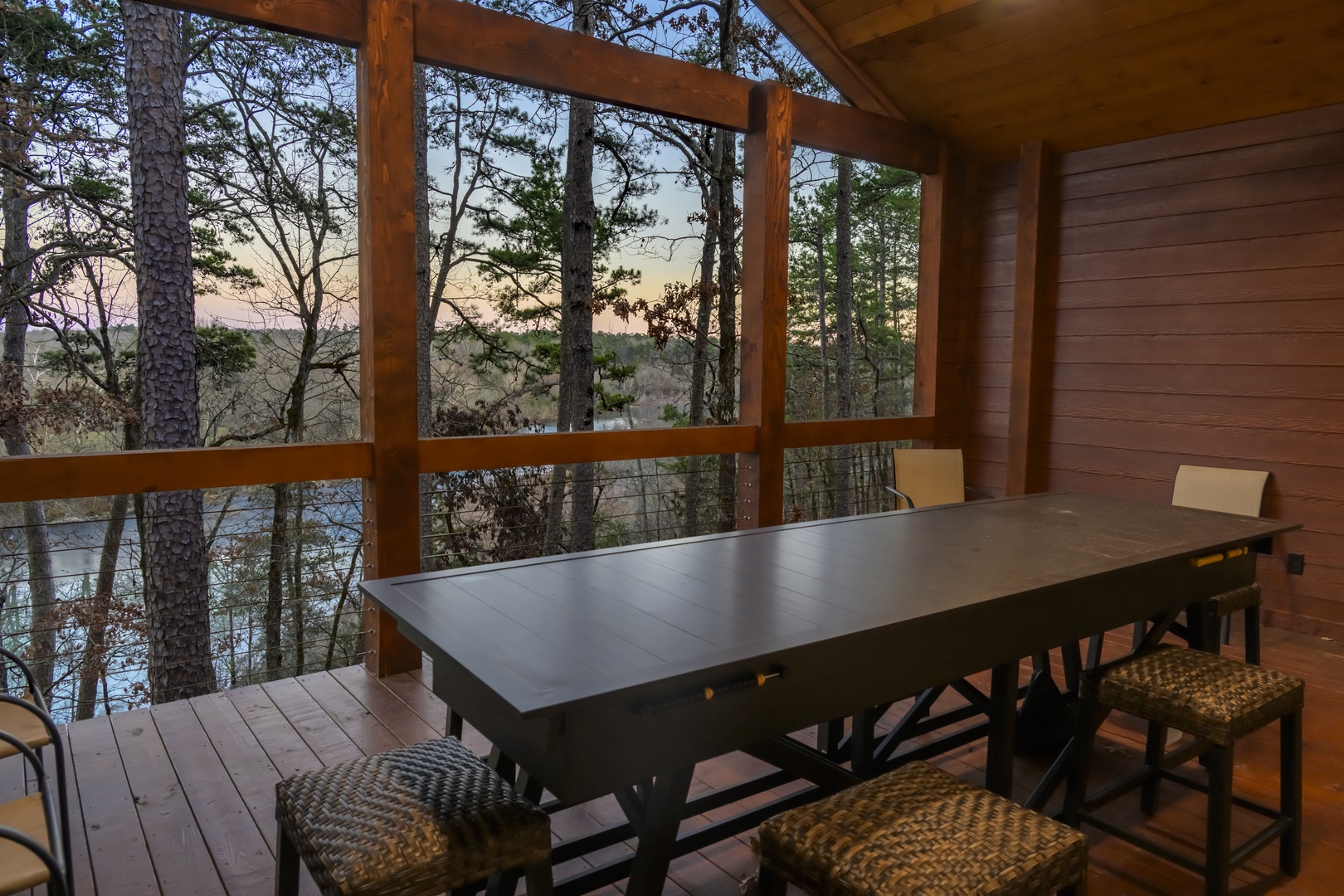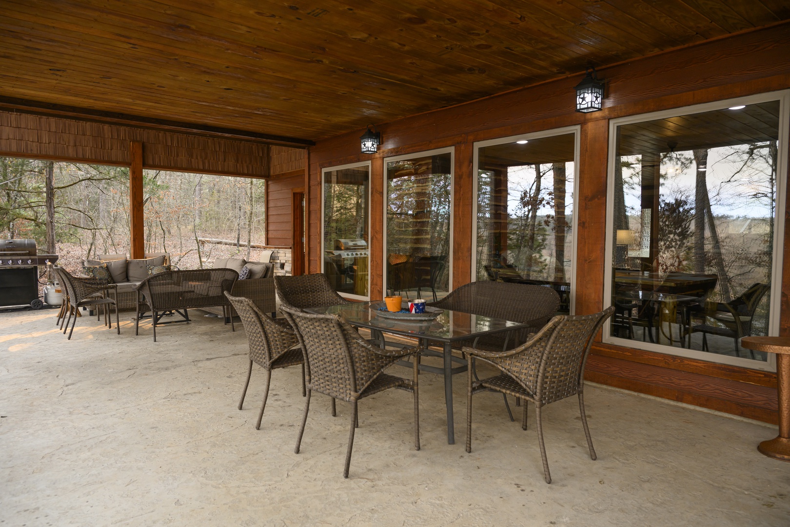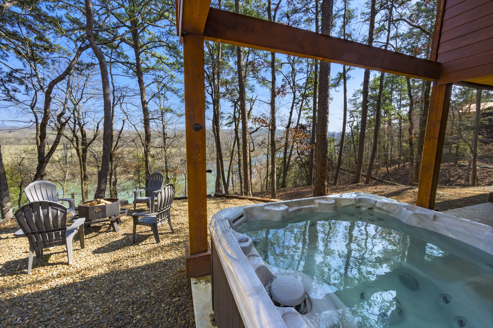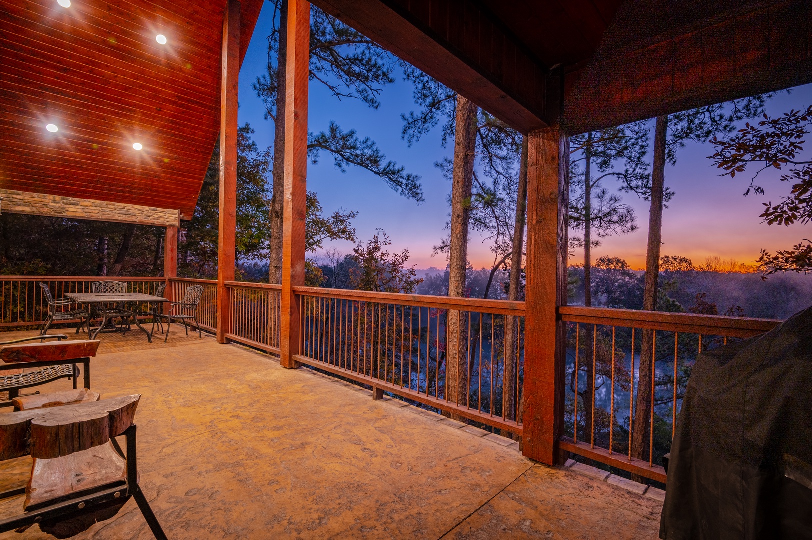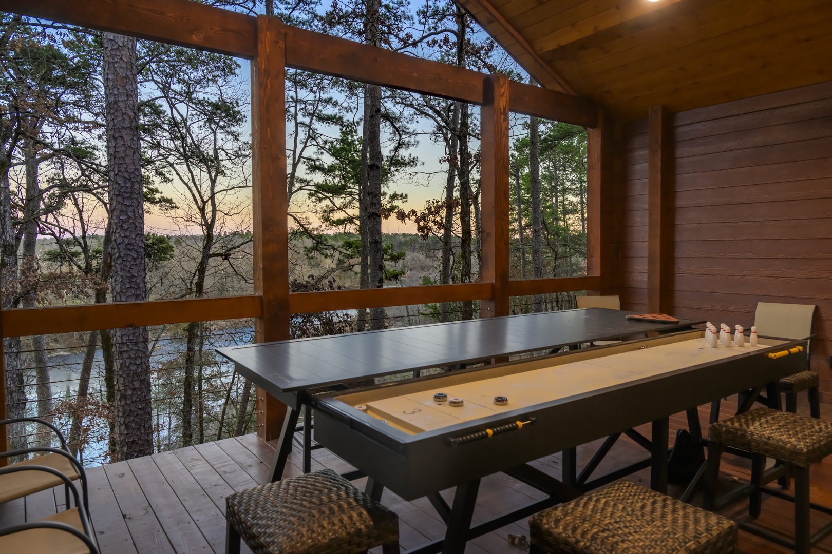 - Expansive Outdoor Spaces: Two hot tubs, multiple decks with stunning river views, a shuffleboard table, a pool table, an outdoor TV, two gas grills, fire pits, and plenty of space for yard games and relaxation under the stars.