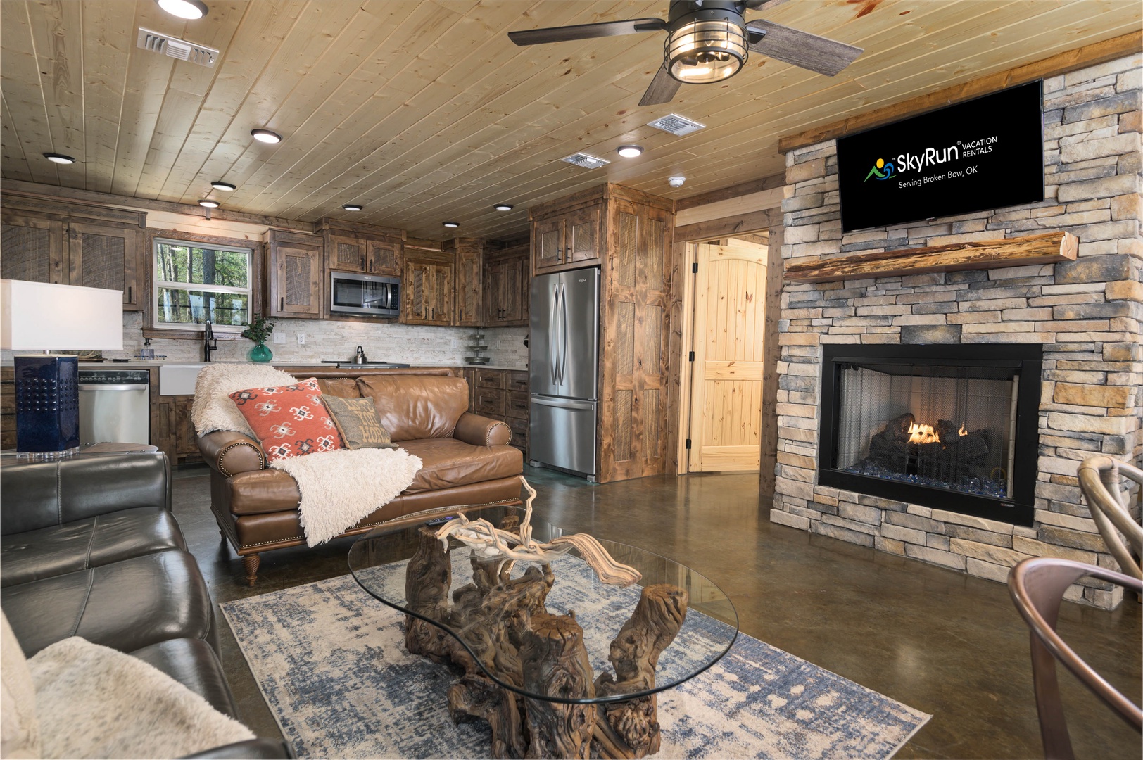 - Private Island Access: A completely unique feature you won’t find anywhere else in Broken Bow! Paddle over in one of your 7 provided kayaks and enjoy fishing, exploring, or simply unwinding in solitude.