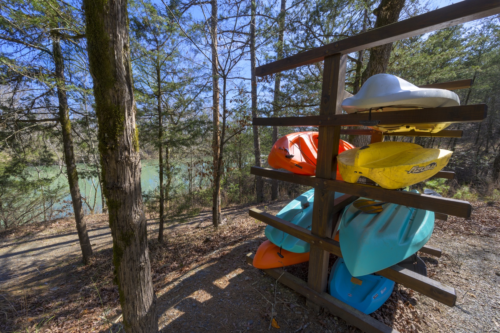- Kayaking & River Access: While the cabins sit high on the bluff, river access is just a short 5-minute walk down the road, where your complimentary kayaks are stored for easy launching.