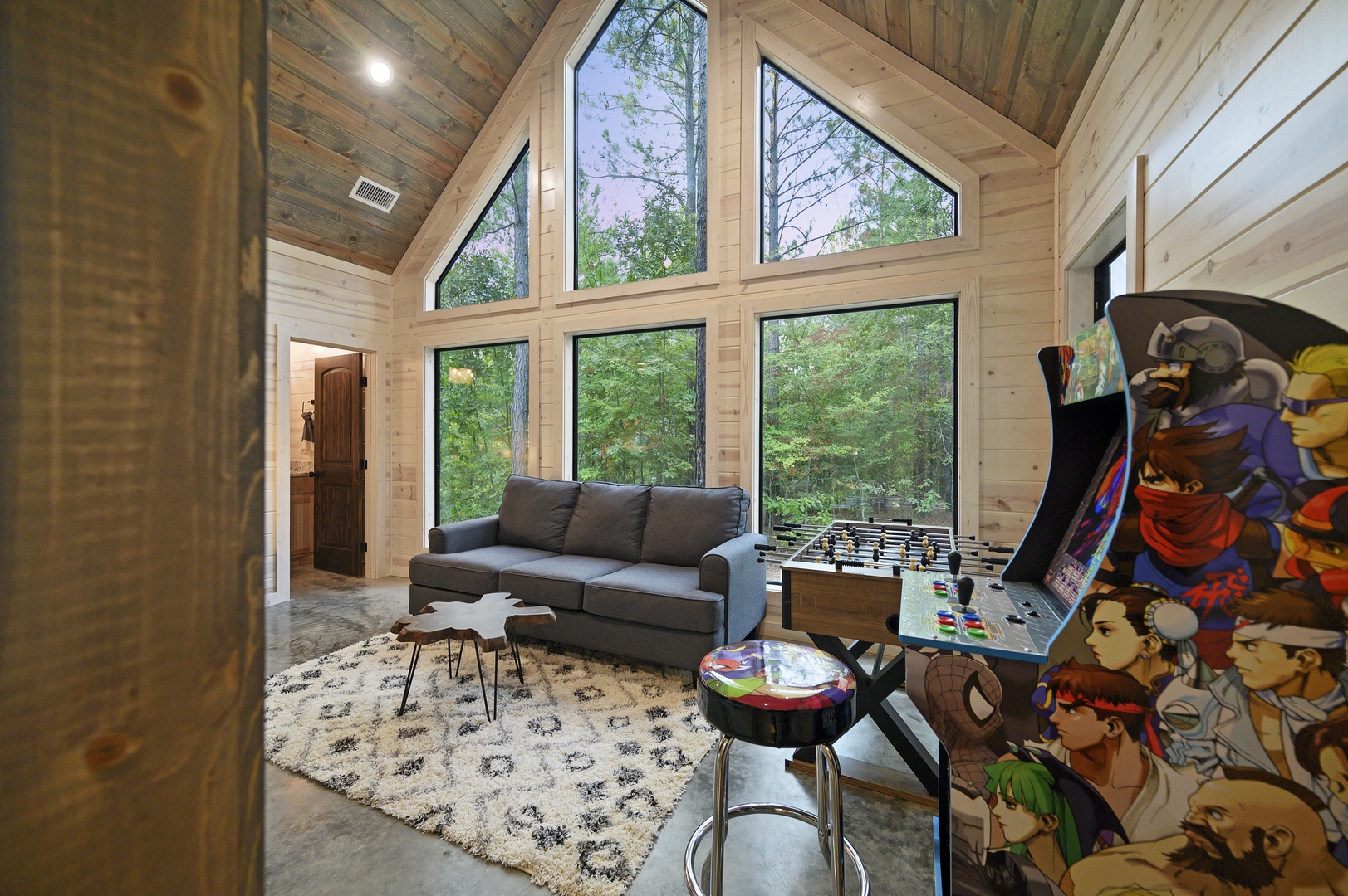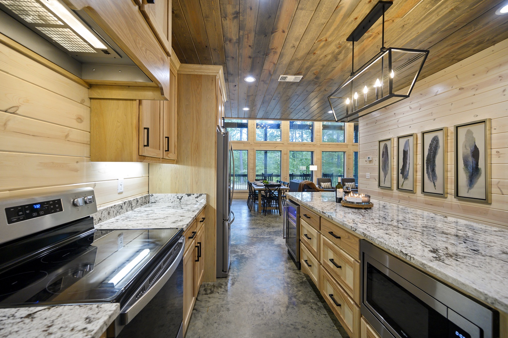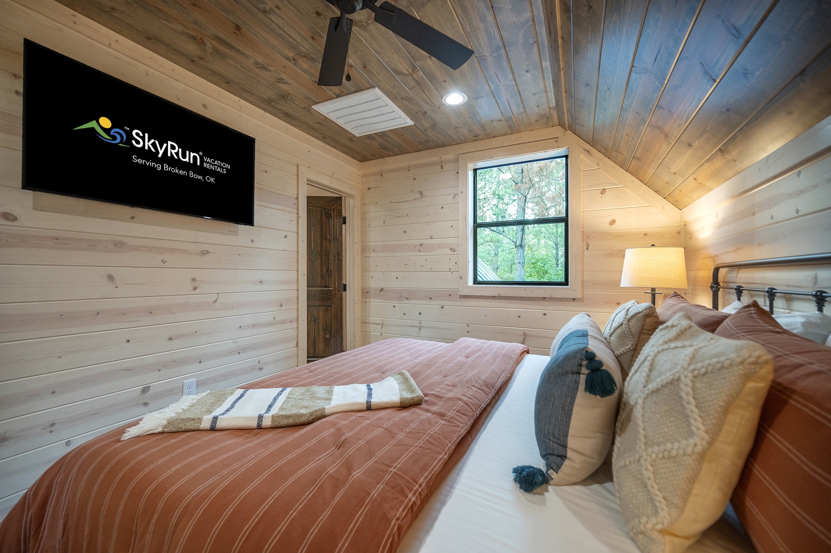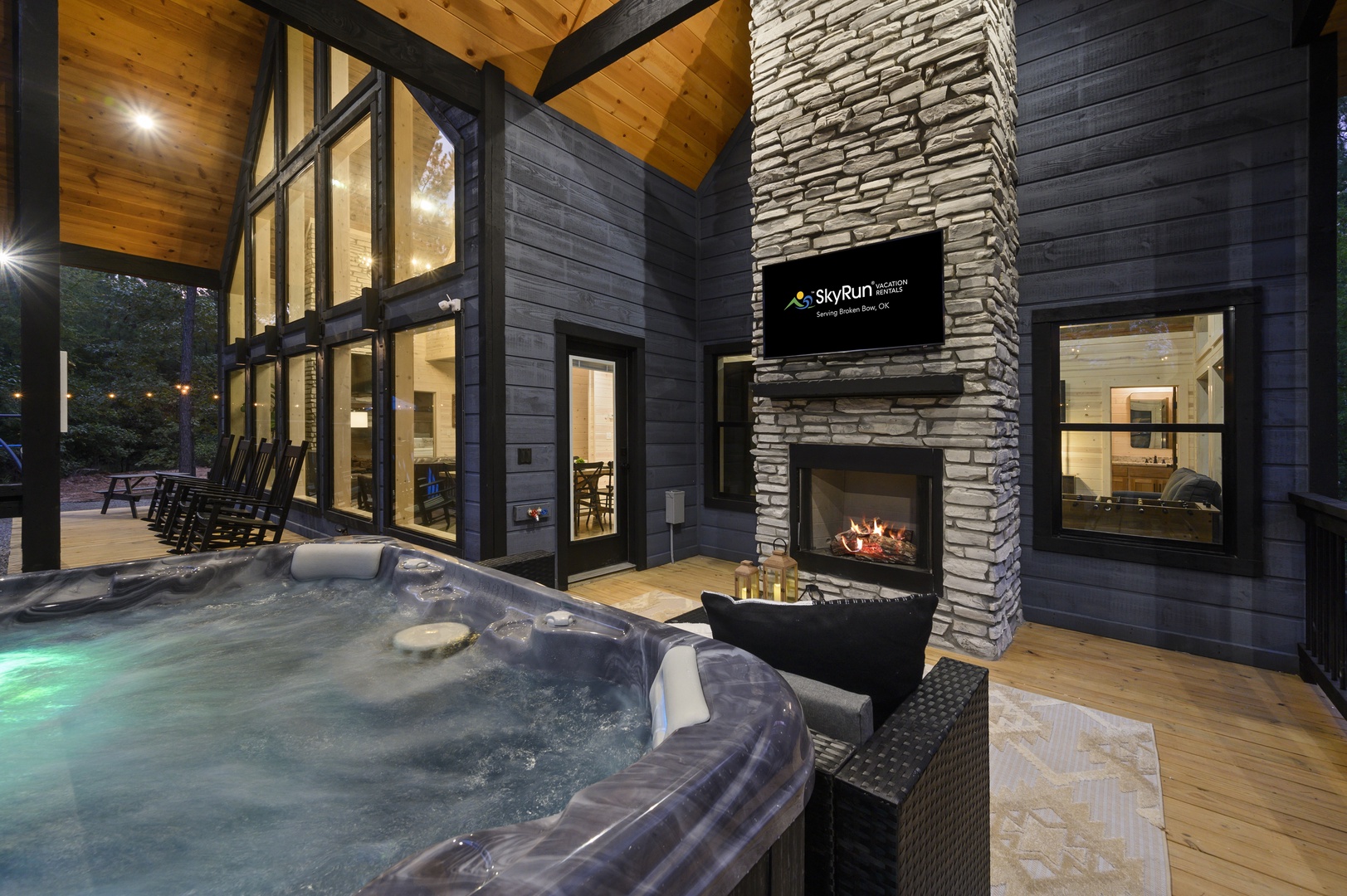 Night Owl Home Broken Bow Night Owl Back to Search Results Night Owl Open Gallery Gallery View Broken Bow, Oklahoma 3 Bedrooms 3 full, 1 half Baths 14 Guests Pets OK Description Rooms Amenities Reviews Calendar Location Night Owl is a luxurious, brand-new cabin nestled in a secluded cul-de-sac in Cedar Hills, Broken Bow, Oklahoma. Surrounded by a serene tree farm, this two-story retreat comfortably sleeps 14 guests and is perfect for families and friends seeking a peaceful escape (bring those furry friends with you too, because this cabin is pet friendly - see the end of this description for fee info and services you can add to your stay)! The cabin features two king suites with en-suite bathrooms, a spacious bunk room, and an open-concept living area with a stone fireplace and floor-to-ceiling windows. Guests will love the en suite sanctuaries, tastefully decked out bunk room, and chef’s kitchen, while the outdoor space offers a large porch with a gas-log fireplace, hot tub, propane grill, playscape, and outdoor games like cornhole, yard Yahtzee, and bocce ball. A stone fire pit for roasting marshmallows and gathering together as family or friends (or both) adds extra fun to the experience. Conveniently located for short drives to Hochatown, downtown Broken Bow, Beavers Bend State Park, the new Choctaw Landing casino, and a quick trip to Broken Bow Lake, Night Owl is the ideal base for both relaxation and adventure. Whether you’re soaking in the hot tub or exploring the nearby attractions, this spacious retreat has everything you need for an unforgettable stay. As soon as you step through the front door, you’re greeted by a chef’s kitchen that will inspire any culinary enthusiast. Featuring quartz countertops, stainless steel appliances, and a wine fridge, this kitchen is the perfect space to gather and create memorable meals. With its open floor plan and walls of windows, the living area fills with natural light, offering a seamless connection between indoor and outdoor living. The living room, with its stone fireplace and cozy seating, is ideal for unwinding after a day of exploring the nearby Beavers Bend State Park or Broken Bow Lake. Whether you’re dining at the eight-seat table or snacking at the kitchen island, you’ll never feel disconnected from the group, thanks to the cabin’s inviting, communal design. Night Owl boasts two king suites, each offering a private sanctuary with plush bedding, 55-inch smart TVs, and spa-like en-suite bathrooms. These bathrooms are designed for ultimate relaxation, featuring soaking tubs, walk-in showers, and spacious vanities. One suite is conveniently located on the ground floor, while the second suite upstairs comes with its own game loft, perfect for poker nights or board games with the family. For the younger (or young-at-heart) guests, the downstairs bunk room is a dream come true. With two twin-over-twin built-in bunk beds, complete with pull-out trundles, and a sleeper sofa, this room comfortably sleeps up to 8. The bunk room isn’t just for sleeping—it’s a fun zone equipped with a game console and foosball table, ready to spark some friendly competition. At Night Owl, the outdoor experience is just as incredible as the indoor one. Step out onto the expansive back porch and take in the serene views of the lush tree farm that stretches endlessly before you. Whether you're sipping your morning coffee or enjoying an evening drink by the outdoor gas-log fireplace, this peaceful setting will quickly become your favorite spot. When it’s time to dine al fresco, fire up the propane grill and enjoy meals at the outdoor dining table, surrounded by the beauty of nature. Afterward, relax in the large hot tub, perfectly positioned in front of the outdoor TV and fireplace—a perfect way to unwind after a day of adventure. For those who love a little friendly competition, the outdoor area is packed with fun activities, including a playscape, yard Yahtzee, cornhole, horseshoes and bocce ball. And no cabin getaway is complete without a stone fire pit, where you can roast marshmallows, tell stories, and create memories that will last a lifetime. Night Owl is designed with families in mind. Kids will love the outdoor playscape, and parents will appreciate the desk tucked into the downstairs king suite, offering a quiet spot to work remotely or catch up on emails. With reliable Wi-Fi and smart TVs throughout the cabin, you’ll have all the modern amenities you need while still feeling far from the hustle and bustle of everyday life. Located just a short drive from Hochatown, Beavers Bend State Park, and Broken Bow Lake, Night Owl is perfectly situated for those looking to explore the natural beauty of southeast Oklahoma. Whether you’re hiking, boating, or dining at local restaurants, everything is within reach while still allowing you to return to the privacy and tranquility of your secluded cabin. Come experience the luxury, comfort, and natural beauty that Night Owl offers. This isn’t just a cabin; it’s a retreat where cherished memories are made. Whether you’re relaxing by the fire, soaking in the hot tub, or enjoying a game night in the loft, Night Owl provides the perfect backdrop for your Broken Bow getaway. Book your stay today and immerse yourself in the unparalleled serenity of this one-of-a-kind luxury cabin. Guest notes and added services:  P e t s : *There is a flat fee of $50/night if you are bringing pet(s). Pet limit is 2. Please reach out to us if you have a special request. F i r e w o o d:  You can opt for bundles of firewood to be delivered to your cabin for your stay. 6-8 pieces (depending on size) for $20. Fee is collected after the reservation confirmation has been sent. E a r l y / L a t e: We may be able to offer early check-in or late check-out (2 additional hours) for $50 unless there is another reservation within 24 hours of your reservation. This must be requested and approved by your SkyRun host!