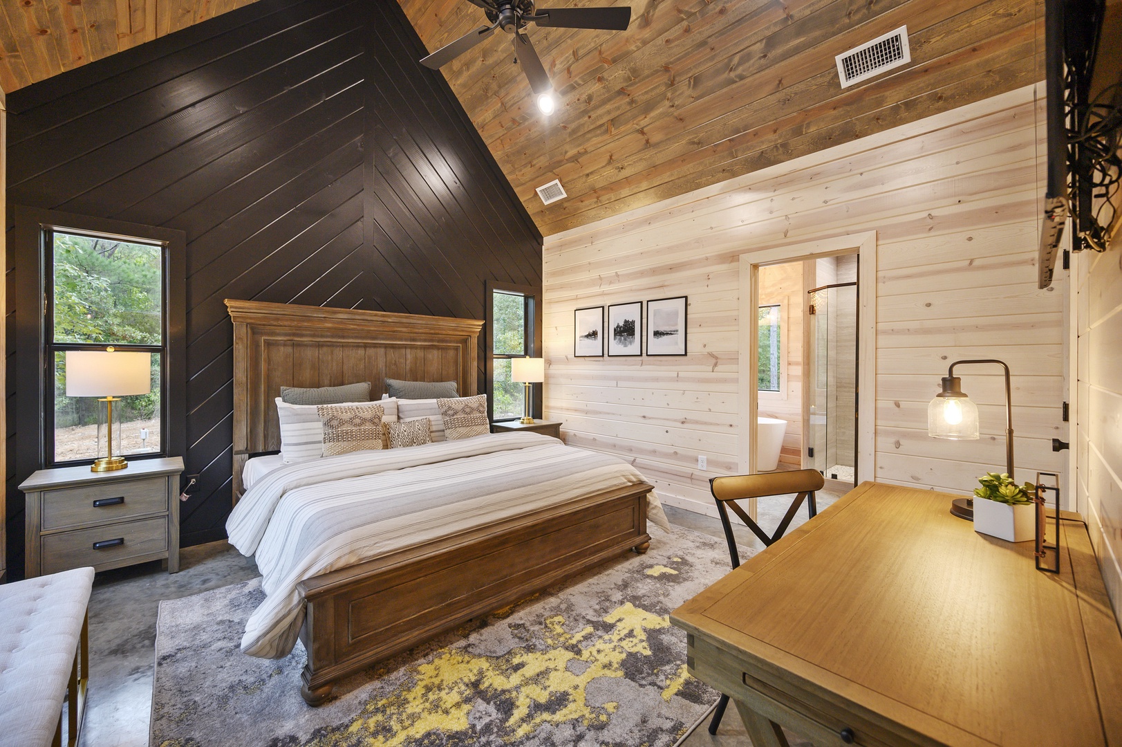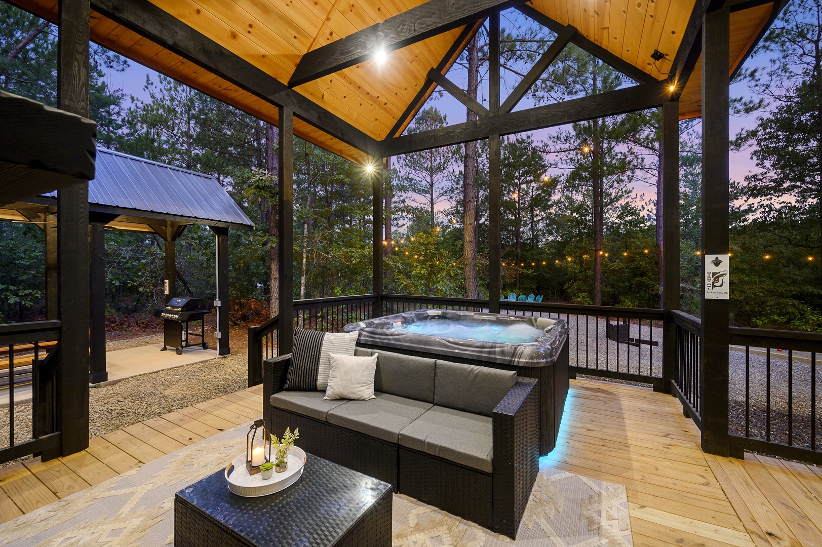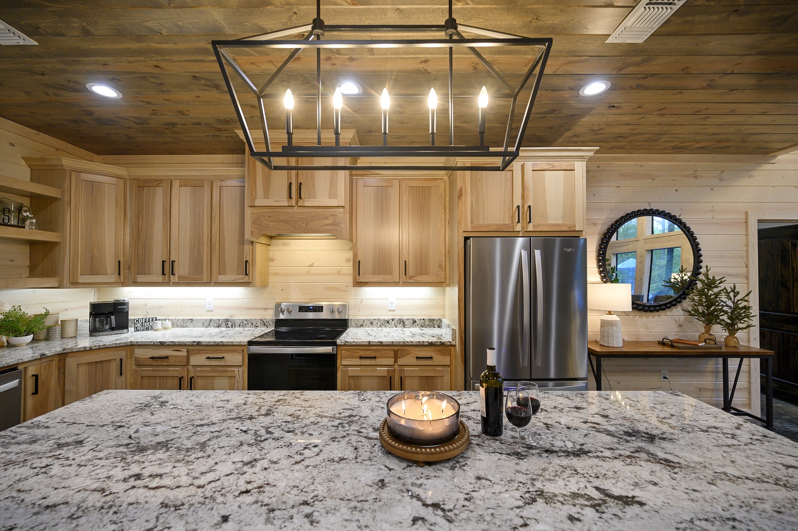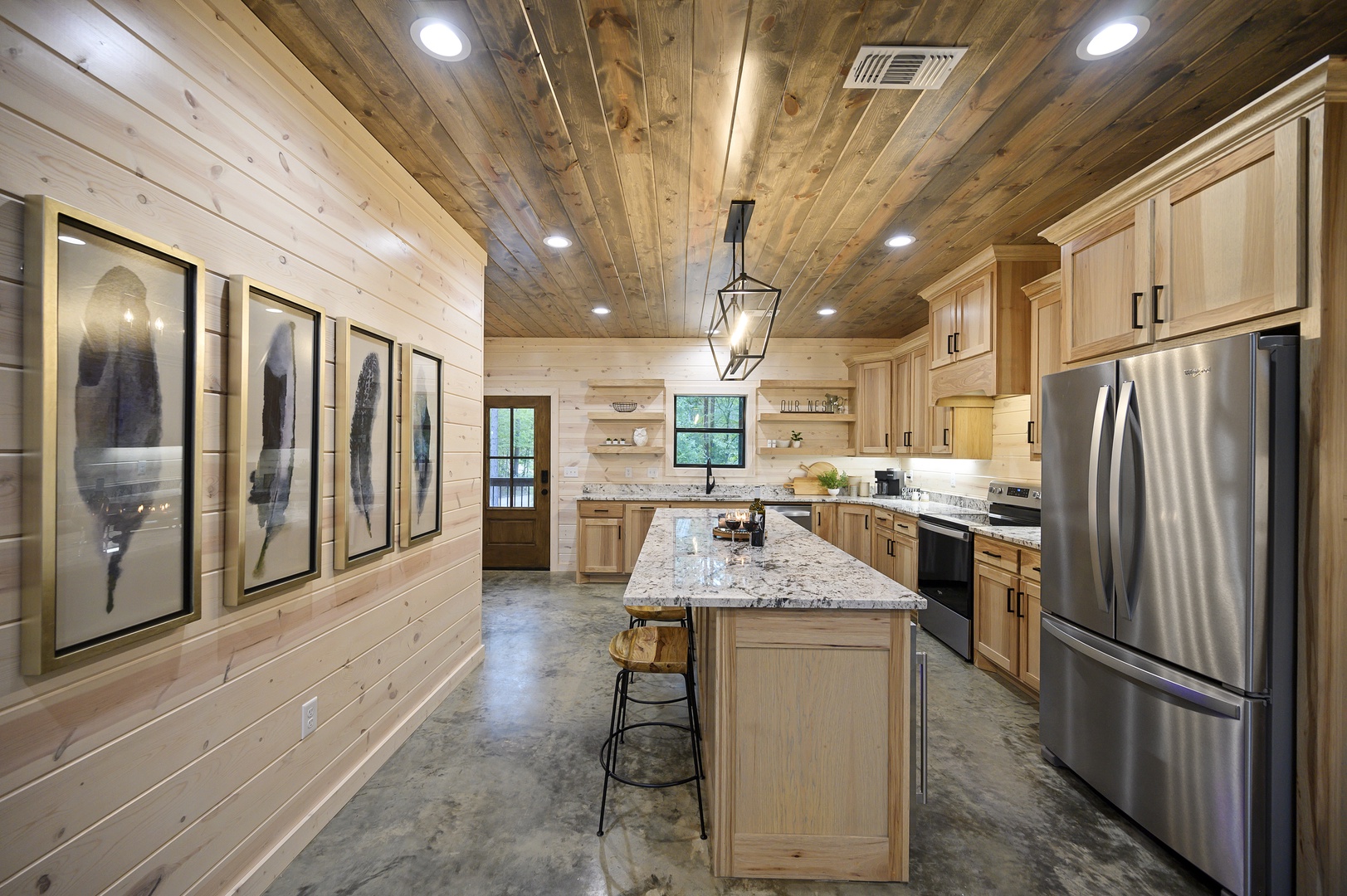 Night Owl Home Broken Bow Night Owl Back to Search Results Night Owl Open Gallery Gallery View Broken Bow, Oklahoma 3 Bedrooms 3 full, 1 half Baths 14 Guests Pets OK Description Rooms Amenities Reviews Calendar Location Night Owl is a luxurious, brand-new cabin nestled in a secluded cul-de-sac in Cedar Hills, Broken Bow, Oklahoma. Surrounded by a serene tree farm, this two-story retreat comfortably sleeps 14 guests and is perfect for families and friends seeking a peaceful escape (bring those furry friends with you too, because this cabin is pet friendly - see the end of this description for fee info and services you can add to your stay)! The cabin features two king suites with en-suite bathrooms, a spacious bunk room, and an open-concept living area with a stone fireplace and floor-to-ceiling windows. Guests will love the en suite sanctuaries, tastefully decked out bunk room, and chef’s kitchen, while the outdoor space offers a large porch with a gas-log fireplace, hot tub, propane grill, playscape, and outdoor games like cornhole, yard Yahtzee, and bocce ball. A stone fire pit for roasting marshmallows and gathering together as family or friends (or both) adds extra fun to the experience. Conveniently located for short drives to Hochatown, downtown Broken Bow, Beavers Bend State Park, the new Choctaw Landing casino, and a quick trip to Broken Bow Lake, Night Owl is the ideal base for both relaxation and adventure. Whether you’re soaking in the hot tub or exploring the nearby attractions, this spacious retreat has everything you need for an unforgettable stay. As soon as you step through the front door, you’re greeted by a chef’s kitchen that will inspire any culinary enthusiast. Featuring quartz countertops, stainless steel appliances, and a wine fridge, this kitchen is the perfect space to gather and create memorable meals. With its open floor plan and walls of windows, the living area fills with natural light, offering a seamless connection between indoor and outdoor living. The living room, with its stone fireplace and cozy seating, is ideal for unwinding after a day of exploring the nearby Beavers Bend State Park or Broken Bow Lake. Whether you’re dining at the eight-seat table or snacking at the kitchen island, you’ll never feel disconnected from the group, thanks to the cabin’s inviting, communal design. Night Owl boasts two king suites, each offering a private sanctuary with plush bedding, 55-inch smart TVs, and spa-like en-suite bathrooms. These bathrooms are designed for ultimate relaxation, featuring soaking tubs, walk-in showers, and spacious vanities. One suite is conveniently located on the ground floor, while the second suite upstairs comes with its own game loft, perfect for poker nights or board games with the family. For the younger (or young-at-heart) guests, the downstairs bunk room is a dream come true. With two twin-over-twin built-in bunk beds, complete with pull-out trundles, and a sleeper sofa, this room comfortably sleeps up to 8. The bunk room isn’t just for sleeping—it’s a fun zone equipped with a game console and foosball table, ready to spark some friendly competition. At Night Owl, the outdoor experience is just as incredible as the indoor one. Step out onto the expansive back porch and take in the serene views of the lush tree farm that stretches endlessly before you. Whether you're sipping your morning coffee or enjoying an evening drink by the outdoor gas-log fireplace, this peaceful setting will quickly become your favorite spot. When it’s time to dine al fresco, fire up the propane grill and enjoy meals at the outdoor dining table, surrounded by the beauty of nature. Afterward, relax in the large hot tub, perfectly positioned in front of the outdoor TV and fireplace—a perfect way to unwind after a day of adventure. For those who love a little friendly competition, the outdoor area is packed with fun activities, including a playscape, yard Yahtzee, cornhole, horseshoes and bocce ball. And no cabin getaway is complete without a stone fire pit, where you can roast marshmallows, tell stories, and create memories that will last a lifetime. Night Owl is designed with families in mind. Kids will love the outdoor playscape, and parents will appreciate the desk tucked into the downstairs king suite, offering a quiet spot to work remotely or catch up on emails. With reliable Wi-Fi and smart TVs throughout the cabin, you’ll have all the modern amenities you need while still feeling far from the hustle and bustle of everyday life. Located just a short drive from Hochatown, Beavers Bend State Park, and Broken Bow Lake, Night Owl is perfectly situated for those looking to explore the natural beauty of southeast Oklahoma. Whether you’re hiking, boating, or dining at local restaurants, everything is within reach while still allowing you to return to the privacy and tranquility of your secluded cabin. Come experience the luxury, comfort, and natural beauty that Night Owl offers. This isn’t just a cabin; it’s a retreat where cherished memories are made. Whether you’re relaxing by the fire, soaking in the hot tub, or enjoying a game night in the loft, Night Owl provides the perfect backdrop for your Broken Bow getaway. Book your stay today and immerse yourself in the unparalleled serenity of this one-of-a-kind luxury cabin. Guest notes and added services:  P e t s : *There is a flat fee of $50/night if you are bringing pet(s). Pet limit is 2. Please reach out to us if you have a special request. F i r e w o o d:  You can opt for bundles of firewood to be delivered to your cabin for your stay. 6-8 pieces (depending on size) for $20. Fee is collected after the reservation confirmation has been sent. E a r l y / L a t e: We may be able to offer early check-in or late check-out (2 additional hours) for $50 unless there is another reservation within 24 hours of your reservation. This must be requested and approved by your SkyRun host!