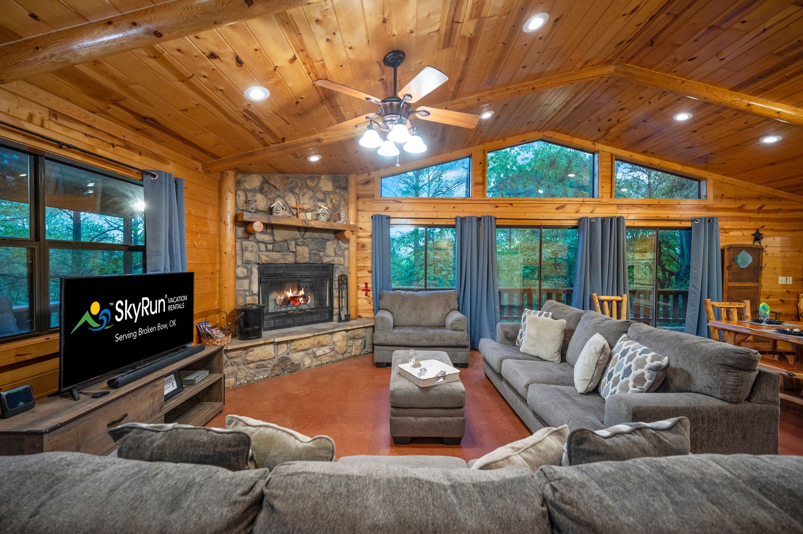 Sasquatch Hills Home Broken Bow Sasquatch Hills Back to Search Results Sasquatch Hills Open Gallery 8-web-or-mls-DSC_2099 Gallery View Broken Bow, Oklahoma 3 Bedrooms 3 full Baths 14 Guests Pets OK (5.0) Description Rooms Amenities Reviews Calendar Location Nestled within the serene embrace of the Ouachita National Forest, Sasquatch Hills offers a harmonious blend of rustic charm and modern luxury. Situated on a hilly, wooded two-acre lot in the prestigious Southern Hills area, this cabin provides a tranquil retreat just minutes from Beavers Bend State Park, Broken Bow Lake, and the Mountain Fork River. Spanning over 1,700 square feet of thoughtfully designed living space, Sasquatch Hills comfortably accommodates up to 14 guests and those furry friends (make sure to check the end of the description for related fees and additional services), making it ideal for families or groups seeking a spacious getaway. The cabin features two king bedrooms on the main floor, with one offering an ensuite bathroom. The upper level holds a generous room furnished with bunk beds and its own ensuite bathroom, providing a cozy haven for younger guests or additional members of your party. Relive classic gaming moments with the arcade machine in the bunk room featuring over 60 titles. Sasquatch Hills integrates an authentic "log cabin in the woods" experience with contemporary conveniences. Stay connected with high-speed internet and enjoy entertainment on smart TVs located in the living room and all bedrooms. The fully equipped kitchen will support all your on-property cooking plans, while the outdoor propane grill on the deck (propane provided) is perfect for outdoor cooking. Gather around the dining table for shared meals and moments you'll never forget. Embrace the natural beauty that surrounds Sasquatch Hills from the comfort of its two levels of wrap-around decking. Relax in the recessed hot tub under a canopy of stars, engage in friendly competition with the foosball table and corn hole games, or take a moment to breathe on the porch swing as you soak in the tranquil forest views. Evenings can be spent around the fire pit, sharing stories and roasting marshmallows, creating lasting memories in a picturesque setting. Families will love our newly added backyard playground—designed with fun and adventure in mind! Featuring a charming swing set nestled among the trees, it’s the perfect spot for little ones to let their imaginations run wild. Whether they’re swinging, climbing, or simply exploring, kids will stay happily entertained while parents unwind and take in the peaceful surroundings. This delightful outdoor addition is just one more reason Sasquatch Hills continues to be a favorite for families of all ages. Sasquatch Hills' prime location offers easy access to a variety of outdoor adventures. Explore the hiking trails and scenic beauty of Beavers Bend State Park, embark on boating and fishing excursions at Broken Bow Lake, or experience the thrill of kayaking on the Mountain Fork River. The nearby town of Hochatown provides charming dining options, boutique shopping, and local attractions, ensuring a well-rounded and fulfilling stay. Designed to cater to both relaxation and recreation, Sasquatch Hills is the perfect destination for those seeking a retreat that balances seclusion with accessibility. The cabin's spacious layout and abundant amenities promise a comfortable and enjoyable experience for all. Managed by SkyRun Broken Bow, Sasquatch Hills is committed to providing guests with exceptional service and a memorable stay. Escape to Sasquatch Hills, where the tranquility of the forest meets the comforts of home, offering a unique and unforgettable retreat in the heart of Oklahoma's natural beauty. GUEST NOTES AND ADDED SERVICES: P E T S : There is a flat fee of $50/night if you are bringing pet(s). Please reach out to us if you have a special request. F I R E W O O D : You can opt for bundles of firewood to be delivered to your cabin for your stay. 6-8 pieces (depending on size) for $20. Fee is collected after the reservation confirmation has been sent. E A R L Y / L A T E: We may be able to offer early check-in or late check-out (2 additional hours) for $50 unless there is another reservation within 24 hours of your reservation. This must be requested and approved by your SkyRun host! We compensate our team additional funds for accommodating guest requests and coordinating their daily schedules and/or working after hours to help make this happen for our valued guests. Fee is collected after the reservation confirmation has been sent. F i r e p l a c e s : Fireplaces are free to be enjoyed seasonally October 1st through April 30th. You are welcome to use the outdoor wood burning fire pit year round! No cooking or roasting marshmallows in any fireplaces, but please roast away on those wood burning fire pits! Tampering or turning on fireplaces outside of the seasonal window will result in fines. WIFI AVAILABILITY: Wi-Fi is provided as a complimentary convenience for our guest; however, it is not considered an essential part of the rental. Refunds will not be issued for Wi-Fi-related issues including connectivity, speed, local outages, or accessibility. What We Provide To help you settle in comfortably, we provide a starter supply of the following essentials: Kitchen • Paper towels • Garbage bags • Kitchen dish soap • Hand soap • Dishwashing pods or detergent • Dish sponge Drinks • Coffee • Creamer • Coffee filters Bathrooms • Shampoo • Conditioner • Body wash • Hand soap • Toilet paper Laundry • Laundry detergent Please note: These items are provided as a starter supply to get you through the first part of your stay. Guests may need to provide or purchase additional toiletries and supplies as needed. Rooms King En Suite Downstairs 1 King King Bedroom Downstairs 1 King Upstairs Bunk Room 4 Double 2 Twin 1 Queen Amenities Location & Attractions Marina Zoo Fa