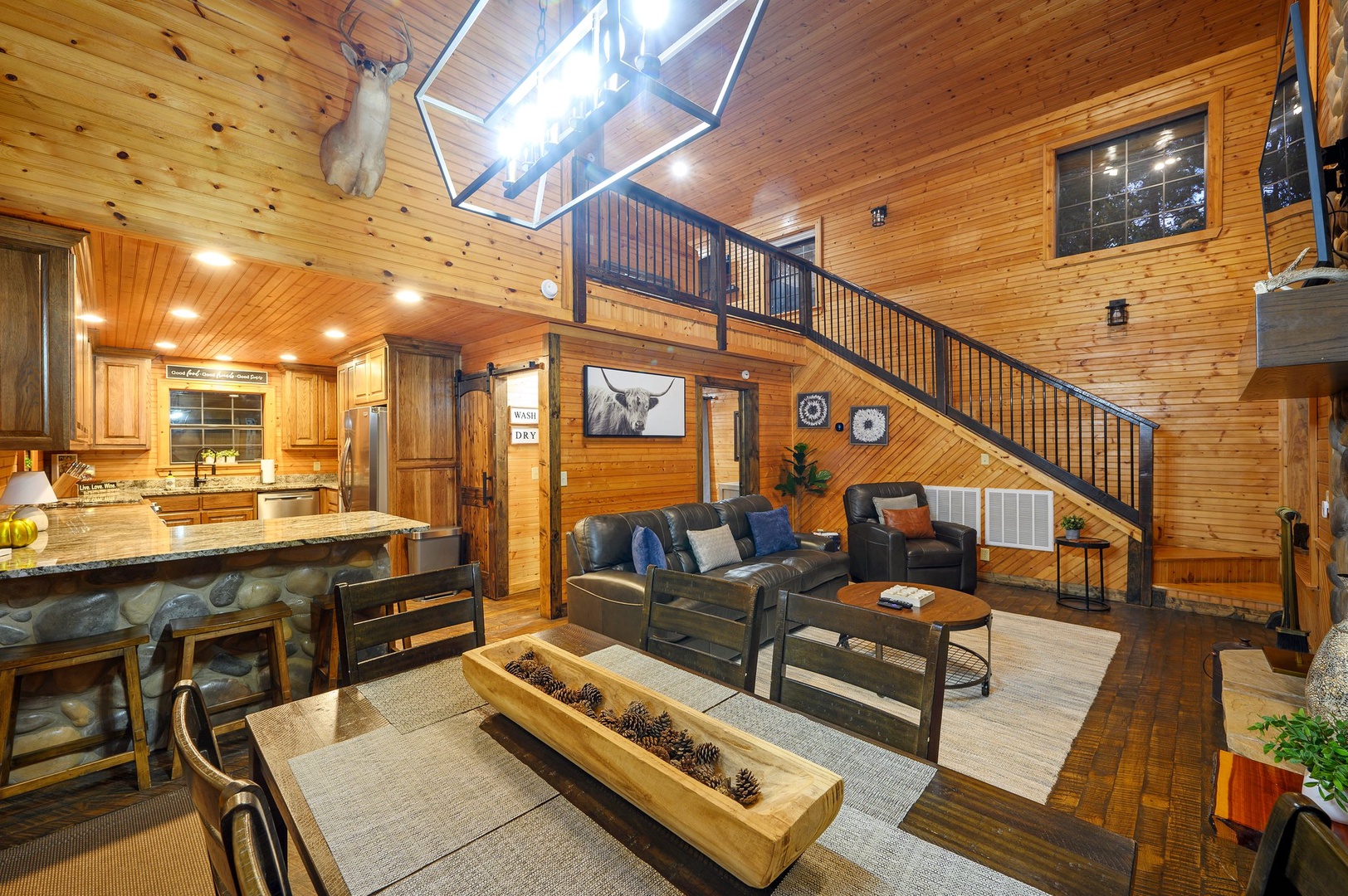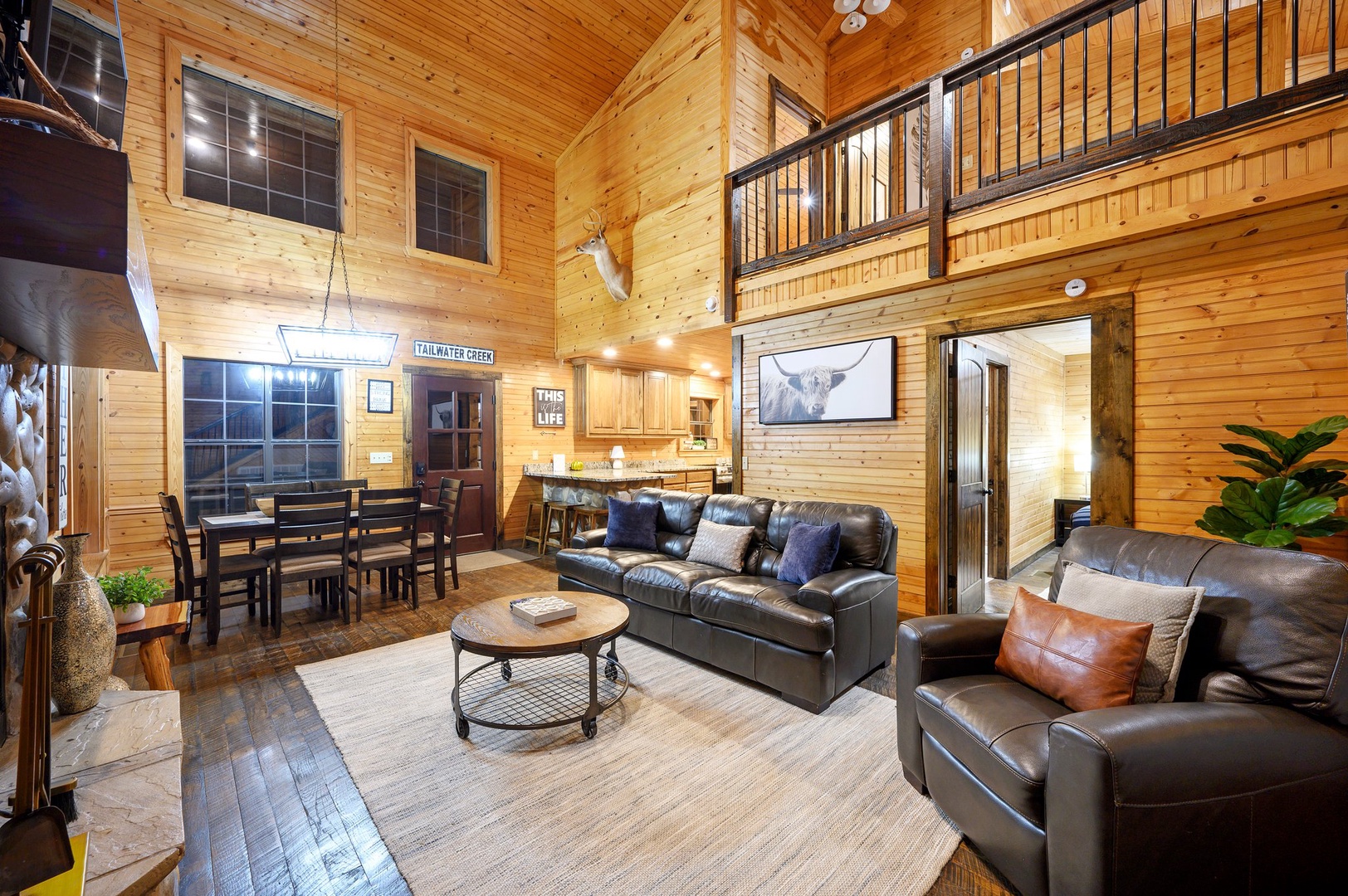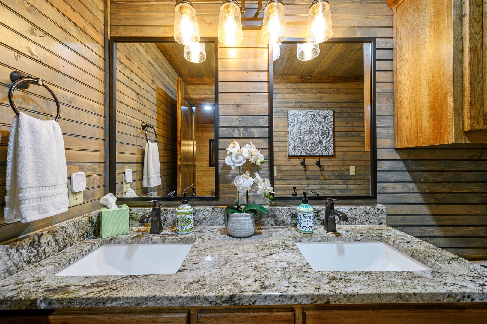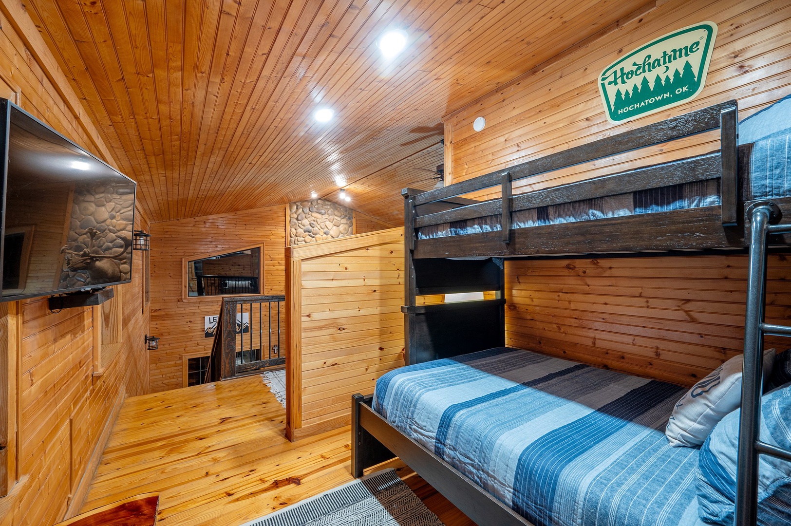 Tailwater Creek Home Broken Bow Tailwater Creek Tailwater Creek Welcome to Tailwater Creek! A classic Broken Bow cabin that's waiting for you in the Ouachita National Forest right down the road from the State Park! You'll enjoy the charm of the cabin and will feel right at home while you're here. Enjoy the private hot tub on the deck sitting among the trees of the Ouachita National Forest. Sit under the stars and roast your mallows to perfect golden perfection! Look at all that counter space! Lots of room for prep as you whip up some of your vacation tradition meals. Open Gallery Welcome to Tailwater Creek! A classic Broken Bow cabin that's waiting for you in the Ouachita National Forest right down the road from the State Park! You'll enjoy the charm of the cabin and will feel right at home while you're here. Enjoy the private hot tub on the deck sitting among the trees of the Ouachita National Forest. Sit under the stars and roast your mallows to perfect golden perfection! Look at all that counter space! Lots of room for prep as you whip up some of your vacation tradition meals. The first floor holds this king bedroom en suite with TV. Upstairs is the second bedroom (not an en suite), bathroom access just outside the door. The loft at the top of the stairs is versatile and can hold kids or extra guests! The living room is a beautiful central anchor to the cabin where everyone can gather and feel connected. The primary en suite bathroom downstairs features a walk-in shower and a vanity with dual sinks. Upstairs the second bedroom and loft share this full bathroom located in between the bedroom and loft so both have easy access. The wraparound porch is one of the best features here, allowing you to catch the best breeze currently blowing and still get views all around! Let's walk inside and start our tour! Upon entering the cabin you walk directly into the open concept living and dining room, connected directly to the kitchen. The abundant counter space will help you both prep for and serve those meals! Kitchen comes equipped with the major modern appliances you're used to including a dishwasher, fridge, freezer and microwave. A large sink sits in the kitchen to hold your dishes and help you procrastinate doing dishes a little longer... Walking back through the kitchen towards the living room you'll see the built in microwave. You can get your morning, afternoon, evening and nighttime coffee fix with this single serve K-Cup brewer. Bring your own coffee as only a few samples will be provided. On your left as you're walking out of the kitchen is your washer and dryer sitting behind a sliding barn dor. Exiting the kitchen we come back into the living room and are greeted by the floor to ceiling rock fire place (wood burning). Enjoy a wood burning fire and let the crackling ambiance be the soundtrack of your cozy evening. On the first floor at the back of the living room sits the primary suite. A comfortable king bed awaits for you to rest and recharge after a full day of adventures. A smart TV hangs at the end of the room for you to wind down with your current favorite show. The en suite bath features a beautiful walk in shower. This dual sink vanity has plenty of room for both of you to get ready! Leaving the primary suite we'll start heading upstairs to the loft and second bedroom. AT the top of the stairs there's a landing which is where the full bathroom is located for the upstairs guests. The loft holds a twin over full bunk. The loft has its own TV and a pony wall to provide some additional privacy. Turning right out of the loft you you can start heading towards the full bath and second bedroom. Just before you get to the second bedroom, the full bathroom will be on your right. All upstairs guests have access to this bathroom as it is open to the landing and not located in a bedroom. The second bedroom holds a queen bed with its own TV. Up here you'll enjoy elevated views of the surrounding grounds and forest. The second bedroom holds a queen bed with its own TV. Exiting the bedroom we return to the landing and start our descent down the stairs to checkout what the outside has to offer! The wraparound porch has several seating areas so you never miss a breeze! The wraparound porch is completely roofed so you can sit outside rain or shine. Off one side of the porch is a second level deck with a setting for al fresco dining in the fresh Oklahoma air! Off the second level deck is another step down to the private hot tub. A little ways off the deck is the fire pit area with string lights to provide extra lighting and ambiance. The wraparound porch is one of the best features here, allowing you to catch the best breeze currently blowing and still get views all around! We love the proximity of the trees to the cabin and porch as it helps provide refreshing forest views and a sense of seclusion. A gas grill awaits for the griller in your family! Propane is provided. A spider web swing hangs underneath the porch which looks like a pretty good reading spot to me! Come have an authentic Broken Bow experience at Tailwater Creek and be right down the road from trail heads and the State Park! Gallery View Broken Bow, Oklahoma 2 Bedrooms 2 full Baths 7 Guests Pets OK Description Rooms Amenities Reviews Calendar Location Welcome to Tailwater Creek, an authentic Broken Bow experience only 2-3 minutes from trail heads and the State Park entrance! Escape to the serene beauty of Broken Bow, Oklahoma, and experience a stay at the charming Tailwater Creek, nestled among the towering pines and hardwoods of the Ouachita National Forest. This cozy cabin is designed to be your home away from home, offering comfort, convenience, and a touch of rustic elegance that captures the essence of a true Broken Bow retreat. Tailwater Creek is a spacious two-bedroom cabin with a loft, comfortably accommodating up to 7 guests (bring those furry friends with you too, because this cabin is pet friendly - see the end of this