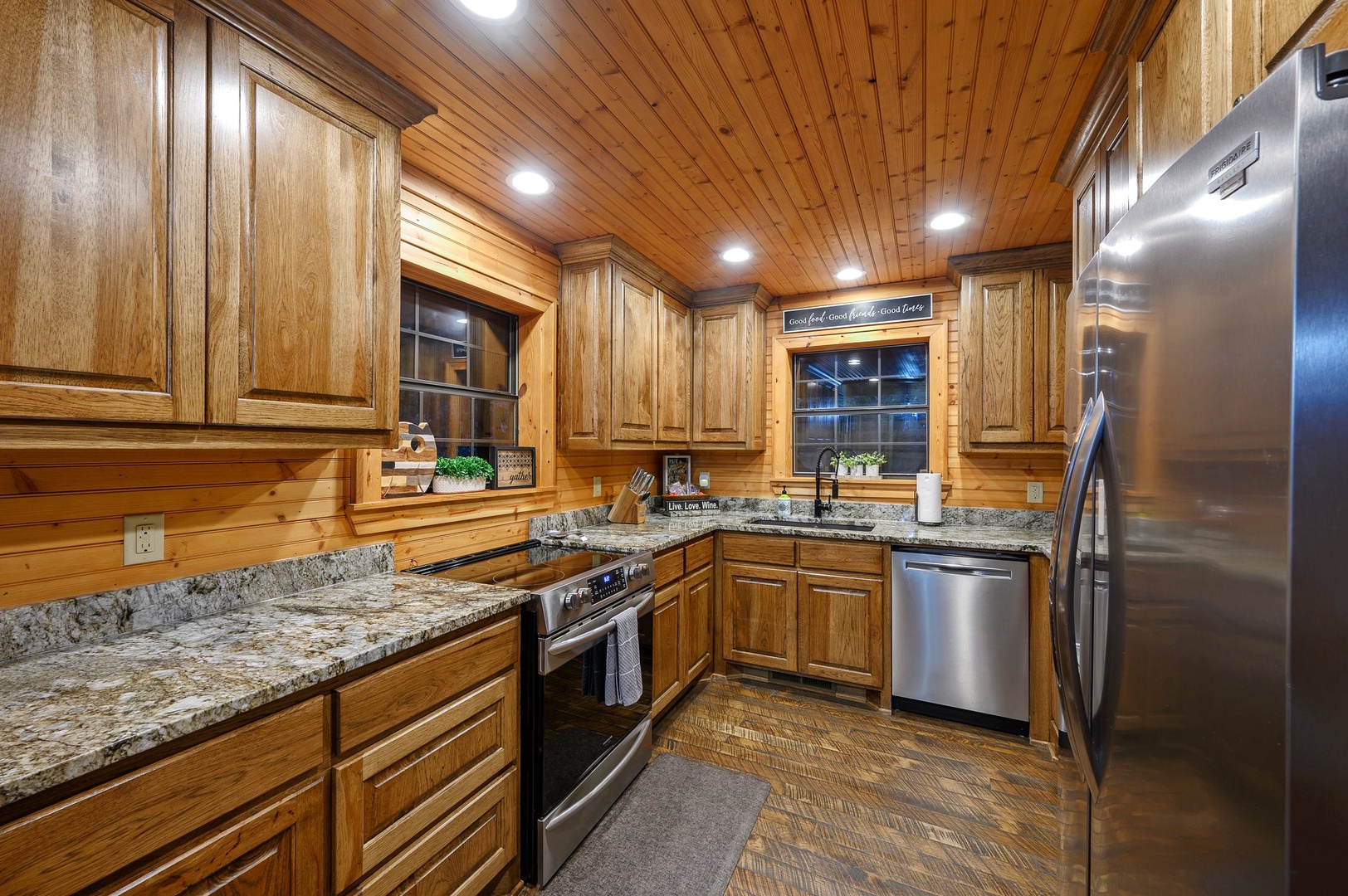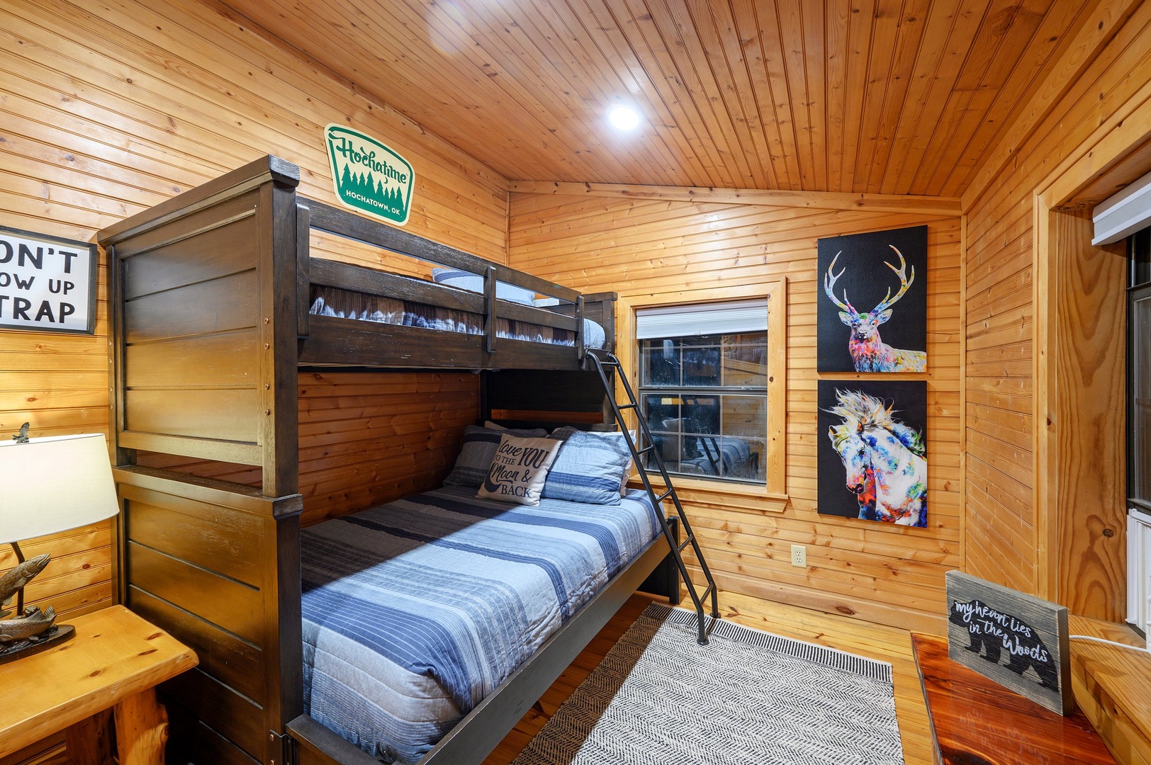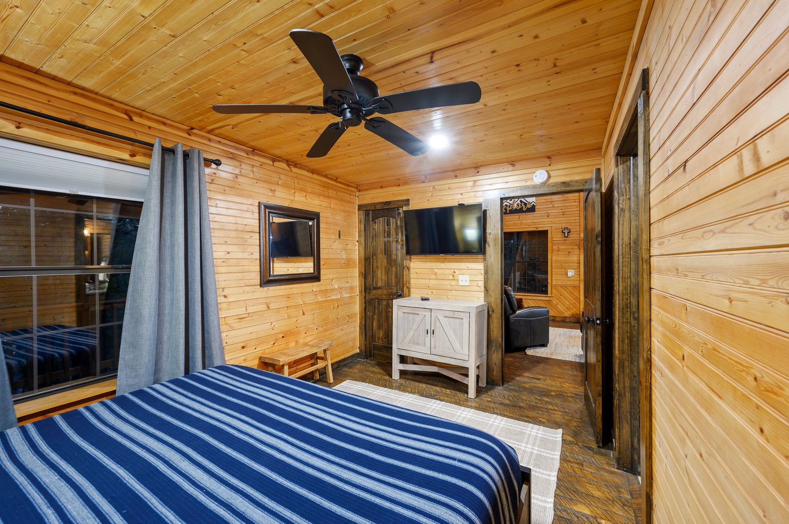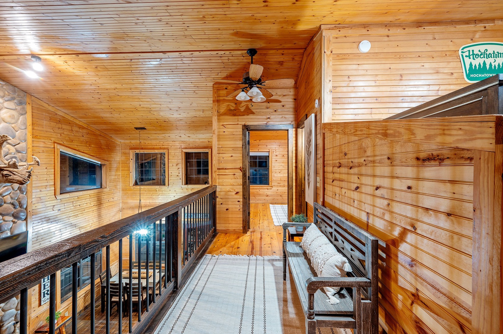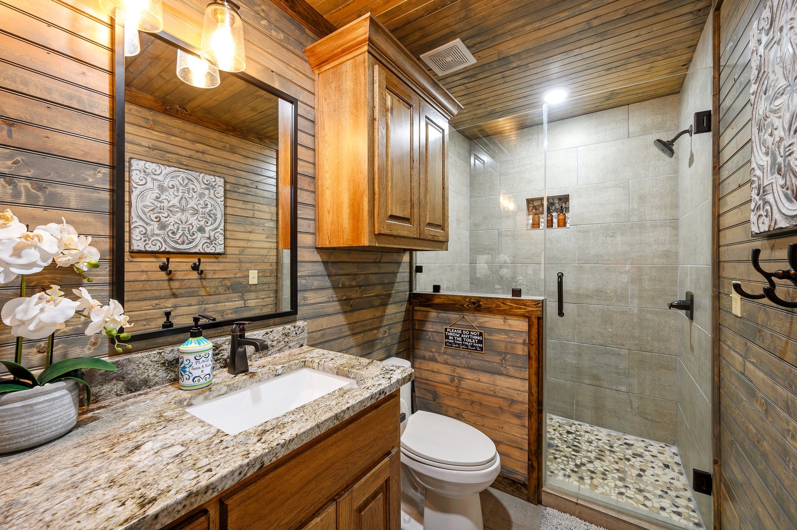 Tailwater Creek Home Broken Bow Tailwater Creek Tailwater Creek Welcome to Tailwater Creek! A classic Broken Bow cabin that's waiting for you in the Ouachita National Forest right down the road from the State Park! You'll enjoy the charm of the cabin and will feel right at home while you're here. Enjoy the private hot tub on the deck sitting among the trees of the Ouachita National Forest. Sit under the stars and roast your mallows to perfect golden perfection! Look at all that counter space! Lots of room for prep as you whip up some of your vacation tradition meals. Open Gallery Welcome to Tailwater Creek! A classic Broken Bow cabin that's waiting for you in the Ouachita National Forest right down the road from the State Park! You'll enjoy the charm of the cabin and will feel right at home while you're here. Enjoy the private hot tub on the deck sitting among the trees of the Ouachita National Forest. Sit under the stars and roast your mallows to perfect golden perfection! Look at all that counter space! Lots of room for prep as you whip up some of your vacation tradition meals. The first floor holds this king bedroom en suite with TV. Upstairs is the second bedroom (not an en suite), bathroom access just outside the door. The loft at the top of the stairs is versatile and can hold kids or extra guests! The living room is a beautiful central anchor to the cabin where everyone can gather and feel connected. The primary en suite bathroom downstairs features a walk-in shower and a vanity with dual sinks. Upstairs the second bedroom and loft share this full bathroom located in between the bedroom and loft so both have easy access. The wraparound porch is one of the best features here, allowing you to catch the best breeze currently blowing and still get views all around! Let's walk inside and start our tour! Upon entering the cabin you walk directly into the open concept living and dining room, connected directly to the kitchen. The abundant counter space will help you both prep for and serve those meals! Kitchen comes equipped with the major modern appliances you're used to including a dishwasher, fridge, freezer and microwave. A large sink sits in the kitchen to hold your dishes and help you procrastinate doing dishes a little longer... Walking back through the kitchen towards the living room you'll see the built in microwave. You can get your morning, afternoon, evening and nighttime coffee fix with this single serve K-Cup brewer. Bring your own coffee as only a few samples will be provided. On your left as you're walking out of the kitchen is your washer and dryer sitting behind a sliding barn dor. Exiting the kitchen we come back into the living room and are greeted by the floor to ceiling rock fire place (wood burning). Enjoy a wood burning fire and let the crackling ambiance be the soundtrack of your cozy evening. On the first floor at the back of the living room sits the primary suite. A comfortable king bed awaits for you to rest and recharge after a full day of adventures. A smart TV hangs at the end of the room for you to wind down with your current favorite show. The en suite bath features a beautiful walk in shower. This dual sink vanity has plenty of room for both of you to get ready! Leaving the primary suite we'll start heading upstairs to the loft and second bedroom. AT the top of the stairs there's a landing which is where the full bathroom is located for the upstairs guests. The loft holds a twin over full bunk. The loft has its own TV and a pony wall to provide some additional privacy. Turning right out of the loft you you can start heading towards the full bath and second bedroom. Just before you get to the second bedroom, the full bathroom will be on your right. All upstairs guests have access to this bathroom as it is open to the landing and not located in a bedroom. The second bedroom holds a queen bed with its own TV. Up here you'll enjoy elevated views of the surrounding grounds and forest. The second bedroom holds a queen bed with its own TV. Exiting the bedroom we return to the landing and start our descent down the stairs to checkout what the outside has to offer! The wraparound porch has several seating areas so you never miss a breeze! The wraparound porch is completely roofed so you can sit outside rain or shine. Off one side of the porch is a second level deck with a setting for al fresco dining in the fresh Oklahoma air! Off the second level deck is another step down to the private hot tub. A little ways off the deck is the fire pit area with string lights to provide extra lighting and ambiance. The wraparound porch is one of the best features here, allowing you to catch the best breeze currently blowing and still get views all around! We love the proximity of the trees to the cabin and porch as it helps provide refreshing forest views and a sense of seclusion. A gas grill awaits for the griller in your family! Propane is provided. A spider web swing hangs underneath the porch which looks like a pretty good reading spot to me! Come have an authentic Broken Bow experience at Tailwater Creek and be right down the road from trail heads and the State Park! Gallery View Broken Bow, Oklahoma 2 Bedrooms 2 full Baths 7 Guests Pets OK Description Rooms Amenities Reviews Calendar Location Welcome to Tailwater Creek, an authentic Broken Bow experience only 2-3 minutes from trail heads and the State Park entrance! Escape to the serene beauty of Broken Bow, Oklahoma, and experience a stay at the charming Tailwater Creek, nestled among the towering pines and hardwoods of the Ouachita National Forest. This cozy cabin is designed to be your home away from home, offering comfort, convenience, and a touch of rustic elegance that captures the essence of a true Broken Bow retreat. Tailwater Creek is a spacious two-bedroom cabin with a loft, comfortably accommodating up to 7 guests (bring those furry friends with you too, because this cabin is pet friendly - see the end of this