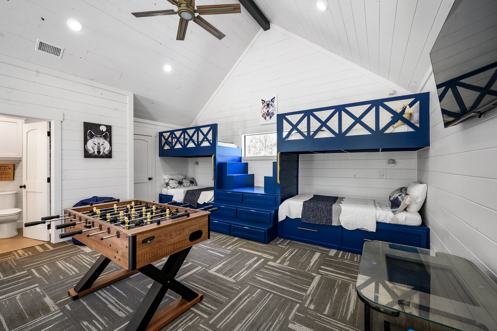 White Wolf Lodge White Wolf Lodge Open Gallery Gallery View Broken Bow, Oklahoma 3 Bedrooms 3 full Baths 10 Guests Pets OK Description Rooms Amenities Reviews Calendar Location White Wolf Lodge | Luxe Broken Bow Escape with Two King Suites + Bunk Loft | Sleeps 10 | Near Lake and Casino Welcome to White Wolf Lodge, where high-end design meets cozy woodland comfort. Nestled in the heart of Broken Bow’s coveted Eagle Mountain development, this luxury retreat offers a flawless balance of privacy, proximity, and pure indulgence. Whether you’re sipping coffee by the fireplace or roasting s’mores under string-lit skies, your escape to White Wolf Lodge will be anything but ordinary. LUXURY LODGING THAT FEELS LIKE HOME Step inside and be welcomed by soaring 30-foot ceilings, a floor-to-ceiling stone gas fireplace, and a curated mix of custom lighting and upscale furnishings. This isn’t your average cabin — from the textures to the textiles, every detail has been thoughtfully designed to deliver a high-end hotel experience with the warmth of a private mountain home. The open-concept kitchen and living area is perfect for entertaining, with a large island, a pot filler over the gas stove, built-in oven and microwave, and gorgeous finishes throughout. Share meals, play games, or simply relax on the couches while catching a movie on the smart TV by the fireplace. A spacious mudroom with a built-in hall tree helps keep your crew organized, and the private washer and dryer make extended stays a breeze. SLEEP LIKE ROYALTY White Wolf Lodge comfortably sleeps up to 10 guests across three distinct sleeping spaces: - Two King En Suites (Downstairs): Each private suite features a luxurious bathroom with tiled walk-in showers (complete with dual shower heads, including a rainfall head), a freestanding soaking tub, high-end finishes, and a Smart TV. You’ll feel pampered the moment you unpack. - Bunk Room Loft (Upstairs): Open to the living area below, this custom-built bunk room includes 6 twin beds (twin-over-twin bunks with pull-out trundles below each) and a full private bathroom. Kids and teens will love their own hideaway with a foosball table, Smart TV, comfy beanbag seating, and a modern arcade system loaded with all the classics for unlimited play. OUTDOOR AMENITIES FOR EVERYONE The outdoor living space is just as thoughtfully appointed. The covered back deck is perfect for year-round enjoyment, featuring: - A gas outdoor fireplace with mounted Smart TV - Plenty of seating for lounging or dining - A gas grill for cookouts - Hammocks for a peaceful afternoon nap - A fire pit area with custom fire pit swings and twinkling string lights - A playscape for kids to climb, swing, and explore LOCATION, LOCATION, LOCATION You’ll be staying in one of the most central and desirable locations in Broken Bow — just minutes from everything: Mountain Fork Brewery (walking distance) Grateful Head Pizza, Girls Gone Wine, Abendigo’s, and other top dining spots Beavers Bend State Park and Marina – 10 minutes Broken Bow Lake: 10 minutes Choctaw Landing Casino, Pressa Italia, and Tuklo Grill: 5-10 minutes Whether you're chasing waterfalls, tasting local wines, or launching a boat on the lake, White Wolf Lodge places you within arm’s reach of it all. PET-FRIENDLY POLICY Bring your four-legged friends! Dogs are welcome, with a strict limit of 2 dogs under 100 lbs each. Please be sure to mention your furry guests at booking by including them in the guest count. White Wolf Lodge isn't just a place to sleep — it’s a place to reconnect, unwind, and experience Broken Bow the way it was meant to be. Luxury finishes, thoughtful touches, and a layout designed for memory-making make this cabin the ultimate home base for families and friends. GUEST NOTES AND ADDED SERVICES: P E T S : *There is a flat fee of $50/night if you are bringing pet(s). Pet limit is strictly 2. Please reach out to us if you have a special request. F I R E W O O D : You can opt for a starter pack of firewood to be delivered to your cabin for your stay. 6-8 pieces (depending on size) for $20. Fee is collected after the reservation confirmation has been sent. E A R L Y / L A T E: We may be able to offer early check-in or late check-out (2 additional hours) for $50 unless there is another reservation within 24 hours of your reservation. This must be requested and approved by your SkyRun host! We compensate our team additional funds for accommodating guest requests and coordinating their daily schedules and/or working after hours to help make this happen for our valued guests. Fee is collected after the reservation confirmation has been sent. W I F I: Wifi comes with every cabin rental. Its reliability is subject to the area provider. SkyRun Broken Bow doesn't ensure speed or reliability, and no refunds will be issued for outages in the area. F i r e p l a c e s : Fireplaces are free to be enjoyed seasonally October 1st through April 30th. You are welcome to use the outdoor wood burning fire pit year round! No cooking or roasting marshmallows in any fireplaces, but please roast away on those wood burning fire pits! Tampering or turning on fireplaces outside of the seasonal window will result in fines. Rooms King En Suite 1 1 King King En Suite 2 1 King Amenities Location & Attractions Marina Zoo Family Themed Health Beauty Spa Rural Lake Access Winery Tours Pool & Spa Hot Tub Hot Tub - Private Sports, Leisure & Adventure Antiquing Horseback Riding Jet Skiing Paddle Boating Water Skiing Water Tubing Bird Watching Boating Eco Tourism Fishing Fishing - Bay Fishing - Fly Fishing - Freshwater Gambling Golf Hiking Mountain Biking Shopping Swimming Wildlife Viewing Hunting Rock Climbing Bathroom Body Soap Conditioner Hot Water Shampoo Shower Gel Hair Dryer Bathtub Bedroom & Laundry Bed Linens Dryer - Private Towels Washer - Private Essentials Extra Pillows & Blankets Iron & Ironing Board Cleanliness & Safety Carbon Monoxide Detector Common Surface