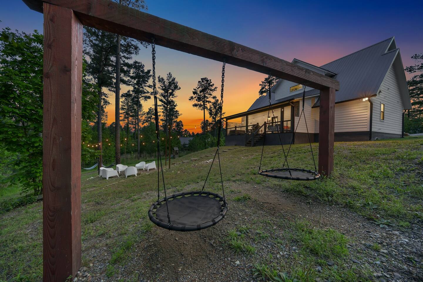 White Wolf Lodge Back to Search Results White Wolf Lodge Open Gallery Gallery View Broken Bow, Oklahoma 3 Bedrooms 3 full Baths 10 Guests Pets OK Description Rooms Amenities Reviews Calendar Location White Wolf Lodge | Luxe Broken Bow Escape with Two King Suites + Bunk Loft | Sleeps 10 | Near Lake and Casino Welcome to White Wolf Lodge, where high-end design meets cozy woodland comfort. Nestled in the heart of Broken Bow’s coveted Eagle Mountain development, this luxury retreat offers a flawless balance of privacy, proximity, and pure indulgence. Whether you’re sipping coffee by the fireplace or roasting s’mores under string-lit skies, your escape to White Wolf Lodge will be anything but ordinary. LUXURY LODGING THAT FEELS LIKE HOME Step inside and be welcomed by soaring 30-foot ceilings, a floor-to-ceiling stone gas fireplace, and a curated mix of custom lighting and upscale furnishings. This isn’t your average cabin — from the textures to the textiles, every detail has been thoughtfully designed to deliver a high-end hotel experience with the warmth of a private mountain home. The open-concept kitchen and living area is perfect for entertaining, with a large island, a pot filler over the gas stove, built-in oven and microwave, and gorgeous finishes throughout. Share meals, play games, or simply relax on the couches while catching a movie on the smart TV by the fireplace. A spacious mudroom with a built-in hall tree helps keep your crew organized, and the private washer and dryer make extended stays a breeze. SLEEP LIKE ROYALTY White Wolf Lodge comfortably sleeps up to 10 guests across three distinct sleeping spaces: - Two King En Suites (Downstairs): Each private suite features a luxurious bathroom with tiled walk-in showers (complete with dual shower heads, including a rainfall head), a freestanding soaking tub, high-end finishes, and a Smart TV. You’ll feel pampered the moment you unpack. - Bunk Room Loft (Upstairs): Open to the living area below, this custom-built bunk room includes 6 twin beds (twin-over-twin bunks with pull-out trundles below each) and a full private bathroom. Kids and teens will love their own hideaway with a foosball table, Smart TV, comfy beanbag seating, and a modern arcade system loaded with all the classics for unlimited play. OUTDOOR AMENITIES FOR EVERYONE The outdoor living space is just as thoughtfully appointed. The covered back deck is perfect for year-round enjoyment, featuring: - A gas outdoor fireplace with mounted Smart TV - Plenty of seating for lounging or dining - A gas grill for cookouts - Hammocks for a peaceful afternoon nap - A fire pit area with custom fire pit swings and twinkling string lights - A playscape for kids to climb, swing, and explore LOCATION, LOCATION, LOCATION You’ll be staying in one of the most central and desirable locations in Broken Bow — just minutes from everything: Mountain Fork Brewery (walking distance) Grateful Head Pizza, Girls Gone Wine, Abendigo’s, and other top dining spots Beavers Bend State Park and Marina – 10 minutes Broken Bow Lake: 10 minutes Choctaw Landing Casino, Pressa Italia, and Tuklo Grill: 5-10 minutes Whether you're chasing waterfalls, tasting local wines, or launching a boat on the lake, White Wolf Lodge places you within arm’s reach of it all. PET-FRIENDLY POLICY Bring your four-legged friends! Dogs are welcome, with a strict limit of 2 dogs under 100 lbs each. Please be sure to mention your furry guests at booking by including them in the guest count. White Wolf Lodge isn't just a place to sleep — it’s a place to reconnect, unwind, and experience Broken Bow the way it was meant to be. Luxury finishes, thoughtful touches, and a layout designed for memory-making make this cabin the ultimate home base for families and friends. GUEST NOTES AND ADDED SERVICES: P E T S : *There is a flat fee of $50/night if you are bringing pet(s). Pet limit is strictly 2. Please reach out to us if you have a special request. F I R E W O O D : You can opt for a starter pack of firewood to be delivered to your cabin for your stay. 6-8 pieces (depending on size) for $20. Fee is collected after the reservation confirmation has been sent. E A R L Y / L A T E: We may be able to offer early check-in or late check-out (2 additional hours) for $50 unless there is another reservation within 24 hours of your reservation. This must be requested and approved by your SkyRun host! We compensate our team additional funds for accommodating guest requests and coordinating their daily schedules and/or working after hours to help make this happen for our valued guests. Fee is collected after the reservation confirmation has been sent. W I F I: Wifi comes with every cabin rental. Its reliability is subject to the area provider. SkyRun Broken Bow doesn't ensure speed or reliability, and no refunds will be issued for outages in the area. F i r e p l a c e s : Fireplaces are free to be enjoyed seasonally October 1st through April 30th. You are welcome to use the outdoor wood burning fire pit year round! No cooking or roasting marshmallows in any fireplaces, but please roast away on those wood burning fire pits! Tampering or turning on fireplaces outside of the seasonal window will result in fines. Rooms King En Suite 1 1 King King En Suite 2 1 King Amenities Location & Attractions Marina Zoo Family Themed Health Beauty Spa Rural Lake Access Winery Tours Pool & Spa Hot Tub Hot Tub - Private Sports, Leisure & Adventure Antiquing Horseback Riding Jet Skiing Paddle Boating Water Skiing Water Tubing Bird Watching Boating Eco Tourism Fishing Fishing - Bay Fishing - Fly Fishing - Freshwater Gambling Golf Hiking Mountain Biking Shopping Swimming Wildlife Viewing Hunting Rock Climbing Bathroom Body Soap Conditioner Hot Water Shampoo Shower Gel Hair Dryer Bathtub Bedroom & Laundry Bed Linens Dryer - Private Towels Washer - Private Essentials Extra Pillows & Blankets Iron & Ironing Board Cleanliness & Safety Carbon Monoxide 