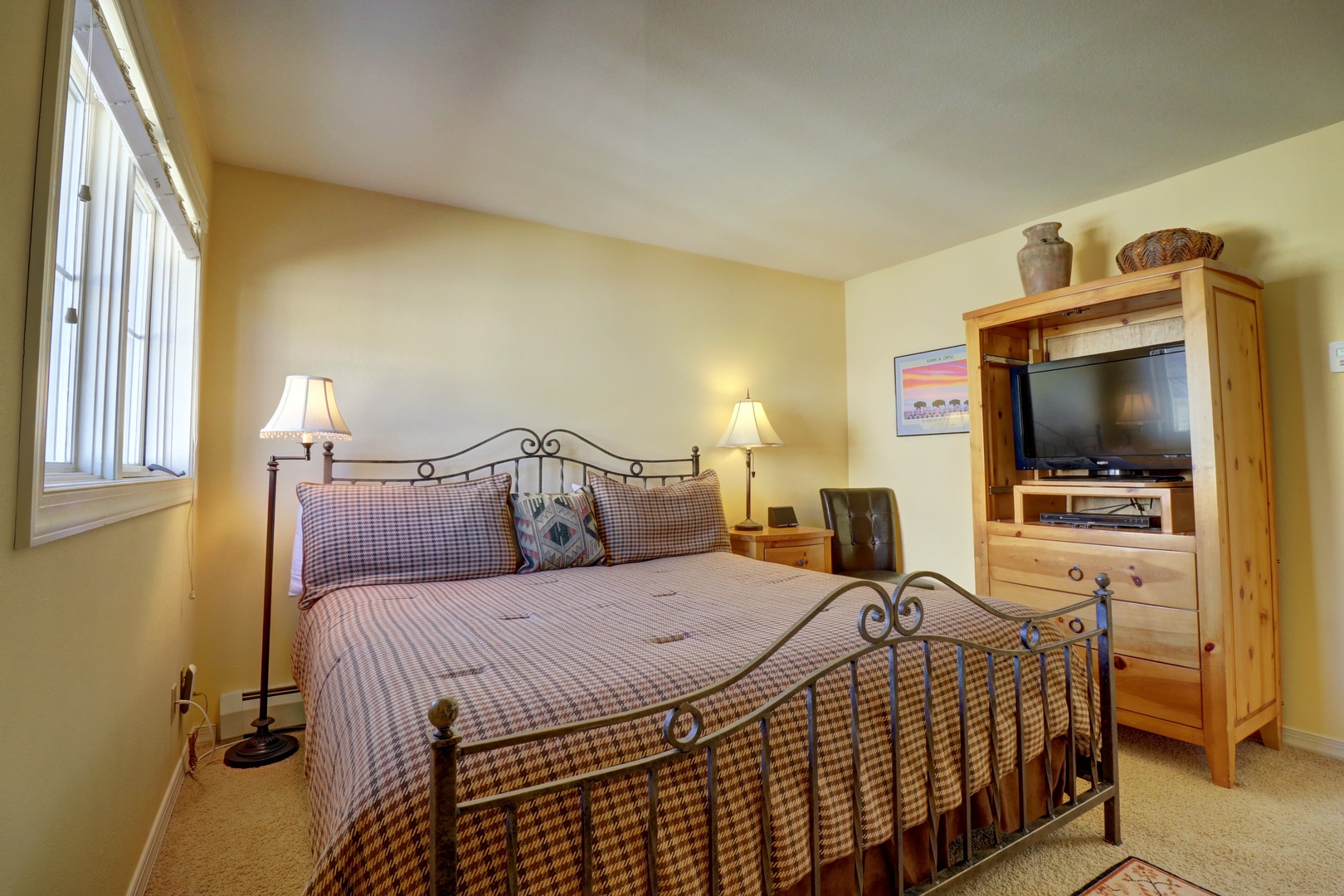 ER12 Elk Run 4BR 4.5BA Home Colorado Copper Mountain ER12 Elk Run 4BR 4.5BA ER12 Elk Run 4BR 4.5BA Spacious living room with large windows offering a view of the snowy East Village ski slopes. Features a fireplace, a cozy sofa, and coffee table. Natural light fills the room. DJI_0189 A cozy living room with a brown leather couch placed next to large windows offering views of Copper Mountain ski slopes. The cozy living room offers a fireplace and large picturesque windows. Open Gallery Spacious living room with large windows offering a view of the snowy East Village ski slopes. Features a fireplace, a cozy sofa, and coffee table. Natural light fills the room. DJI_0189 A cozy living room with a brown leather couch placed next to large windows offering views of Copper Mountain ski slopes. The cozy living room offers a fireplace and large picturesque windows. IMG_8563_4_5_6_7 A living room with high ceilings, large windows, a fireplace, and a wall-mounted TV. The room has a view of East Village ski slopes at Copper Mountain. Living room with a cozy armchair, fireplace, TV, and built-in shelves. A small desk with a chair is on the right. Large windows provide ample light. A bright, high ceiling living room with a cozy sofa, a oversized armchair, coffee table, fireplace, and large windows overlooking snowy ski slopes. The room features carpet flooring and a TV. Views of Copper Mountain ski slopes. Beautiful views of East Village ski slopes. A dining room with a wooden table and chairs. A large window offers an outdoor view of ski slopes. A kitchen and dining area with a wooden table and chairs, a countertop with barstools. Bright lighting from ceiling fixtures illuminates the room. Modern kitchen with light-colored cabinets, granite countertops, black appliances, and a tiled backsplash. A modern kitchen with granite countertops, white cabinets, and stainless steel appliances. Barstools are lined along the island. Decorative items and plants are placed above the cabinets. A kitchen with light-colored cabinets, black appliances including a stove, oven, microwave, and dishwasher, granite countertops, a mosaic tile backsplash, and decorative items above the cabinets. The main floor bathroom features a toilet, a wooden vanity with a glass bowl sink, a mirror with lights above, and framed paintings on the walls. The master bedroom is on the main level of the house and features a king bed, large windows allow ample natural light to come. Cozy king bed, nightstands each have a lamp. The large cozy king bedroom features an en suite bath. A bathroom features a glass-enclosed shower, a bathtub with chrome fixtures, a vanity with a sink, and a mirror above it. A bathroom with a glass-enclosed shower, round bathtub with chrome fixtures, beige walls, a mirror, and a towel hanging on a rail. The downstairs bedroom offers a queen bed, a large window allowing ample natural light in, and an attached bathroom. Cozy downstairs queen bedroom. Attached bathroom with full tub/shower combo. Upstairs bedroom features 2 twin over 2 twin bunk beds. Twin over twin bunk beds, nightstand with lamp. Twin over twin bunks, with attached bathroom. Bunk room features a long dresser with TV and a desk. Bunk room attached bathroom Upstairs queen bedroom with attached bathroom, bedroom features a window with nice mountain views. Cozy queen bedroom with TV. Attached bathroom to upstairs queen bedroom Home features a private washer and dryer. DJI_0181 DJI_0182 IMG_8553_4_5_6_7 IMG_8568_69_70_71_72 IMG_8573_4_5_6_7 IMG_8578_79_80_81_82 IMG_8583_4_5_6_7 IMG_8588_89_90_91_92 IMG_8593_4_5_6_7 IMG_8598_599_600_601_602 DJI_0178 DJI_0179 DJI_0180 Gallery View Copper Mountain, CO 4 Bedrooms 5 full Baths 10 Guests 1810 sq. ft. (4.4) Description Rooms Amenities Reviews Calendar Location Video The kitchen is fully stocked with everything you need. The dining room table has seating for 6, plus additional seating at the breakfast bar. The master bedroom on the main level features a king bed with an en suite bathroom. The living room includes a fireplace, ample seating for your visitors, and a flat screen TV. The dining area has seating for 8, along with two spaces at the peninsula with barstools. The lower bedroom has a queen bed with a bathroom located across the hall. Upstairs, bedroom #1 has a king bed with an en suite bathroom, while bedroom #2 has two twin bunk beds with an en suite bathroom. There is a private 1-car heated garage. Overflow vehicles can park in the North Alpine Lot for an additional charge in the winter; summer parking is free. This spacious 4-bedroom townhome spans three floors and is located in the Elk Run complex in the East Village of Copper Mountain. To access the mountain, walk out to the cat track located directly behind the property and ski down to the Super Bee Lift. The Super Bee lift provides access to blue and black terrain. If you have a beginner in your group, they can use the free shuttle to Center Village or West Village. You are also just a 2-minute walk to JJ's Mountain Side Grill. The Super Bee chairlift accesses intermediate and advanced terrain. To access West Village and beginner terrain, take advantage of the free "Copper Coach" shuttle service. The Copper Coach will pick you up from the townhome and can take you anywhere in Copper Mountain, just give them a call. Another option is to walk to the bus stop in front of Copper Station, about 100 yards away. The bus comes by every 5-10 minutes during the ski season and will take you to either Center or West Village. Early Season Information: The Super Bee chairlift is used for Olympic training in November and early December. Public access to this lift is dependent on snow conditions, which can vary early in the season. Typically, public access begins around Thanksgiving but could be as late as the third week of December. Snow conditions and information about which lifts are currently open can be found on the Copper Mountain website. Short Term License: BC