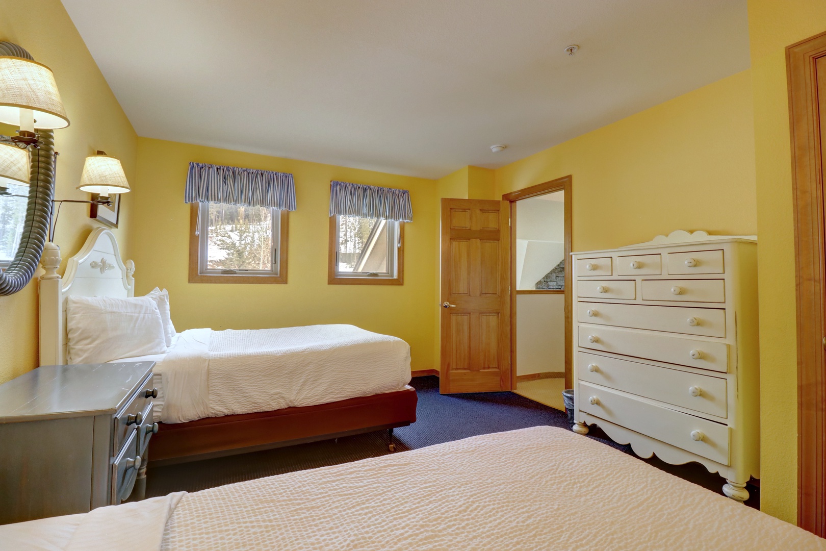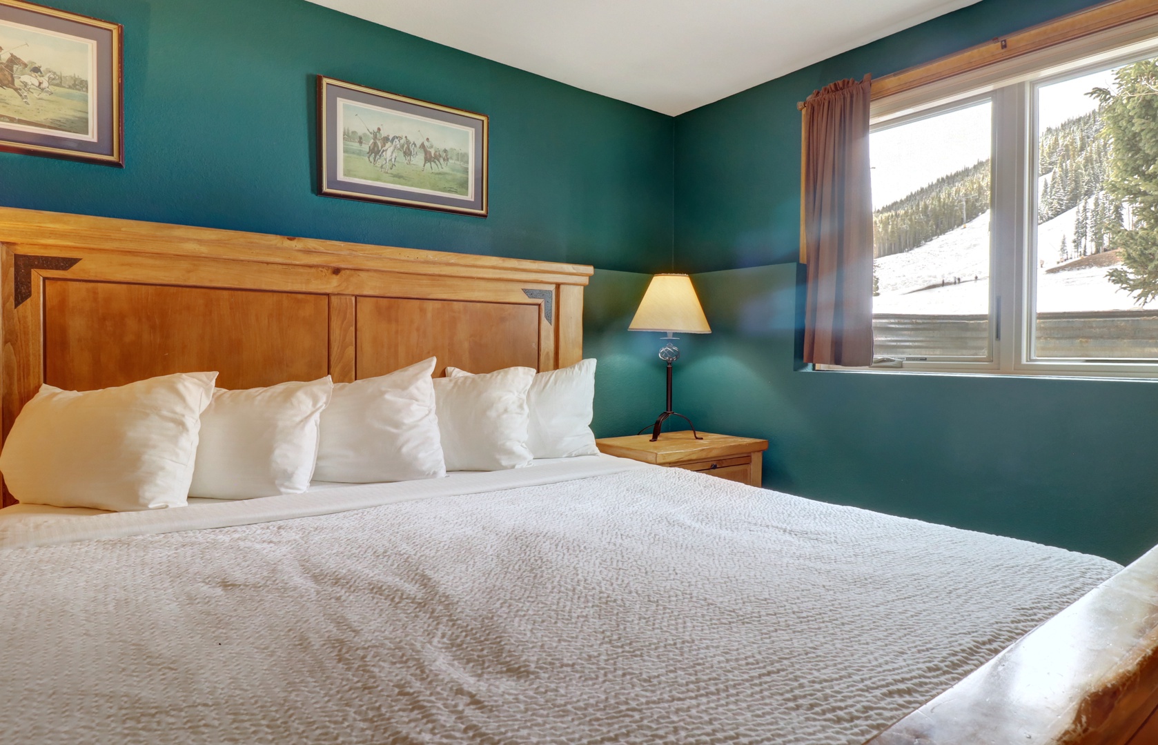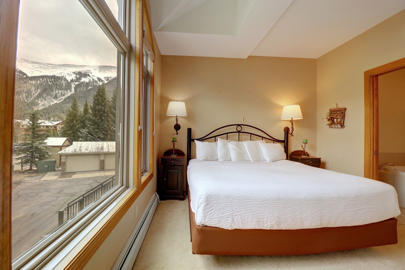 ER9 Elk Run 4 BD 4.5 BA ER9 Elk Run 4 BD 4.5 BA Open concept living room with tall ceilings, large windows allowing ample natural light in, stone fireplace, and multiple seating options. IMG_8563_4_5_6_7 Beautiful porch views of East Village ski slopes at Copper Mountain. A cozy living room features brown leather seating, a round coffee table, large windows with a snowy mountain view, and a dining area with wooden chairs in the background. Open Gallery Open concept living room with tall ceilings, large windows allowing ample natural light in, stone fireplace, and multiple seating options. IMG_8563_4_5_6_7 Beautiful porch views of East Village ski slopes at Copper Mountain. A cozy living room features brown leather seating, a round coffee table, large windows with a snowy mountain view, and a dining area with wooden chairs in the background. Aerial view of the main living area A cozy living room with a large window offering a snowy mountain view. There is a cushioned armchair and a stone fireplace with a picture hanging above it. Cozy living room with leather sofas, stone fireplace, wooden coffee table, and large windows overlooking East Village ski slopes at Copper Mountain. Cozy living room with leather seating, a central stone fireplace, and large windows offering a view of snowy trees. Rustic decorations include a framed painting, ski poles, and a coffee table. A cozy living area with a brown leather couch and an armchair next to large windows showing a snowy mountainside. A dining table with chairs is in the background. Open concept dining area, with access to a private patio behind. A cozy dining area with a wooden table and chairs is adjacent to a living room with a stone fireplace. Large windows offer a snowy outdoor view of the mountain. A cozy dining room with a wooden table, large windows and door allowing ample natural light in. A cozy kitchen area with a long countertop and bar stools, next to a living room featuring a leather couch and large windows overlooking a snowy landscape. A modern kitchen with light wood cabinetry, stainless steel appliances, and a curved countertop with four patterned stools. There are hanging pendant lights above the counter and a backsplash featuring a scenic design. A modern kitchen with stainless steel appliances, including a microwave, stove, dishwasher, and refrigerator. Wooden cabinets and a tiled backsplash with tree designs complete the look. A modern kitchen and living area featuring wooden cabinets, stainless steel appliances, a stone fireplace, and leather furniture. A staircase leads to the upper floor. Modern kitchen with light wooden cabinets, stainless steel appliances, a tiled backsplash with a mountain design, a small wine rack, and a marble countertop. Rug, tea kettle, and coffee maker also visible. Open-concept living and dining area with hardwood floors, a large kitchen island, stone fireplace, vaulted ceilings, and tall windows offering a view of the outdoor scenery. Modern living room with large windows, a stone fireplace, staircase, and dining area. The room is furnished with comfortable seating and wooden furniture, and offers a view of a snowy landscape. A small bathroom with a sink, mirror, vanity, toilet, towel rings, and overhead light fixture. Walls are light-colored and a door is partially visible to the right of the sink. A bedroom with a large bed, nightstands with lamps on either side, and a window showing an outside view. A bathroom entrance is seen to the right, with beige walls and carpeted floor. A bedroom with a large bed, two nightstands with lamps, and a vaulted ceiling. The room features a large window with a view of neighboring buildings. A bedroom with a large bed, white bedding, two bedside tables with lamps, a window with a mountain view, beige walls, and a doorway leading to an adjacent bathroom. A bedroom with a large window showing a snowy mountain view, featuring a neatly-made bed with white linens, two bedside tables with lamps, and beige walls. A cozy bedroom features a neatly made bed with white linens, a warm-toned wall, and a large arched window overlooking a street and buildings outside. A lamp lights up the bedside area. A bathroom featuring a circular bathtub with tiled surround, a framed artwork on the wall, and a glass-enclosed shower stall with a towel hanging on the door. A bathroom with a round bathtub, a glass shower enclosure, a toilet, a towel rack with folded towels, a tissue box, and a framed picture on the wall. A bathroom with a glass shower enclosure, a white sink on a wooden vanity, a wall mirror, and a corner bathtub. There are bright vanity lights above the mirror and a framed painting on the wall. A bedroom with a wooden bed frame, white bedding, two nightstands with lamps, two framed paintings, dark curtains, a large window, and green walls with a checkered carpeted floor. A cozy bedroom features a wooden bed frame with white linens, a wooden dresser, and a bedside lamp. The room has teal walls, a window with brown curtains, and a door leading to another space. A cozy bedroom features a large bed with white linens, two wooden nightstands, a lamp, and two framed pictures on a teal wall. A window reveals a snowy outdoor scene. A cozy bedroom with teal walls, a wooden bed with five pillows, two bedside tables with lamps, and two framed pictures above the bed. A window with a view is on the right side. A bedroom with a yellow wall, two beds (one single and one double), a bedside table with a lamp and a mirror, and a window with striped curtains. Three framed pictures are hung on the wall. A cozy bedroom with yellow walls, a queen-sized bed, two windows with blue and white striped valances, a bedside table with a lamp, and a framed picture above the bed. A snow-covered landscape is visible outside. A simple bedroom with two twin beds, a wooden nightstand, and wall-mounted lamps. The room features yellow walls, a blue carpet, and windows with striped curtains. Framed art decorates