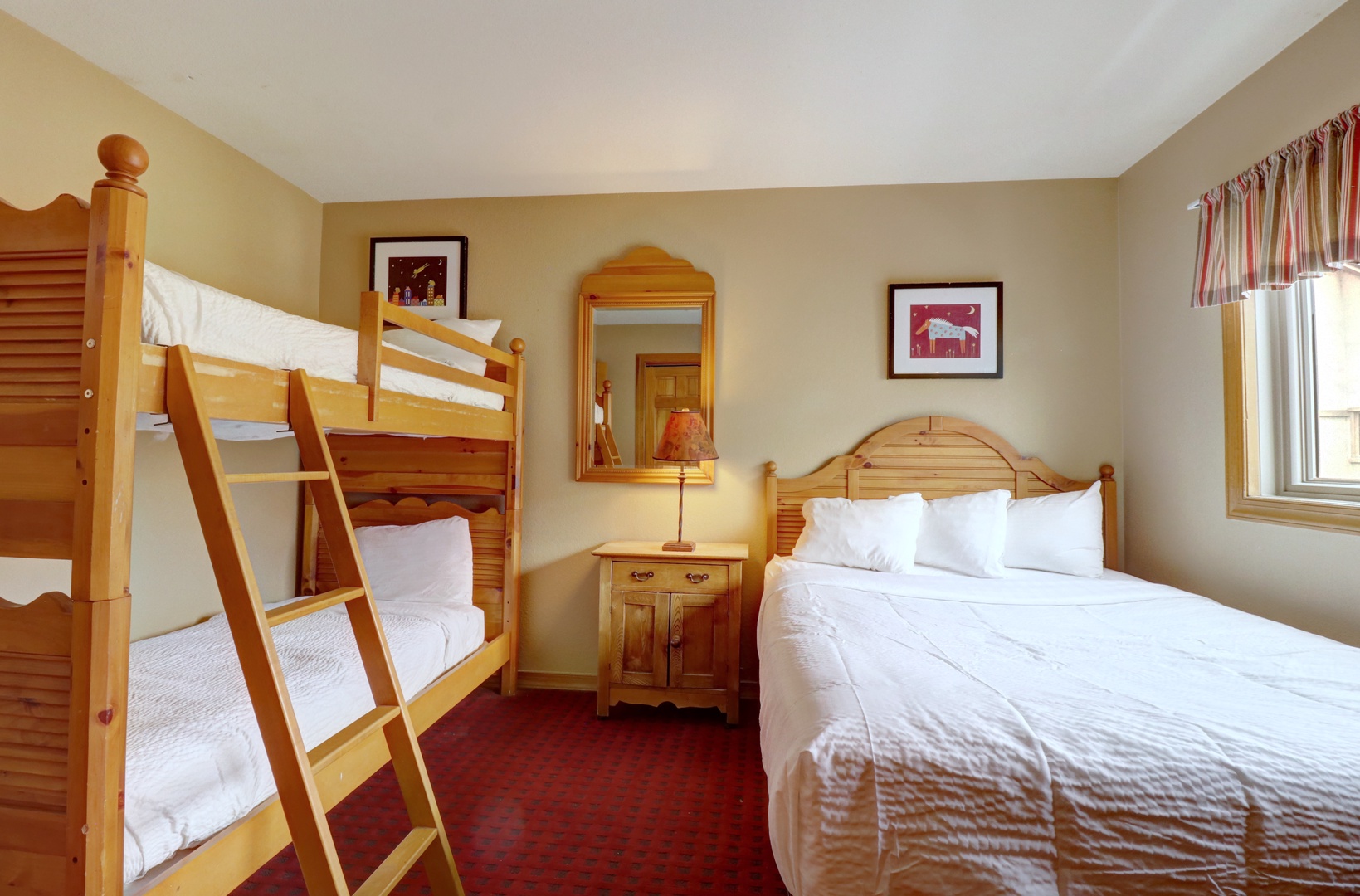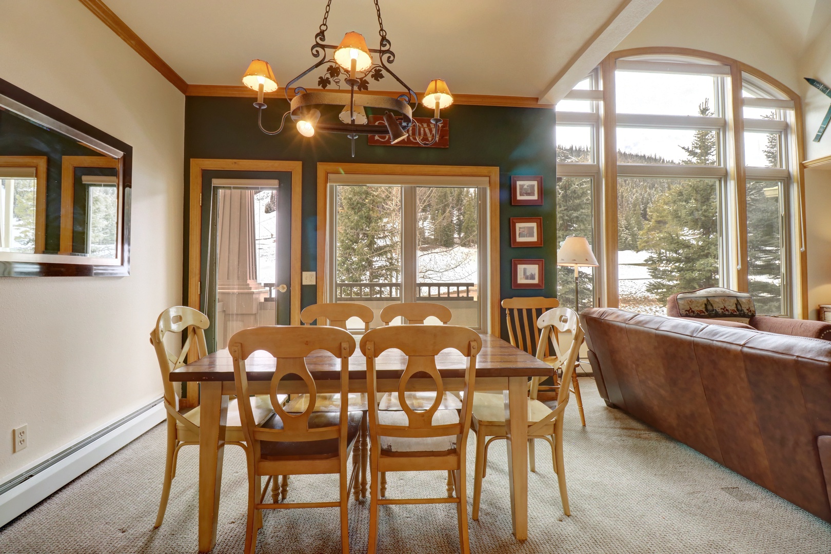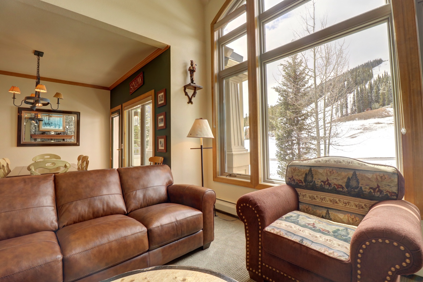 ER9 Elk Run 4 BD 4.5 BA ER9 Elk Run 4 BD 4.5 BA Open concept living room with tall ceilings, large windows allowing ample natural light in, stone fireplace, and multiple seating options. IMG_8563_4_5_6_7 Beautiful porch views of East Village ski slopes at Copper Mountain. A cozy living room features brown leather seating, a round coffee table, large windows with a snowy mountain view, and a dining area with wooden chairs in the background. Open Gallery Open concept living room with tall ceilings, large windows allowing ample natural light in, stone fireplace, and multiple seating options. IMG_8563_4_5_6_7 Beautiful porch views of East Village ski slopes at Copper Mountain. A cozy living room features brown leather seating, a round coffee table, large windows with a snowy mountain view, and a dining area with wooden chairs in the background. Aerial view of the main living area A cozy living room with a large window offering a snowy mountain view. There is a cushioned armchair and a stone fireplace with a picture hanging above it. Cozy living room with leather sofas, stone fireplace, wooden coffee table, and large windows overlooking East Village ski slopes at Copper Mountain. Cozy living room with leather seating, a central stone fireplace, and large windows offering a view of snowy trees. Rustic decorations include a framed painting, ski poles, and a coffee table. A cozy living area with a brown leather couch and an armchair next to large windows showing a snowy mountainside. A dining table with chairs is in the background. Open concept dining area, with access to a private patio behind. A cozy dining area with a wooden table and chairs is adjacent to a living room with a stone fireplace. Large windows offer a snowy outdoor view of the mountain. A cozy dining room with a wooden table, large windows and door allowing ample natural light in. A cozy kitchen area with a long countertop and bar stools, next to a living room featuring a leather couch and large windows overlooking a snowy landscape. A modern kitchen with light wood cabinetry, stainless steel appliances, and a curved countertop with four patterned stools. There are hanging pendant lights above the counter and a backsplash featuring a scenic design. A modern kitchen with stainless steel appliances, including a microwave, stove, dishwasher, and refrigerator. Wooden cabinets and a tiled backsplash with tree designs complete the look. A modern kitchen and living area featuring wooden cabinets, stainless steel appliances, a stone fireplace, and leather furniture. A staircase leads to the upper floor. Modern kitchen with light wooden cabinets, stainless steel appliances, a tiled backsplash with a mountain design, a small wine rack, and a marble countertop. Rug, tea kettle, and coffee maker also visible. Open-concept living and dining area with hardwood floors, a large kitchen island, stone fireplace, vaulted ceilings, and tall windows offering a view of the outdoor scenery. Modern living room with large windows, a stone fireplace, staircase, and dining area. The room is furnished with comfortable seating and wooden furniture, and offers a view of a snowy landscape. A small bathroom with a sink, mirror, vanity, toilet, towel rings, and overhead light fixture. Walls are light-colored and a door is partially visible to the right of the sink. A bedroom with a large bed, nightstands with lamps on either side, and a window showing an outside view. A bathroom entrance is seen to the right, with beige walls and carpeted floor. A bedroom with a large bed, two nightstands with lamps, and a vaulted ceiling. The room features a large window with a view of neighboring buildings. A bedroom with a large bed, white bedding, two bedside tables with lamps, a window with a mountain view, beige walls, and a doorway leading to an adjacent bathroom. A bedroom with a large window showing a snowy mountain view, featuring a neatly-made bed with white linens, two bedside tables with lamps, and beige walls. A cozy bedroom features a neatly made bed with white linens, a warm-toned wall, and a large arched window overlooking a street and buildings outside. A lamp lights up the bedside area. A bathroom featuring a circular bathtub with tiled surround, a framed artwork on the wall, and a glass-enclosed shower stall with a towel hanging on the door. A bathroom with a round bathtub, a glass shower enclosure, a toilet, a towel rack with folded towels, a tissue box, and a framed picture on the wall. A bathroom with a glass shower enclosure, a white sink on a wooden vanity, a wall mirror, and a corner bathtub. There are bright vanity lights above the mirror and a framed painting on the wall. A bedroom with a wooden bed frame, white bedding, two nightstands with lamps, two framed paintings, dark curtains, a large window, and green walls with a checkered carpeted floor. A cozy bedroom features a wooden bed frame with white linens, a wooden dresser, and a bedside lamp. The room has teal walls, a window with brown curtains, and a door leading to another space. A cozy bedroom features a large bed with white linens, two wooden nightstands, a lamp, and two framed pictures on a teal wall. A window reveals a snowy outdoor scene. A cozy bedroom with teal walls, a wooden bed with five pillows, two bedside tables with lamps, and two framed pictures above the bed. A window with a view is on the right side. A bedroom with a yellow wall, two beds (one single and one double), a bedside table with a lamp and a mirror, and a window with striped curtains. Three framed pictures are hung on the wall. A cozy bedroom with yellow walls, a queen-sized bed, two windows with blue and white striped valances, a bedside table with a lamp, and a framed picture above the bed. A snow-covered landscape is visible outside. A simple bedroom with two twin beds, a wooden nightstand, and wall-mounted lamps. The room features yellow walls, a blue carpet, and windows with striped curtains. Framed art decorates