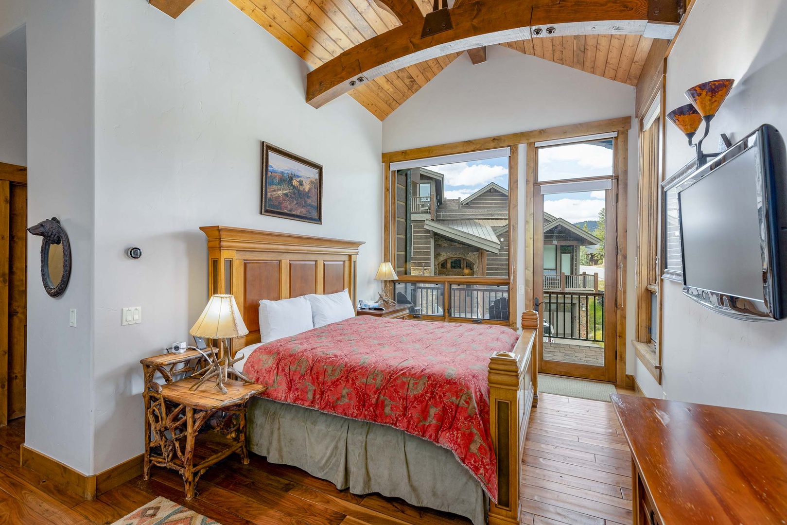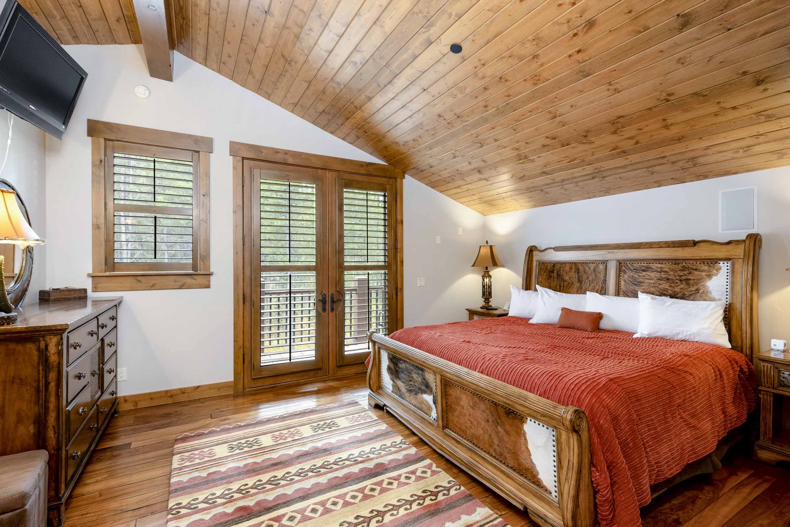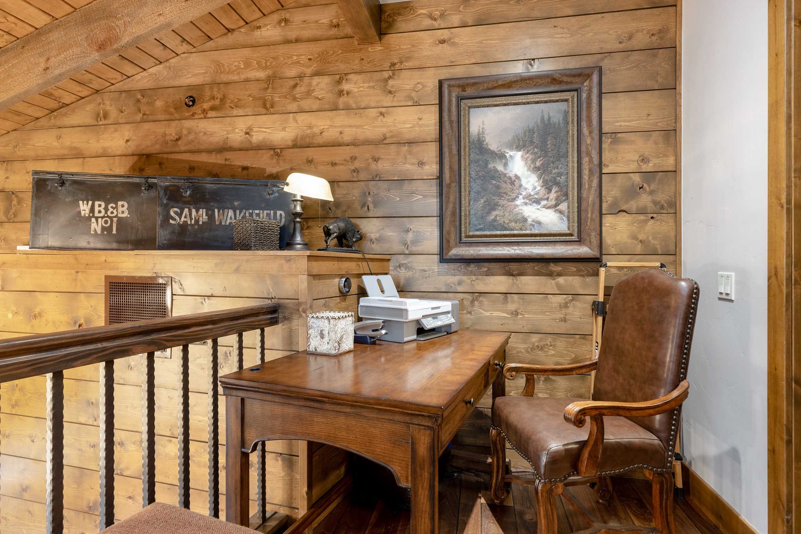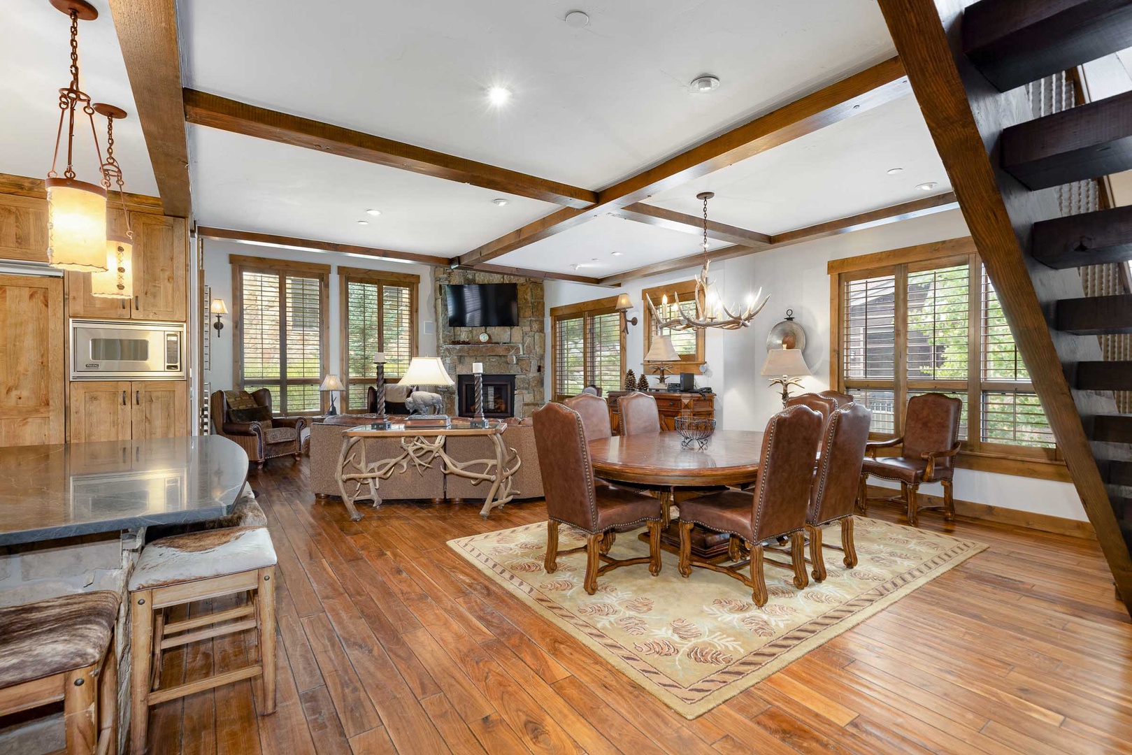 LR884 Alpine Vista – Pet Friendly LR884 Alpine Vista - Pet Friendly Modern rustic house with large windows, stone chimney, and wooden siding. The house features an elevated deck with outdoor furniture and warm interior lighting, set against a sunset sky. Outdoor patio featuring a table with seating, a hot tub, and a view of mountains. A cozy living room with a leather sectional sofa, stone fireplace, mounted TV, wooden coffee table, and exposed wooden beams on the ceiling. The room has large windows allowing ample natural light in. A spacious kitchen with wooden cabinets, black countertops, a large stainless steel stove, and a wine fridge. A staircase and dining area are visible in the background. Open Gallery Modern rustic house with large windows, stone chimney, and wooden siding. The house features an elevated deck with outdoor furniture and warm interior lighting, set against a sunset sky. Outdoor patio featuring a table with seating, a hot tub, and a view of mountains. A cozy living room with a leather sectional sofa, stone fireplace, mounted TV, wooden coffee table, and exposed wooden beams on the ceiling. The room has large windows allowing ample natural light in. A spacious kitchen with wooden cabinets, black countertops, a large stainless steel stove, and a wine fridge. A staircase and dining area are visible in the background. Living room with wooden beams, leather sofa, rustic coffee table, cowhide rug, and a staircase leading upstairs. The room is decorated with wooden furniture and has an open layout leading to the kitchen. Large, multi-story wooden house with lush greenery, a driveway, and multiple garages under a vibrant sky. A stone and wood house with a front entrance featuring a wooden door, large windows and garage set against a backdrop of mountains and trees. A rustic living room features a stone fireplace with a TV above, leather chairs, a leather sofa, a wooden coffee table on a cowhide rug, and wooden ceiling beams. Large windows offer ample natural light. A patio with chairs, a round firepit table, and a barbecue grill overlooks a wooded area and nearby buildings on a sunny day. Patio area with a cushioned sofa, chairs, a fire pit table, and a gas grill. Stone buildings and trees in the background. A rustic kitchen features wood cabinets, stainless steel appliances, an island with seating, and stone countertops. Natural light enters through a window by the sink. A kitchen with wooden cabinets, dark countertops, a stainless steel stove, and a window with ample natural light coming in. A dining room featuring a round wooden table with six leather chairs, a chandelier, a wooden staircase, wall-mounted decor, and wooden flooring. The room has large windows allowing natural light in. Open-concept living and dining area with wooden floors, a large dining table, a stone fireplace, and windows allowing natural light in. A staircase is visible on the right. A rustic dining room with a round wooden table, six leather chairs, an antler chandelier, exposed wood beams, and hardwood floors. The room connects to a living area with a fireplace and TV. A wooden staircase leads to an upper floor. A rustic room with wooden paneling and floors contains a small writing desk with a chair, a bench, and decorative trunks. A wooden desk with a printer, tissue box, and lamp sits against a wooden wall with a framed waterfall painting. A leather chair offers seating at the desk. A small bathroom with a toilet, a round wooden sink on a wooden counter, a mirror, a wall-mounted sculpture, and a wall sconce above the mirror. A cozy bedroom with a wooden ceiling and walls, featuring a large bed with a cozy blanket, a dresser with a lamp, a TV on the wall, and double doors leading to a balcony with a woodsy view. A bedroom features a wooden ceiling, a large bed with a cozy duvet, two lamps, artwork on the walls, and a striped rug on a wooden floor. A doorway provides a view of an adjoining bathroom. A bathroom with a glass-enclosed shower, wooden cabinets, a double vanity sink with mirrors, and wall-mounted light fixtures. There is a framed artwork and a toilet in a separate area. A balcony with chairs overlooks a forested area. Views from the balcony shows great mountain views. The laundry room features a washer and dryer, as well as an ironing board. A hallway with wooden walls and stone accents, featuring a bench, wall mirror, patterned rug, and a coat rack. Stairs and railing are visible on the upper floor. Hallway entrance from garage, with wooden bench, framed artwork on wall, wooden cabinets, coat hooks, and a closet. The home interior showing a small elevator with an open door, a wooden staircase, and a descending staircase with a handrail. The walls are partially paneled in wood, and a framed picture hangs on the wall. A cozy living room with a stone fireplace, a wall-mounted TV, and wooden furniture. Stairs lead up from the room, and there is a desk area with a lamp in the corner. A cozy living room features a large stone fireplace, comfortable seating with brown sofas, a wooden coffee table, and framed pictures on white walls. Multiple windows provide natural light. A bedroom with a wooden bed, white bedding, two bedside tables with lamps, a large window allows natural light in. A cozy bedroom features a large wooden bed with white linens, two side lamps on nightstands, and an adjacent bathroom visible through an open door. The room has rustic wooden accents. A cozy bedroom with a wooden bed frame, white bedding, two bedside tables with lamps, and a window. A wooden mudroom with multiple cubbies, hooks, and a bench, featuring a tiled floor. The room leads into a carpeted hallway with a doorway at the end. A room featuring two wooden bunk beds, a window with a snowy outdoor view, a small wooden dresser, and framed artwork on the walls. A room with two twin wooden bunk beds, beige walls, a window, and two framed pictures hanging on the walls. The room has carpeted flooring and a small 