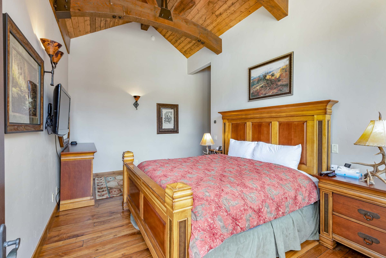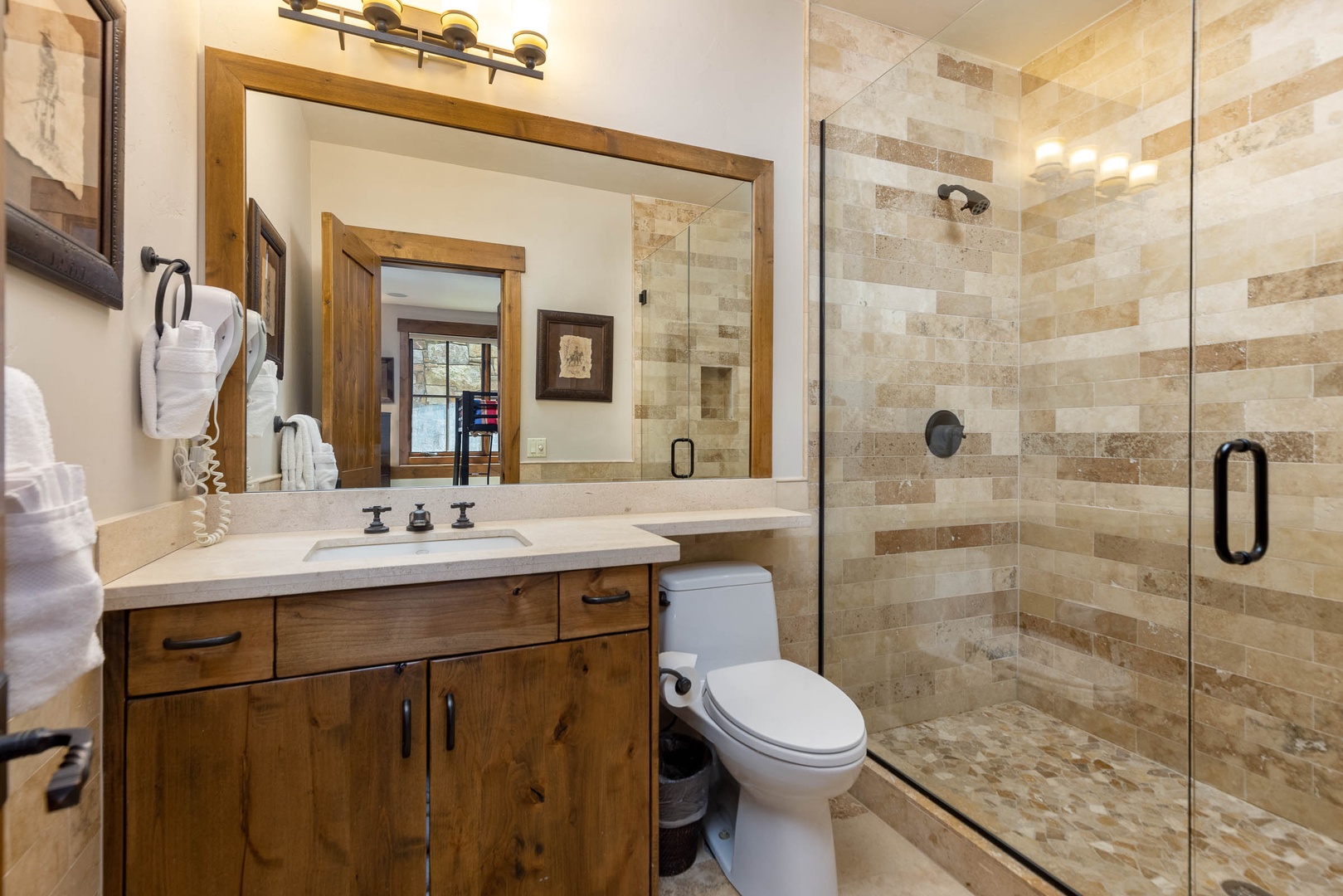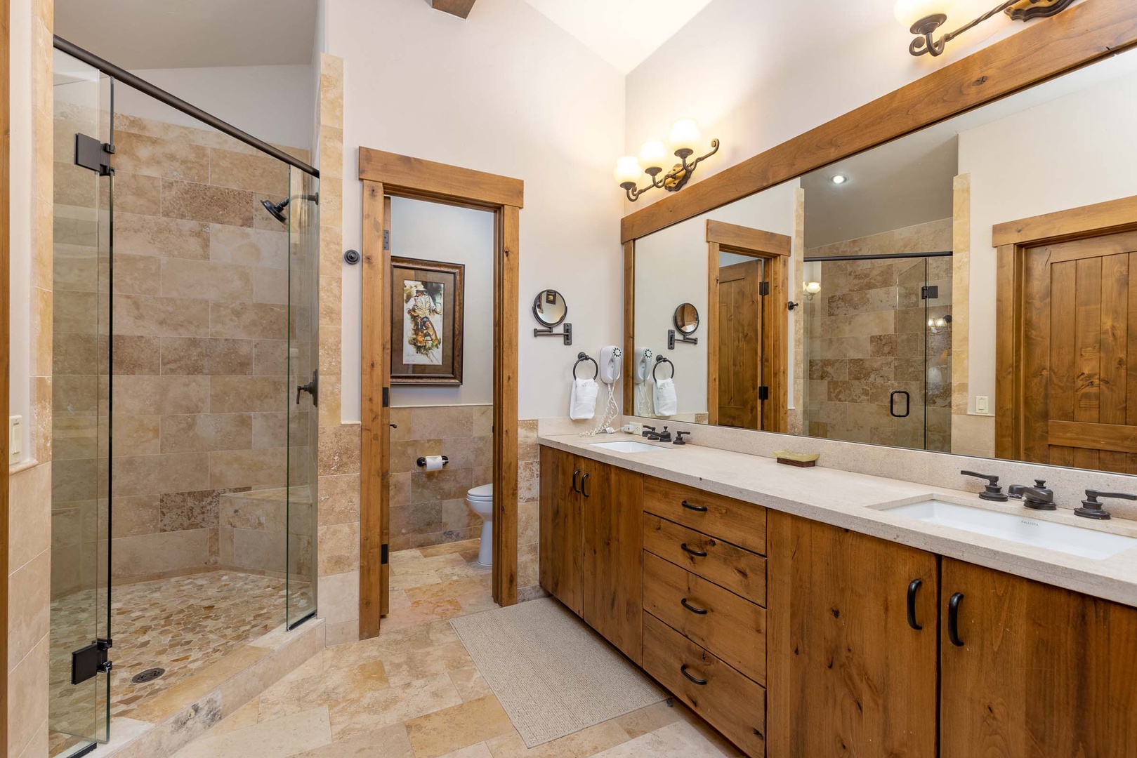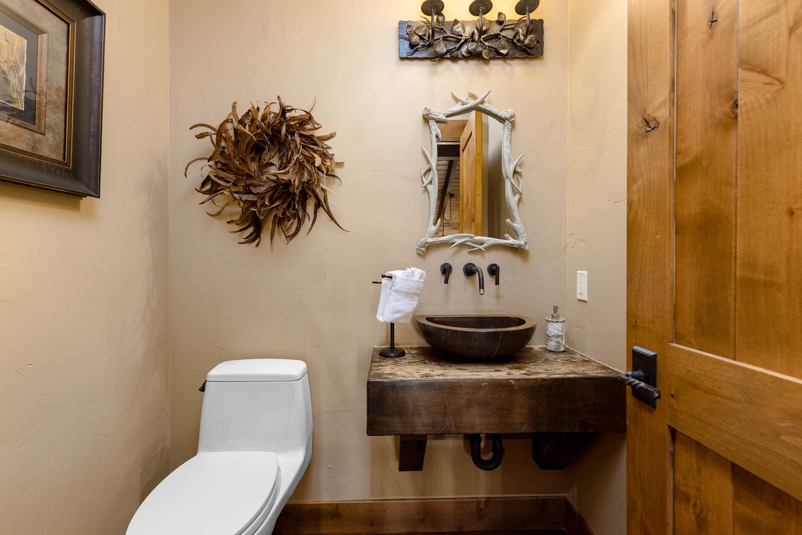 LR884 Alpine Vista – Pet Friendly LR884 Alpine Vista - Pet Friendly Modern rustic house with large windows, stone chimney, and wooden siding. The house features an elevated deck with outdoor furniture and warm interior lighting, set against a sunset sky. Outdoor patio featuring a table with seating, a hot tub, and a view of mountains. A cozy living room with a leather sectional sofa, stone fireplace, mounted TV, wooden coffee table, and exposed wooden beams on the ceiling. The room has large windows allowing ample natural light in. A spacious kitchen with wooden cabinets, black countertops, a large stainless steel stove, and a wine fridge. A staircase and dining area are visible in the background. Open Gallery Modern rustic house with large windows, stone chimney, and wooden siding. The house features an elevated deck with outdoor furniture and warm interior lighting, set against a sunset sky. Outdoor patio featuring a table with seating, a hot tub, and a view of mountains. A cozy living room with a leather sectional sofa, stone fireplace, mounted TV, wooden coffee table, and exposed wooden beams on the ceiling. The room has large windows allowing ample natural light in. A spacious kitchen with wooden cabinets, black countertops, a large stainless steel stove, and a wine fridge. A staircase and dining area are visible in the background. Living room with wooden beams, leather sofa, rustic coffee table, cowhide rug, and a staircase leading upstairs. The room is decorated with wooden furniture and has an open layout leading to the kitchen. Large, multi-story wooden house with lush greenery, a driveway, and multiple garages under a vibrant sky. A stone and wood house with a front entrance featuring a wooden door, large windows and garage set against a backdrop of mountains and trees. A rustic living room features a stone fireplace with a TV above, leather chairs, a leather sofa, a wooden coffee table on a cowhide rug, and wooden ceiling beams. Large windows offer ample natural light. A patio with chairs, a round firepit table, and a barbecue grill overlooks a wooded area and nearby buildings on a sunny day. Patio area with a cushioned sofa, chairs, a fire pit table, and a gas grill. Stone buildings and trees in the background. A rustic kitchen features wood cabinets, stainless steel appliances, an island with seating, and stone countertops. Natural light enters through a window by the sink. A kitchen with wooden cabinets, dark countertops, a stainless steel stove, and a window with ample natural light coming in. A dining room featuring a round wooden table with six leather chairs, a chandelier, a wooden staircase, wall-mounted decor, and wooden flooring. The room has large windows allowing natural light in. Open-concept living and dining area with wooden floors, a large dining table, a stone fireplace, and windows allowing natural light in. A staircase is visible on the right. A rustic dining room with a round wooden table, six leather chairs, an antler chandelier, exposed wood beams, and hardwood floors. The room connects to a living area with a fireplace and TV. A wooden staircase leads to an upper floor. A rustic room with wooden paneling and floors contains a small writing desk with a chair, a bench, and decorative trunks. A wooden desk with a printer, tissue box, and lamp sits against a wooden wall with a framed waterfall painting. A leather chair offers seating at the desk. A small bathroom with a toilet, a round wooden sink on a wooden counter, a mirror, a wall-mounted sculpture, and a wall sconce above the mirror. A cozy bedroom with a wooden ceiling and walls, featuring a large bed with a cozy blanket, a dresser with a lamp, a TV on the wall, and double doors leading to a balcony with a woodsy view. A bedroom features a wooden ceiling, a large bed with a cozy duvet, two lamps, artwork on the walls, and a striped rug on a wooden floor. A doorway provides a view of an adjoining bathroom. A bathroom with a glass-enclosed shower, wooden cabinets, a double vanity sink with mirrors, and wall-mounted light fixtures. There is a framed artwork and a toilet in a separate area. A balcony with chairs overlooks a forested area. Views from the balcony shows great mountain views. The laundry room features a washer and dryer, as well as an ironing board. A hallway with wooden walls and stone accents, featuring a bench, wall mirror, patterned rug, and a coat rack. Stairs and railing are visible on the upper floor. Hallway entrance from garage, with wooden bench, framed artwork on wall, wooden cabinets, coat hooks, and a closet. The home interior showing a small elevator with an open door, a wooden staircase, and a descending staircase with a handrail. The walls are partially paneled in wood, and a framed picture hangs on the wall. A cozy living room with a stone fireplace, a wall-mounted TV, and wooden furniture. Stairs lead up from the room, and there is a desk area with a lamp in the corner. A cozy living room features a large stone fireplace, comfortable seating with brown sofas, a wooden coffee table, and framed pictures on white walls. Multiple windows provide natural light. A bedroom with a wooden bed, white bedding, two bedside tables with lamps, a large window allows natural light in. A cozy bedroom features a large wooden bed with white linens, two side lamps on nightstands, and an adjacent bathroom visible through an open door. The room has rustic wooden accents. A cozy bedroom with a wooden bed frame, white bedding, two bedside tables with lamps, and a window. A wooden mudroom with multiple cubbies, hooks, and a bench, featuring a tiled floor. The room leads into a carpeted hallway with a doorway at the end. A room featuring two wooden bunk beds, a window with a snowy outdoor view, a small wooden dresser, and framed artwork on the walls. A room with two twin wooden bunk beds, beige walls, a window, and two framed pictures hanging on the walls. The room has carpeted flooring and a small 