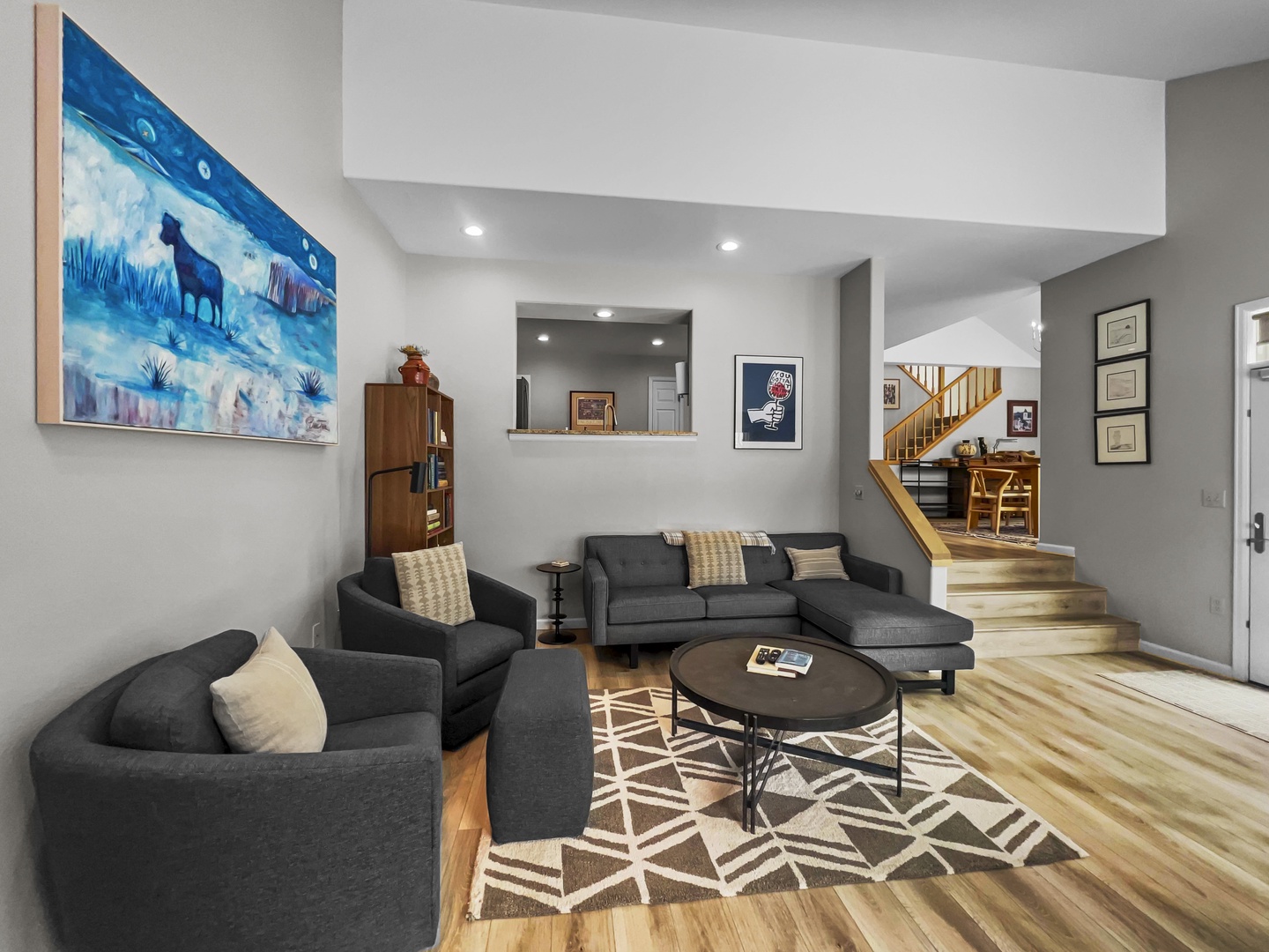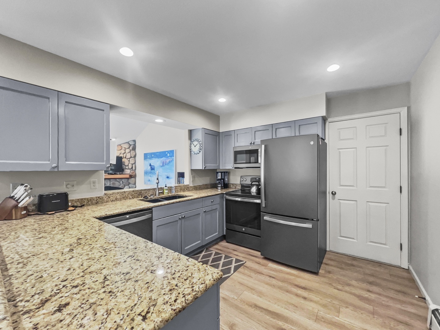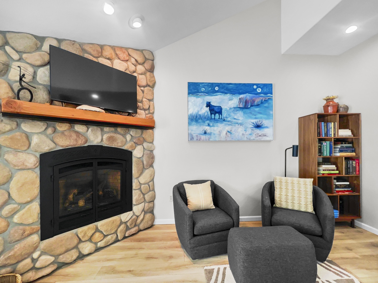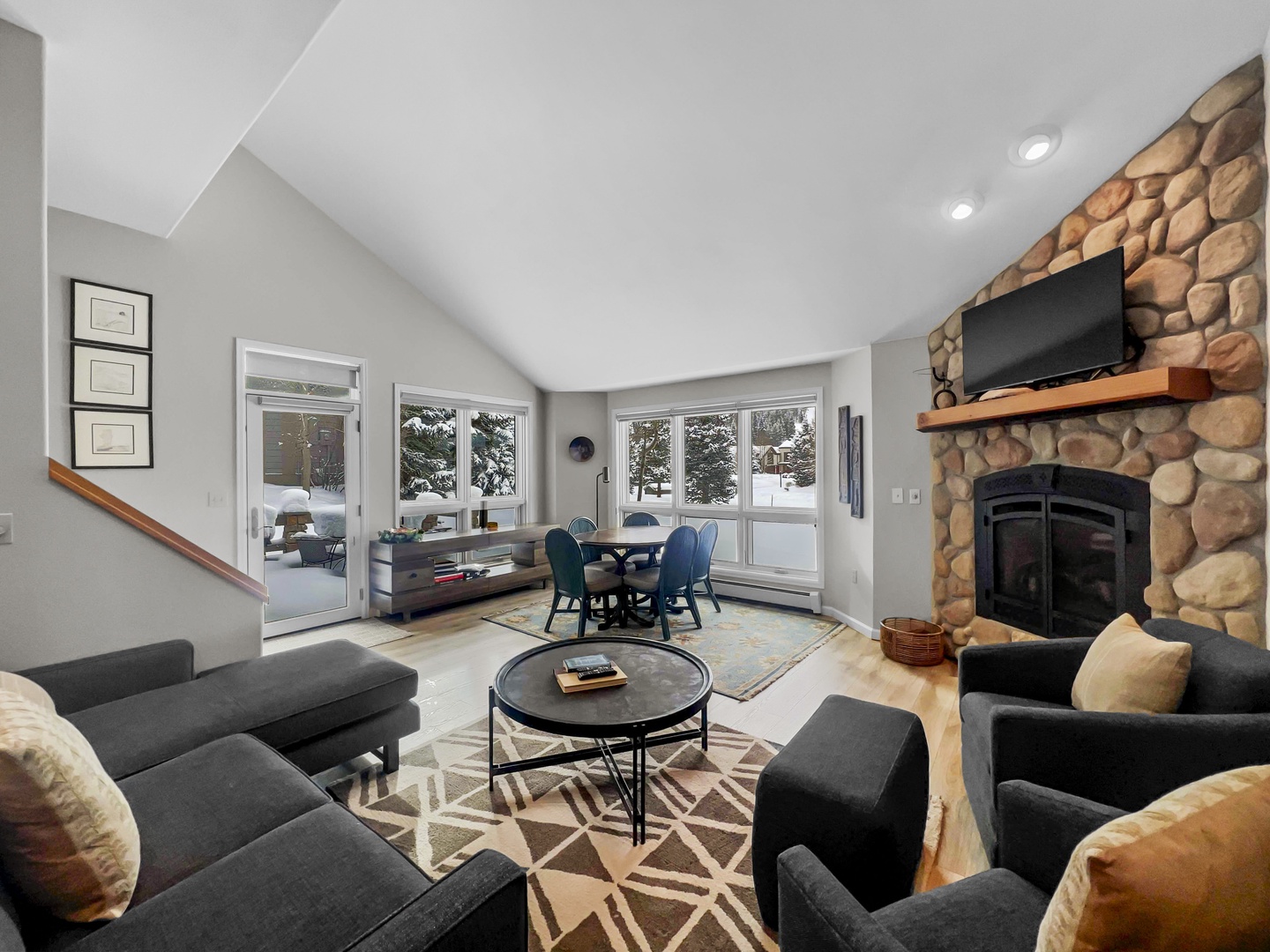 Legends 10 4Br 4Ba Home Colorado Copper Mountain Legends 10 4Br 4Ba Legends 10 4Br 4Ba A modern living room features a stone fireplace with a TV above it, a round coffee table, two black armchairs, a sofa, and large windows overlooking a snowy landscape. A modern living room features a gray sectional sofa, two matching chairs, a round coffee table, a geometric rug, and a painting of a bear. A staircase leads up to a dining area with a wooden table. A cozy living room with a stone fireplace, TV mounted above, two grey armchairs, a small ottoman, and a bookshelf. A painting of a blue animal hangs on the wall. A modern living room with a gray sectional sofa and two gray armchairs around a round wooden coffee table. The room features light wood flooring, framed artwork, and built-in bookshelves. A modern living and dining area features gray sofas, a round coffee table, a dining table with blue chairs, and decor on walls. Large windows reveal a snowy outdoor scene. Stairs lead to a second level. Open Gallery A modern living room features a stone fireplace with a TV above it, a round coffee table, two black armchairs, a sofa, and large windows overlooking a snowy landscape. A modern living room features a gray sectional sofa, two matching chairs, a round coffee table, a geometric rug, and a painting of a bear. A staircase leads up to a dining area with a wooden table. A cozy living room with a stone fireplace, TV mounted above, two grey armchairs, a small ottoman, and a bookshelf. A painting of a blue animal hangs on the wall. A modern living room with a gray sectional sofa and two gray armchairs around a round wooden coffee table. The room features light wood flooring, framed artwork, and built-in bookshelves. A modern living and dining area features gray sofas, a round coffee table, a dining table with blue chairs, and decor on walls. Large windows reveal a snowy outdoor scene. Stairs lead to a second level. Cozy living room with a stone fireplace, wall-mounted TV, dark gray sectional sofa, two cushioned armchairs, and a round coffee table on a patterned rug. Wooden bookcase and wall art accent the space. A cozy dining area with a round wooden table and four chairs next to large windows showcasing a snowy outdoor scene, adjacent to an entryway and staircase leading to a rustic kitchen. Living room with a large window, stone fireplace, dining table with four chairs, two sofas, and artwork on the wall. The room has wooden flooring and a mix of rugs. Snowy landscape visible outside. A dining area with a wooden table and chairs, surrounded by large windows offering a view of a snowy landscape with trees and a distant cabin. A sideboard and floor lamp are placed on the left. A cozy living and dining area with large windows, stone fireplace, blue chairs around a dining table, bookshelves, and a colorful wall art. Snowy landscape is visible outside through the window. A dining room with a wooden table and six chairs, large windows with a snowy landscape view, wooden beam ceiling, light fixture, and a piano in the corner. A dining room with a wooden table and six chairs on a patterned rug. Large windows provide a view of a snowy landscape. A staircase and a sideboard with decor items are on the left side. A dining room with a wooden table and six chairs, large windows showing a snowy landscape, a chandelier above the table, and a view of a stone fireplace in the adjacent living room. A modern dining area features a wooden table with six chairs, a chandelier above, and a nearby staircase. An open kitchen with a breakfast bar and stools is in the background. Large windows brighten the space. A dining area with a wooden table and chairs under a modern chandelier, next to windows and a staircase with a piano placed beneath it. The walls are painted gray with various decorations. A modern kitchen with granite countertops, blue cabinets, stainless steel appliances, and wood flooring. A clock and a painting are visible in the background through a pass-through window. Modern kitchen with gray cabinets, granite countertops, stainless steel appliances, and a black sink. A laundry area with a washing machine and dryer is visible through an open door. A modern kitchen with gray cabinets, granite countertops, and a double sink. It opens to a dining area with wooden floors and a staircase leading to the upper level. Natural light fills the space. Modern kitchen with gray cabinets, granite countertops, stainless steel appliances, and a double sink. A coffee maker and toaster are on the counter. A living area is visible through an open pass-through. A modern kitchen with gray cabinets, granite countertops, stainless steel appliances, and a double sink. A window above the sink faces into a living room with a stone wall and mounted TV. A modern kitchen with granite countertops, light gray cabinets, and stainless steel appliances. The open-plan design features a view of a staircase and a well-lit living area with large windows. A modern kitchen with granite countertops, two bar stools, gray cabinets, and stainless steel appliances. There are framed pictures on the walls, and books are neatly arranged on shelves. Open-concept living area with granite countertop in foreground, dining table and chairs in middle, staircase on the left, and large windows overlooking a snowy landscape in the background. A dining area with a wooden table and chairs on a rug next to large windows, adjacent to a small seating area with additional windows. The ceiling has exposed wood beams and a hanging light fixture. A hallway with wooden flooring features three doorways: one leading to a room with bunk beds, one to a bedroom with a bed and armchair, and one to a white front door. Small bedroom with a neatly made bed, a red leather chair, a side table, a window with a snowy outdoor view, and a colorful painting on the wall. A bedroom with beige walls, a bed with pillows against one wall, and two white double doors open to a view of the adjace
