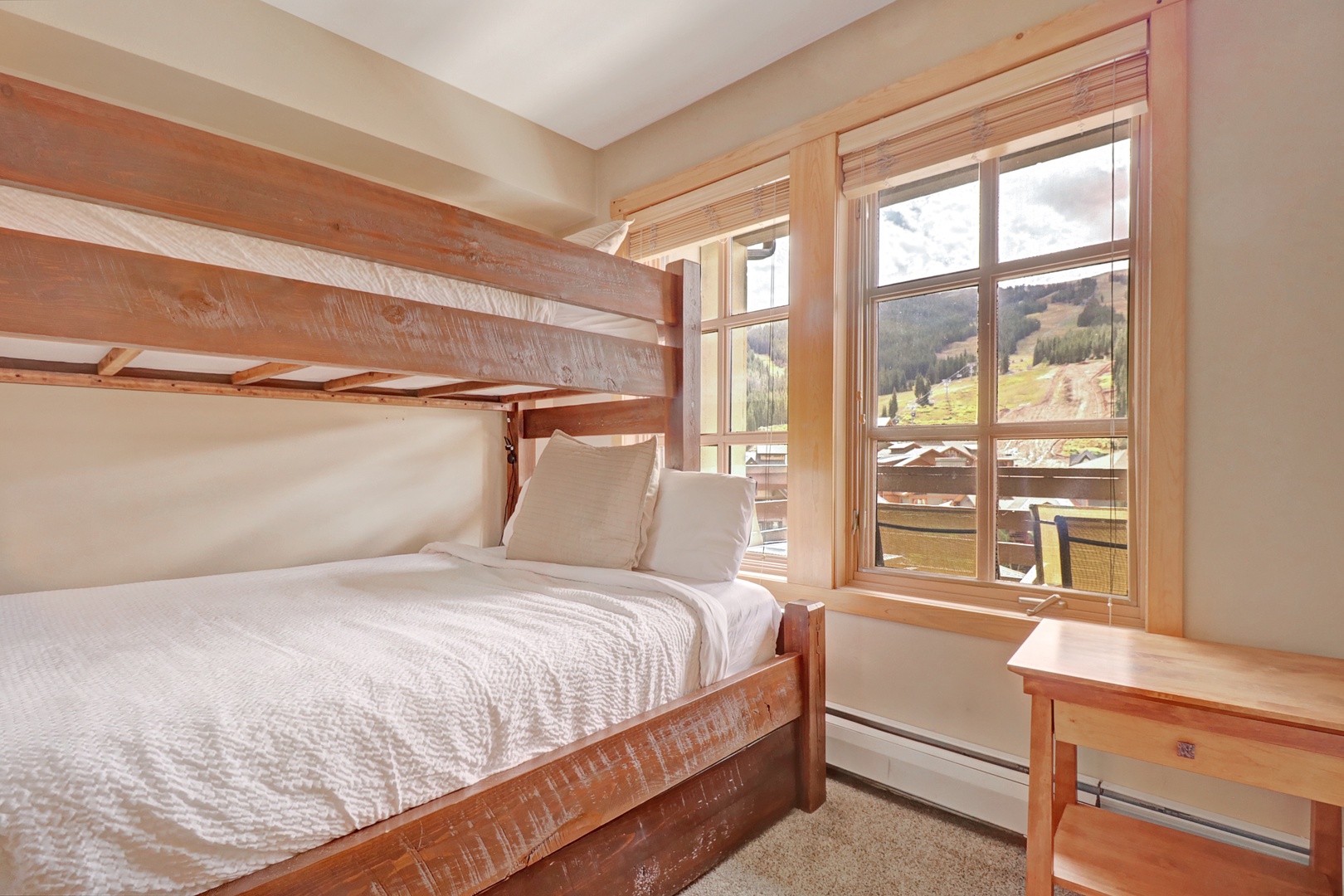 PP605 Passage Point Home Colorado Copper Mountain PP605 Passage Point PP605 Passage Point Cozy living area in Passage Point at Copper Mountain, Colorado. Features a stone-framed gas fireplace, warm mountain décor, and comfortable seating—perfect for après-ski relaxation. Spectacular panoramic view of Copper Mountain’s slopes and Center Village from a private balcony at the Passage Point building. Perfect vantage point for year-round mountain scenery and resort activity. Aerial view of the outdoor heated pools and hot tubs at Passage Point, nestled among the pines in Copper Mountain’s Center Village. A relaxing retreat after a day on the slopes or summer trails. Sun-filled corner of the condo’s living area, featuring a plush armchair and rustic wood accents. Large windows frame sweeping views of the Center Village rooftops and the ski slopes beyond. Open Gallery Cozy living area in Passage Point at Copper Mountain, Colorado. Features a stone-framed gas fireplace, warm mountain décor, and comfortable seating—perfect for après-ski relaxation. Spectacular panoramic view of Copper Mountain’s slopes and Center Village from a private balcony at the Passage Point building. Perfect vantage point for year-round mountain scenery and resort activity. Aerial view of the outdoor heated pools and hot tubs at Passage Point, nestled among the pines in Copper Mountain’s Center Village. A relaxing retreat after a day on the slopes or summer trails. Sun-filled corner of the condo’s living area, featuring a plush armchair and rustic wood accents. Large windows frame sweeping views of the Center Village rooftops and the ski slopes beyond. Bright and welcoming great room featuring a plush sofa set, leather armchair, and rustic rocking chair. The open floor plan flows seamlessly to a dining table for six and a full kitchen with a breakfast bar, perfect for gathering after a day on the slopes Sunlit living area with large windows framing scenic village and mountain views. Comfortable sofa seating and warm wood accents create the perfect après-ski retreat. Inviting lounge with a rustic stone fireplace and mounted flat-screen TV, perfect for relaxing after a day on the slopes. Ample seating, including a classic rocking chair, pairs with large windows showcasing village and mountain views. Relax beside the crackling stone fireplace while taking in mountain and village views through the large picture windows. Plush seating and a wall-mounted flat-screen TV create the perfect après-ski retreat. Inviting open living area with plush sofa seating and a cozy leather armchair, seamlessly flowing into a dining space for six. Warm wood furnishings and soft lighting create the ideal setting for family gatherings after a day on the mountain. Cozy desk area framed by large windows offering inspiring views of the slopes and village. A perfect spot to catch up on emails or simply enjoy the mountain scenery. Spacious kitchen with stainless steel appliances and a long breakfast bar with seating for four, flowing into a comfortable dining area and cozy living space. Perfect for entertaining after a day on the slopes. Well-equipped kitchen featuring stainless steel appliances, warm wood cabinetry, and ample counter space. Ideal for preparing hearty mountain meals after a day of skiing or hiking. Bright and functional full kitchen featuring warm wood cabinetry, stainless steel appliances, and generous counter space—perfect for preparing meals before or after mountain adventures. Inviting kitchen space featuring stainless steel appliances, natural wood cabinetry, and tile flooring. A practical and stylish area for creating meals after a day on the slopes. Modern full kitchen with stainless steel appliances and warm wood cabinetry, complemented by a spacious breakfast bar—ideal for casual dining or entertaining after a day on the mountain. Bright and spacious kitchen featuring a double sink, stainless steel dishwasher, and pendant lighting. The open design overlooks the living and dining areas, making it easy to cook and entertain at the same time. Inviting breakfast bar with seating for four leads into a full kitchen featuring stainless steel appliances and warm wood cabinetry. Perfect for casual meals or entertaining guests after a day on the mountain. Stylish dining space with a solid wood table and seating for eight, illuminated by a modern chandelier. Large windows and patio access provide natural light and scenic mountain vistas. Spacious dining area featuring a large wooden table for eight, illuminated by a contemporary chandelier. Enjoy mountain views through expansive windows and the cozy ambiance of the nearby stone fireplace. Step onto the private balcony to enjoy sweeping views of Copper Mountain’s Center Village and the surrounding peaks. A perfect spot to soak up the alpine scenery in any season. Private balcony seating with sweeping views of Copper Mountain’s slopes and Center Village. Perfect for morning coffee or evening relaxation while taking in the alpine scenery. Breathtaking panorama of Copper Mountain’s ski slopes and Center Village rooftops, captured from the private balcony. Ideal for enjoying the mountain atmosphere year-round. Bright and inviting bedroom featuring a twin-over-queen bunk bed with a twin trundle and large windows offering views of the mountainside. Perfect for kids or extra guests after a day of alpine adventure. Sunny bedroom with a twin-over-queen bunk bed with twin trundle and large windows framing mountain and village views. A comfortable retreat for families or extra guests. Peaceful king bedroom featuring crisp white linens and a large window offering views of the surrounding mountains and village. Perfect for unwinding after a day of alpine adventure. Spacious bathroom featuring a glass-enclosed walk-in shower, wood vanity with ample storage, and warm lighting. Designed for comfort and convenience after a day on the slopes. Warmly lit bathroom featuring a 
