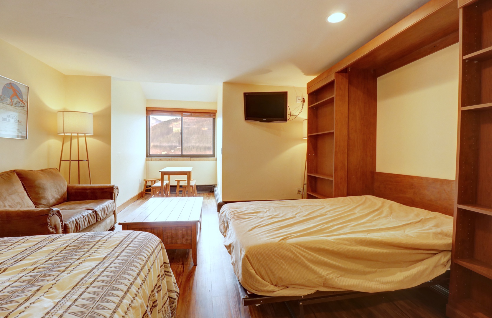 VS553 Village Square Hotel Room VS553 Village Square Hotel Room Large studio-style bedroom featuring a king bed, warm wood furnishings, and a cozy sitting area. Perfect for relaxing after a day on the mountain. Inviting sitting area with a wall-mounted TV and a quaint dining nook by the window, offering mountain views. Perfect for enjoying meals or relaxing after a day of skiing. Spacious studio bedroom featuring a comfortable king bed, warm wood furnishings, and a cozy sofa for relaxing after a day of mountain activities. Bright and spacious studio-style bedroom with a king bed, warm wood furnishings, and a cozy sitting area—ideal for relaxing after a day on the slopes. Open Gallery Large studio-style bedroom featuring a king bed, warm wood furnishings, and a cozy sitting area. Perfect for relaxing after a day on the mountain. Inviting sitting area with a wall-mounted TV and a quaint dining nook by the window, offering mountain views. Perfect for enjoying meals or relaxing after a day of skiing. Spacious studio bedroom featuring a comfortable king bed, warm wood furnishings, and a cozy sofa for relaxing after a day of mountain activities. Bright and spacious studio-style bedroom with a king bed, warm wood furnishings, and a cozy sitting area—ideal for relaxing after a day on the slopes. Warm and inviting studio featuring a comfortable sitting area, wall-mounted TV, and a cozy dining nook with mountain views. Ideal for couples or small families. Versatile studio featuring a convenient Murphy bed, cozy sitting area, and a dining nook with mountain views. Perfect for families or groups needing extra sleeping space. Comfortable sitting area featuring a plush sofa, rustic wood coffee table, and a dining nook by the window with views of the surrounding mountains. Perfect for relaxing après-ski. Custom built-in unit featuring a Murphy bed and extensive shelving, offering versatile sleeping space and abundant storage in the studio. Well-organized kitchenette featuring abundant wood cabinetry, a microwave, and countertop space—ideal for preparing quick meals or snacks after a day on the mountain. Modern bathroom featuring dual sinks with granite countertops, elegant framed mirrors, and a tiled tub/shower combination for relaxing after a day on the mountain. Modern bathroom featuring dual sinks with granite countertops, elegant framed mirrors, and a tiled tub/shower combination for relaxing after a day on the mountain. Compact yet well-appointed kitchenette featuring granite countertops, abundant wood cabinetry, a microwave, and open shelving for easy access to essentials. Classic tiled bathroom featuring a tub/shower combination with handheld showerhead and safety grab bar. Ideal for relaxing after a day of mountain activities. Village Square sauna. Seating area in common areas. Seating area in common areas. Indoor, communal hot tub. Indoor, communal hot tub. Village square laundry room. Gallery View Copper Mountain, CO 0 Bedrooms 1 full Baths 2 Guests 350 sq. ft. Description Amenities Reviews Calendar Location Video Shared Hot Tub Conveniently located hotel room in Center Village, only steps away from the American Eagle chairlift. Easy access to all the shops and restaurants. There is a King Bed and a Queen Murphy Bed. This hotel room features a Kitchenette in the bathroom area. There is a private ski locker for use during your stay, located on the first floor. Village Square has a large indoor hot tub, sauna and parking for 1 vehicle. The parking is located in Lower Ten Mile Lot just right across the street on Guller Road. Any additional vehicles can park in the North Alpine Lot at the entrance of Copper Mountain for an additional charge in the winter, summer is free. Rooms Hotel Room 1 King 1 Murphy Bed Amenities Cleanliness & Safety In Person Check-In Carbon Monoxide Detector Fire Extinguisher Smoke Detector Deadbolt Lock Location & Attractions Car - Not Necessary Laundromat Nearby Marina Mountain Village Family Themed Resort Access Other Property Amenities Heating Parking & Facilities Elevator Garage Parking - Free Parking - Indoor Parking - Off Site Paid Pool & Spa Hot Tub Hot Tub - Community Bathroom Body Soap Conditioner Hair Dryer Hot Water Shampoo Bedroom & Laundry Bed Linens Hangers Towels Washer - Community Entertainment TV Satellite or Cable Internet & Office Wifi Wifi - Free Kitchen & Dining Coffee Coffee Maker Microwave Refrigerator Other Building, Complex Or Neighborhood Amenities Gym/Fitness Room - Community Hospital Tennis Court - Community Services Cleaning During Stay - On Request Ski Rental - Available Massage - Available Sports, Leisure & Adventure Bird Watching Boating Cross Country Skiing Cycling Fishing Fishing - Fly Fishing - Freshwater Golf Hiking Horseback Riding Ice Skating Mountain Biking Mountain Climbing Outlet Shopping Paddle Boating Rafting Sailing Shopping Skiing Sledding Snowboarding Snowmobiling Whitewater Rafting Wildlife Viewing Hunting Mountaineering Rock Climbing Outdoor Bicycle Snow Sports Gear See All Amenities + Reviews Write A Review Thank you for submitting your review. It will be processed shortly! We value your privacy. Your email address will not be shared publicly. SUBMIT We are sorry, there are no reviews for this unit. Be the first to leave a review! Availability Select your travel dates to view a detailed quote. Location Video Choose dates to calculate quote Check-in: Check-out: Number of Guests Adults: 1 Adults 2 Adults Children: 0 Children 1 Children 2 Children Okay Share Your Name: Your Email: Recipients Email: Enter one or more recipient email addresses separated by comma Message: Add to Favorites Favorites Print Inquire Inquiry Form - Property Details Page Inquiry form for property pages. FullName(Required) First Last Email(Required) Phone(Required)Arrival(Required) MM slash DD slash YYYY Departure(Required) MM slash DD slash YYYY Comment Δ Inquire XClose VS553 Village Square Hotel Room schedule-calendar Check Availability