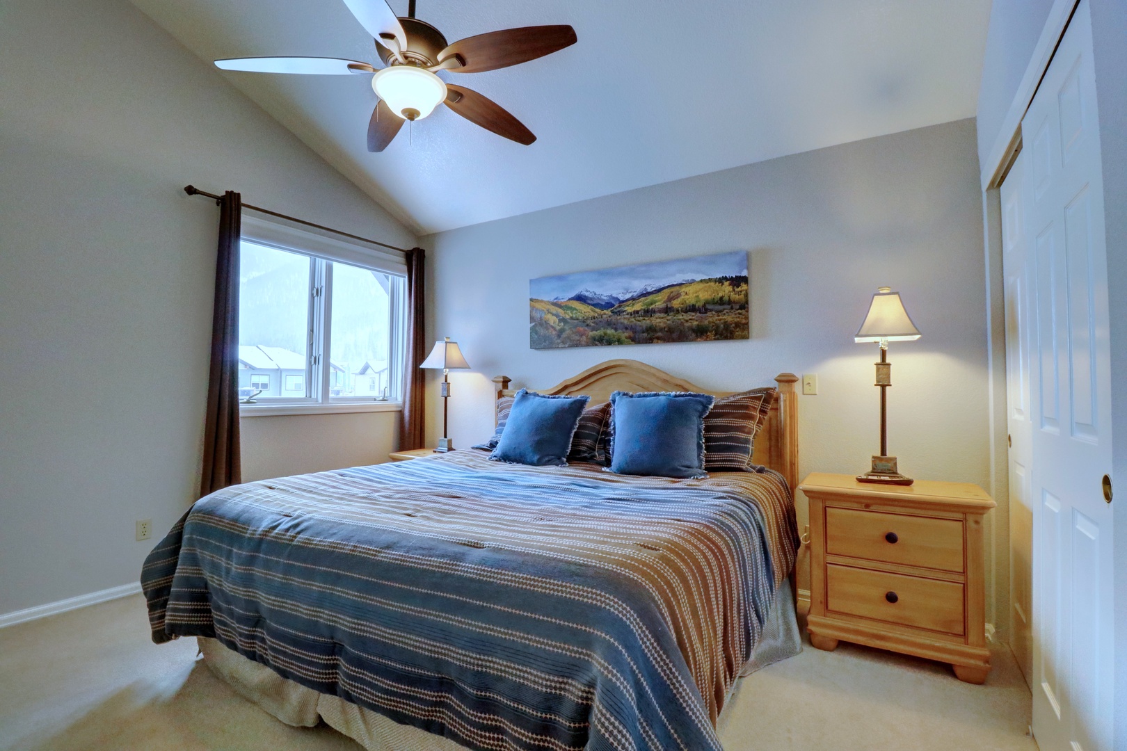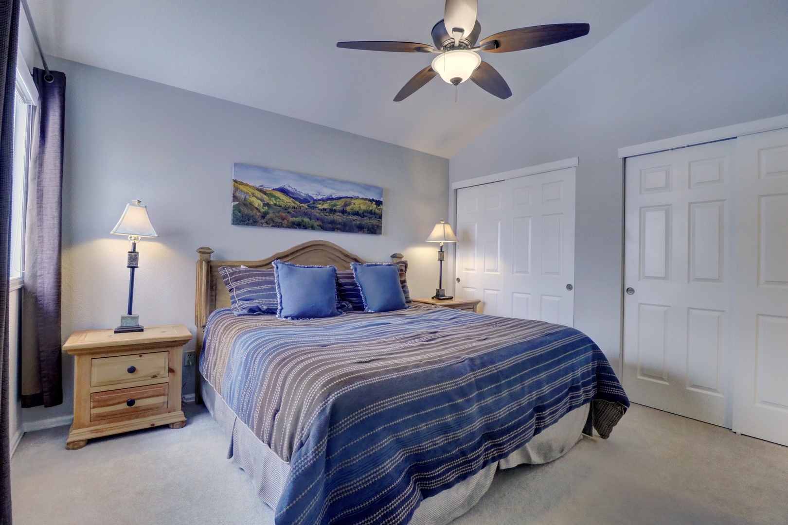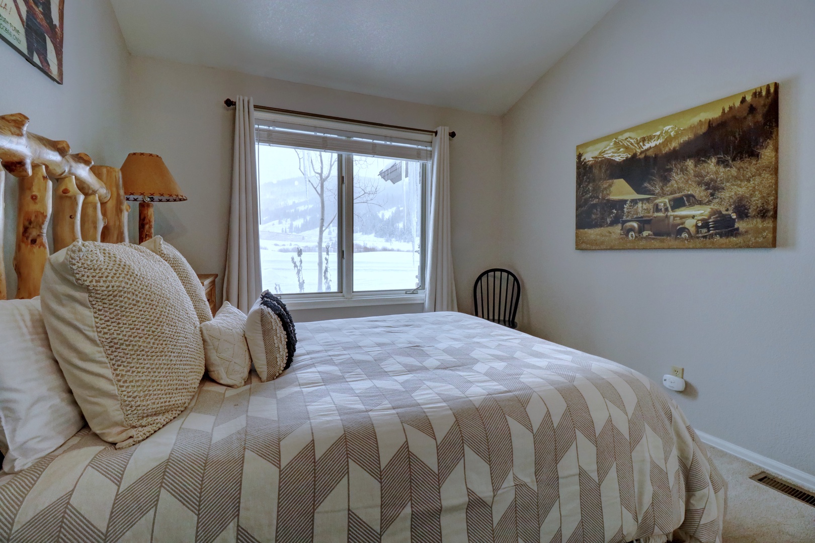 Woods12 Townhome Pet Friendly Woods12 Townhome Pet Friendly A cozy living room with a large window showing a snowy outdoor view. The room has a stone fireplace, a mounted TV, two sofas, a coffee table, and a wooden floor. A cozy living room with two beige sofas, a wooden coffee table, and a view of snow-capped mountains through large windows. The room has white walls and wooden floors. Beautiful aerial view of townhouse with pond in the back and Copper Mountain ski slopes in background. Beautiful aerial view of townhouse with pond in the back and Copper Mountain ski slopes in background. Open Gallery A cozy living room with a large window showing a snowy outdoor view. The room has a stone fireplace, a mounted TV, two sofas, a coffee table, and a wooden floor. A cozy living room with two beige sofas, a wooden coffee table, and a view of snow-capped mountains through large windows. The room has white walls and wooden floors. Beautiful aerial view of townhouse with pond in the back and Copper Mountain ski slopes in background. Beautiful aerial view of townhouse with pond in the back and Copper Mountain ski slopes in background. Living room with a large window view, a gray sofa, a wooden coffee table, a stone fireplace, and a painting on the wall. Outside, snowy houses and mountains are visible through the windows. Beautiful aerial view of townhouse with pond in the back and Copper Mountain ski slopes in background. A cozy living room features a beige sofa with cushions, a small table, a rustic stone fireplace, and a large window showcasing snowy mountains outside. A living room interior featuring a stone fireplace, wall-mounted TV, two beige sofas, a wooden coffee table, and large windows with a snowy mountain view outside. A cozy living room with a beige sofa, a wooden coffee table, and a stone fireplace. Large windows showcase a snowy outdoor scene. A dining room with a wooden table and six chairs under a chandelier. A large window overlooks a snowy outdoor scene, and a landscape painting is on the wall. A dining area featuring a wooden table with six chairs, a chandelier above, a landscape painting on the wall, a window with a snowy outdoor view, and a staircase to the left. Dining room with a rectangular wooden table and six black chairs. A chandelier hangs above the table. A landscape painting is on the wall, and a staircase is visible in the background. Breakfast Bar Breakfast Bar Seats 3 Beautiful Fully Equipped Kitchen Beautiful Fully Equipped Kitchen Modern kitchen with view of a hallway leading to a staircase. The kitchen features dark countertops, a stainless steel dishwasher, and a framed bear artwork on the wall. Modern kitchen with white cabinets, black countertops, stainless steel appliances, and a double sink. The space includes an adjacent dining area with large windows and beige curtains. A bedroom with a bunk bed; the lower bunk has a double mattress, and the upper bunk has a single mattress. The room also has a window, closet, and light-colored walls. A small bedroom with white bunk beds, gray bedding, a ladder, a window with cream curtains, and wall art. A white laundry basket is placed next to the bunk beds. A stairwell with wooden steps, white railings, a large arched window with a snow-covered tree outside, and framed artwork on the walls. A cozy bedroom with a rustic wooden bed, neutral-colored bedding, a window with drapes showing a snowy outdoor scene, a bedside table with a lamp, and a wooden chair. A small bedroom features a bed with patterned bedding, log-style bed frame, pillows, a side table with a lamp, a window with snowy landscape view, a chair, and a wall picture of a rustic scene. A modern bathroom featuring a countertop sink, toilet, and shower with a striped curtain. Shelves with toiletries and towels are mounted on the walls. The lighting is soft and the decor minimalist. A house interior featuring a wooden staircase, a small bar area with stools, a lit-up dining space, and an open door to a bathroom with tiled walls and floors. Hallway with wooden railing, bi-fold closet doors, and a view into a bedroom with a ceiling fan and bedside lamp. Walls are painted beige, and the floor has a wooden finish. A neatly arranged bedroom with a large bed, two wooden nightstands with lamps, a ceiling fan, and a painting above the bed. The room has light gray walls and double white closet doors. A bedroom with a cozy bed, two bedside tables with lamps, a ceiling fan, a window with curtains, and a landscape painting above the bed. En Suite Master Bathroom En Suite Master Bathroom Private Washer and Dryer Private Washer and Dryer Located in bathroom Private Deck Private Deck Enjoy the Views A gray house with a stone chimney sits by a lake, surrounded by green lawn and pine trees, with snow-capped mountains in the background under a partly cloudy sky. The house features it's own private deck going down into the yard Front entrance of the house. 1 garage spot, 1 other vehicle can park in front of the garage. Beautiful end unit townhome IMG_9702 IMG_9704 Our SkyRun office is located in East Village with onsite staff to assist you! Welcome to Copper Mountain! Welcome to Copper Mountain! Gallery View Copper Mountain, CO 3 Bedrooms 2 full Baths 8 Guests 1516 sq. ft. Pets OK (4.8) Description Rooms Amenities Reviews Calendar Location Video Located in the East Village on the Copper Creek Golf Course, this townhome offers beautiful views of the Ten Mile Range. It is a short walk to the Super Bee high-speed 6-person chairlift, which takes you 2,000 vertical feet up to the top of the mountain. Be skiing or riding Colorado powder in minutes! The main ground level features a living room with a queen-size sleeper sofa, a gas fireplace, a flat-screen TV, and a fully stocked kitchen. Enjoy the views from the back deck! There is also a full bath on the main level. The guest bedroom, with a queen bed, is located on the main level. The third bedroom, also on the main level, has a set of
