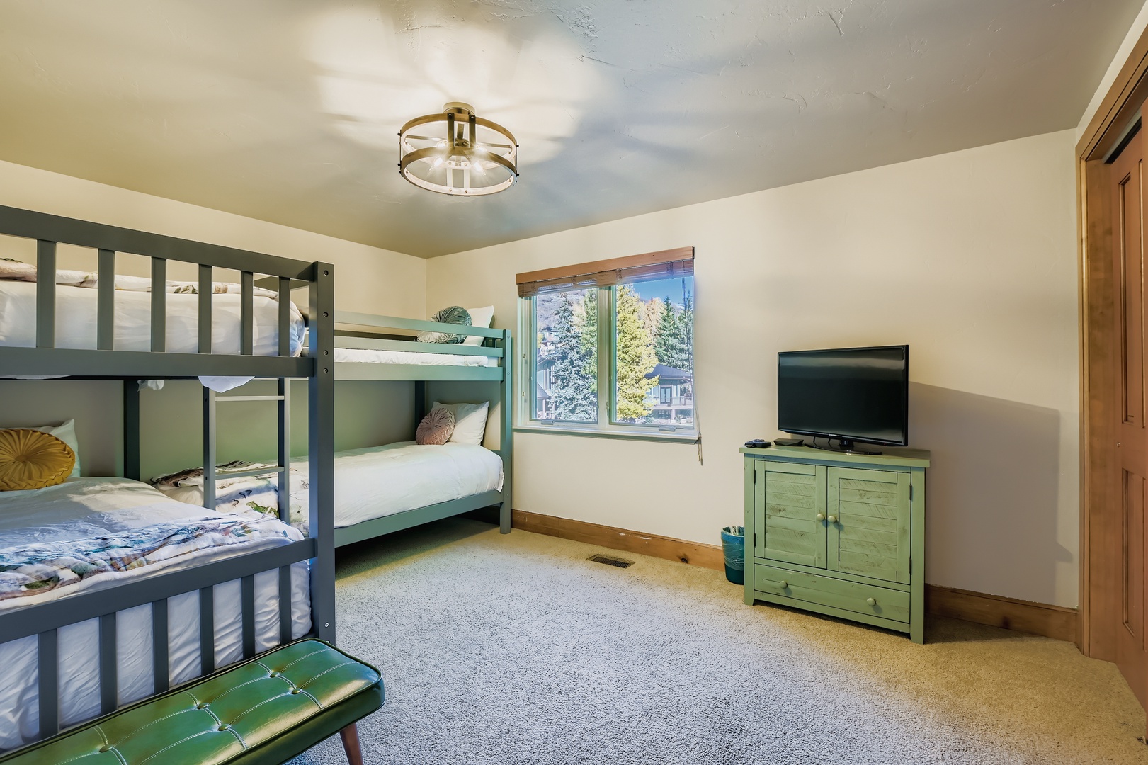 Main floor bunk room: Bunk bed with 2 twin beds and a queen sleeper sofa