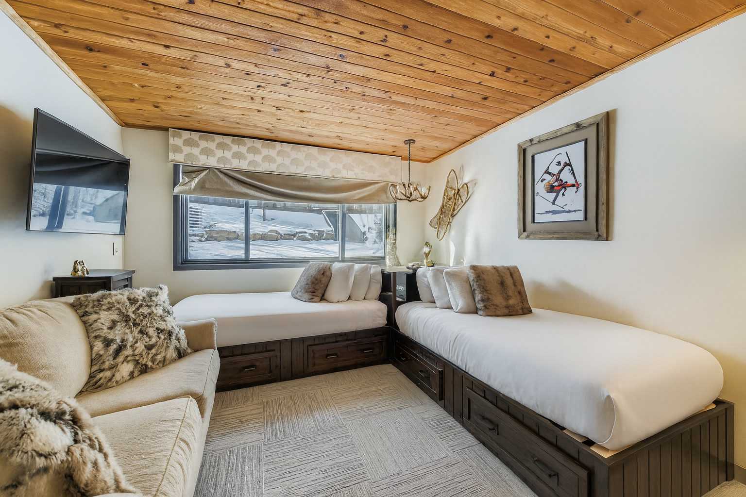 51 SnowFlower Home Utah Deer Valley 51 SnowFlower 51 SnowFlower Modern property building nestled among snow-covered evergreen trees in a peaceful winter setting. Modern property entrance featuring distinctive wooden beam architecture and welcoming covered entryway during winter season. Relax in your cozy living room featuring rustic wood beam ceilings, a stone fireplace, and comfortable leather seating perfect for unwinding after mountain adventures. Relax in your cozy living room with rustic wood ceiling, stone fireplace, and comfortable leather seating where you can unwind after a day of adventure. Open Gallery Modern property building nestled among snow-covered evergreen trees in a peaceful winter setting. Modern property entrance featuring distinctive wooden beam architecture and welcoming covered entryway during winter season. Relax in your cozy living room featuring rustic wood beam ceilings, a stone fireplace, and comfortable leather seating perfect for unwinding after mountain adventures. Relax in your cozy living room with rustic wood ceiling, stone fireplace, and comfortable leather seating where you can unwind after a day of adventure. Relax in your cozy open-concept living space featuring rustic wood ceilings, comfortable leather seating, and a fully equipped kitchen perfect for your mountain getaway. Relax in your cozy living room featuring rustic wood ceilings, leather seating, and a warm mountain lodge atmosphere with modern amenities including a large TV. Sink into the soft leather sofa with charming 'Adventure Awaits' pillows - your perfect spot to unwind and plan your next day's discoveries. Your open-concept kitchen and dining area features warm wood accents, modern appliances, and stylish leather seating where you can enjoy meals together. Gather around this beautifully set dining table where your meals become memorable experiences with elegant place settings and fresh greenery. Your fully equipped kitchen features granite countertops, modern appliances, and everything you need to prepare meals during your stay. Your fully-equipped kitchen features stainless steel appliances, granite countertops, and rustic wood beam ceilings that create a warm, inviting space for cooking. Start your morning right with fresh coffee and perfectly toasted bread - your kitchen comes equipped with quality appliances for a convenient stay. Your fully equipped kitchen features granite countertops, a sleek glass-top stove, and all the cooking essentials you need to prepare meals during your stay. Your peaceful bedroom features rustic wood ceilings, cozy bedding, and modern amenities including a TV for your relaxation. Sink into comfort with crisp white linens and stylish patterned pillows in your cozy bedroom retreat, featuring warm wood accents and mountain views. Unwind in your beautifully appointed bathroom featuring a spacious walk-in shower with modern tile work, elegant vanity, and premium fixtures for your comfort. Indulge in your private spa-like bathroom featuring a luxurious glass-enclosed shower with rainfall head and elegant stone tilework. Fresh towels await your arrival. Unwind in your elegantly appointed bathroom featuring a marble vanity, glass-enclosed tub/shower combo, and warm ambient lighting that creates the perfect retreat. Refresh in your elegant bathroom with a beautiful stone sink, modern fixtures, and thoughtful touches like a small plant to brighten your daily routine. Your spacious bedroom features twin beds with built-in storage and connects to your private bathroom with luxurious stone shower and soaking tub. Cozy covered deck with BBQ grill and seating overlooking snowy mountain landscape - perfect for year-round outdoor dining and relaxation. Cozy up on your private balcony with comfortable seating and a glass-top table, perfect for morning coffee or evening relaxation in any season. Scenic winter landscape in the surrounding area features snow-covered terrain and nearby ski lift infrastructure. Relax in your beautifully appointed bedroom featuring a comfortable king bed, warm wood ceiling, and private balcony where you can enjoy mountain air. Your cozy mountain retreat features twin beds with plush linens and rustic wood details, perfect for sharing memorable moments with family or friends. Relax in your cozy bedroom featuring rustic wood ceilings, built-in storage, and mountain-inspired decor that creates the perfect alpine retreat atmosphere. Relax in this modern bedroom featuring crisp white linens, warm wood ceiling beams, and contemporary furnishings that create a perfect retreat for your stay. Sink into the plush comfort of your bedroom with luxurious pillows and soft textures that invite you to unwind and relax in style. The property features a refreshing outdoor swimming pool area with paved surroundings for a comfortable and relaxing vacation experience. Stay active during your stay with a comprehensive fitness center featuring modern cardio machines, weight training equipment, and strength machines in a well-lit environment. Aerial view of the mountain resort nestled in the valley with outdoor pools and recreational facilities surrounded by rolling green hills. Step into your private retreat with beautiful wood-paneled walls and warm lighting creating a cozy atmosphere for your stay. Green courtyard space with picnic tables perfect for outdoor dining and relaxation Tennis court available for guests to enjoy active recreation surrounded by lush greenery Enjoy a refreshing dip in your private pool, surrounded by mature trees and peaceful fencing for complete privacy during your stay. Property floor plan showing the layout and room arrangement for easy navigation during your stay. Hands carefully working with fishing equipment at the water's edge - perfect for your angling adventures. Historic western-style building featuring wooden signage and rustic frontier architecture in a charming town setting. Welcome sign marking your arrival at Park City, ador