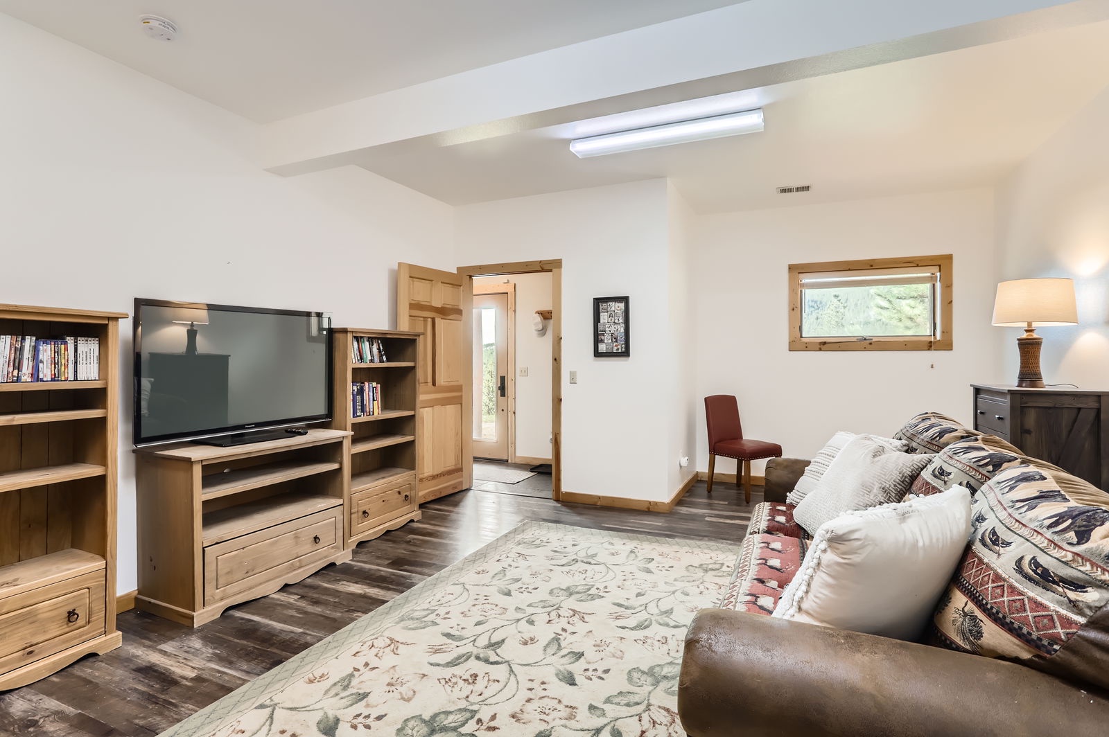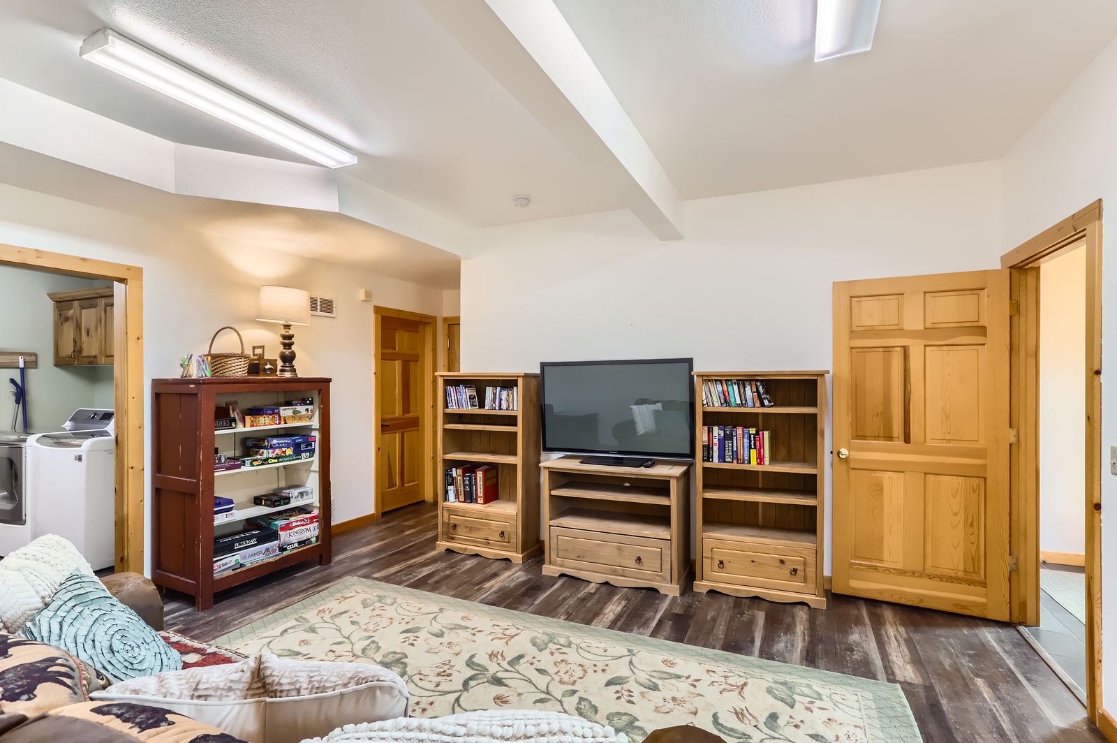 The family room on the ground level with streaming TV and board games is ready for fun and the laundry room is ready for, well not fun, but a needed chore if necessary. Have family movie night with a bowl of popcorn or pull out a board game and see if you can win against the kids.