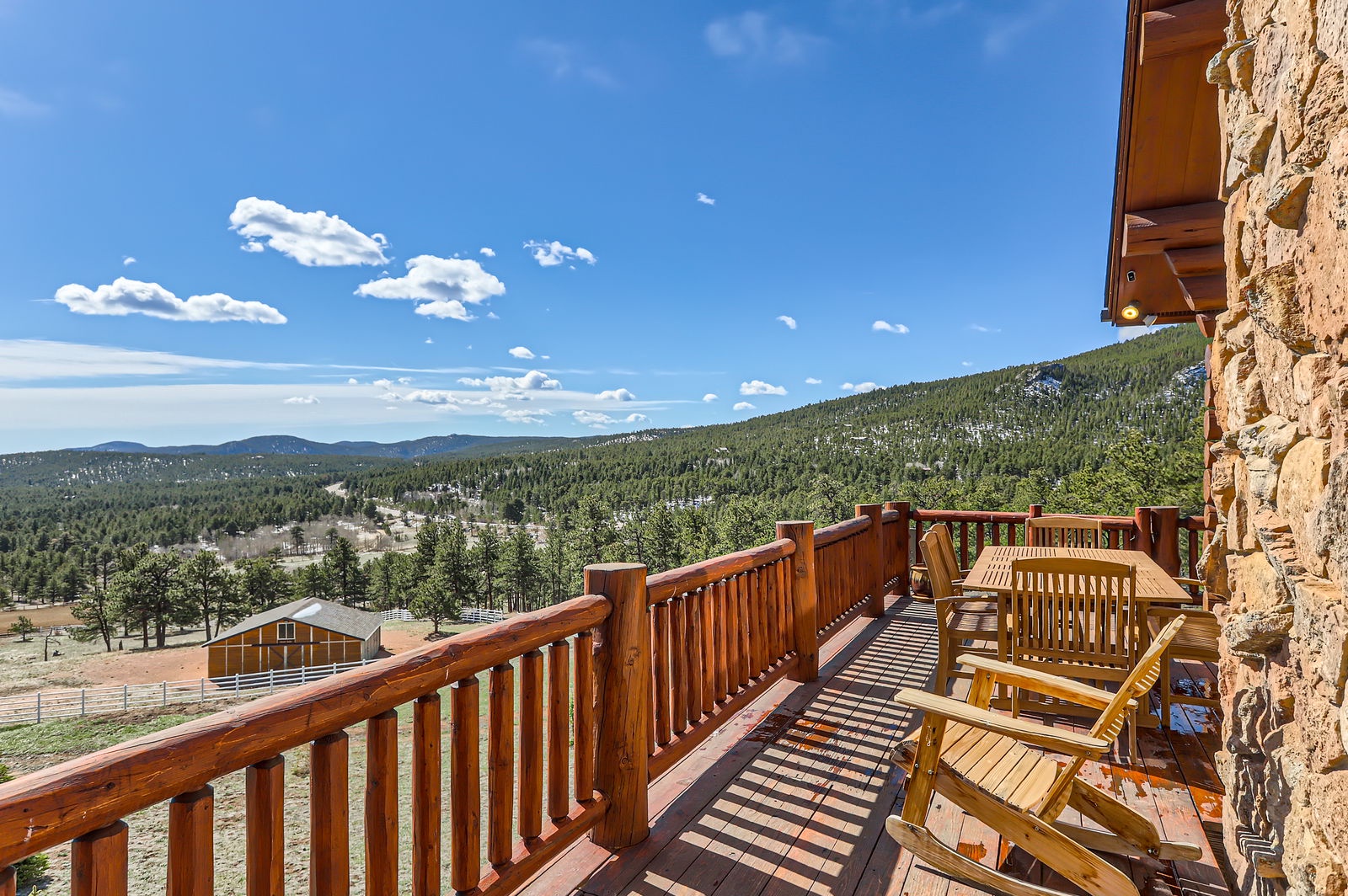 Experience a slice of mountain heaven in this charming, well-appointed modern, 3-bedroom 2 bath, log cabin on 61 acres. Amazing views await you each morning and a hot tub under the stars will beckon you each night. Grill a steak for dinner on the wrap around deck, the perfect place to watch for wildlife. Plenty of land to explore makes this pet friendly (1 dog) home perfect for the whole family!