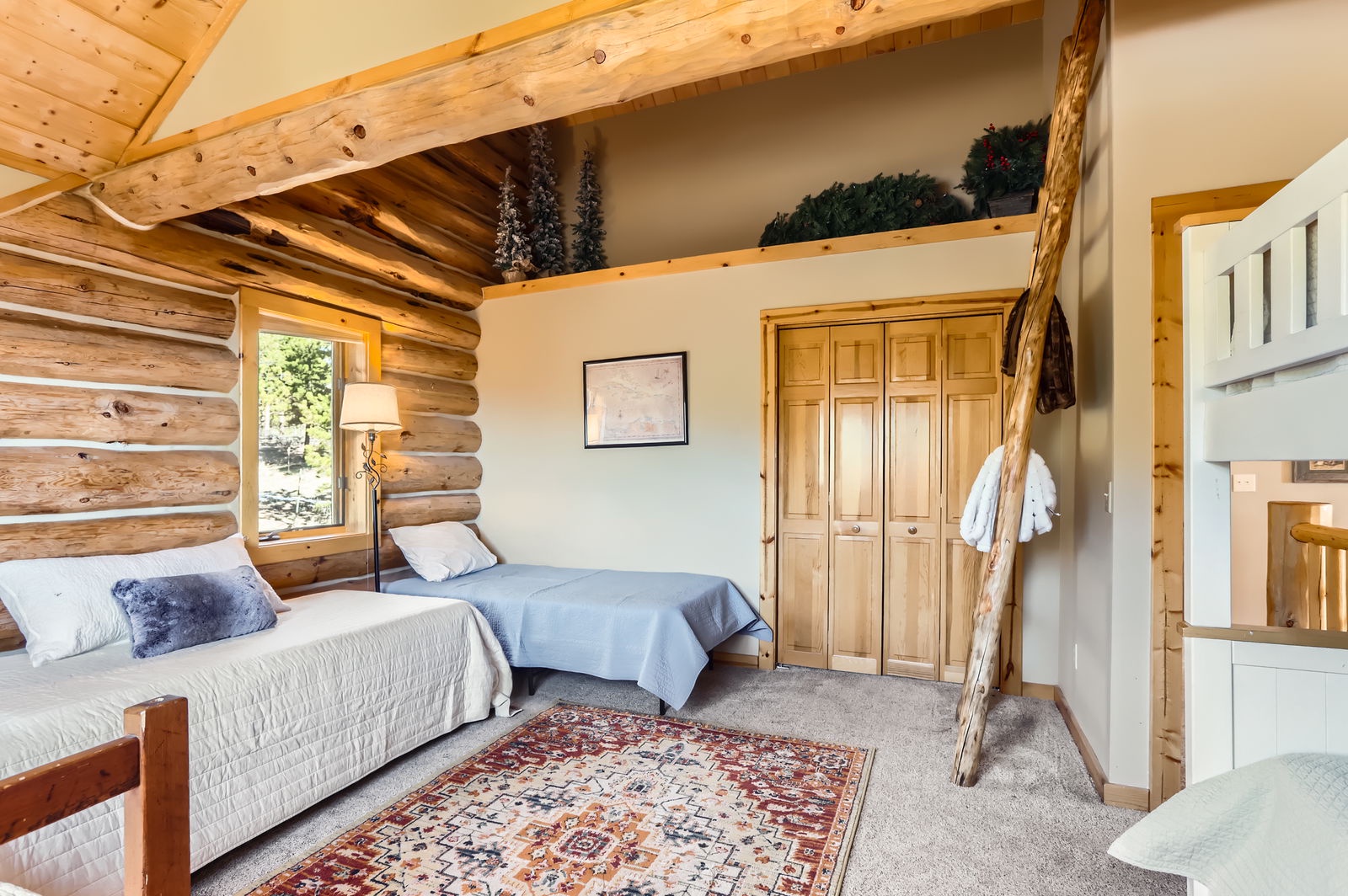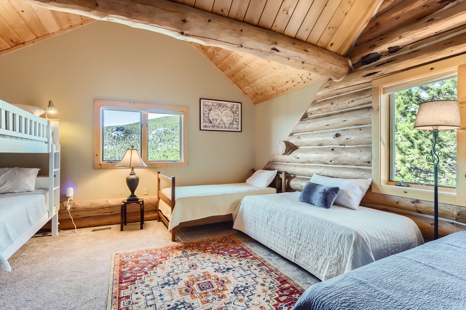 Past the loft is another bedroom with a queen bed so mom and dad can be right next to the kids’ room with 3 twin beds and a set of twin bunk beds. A perfect family set up. The second bathroom with a tub/shower combo takes care getting you ready for the day.
