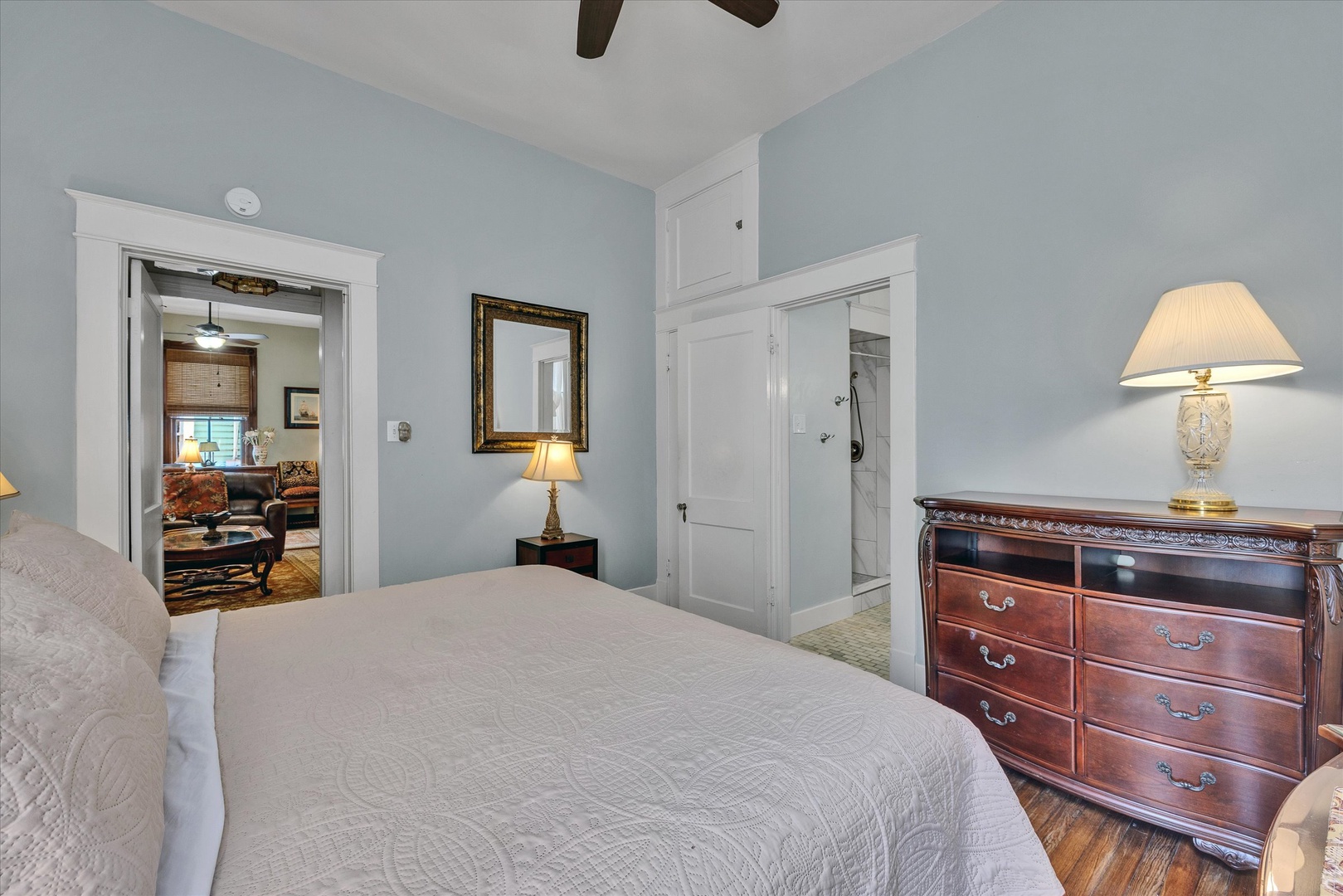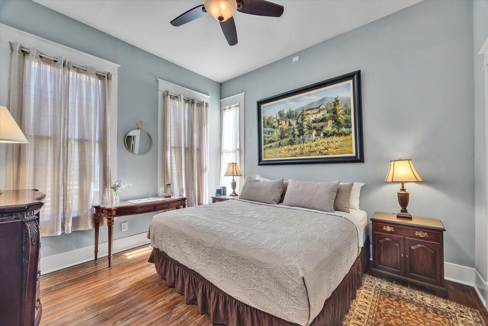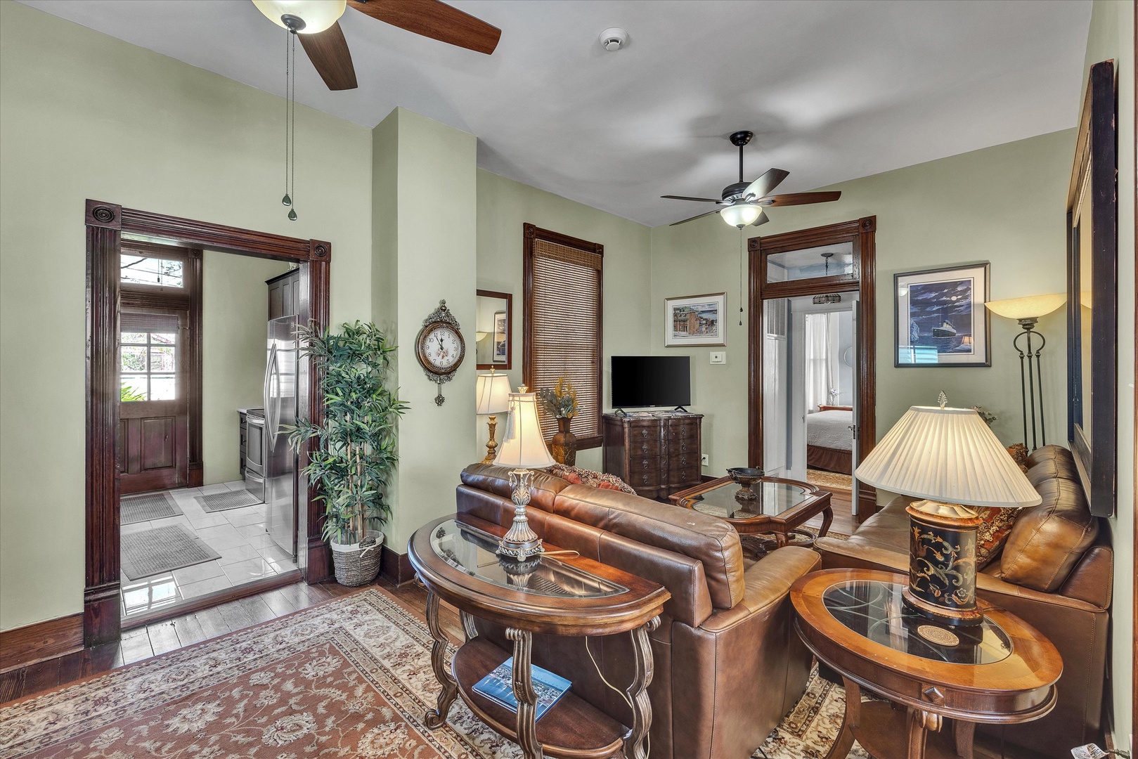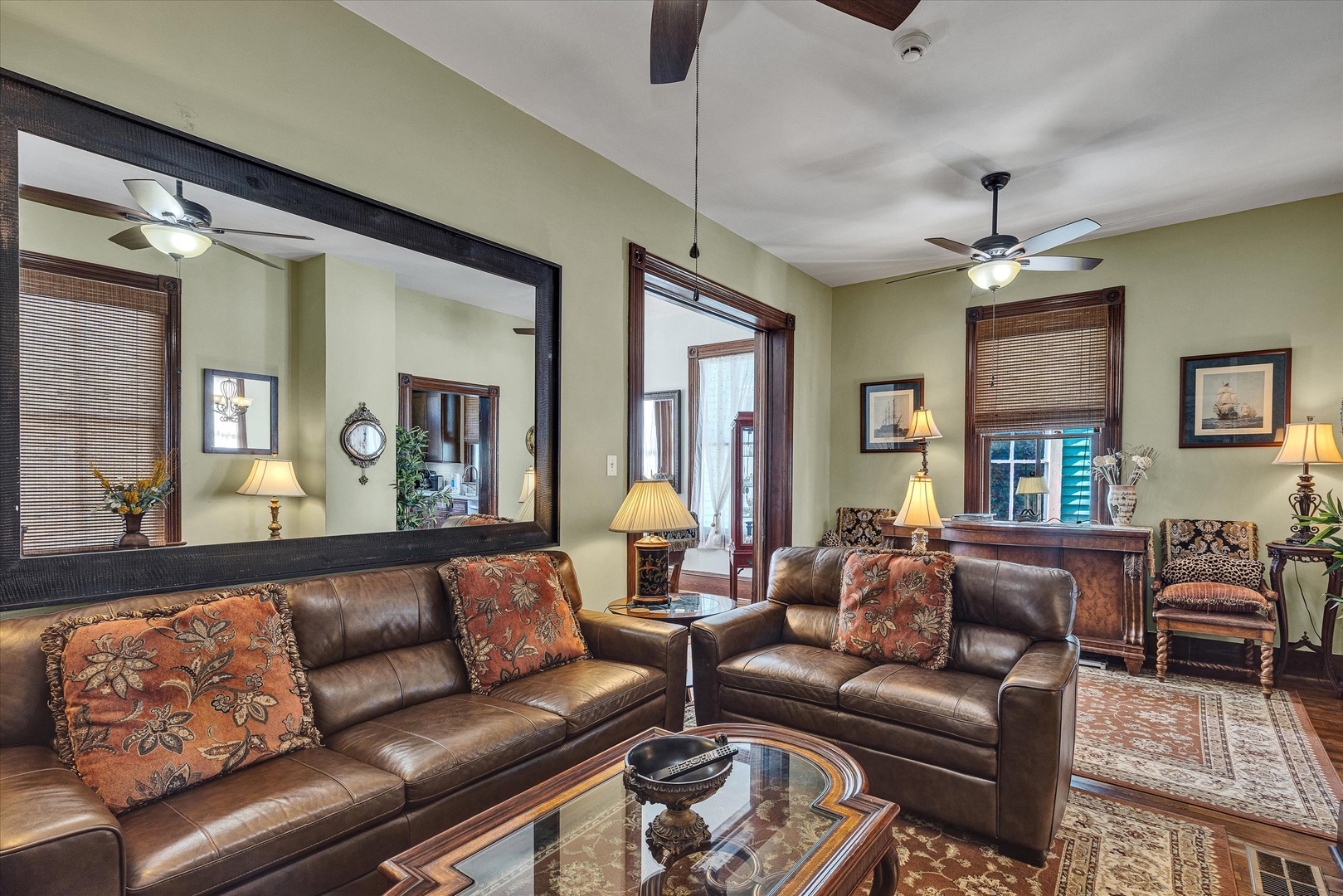 Outside, you'll also find a charming front porch with a swing and chairs—perfect for relaxing and watching the world go by. The beautifully landscaped yard, with its lush greenery and colorful blooms, adds to the serene ambiance of this historic home. The location, directly across from a private school, ensures privacy and tranquility while still being centrally located, offering easy access to the island’s top attractions, beaches, dining, and shopping.