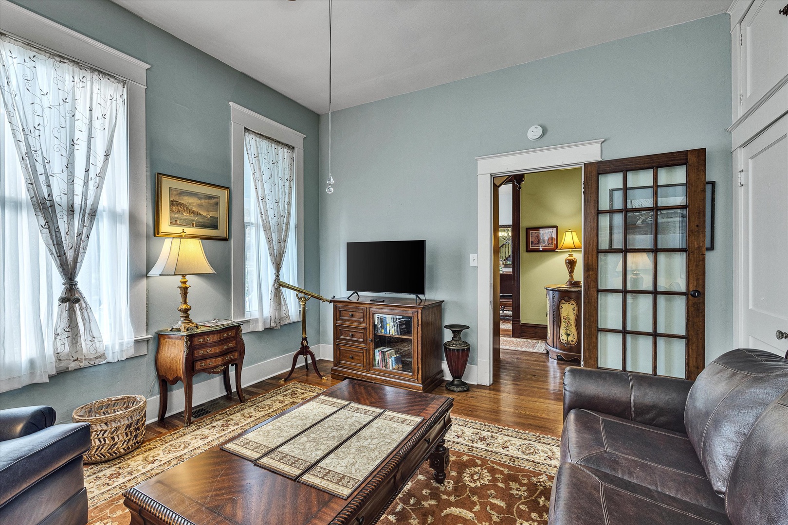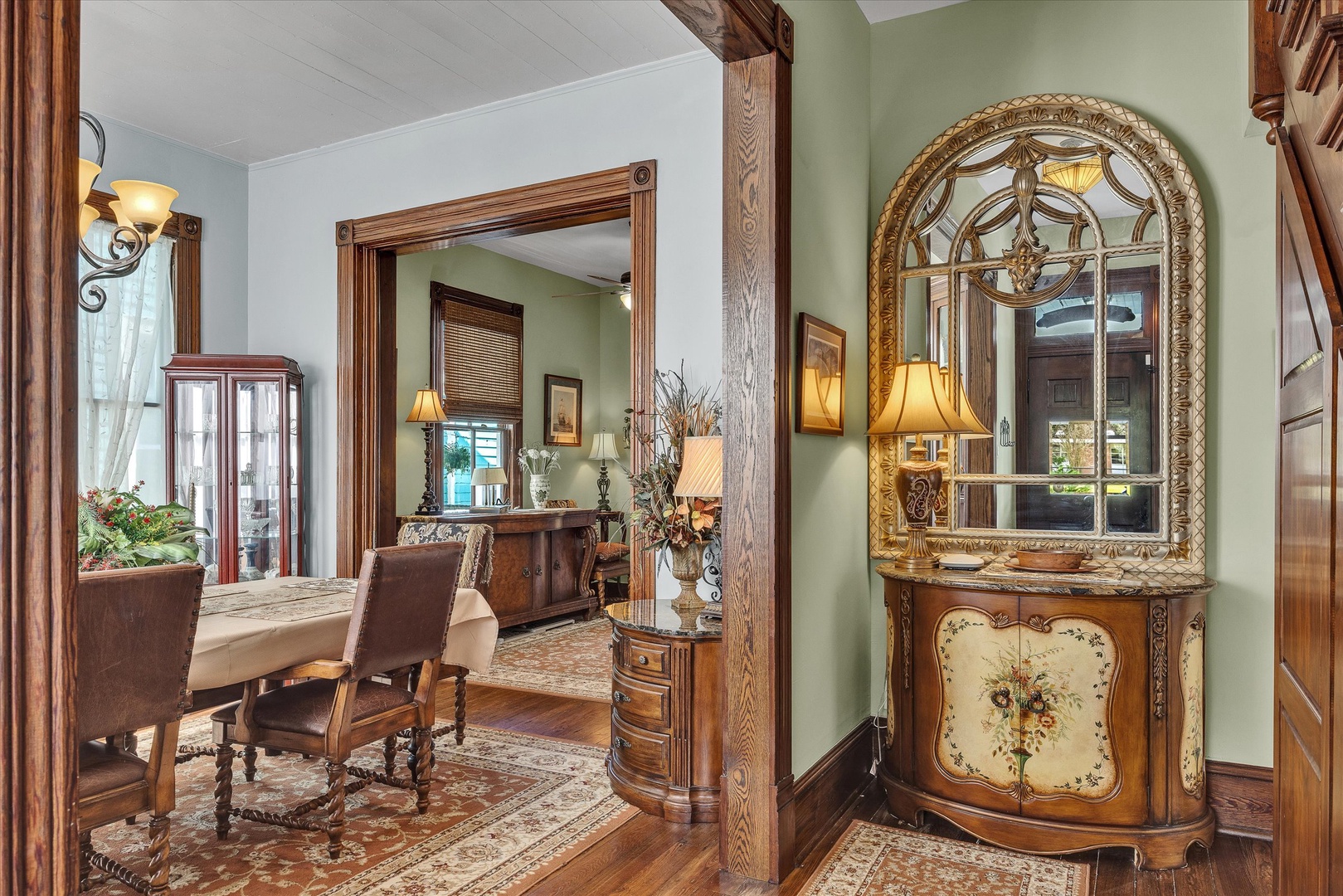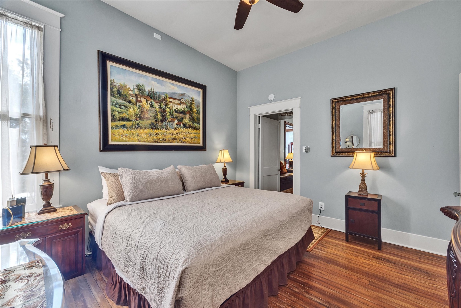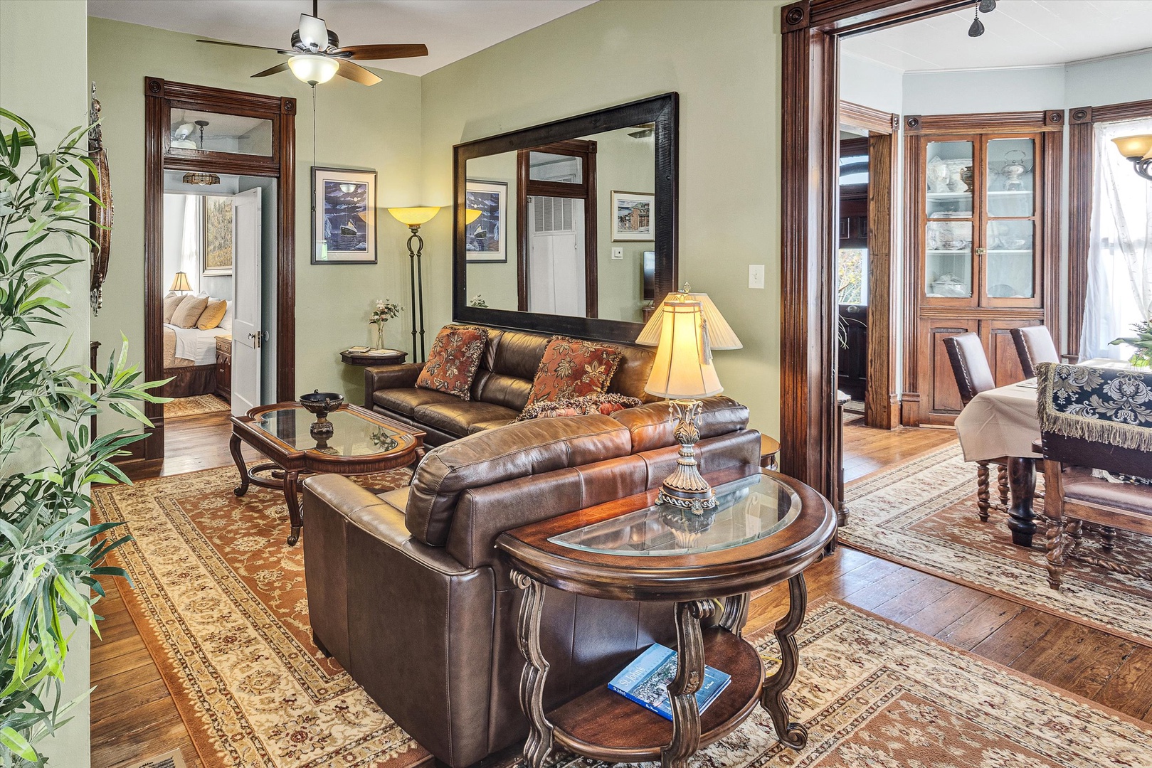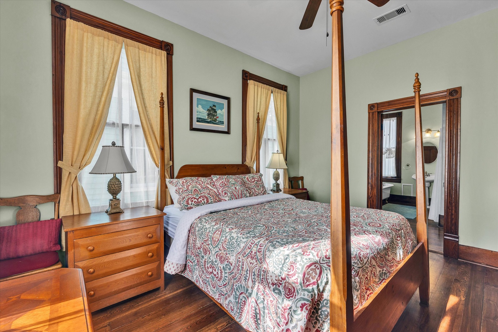 Outside, you'll also find a charming front porch with a swing and chairs—perfect for relaxing and watching the world go by. The beautifully landscaped yard, with its lush greenery and colorful blooms, adds to the serene ambiance of this historic home. The location, directly across from a private school, ensures privacy and tranquility while still being centrally located, offering easy access to the island’s top attractions, beaches, dining, and shopping.