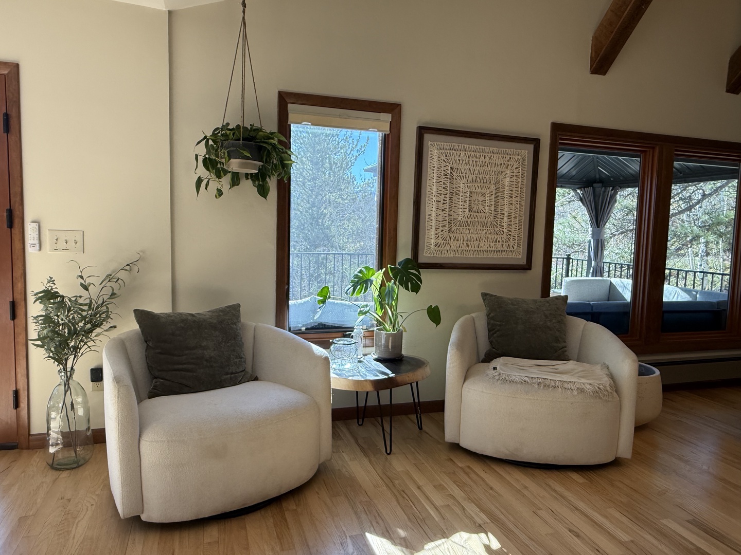 Wake up to sweeping mountain views from the king-sized bed in an open sleeping space. Morning sunlight streams in, perfect for a leisurely start to your day. A TV area is located upstairs where you can enjoy your favorite shows from your Netflix and Prime accounts.