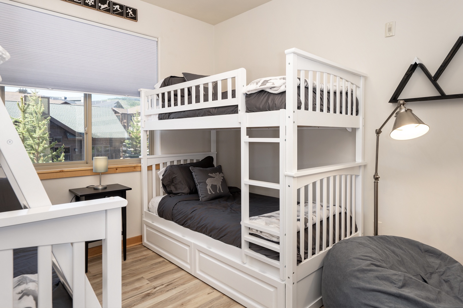 Antlers Run at Trailhead 621 Antlers Run at Trailhead 621 Common Shared Pool and Hot Tub Year Round. Aerial view of lodge-style condos surrounded by evergreens and mountain ridgelines. - Bright and inviting living room with modern furnishings and stylish antler art - Gas fireplace adds warmth and charm beneath cozy seating for everyone - Large windows and wood floors give this space a clean mountain modern feel - Enjoy drinks or breakfast on this covered patio with cushioned wicker chairs - Glass top dining table makes outdoor meals feel relaxing and casual - Views of charming lodge style buildings and trees complete the backdrop - Fully equipped kitchen with stainless steel appliances and spacious island bar - Three wooden stools make it easy to gather for snacks or morning coffee - Pendant lights and wood cabinetry create a warm, polished atmosphere Open Gallery Common Shared Pool and Hot Tub Year Round. Aerial view of lodge-style condos surrounded by evergreens and mountain ridgelines. - Bright and inviting living room with modern furnishings and stylish antler art - Gas fireplace adds warmth and charm beneath cozy seating for everyone - Large windows and wood floors give this space a clean mountain modern feel - Enjoy drinks or breakfast on this covered patio with cushioned wicker chairs - Glass top dining table makes outdoor meals feel relaxing and casual - Views of charming lodge style buildings and trees complete the backdrop - Fully equipped kitchen with stainless steel appliances and spacious island bar - Three wooden stools make it easy to gather for snacks or morning coffee - Pendant lights and wood cabinetry create a warm, polished atmosphere Private balcony with cozy seating and shaded cover for enjoying the mountain air. - Stainless steel refrigerator, gas range, and microwave offer modern convenience - Fully equipped setup for preparing anything from quick breakfasts to full dinners - Granite counters and wood cabinets complete the cozy kitchen space - Spacious dining area with seating for six in bold orange leather style chairs - Large wood table perfect for meals, board games, or group gatherings - Open layout connects seamlessly to the kitchen and living room beyond - Start your day with fresh coffee using the easy drip machine and ceramic mugs - Granite countertop offers space for breakfast setups or snack prep - Conveniently placed outlets make it easy to plug in and go each morning - Everything you need to cook is within reach, from utensils to sharp knives - Sleek utensil holder and modern tea kettle add style and convenience - Whether you’re prepping pasta or morning tea, this kitchen has it all - Open concept layout flows from dining to living with elegant natural lighting - Large windows, stylish fireplace, and cozy seating invite you to unwind - Perfect space to enjoy meals, movies, and memorable moments together - Oversized island with granite top and full drawer storage adds practical charm - Pendant lighting and soft wood tones make it both stylish and functional - Great for casual dining, cooking prep, or gathering around with a drink - Watch your favorite shows from the leather chair or gather around the dining table - White TV console adds a clean, cozy contrast against natural wood accents - Open layout lets you stay connected from kitchen to lounge with ease - Relax by the fire in this inviting lounge with big windows and comfy seating - Framed antlers, modern lamps, and soft textiles add a stylish mountain touch - Enjoy a bright, open space for family chats, games, or quiet downtime - Stylish earth toned throw pillow rests beside sleek silver candlesticks - Black round table with textured lamp creates a cozy, curated corner - Thoughtful decor accents give this space both warmth and personality - Retreat to this spacious king bedroom featuring a bold wood bed frame - Plush pillows and mountain themed artwork add both comfort and charm - Room opens up to the kitchen and dining area for easy morning flow - Peaceful bedroom with wood bedframe, vintage armoire, and private bathroom - Warm tones, area rug, and natural light make it feel inviting and relaxing - Direct access to the bathroom keeps things comfortable and convenient - Sink into this stylish king bed topped with decorative pillows and a cozy throw - Three mountain inspired prints above the headboard tie the space together - Window invites in mountain air and courtyard views for morning refreshment - Neutral toned pillows with subtle botanical design add a soft modern touch - Crisp bedding and clean lines make the space feel both stylish and fresh - Thoughtful textures elevate the room’s cozy and welcoming vibe - Full bathroom with shower tub combo, soft lighting, and rustic wood vanity - Clean design includes towel hooks, storage space, and a framed mirror - Perfect for refreshing after a hike or preparing for a day out exploring - Double bunk room with white frames, plush carpet, and mirrored closet doors - Ideal for kids or groups, offering plenty of storage and a cozy place to unwind - Soft gray tones and wood accents make this room both fun and functional - Soft gray bedding accented by a whimsical moose pillow and flannel throw - Clean white bunk frame adds a fresh and playful contrast to the cozy tones - Charming detail that adds personality to this mountain inspired space - Bright bunk room featuring a twin over twin white frame with soft gray bedding - Natural light filters in through the window for a warm and cheerful atmosphere - Built in storage drawers and bean bag chairs complete this cozy kid friendly space - Twin over full bunk setup ideal for siblings, cousins, or best friend sleepovers - Modern white frame contrasts beautifully with deep gray bedding and moose pillow - Ladder access and underbed storage offer functionality and flair in one - Clean and functional bathroom featuring a classic shower tub combination - Wall mounted hooks, soft lighting, and countertop essentials e