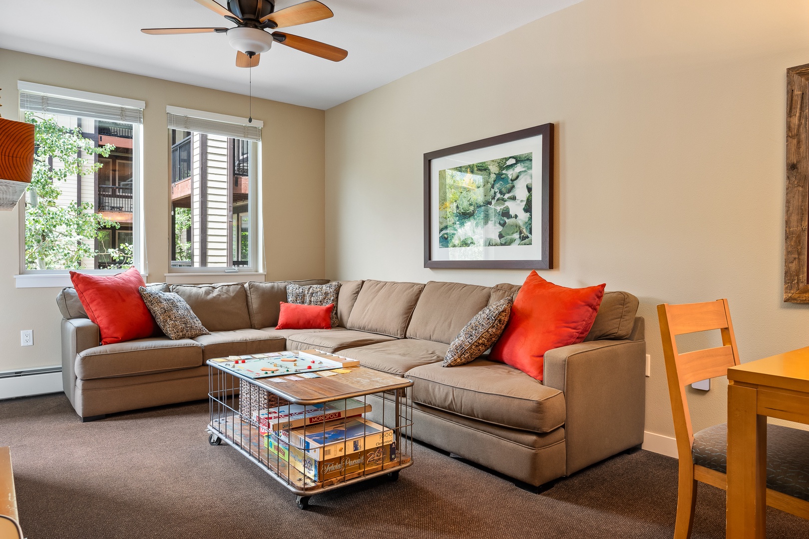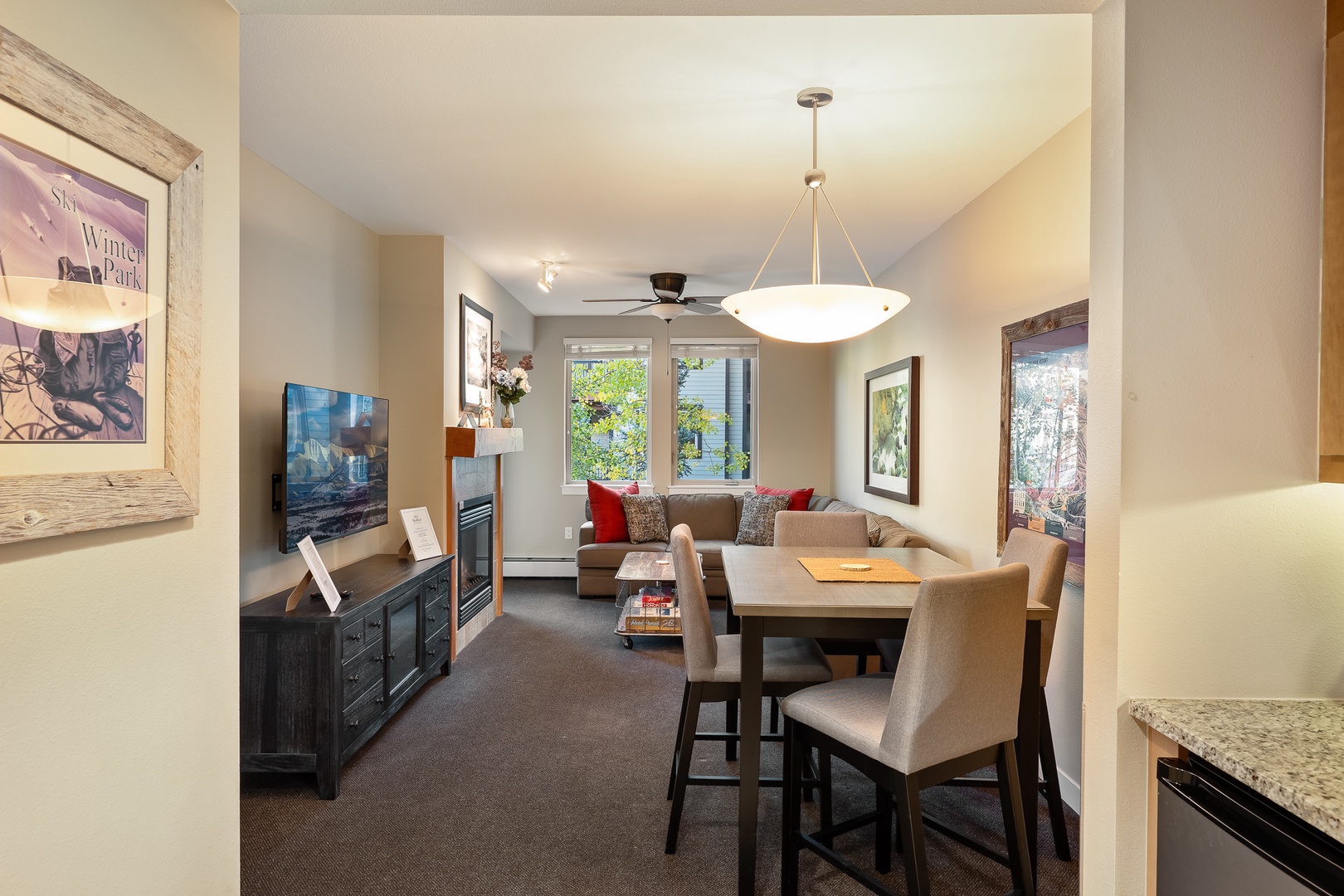 Fraser Crossing 3419 Fraser Crossing 3419 Walk one flight down to hot tub and shared outdoor patio. Enjoy the community outdoor patio with new and familiar faces. - Inviting living room with sectional sofa, cozy fireplace, and warm lighting - Game ready coffee table stocked with puzzles and classics for indoor fun - Large windows and balcony access bring forest views and fresh mountain air - Peaceful balcony escape overlooking the shared pool and mountain backdrop - Perfect spot for morning coffee, evening wine, or a good book in the breeze - Relax in quiet comfort with views of forested hills and charming rooftops Alpine inspired multi story condo building nestled in greenery with scenic mountain views and a peaceful road frontage under blue skies. Open Gallery Walk one flight down to hot tub and shared outdoor patio. Enjoy the community outdoor patio with new and familiar faces. - Inviting living room with sectional sofa, cozy fireplace, and warm lighting - Game ready coffee table stocked with puzzles and classics for indoor fun - Large windows and balcony access bring forest views and fresh mountain air - Peaceful balcony escape overlooking the shared pool and mountain backdrop - Perfect spot for morning coffee, evening wine, or a good book in the breeze - Relax in quiet comfort with views of forested hills and charming rooftops Alpine inspired multi story condo building nestled in greenery with scenic mountain views and a peaceful road frontage under blue skies. - Spacious sectional sofa with vibrant accent pillows and framed artwork above - Natural light flows through multiple windows, creating a bright cozy vibe - Ideal for game night, afternoon lounging, or fireside relaxation - Warm living area featuring a stone-trimmed fireplace and large windows with forest views - Wall mounted TV and soft sectional make this the perfect movie or chill zone - Game-ready coffee table holds hours of family entertainment - Cozy up beside the flickering fire while enjoying classic board games at your leisure - Rustic wood coffee table sets the tone for laid back mountain evenings - Just steps from the balcony for cool air and scenic breaks between rounds - Combined living and dining space with plush sectional and wood dining table - Seating for meals, board games, and late night chats all in one cozy area - Ceiling fans, art accents, and soft lighting create a comfortable atmosphere - Combined dining and living room perfect for family time, meals, and late night movies - Warm tones, carpeted floors, and extra seating make it feel inviting and familiar - Overlooks leafy views and connects directly to the balcony retreat - Cozy four seat dining table framed by art and pendant lighting, ideal for shared meals - Fully stocked kitchen just steps away with stainless appliances and wood cabinets - Great layout for everything from snacks to full family dinners - Start your mornings right with a fresh brew from the drip coffee maker and cozy mugs - Enjoy pastries and peaceful vibes on granite counters before your next adventure - Coffee, tea, and treats await you in this warm, welcoming kitchen corner - Fully equipped kitchen with granite countertops, microwave, and full size appliances - Plenty of cabinetry and sleek backsplash make cooking easy and enjoyable - Everything you need to prep meals, snacks, or a quiet night in with wine Bird’s eye view of a central courtyard featuring a sparkling pool, surrounding lounge chairs, shaded seating, and landscaping. - Spacious bedroom with king size bed, dual nightstands, and soft ambient lighting - Windows let in green views and fresh mountain air morning through evening - Neutral tones and ceiling fan create the perfect retreat after a day outdoors - Bright and peaceful bedroom with cozy bedding and large windows for natural light - Wall mounted TV and scenic artwork create a relaxing environment for downtime - Perfect space for unwinding with your favorite shows after mountain hikes - Large bathroom with granite countertop, spacious vanity, and oversized mirror - Wall mounted hairdryer, bright lighting, and soft towels make getting ready a breeze - Everything is designed for comfort, convenience, and style during your stay - Unwind after your day with a relaxing soak in the deep tub or refreshing rinse in the shower - Thoughtfully designed with bright tile and warm wall tones for a spa like feel - Clean, calming, and perfect for refreshing before or after adventures - Bright and polished bathroom with both a glass shower and deep soaking tub combo - Perfect for morning energizers or winding down with a warm bath at night - Clean tiles, built in shelving, and fluffy towels for total guest comfort - Welcoming entryway with bench, coat hooks, and easy access to the full bathroom - Great space to kick off boots, hang jackets, or organize gear after a hike - Clean tile floors and soft tones create a bright and organized first impression Outdoor view of the condo building. - Sip wine or coffee on your private balcony with a clear view of the sparkling pool below - Peaceful perch surrounded by treetops and the sounds of mountain life - Relax in the shade or watch the sunset after a long day of exploring nearby trails - On site laundry facility with multiple washers and dryers available for guest use - Clean and simple space to take care of laundry during longer stays - No need to pack heavy, fresh clothes are always just a few steps away Ski lockers on entry level no need to carry them too far. Enjoy biking around the resort and storage in the building. Lobby area grab some warmth on your way in (or out) for the day. Village pond for ice skateing in winter. Just a two minute walk to shops, dining, and entertainment. Steps from the resort lifts. Gallery View Winter Park, Colorado 1 Bedrooms 1 full Baths 4 Guests Description Rooms Amenities Reviews Calendar Location Ultimate Mountain Escape – Walk to Gondola + Hot Tub Access Location, Location, Location Just a 3-minu