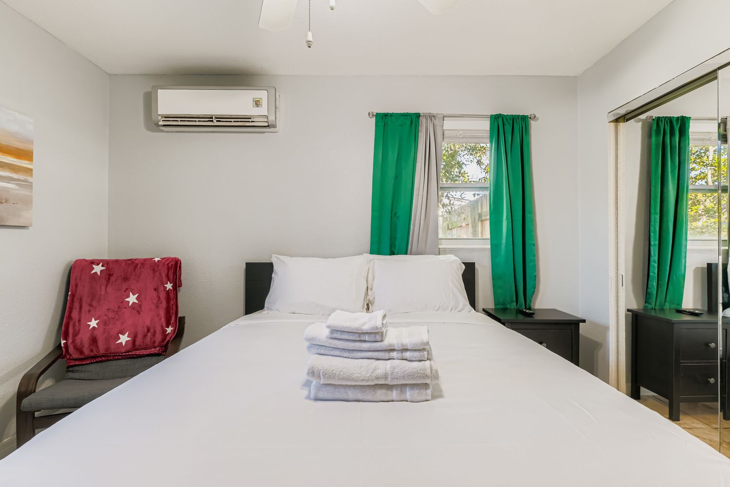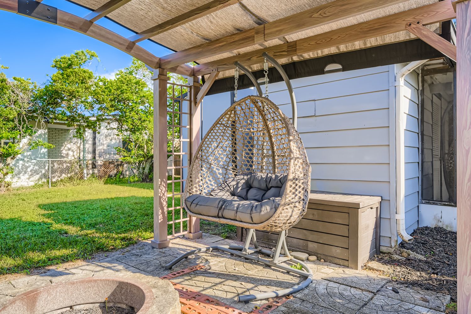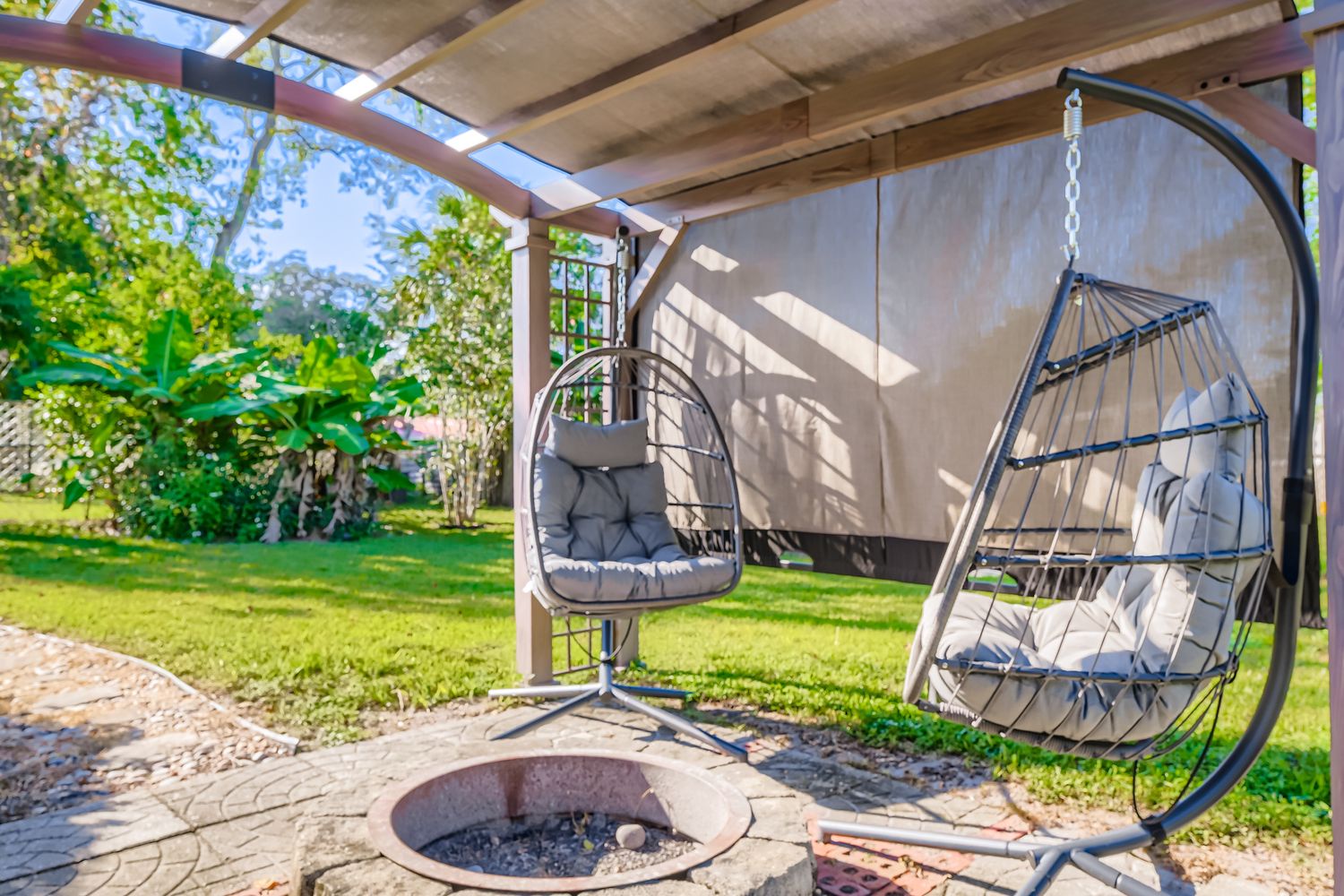Cozy Pergola Retreat Home Florida Jacksonville Cozy Pergola Retreat Cozy Pergola Retreat Screened Lanai Outdoor pergola with fire pit Living Room with smart TV Primary Bedroom with smart TV Kitchen Open Gallery Screened Lanai Outdoor pergola with fire pit Living Room with smart TV Primary Bedroom with smart TV Kitchen living room couches Main couch recliners Main couch fully open with plugs secondary couch/recliners Secondary couch/recliners open board game board game Scented wax warmer Kitchen Dining table Keurig and Hot water kettle Kitchen sink Air fryer/toaster Knife set Dishes Pots/pans/crock pot Pots/pans/crock pot cooking utensils Silverware and cooking utensils Primary Bedroom with lounge chair Queen bed in primary bedroom Iron / ironing board and fan Primary Bathroom attached to primary bedroom Primary Bathroom Primary bathroom shower Hair dryer in primary bathroom Secondary bedroom with queen bed, recliner and smart TV sSecondary bedroom recliner Rrecliner open Fan and laundry basket Kids bedroom with smart TV Night stand with book and lamp Night stand Secondary bathroom Secondary bathroom with shower/tub combo Secondary bathroom hairdryer Beach/pool towel in hallway closet Lanai table set Lanai hanging egg chair Backyard with pergola Fire pit and hanging egg chairs Pergola large hanging chair Front yard and car port Front yard Front entry Floor plan Gallery View Jacksonville, FL 3 Bedrooms 2 full Baths 6 Guests Pets OK Description Rooms Amenities Reviews Calendar Location Pet-Friendly Cozy Pergola Retreat: 3BR Short-Term Rental Near Jacksonville Attractions Welcome to your ideal pet-friendly vacation home in Jacksonville's vibrant Northside! This newly renovated, single-level 3-bedroom, 2-bathroom retreat sleeps up to 6 guests and blends modern comfort with outdoor charm. Perfect for families, groups, or travelers with furry friends, this family-friendly short-term rental (Airbnb alternative) offers stylish interiors, smart amenities, and easy access to top spots like EverBank Stadium, beaches, and golf courses. Whether you're catching a Jaguars game or exploring wildlife sanctuaries, this Jacksonville vacation rental is your relaxing base for Northeast Florida adventures. What You'll Love: Key Highlights • Pet-Friendly Vibes: Bring your dogs or cats (up to 2 pets, breed restrictions may apply—contact us for details; pet fee of $50 per stay applies). Enjoy a fully fenced yard for safe playtime. • Modern Renovations: Fresh updates throughout, including new appliances, smart TVs in every room, and individual AC units for personalized comfort. • Outdoor Oasis: Relax in the screened lanai with dining seating, or unwind under the pergola with hanging egg chairs, a bench swing, and a cozy fire pit for starry evenings. • Convenient Location: Just minutes from attractions, dining, and shopping—ideal for short-term stays or extended getaways. • Family Essentials: Kids' books, toys, games, and children's dinnerware make it welcoming for all ages. Spacious and Inviting Interiors Step inside this bright, airy home designed for effortless relaxation. The open layout features a fully equipped kitchen with brand-new appliances: stove, microwave, dishwasher, refrigerator with ice maker, air fryer/toaster oven combo, Keurig coffee maker, electric hot water kettle, and all the pots, pans, dishes, and spices you need for home-cooked meals. The living room boasts a smart TV for movie nights, while in-unit laundry (new washer and dryer) adds convenience. Bedrooms are tailored for comfort: • Primary Bedroom: Queen bed, lounge chair, attached private bathroom with modern shower, and smart TV. • Secondary Bedroom: Queen bed, recliner, and smart TV. • Kids' Bedroom: Twin bunk beds and wall-mounted smart TV. Both bathrooms are updated with complimentary starters: shampoo, conditioner, body soap, lotion, hand soap, makeup towels, hairdryer, and fresh bath mats. The primary has a shower; the hallway bath offers a tub/shower combo. Embrace the Outdoors Florida living shines here! The screened lanai provides bug-free al fresco dining with a table, chairs, and a hanging egg chair. The pergola area invites relaxation with two egg chairs, a bench swing, and a fire pit—perfect for s'mores or stargazing. A covered carport offers shaded parking for up to two vehicles, with additional street parking available. Prime Location: Attractions and Adventures Nestled in a quiet neighborhood, you're centrally located for Jacksonville's best: • Sports fans: EverBank Stadium (~8 miles) for Jaguars games; VyStar Ballpark (~8 miles) for Jumbo Shrimp baseball; VyStar Veterans Memorial Arena (~8 miles) for Icemen hockey. • Nature lovers: Jacksonville Zoo and Gardens (~7 miles); Catty Shack Ranch (~5 miles); Kathryn Abbey Hanna Park (~15 miles) with beaches and trails; Huguenot Memorial Park (~12 miles) for beach driving; Big/Little Talbot Island State Parks (~15-17 miles); Jacksonville Arboretum (~5 miles, pet-friendly trails). • History buffs: Kingsley Plantation (~10 miles). • Golf enthusiasts: Blue Sky Golf Club (~8 miles) and Hidden Hills Golf Club (~9 miles), both Arnold Palmer-designed. Explore nearby activities like bird watching, boating, cycling, fishing, golf, snorkeling, surfing, and swimming—all within easy reach. Local Dining Favorites Indulge in diverse flavors close by: • Celestia’s Coastal Cuisine (~3 miles): Southern seafood like shrimp and grits. • The Potter’s House Soul Food Bistro (~8 miles): Classic fried chicken and smothered pork chops. • EZ Eatz by Yaya (~7 miles): Mediterranean-American fusion salads and shrimp. • Purple Roots (~6 miles): Filipino garlic choy and spicy dishes. • J.L. Trent’s Seafood & Grill (~8 miles): Fresh crab cakes and fried shrimp. House Rules and Important Notes • Quiet Hours: 10 PM to 7 AM to ensure a peaceful stay for all. • No Smoking: Strictly enforced inside and outside the property. • Pet Policy: Welcoming to well-behav