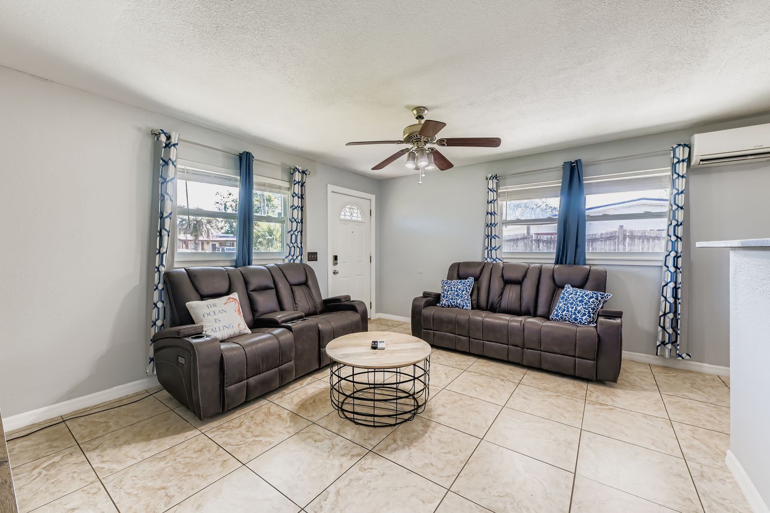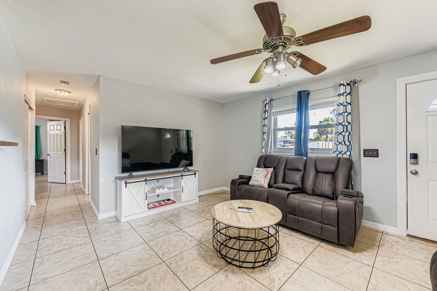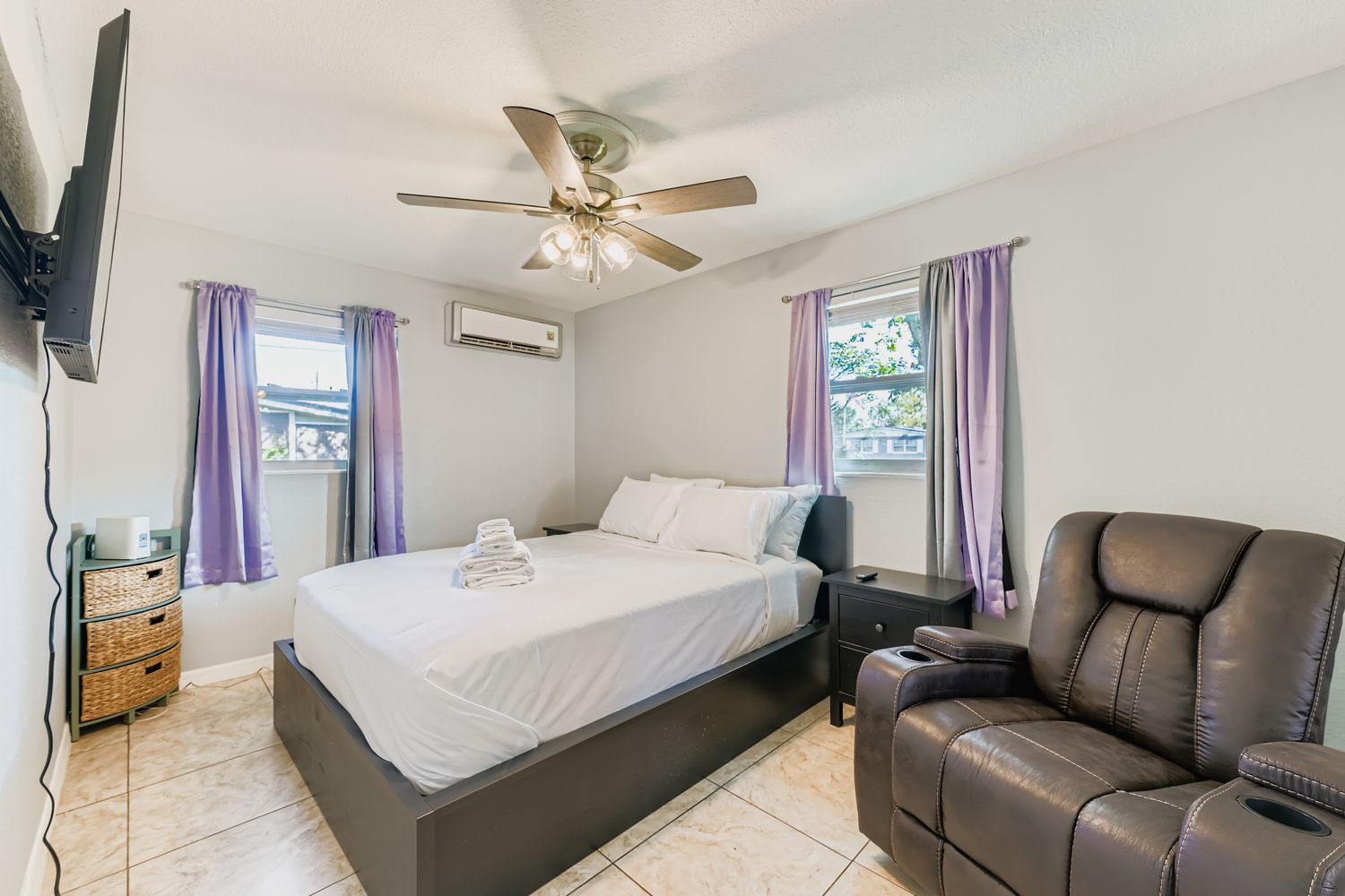 Cozy Pergola Retreat Home Florida Jacksonville Cozy Pergola Retreat Cozy Pergola Retreat Screened Lanai Outdoor pergola with fire pit Living Room with smart TV Primary Bedroom with smart TV Kitchen Open Gallery Screened Lanai Outdoor pergola with fire pit Living Room with smart TV Primary Bedroom with smart TV Kitchen living room couches Main couch recliners Main couch fully open with plugs secondary couch/recliners Secondary couch/recliners open board game board game Scented wax warmer Kitchen Dining table Keurig and Hot water kettle Kitchen sink Air fryer/toaster Knife set Dishes Pots/pans/crock pot Pots/pans/crock pot cooking utensils Silverware and cooking utensils Primary Bedroom with lounge chair Queen bed in primary bedroom Iron / ironing board and fan Primary Bathroom attached to primary bedroom Primary Bathroom Primary bathroom shower Hair dryer in primary bathroom Secondary bedroom with queen bed, recliner and smart TV sSecondary bedroom recliner Rrecliner open Fan and laundry basket Kids bedroom with smart TV Night stand with book and lamp Night stand Secondary bathroom Secondary bathroom with shower/tub combo Secondary bathroom hairdryer Beach/pool towel in hallway closet Lanai table set Lanai hanging egg chair Backyard with pergola Fire pit and hanging egg chairs Pergola large hanging chair Front yard and car port Front yard Front entry Floor plan Gallery View Jacksonville, FL 3 Bedrooms 2 full Baths 6 Guests Pets OK Description Rooms Amenities Reviews Calendar Location Pet-Friendly Cozy Pergola Retreat: 3BR Short-Term Rental Near Jacksonville Attractions Welcome to your ideal pet-friendly vacation home in Jacksonville's vibrant Northside! This newly renovated, single-level 3-bedroom, 2-bathroom retreat sleeps up to 6 guests and blends modern comfort with outdoor charm. Perfect for families, groups, or travelers with furry friends, this family-friendly short-term rental (Airbnb alternative) offers stylish interiors, smart amenities, and easy access to top spots like EverBank Stadium, beaches, and golf courses. Whether you're catching a Jaguars game or exploring wildlife sanctuaries, this Jacksonville vacation rental is your relaxing base for Northeast Florida adventures. What You'll Love: Key Highlights • Pet-Friendly Vibes: Bring your dogs or cats (up to 2 pets, breed restrictions may apply—contact us for details; pet fee of $50 per stay applies). Enjoy a fully fenced yard for safe playtime. • Modern Renovations: Fresh updates throughout, including new appliances, smart TVs in every room, and individual AC units for personalized comfort. • Outdoor Oasis: Relax in the screened lanai with dining seating, or unwind under the pergola with hanging egg chairs, a bench swing, and a cozy fire pit for starry evenings. • Convenient Location: Just minutes from attractions, dining, and shopping—ideal for short-term stays or extended getaways. • Family Essentials: Kids' books, toys, games, and children's dinnerware make it welcoming for all ages. Spacious and Inviting Interiors Step inside this bright, airy home designed for effortless relaxation. The open layout features a fully equipped kitchen with brand-new appliances: stove, microwave, dishwasher, refrigerator with ice maker, air fryer/toaster oven combo, Keurig coffee maker, electric hot water kettle, and all the pots, pans, dishes, and spices you need for home-cooked meals. The living room boasts a smart TV for movie nights, while in-unit laundry (new washer and dryer) adds convenience. Bedrooms are tailored for comfort: • Primary Bedroom: Queen bed, lounge chair, attached private bathroom with modern shower, and smart TV. • Secondary Bedroom: Queen bed, recliner, and smart TV. • Kids' Bedroom: Twin bunk beds and wall-mounted smart TV. Both bathrooms are updated with complimentary starters: shampoo, conditioner, body soap, lotion, hand soap, makeup towels, hairdryer, and fresh bath mats. The primary has a shower; the hallway bath offers a tub/shower combo. Embrace the Outdoors Florida living shines here! The screened lanai provides bug-free al fresco dining with a table, chairs, and a hanging egg chair. The pergola area invites relaxation with two egg chairs, a bench swing, and a fire pit—perfect for s'mores or stargazing. A covered carport offers shaded parking for up to two vehicles, with additional street parking available. Prime Location: Attractions and Adventures Nestled in a quiet neighborhood, you're centrally located for Jacksonville's best: • Sports fans: EverBank Stadium (~8 miles) for Jaguars games; VyStar Ballpark (~8 miles) for Jumbo Shrimp baseball; VyStar Veterans Memorial Arena (~8 miles) for Icemen hockey. • Nature lovers: Jacksonville Zoo and Gardens (~7 miles); Catty Shack Ranch (~5 miles); Kathryn Abbey Hanna Park (~15 miles) with beaches and trails; Huguenot Memorial Park (~12 miles) for beach driving; Big/Little Talbot Island State Parks (~15-17 miles); Jacksonville Arboretum (~5 miles, pet-friendly trails). • History buffs: Kingsley Plantation (~10 miles). • Golf enthusiasts: Blue Sky Golf Club (~8 miles) and Hidden Hills Golf Club (~9 miles), both Arnold Palmer-designed. Explore nearby activities like bird watching, boating, cycling, fishing, golf, snorkeling, surfing, and swimming—all within easy reach. Local Dining Favorites Indulge in diverse flavors close by: • Celestia’s Coastal Cuisine (~3 miles): Southern seafood like shrimp and grits. • The Potter’s House Soul Food Bistro (~8 miles): Classic fried chicken and smothered pork chops. • EZ Eatz by Yaya (~7 miles): Mediterranean-American fusion salads and shrimp. • Purple Roots (~6 miles): Filipino garlic choy and spicy dishes. • J.L. Trent’s Seafood & Grill (~8 miles): Fresh crab cakes and fried shrimp. House Rules and Important Notes • Quiet Hours: 10 PM to 7 AM to ensure a peaceful stay for all. • No Smoking: Strictly enforced inside and outside the property. • Pet Policy: Welcoming to well-behav